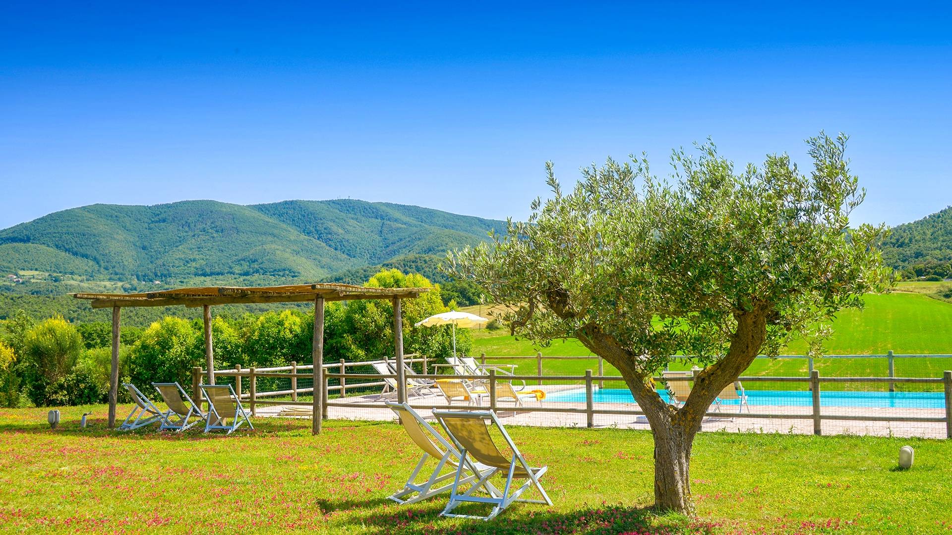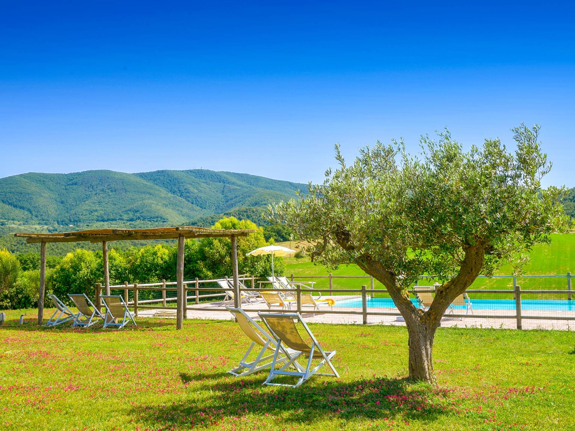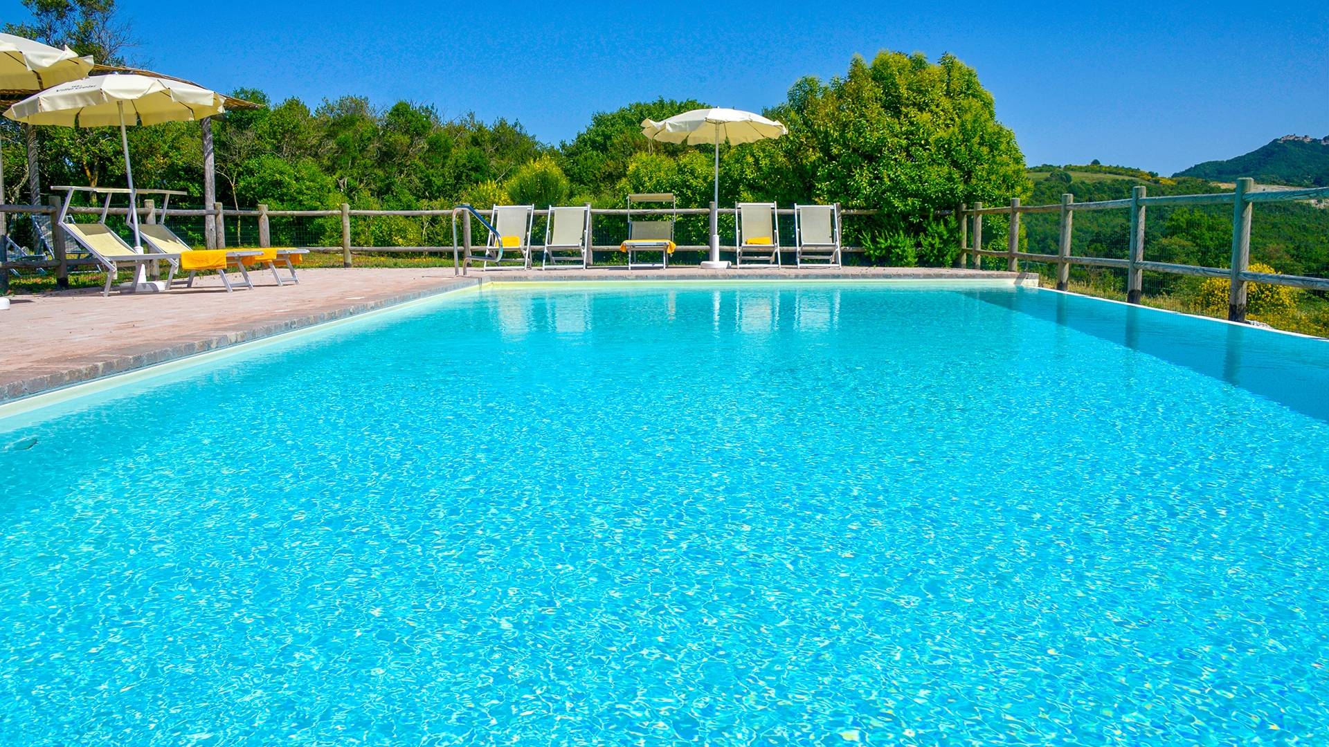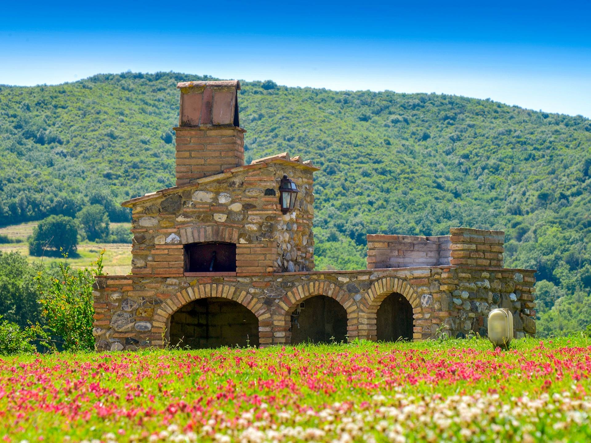 Частный бассейн с подогревом и захватывающим видом на окружающие холмы с зонтиками и шезлонгами. Есть панорамная терраса с мангалом. Доступен бесплатный Интернет. Бассейн 6х12 м, глубина 1,50 см. Солярий оборудован 8 лежаками и 8 лежаками. Он имеет панорамную террасу, выходящую на юг, и лестницу, ведущую прямо в сад. На террасе есть барбекю, шезлонги, зонтики, стол и стулья. Снаружи есть еще одно барбекю с духовкой.