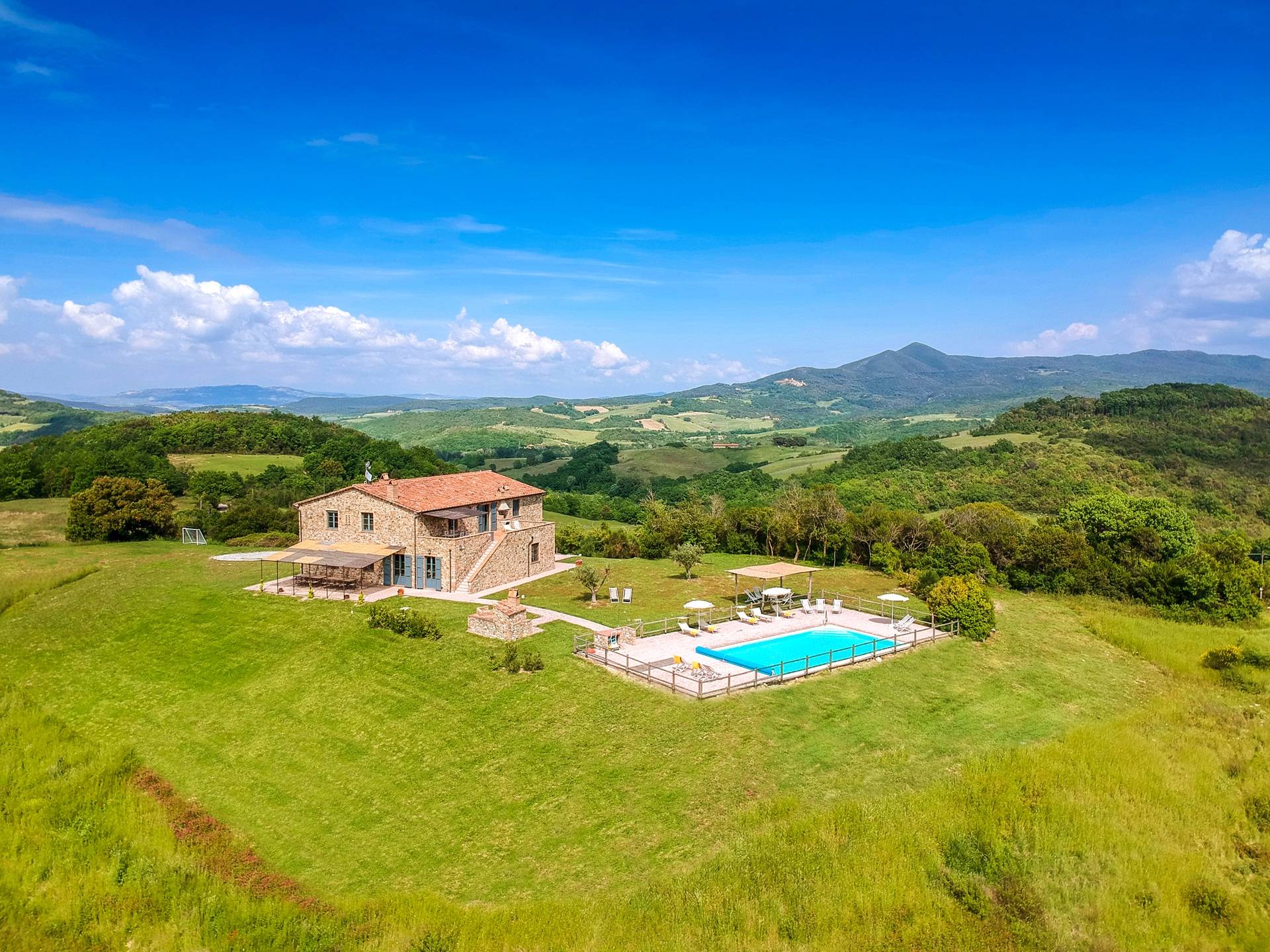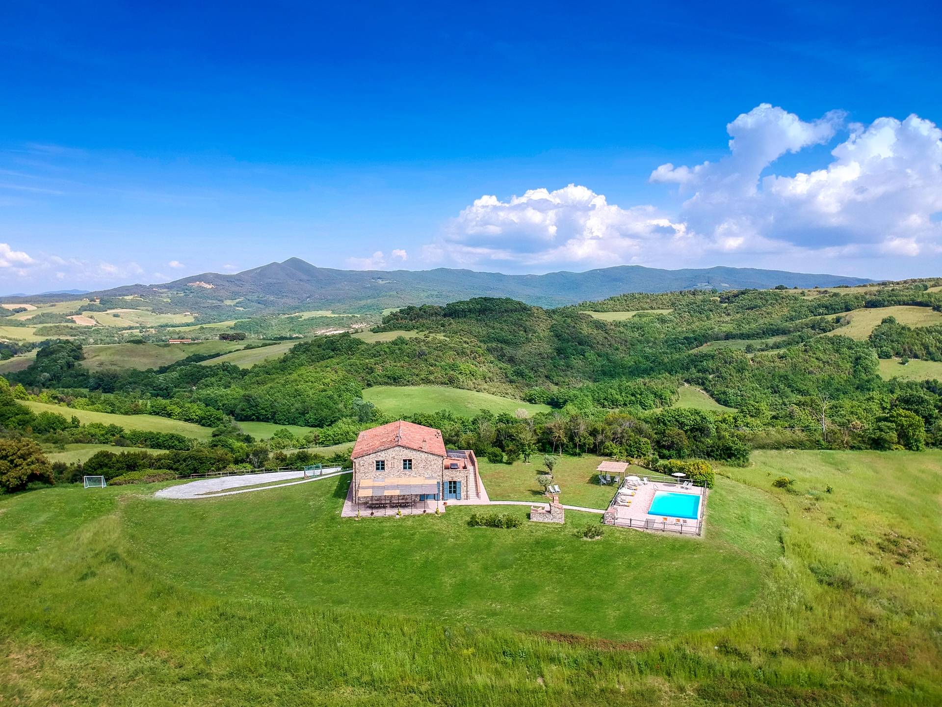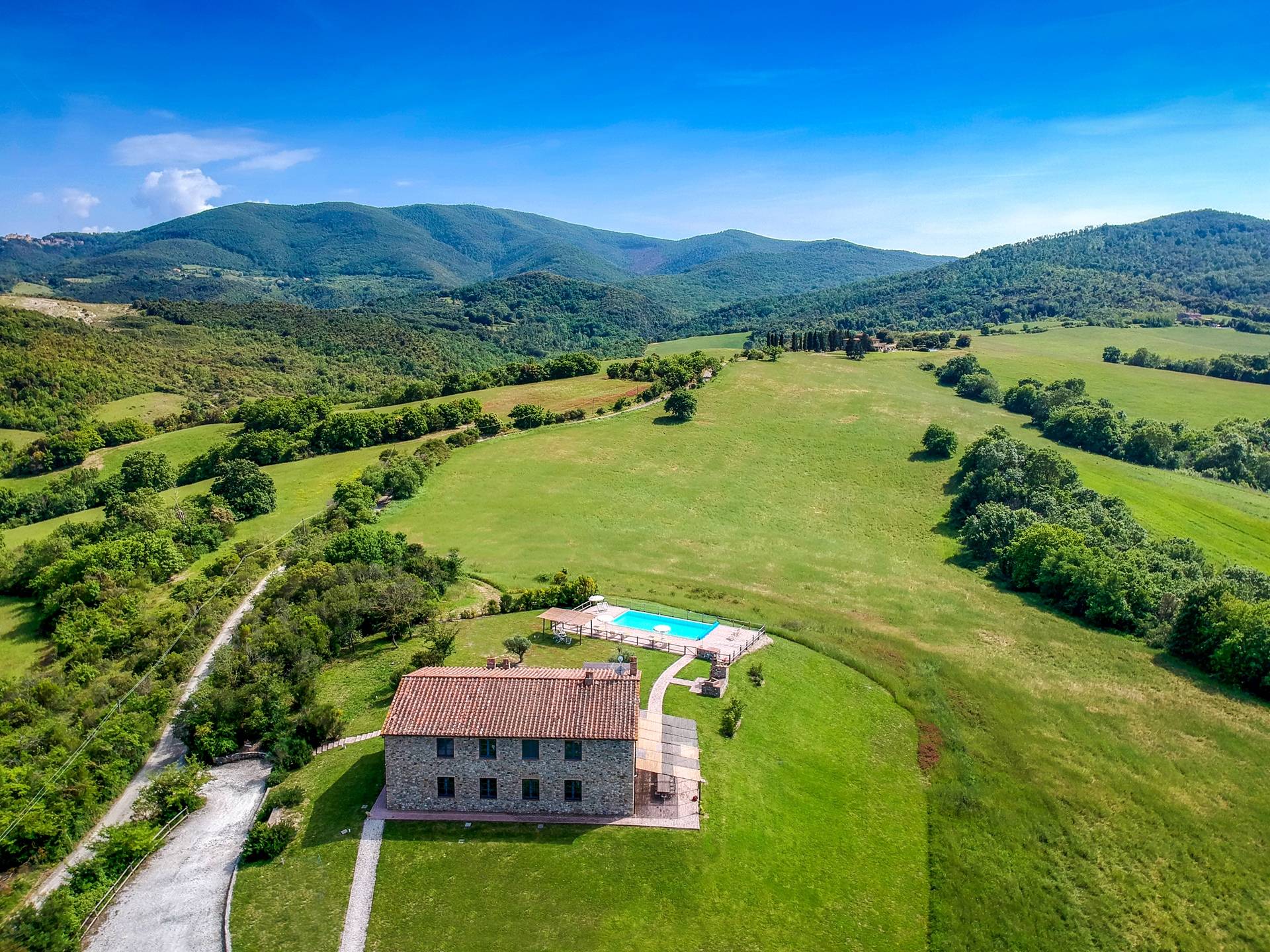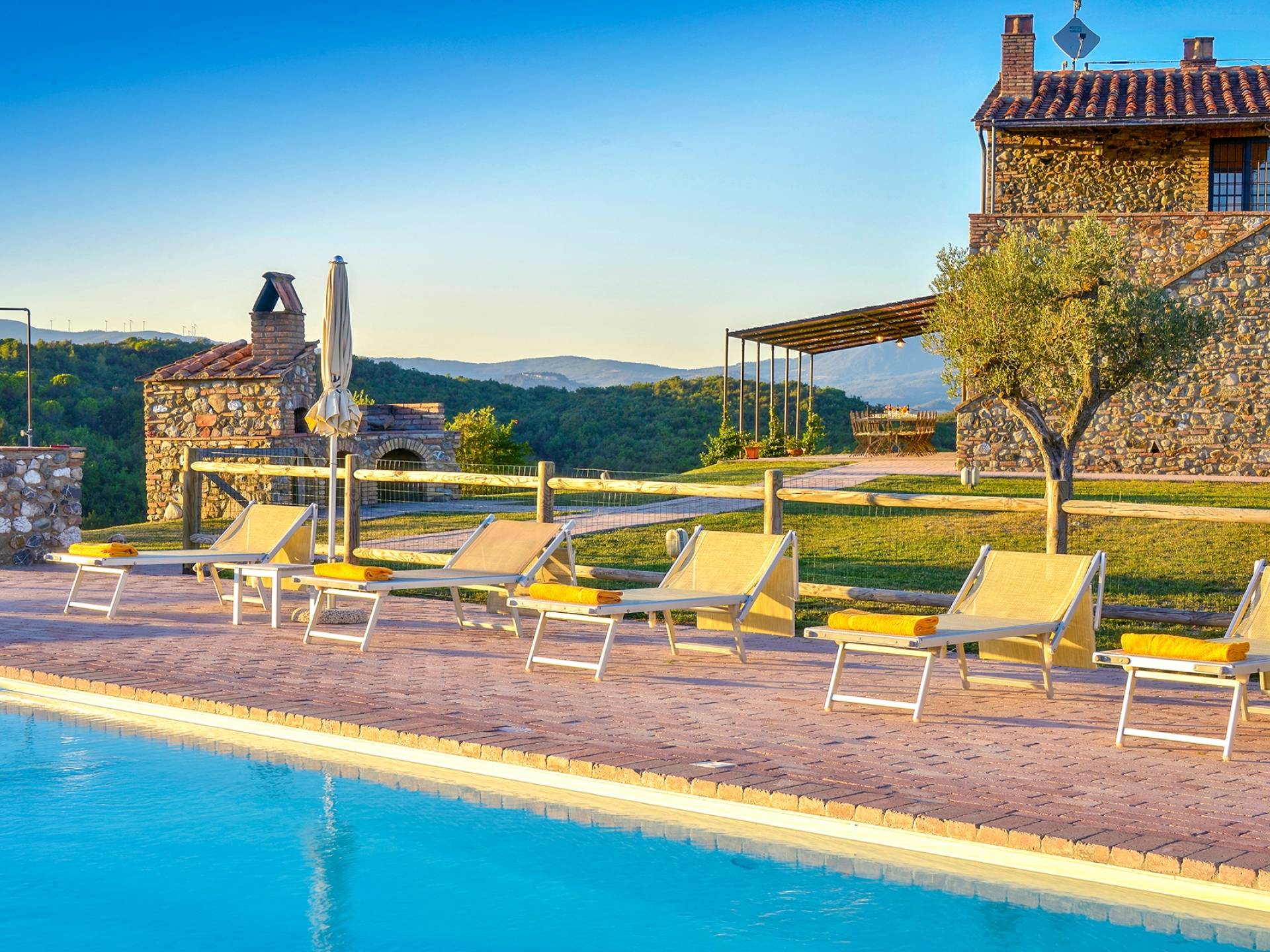 В окрестностях есть много интересных провинциальных городов, которые стоит посетить, например, Монтескудайо, без сомнения, один из самых красивых городов в районе Пизы, Рипабелла и Казале-Мариттимо. Фермерский дом был полностью отреставрирован в соответствии с тосканскими традициями. Он находится в открытом месте, откуда открывается панорамный вид на сельскую местность, изолированную и спокойную. С апреля по октябрь здесь идеальный климат, а зима обычно очень мягкая.