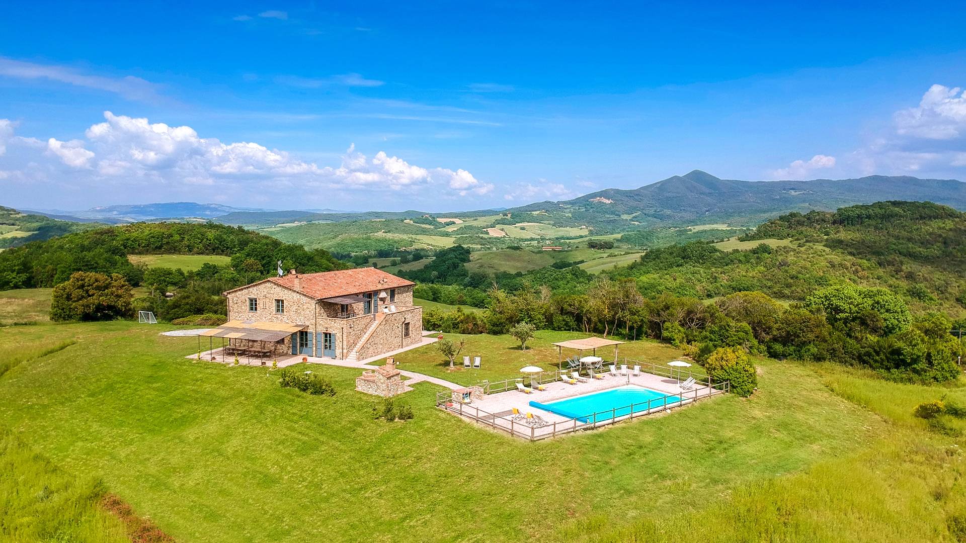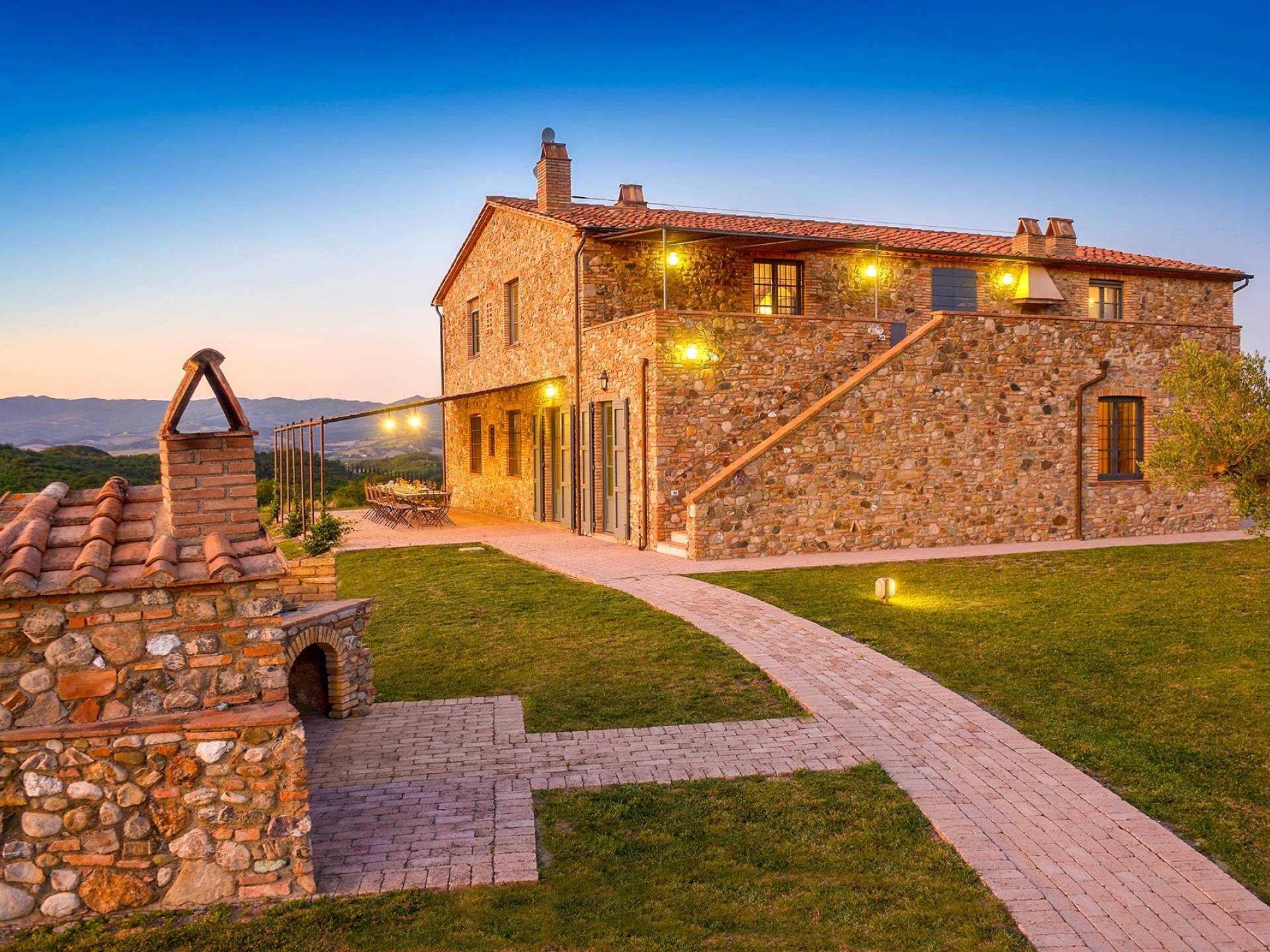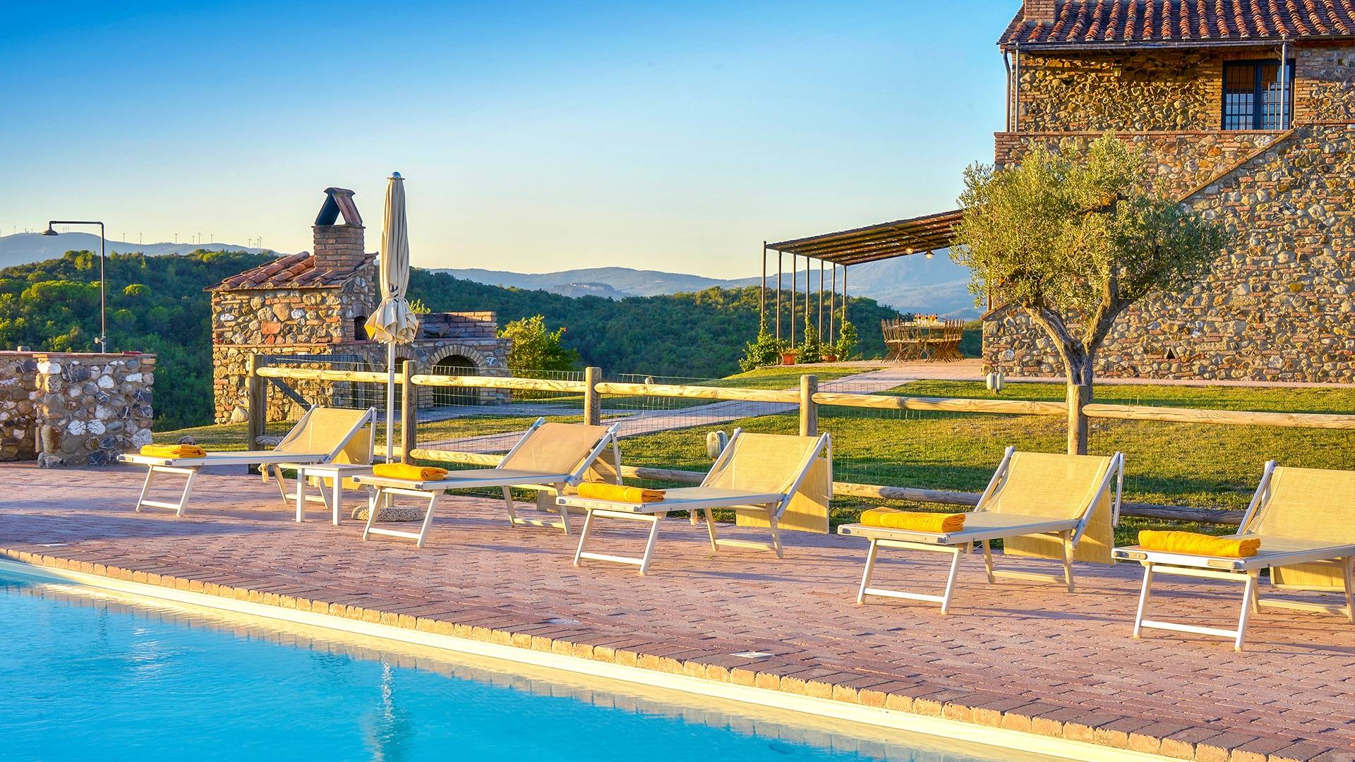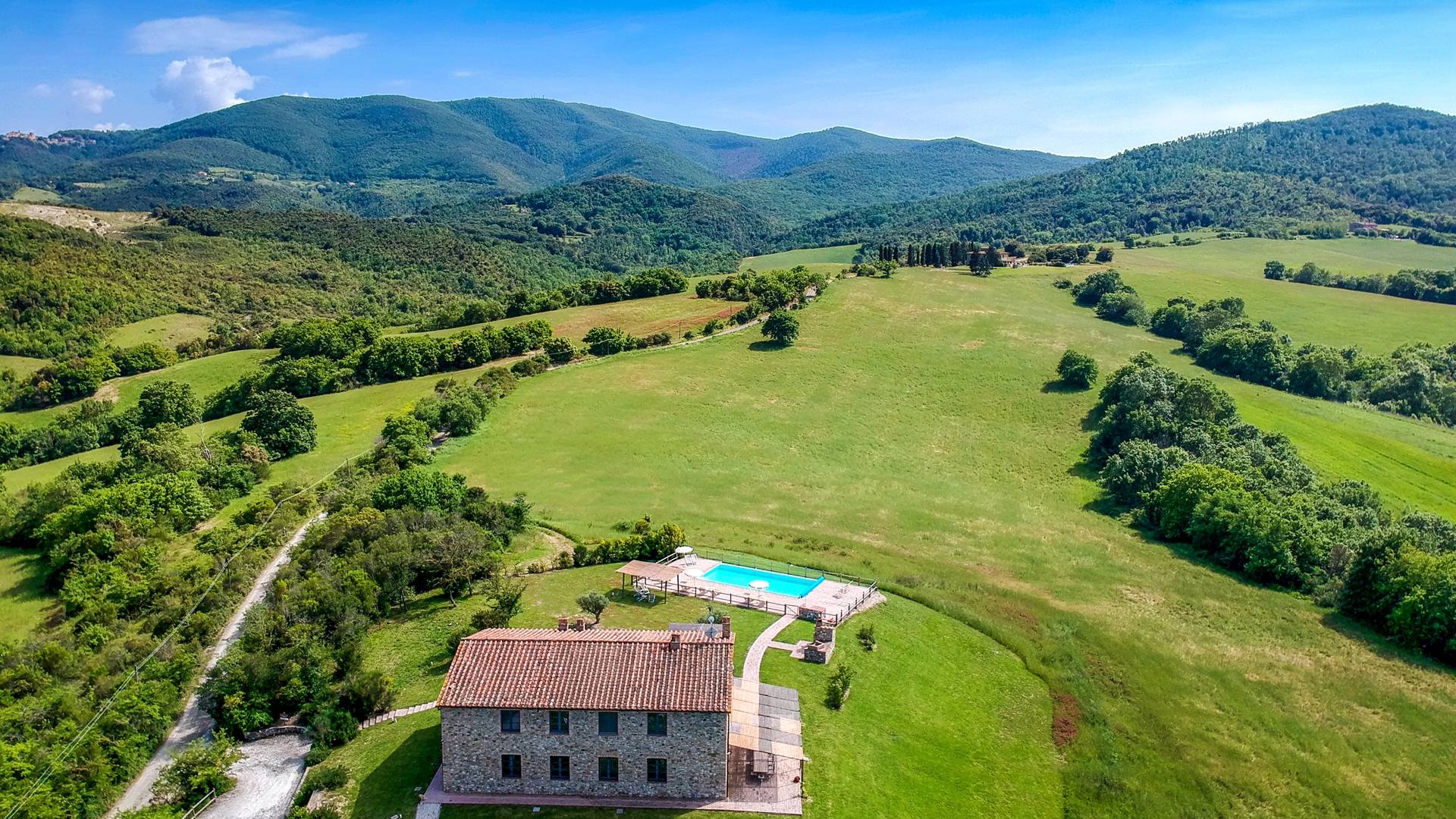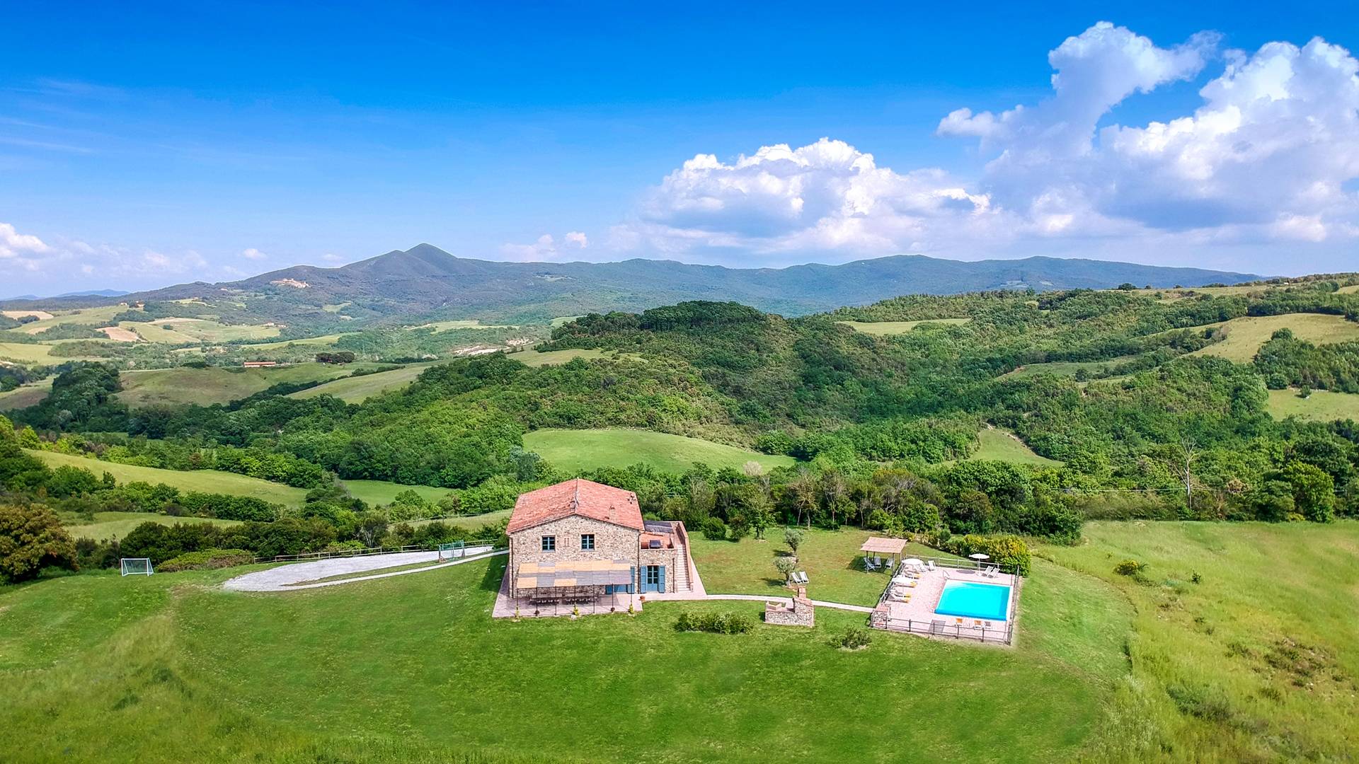 В окрестностях есть много интересных провинциальных городов, которые стоит посетить, например, Монтескудайо, без сомнения, один из самых красивых городов в районе Пизы, Рипабелла и Казале-Мариттимо. Фермерский дом был полностью отреставрирован в соответствии с тосканскими традициями. Он находится в открытом месте, откуда открывается панорамный вид на сельскую местность, изолированную и спокойную. С апреля по октябрь здесь идеальный климат, а зима обычно очень мягкая.