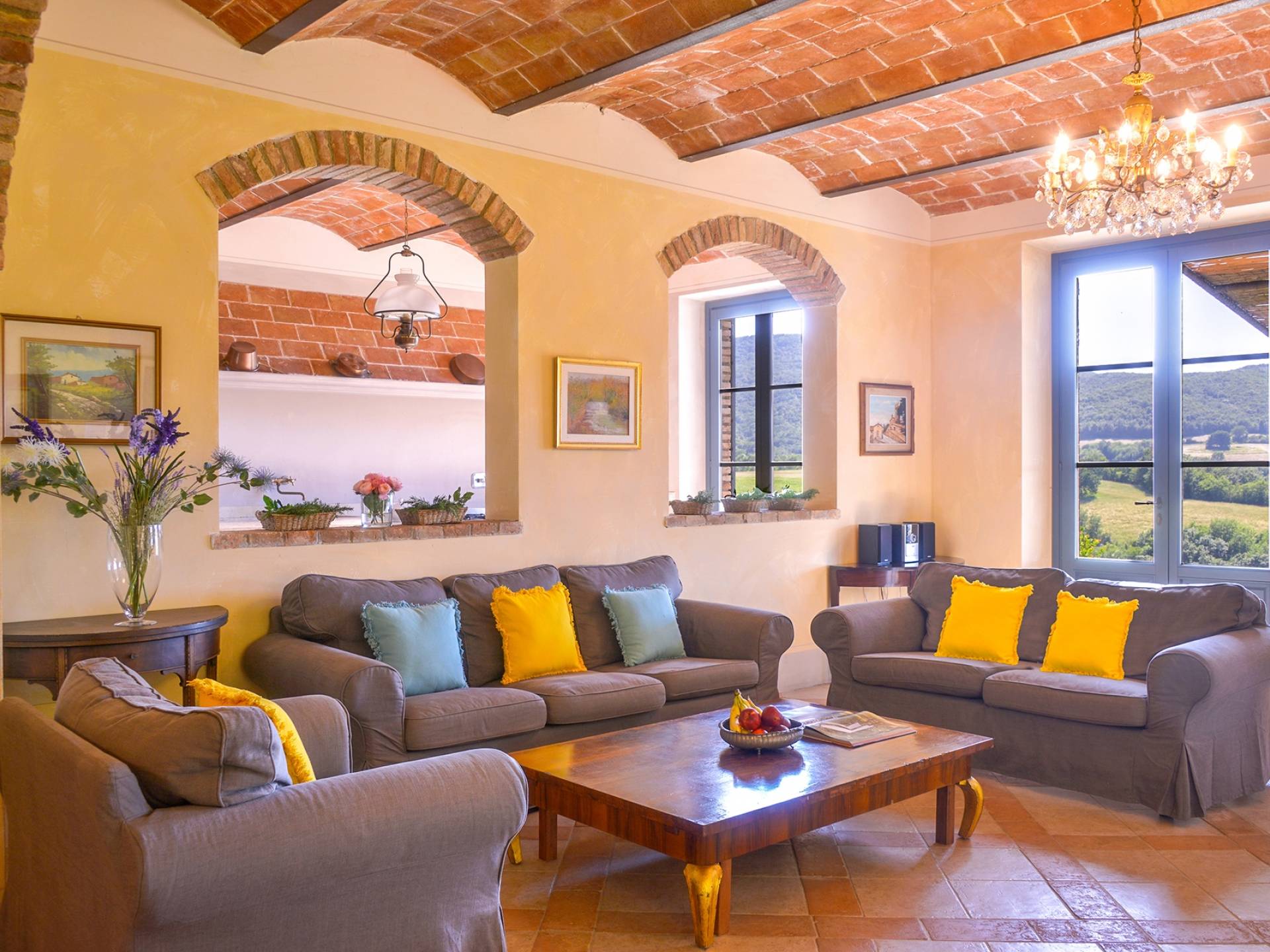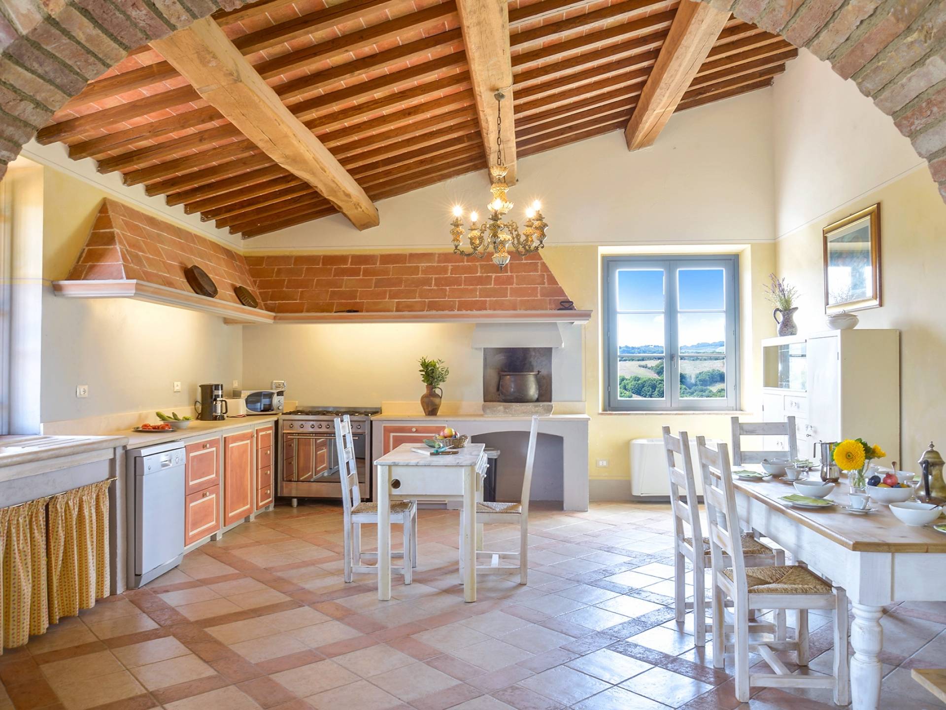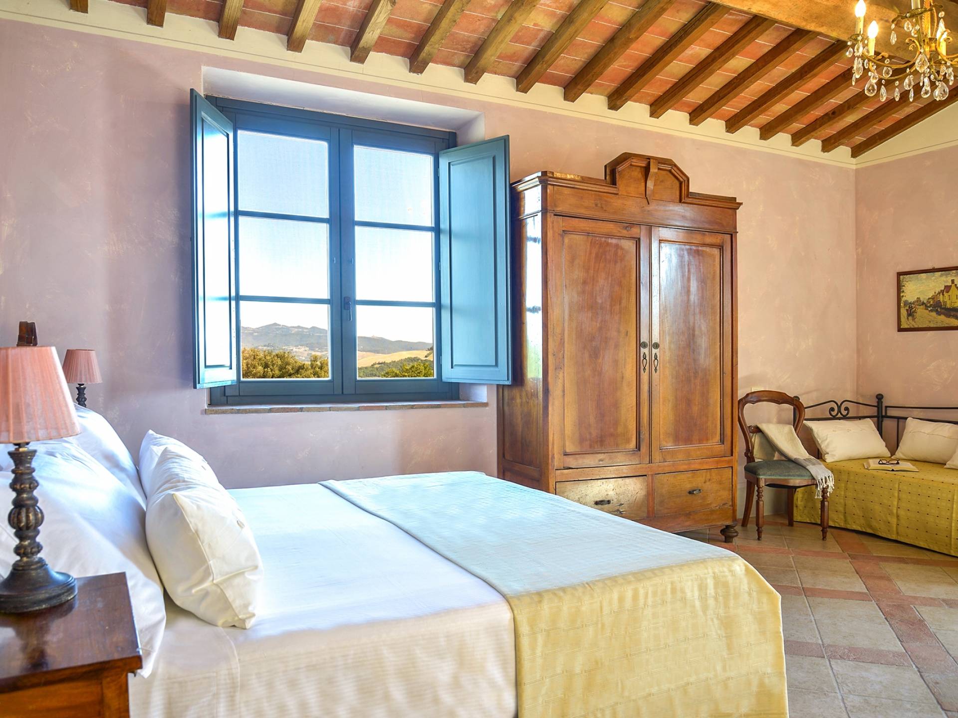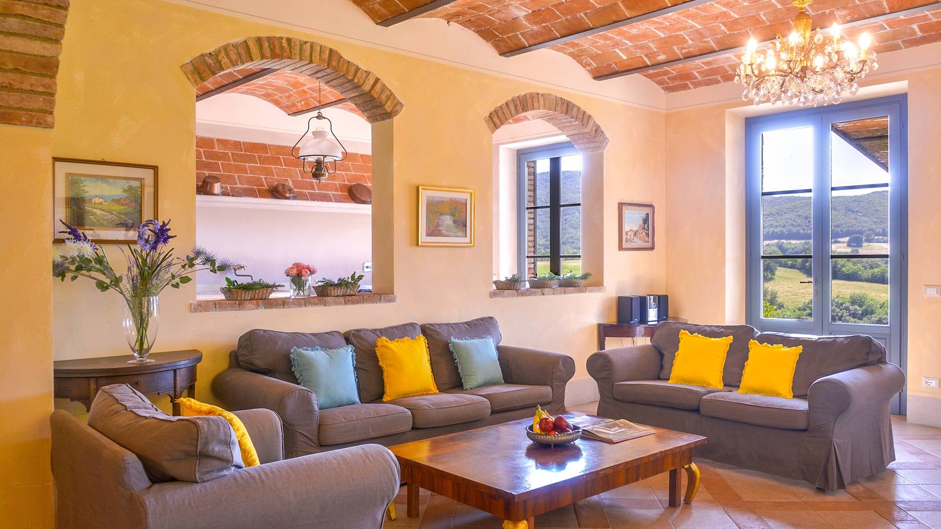 В окрестностях есть много интересных провинциальных городов, которые стоит посетить, например, Монтескудайо, без сомнения, один из самых красивых городов в районе Пизы, Рипабелла и Казале-Мариттимо. Фермерский дом был полностью отреставрирован в соответствии с тосканскими традициями. Он находится в открытом месте, откуда открывается панорамный вид на сельскую местность, изолированную и спокойную. С апреля по октябрь здесь идеальный климат, а зима обычно очень мягкая.