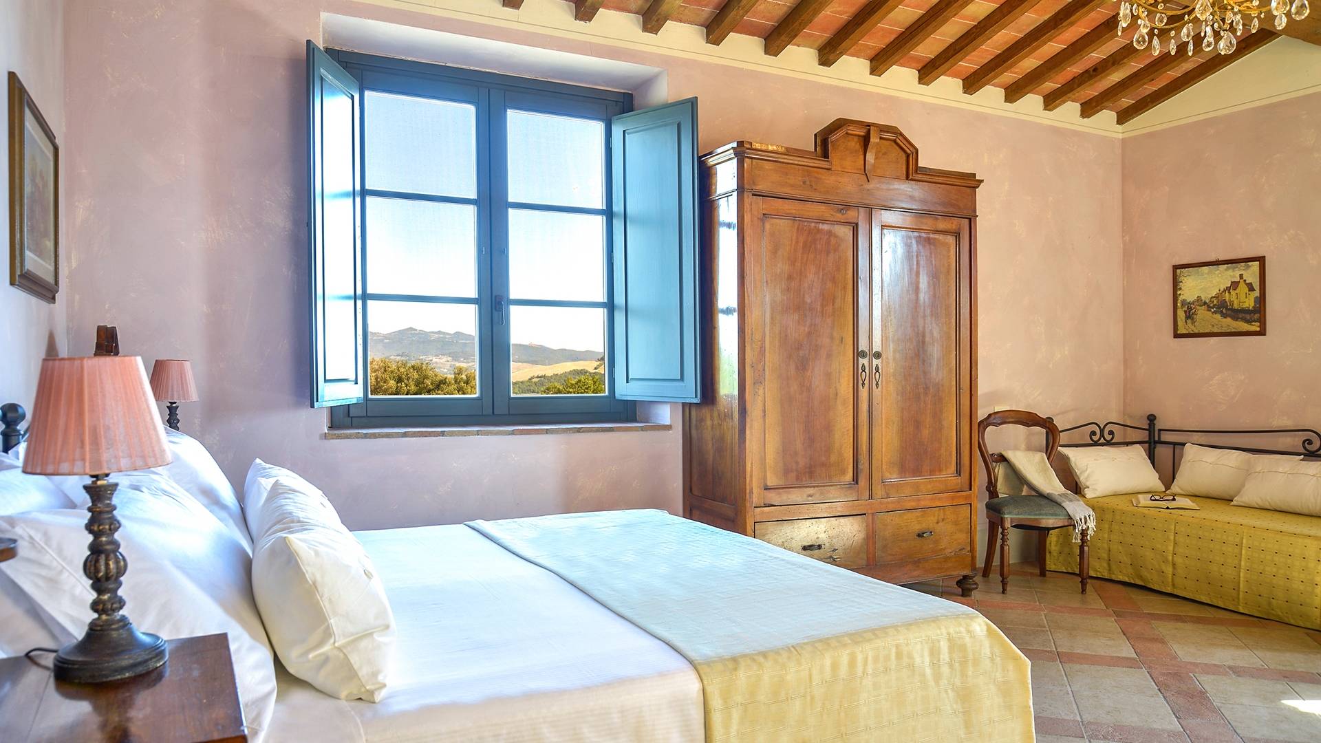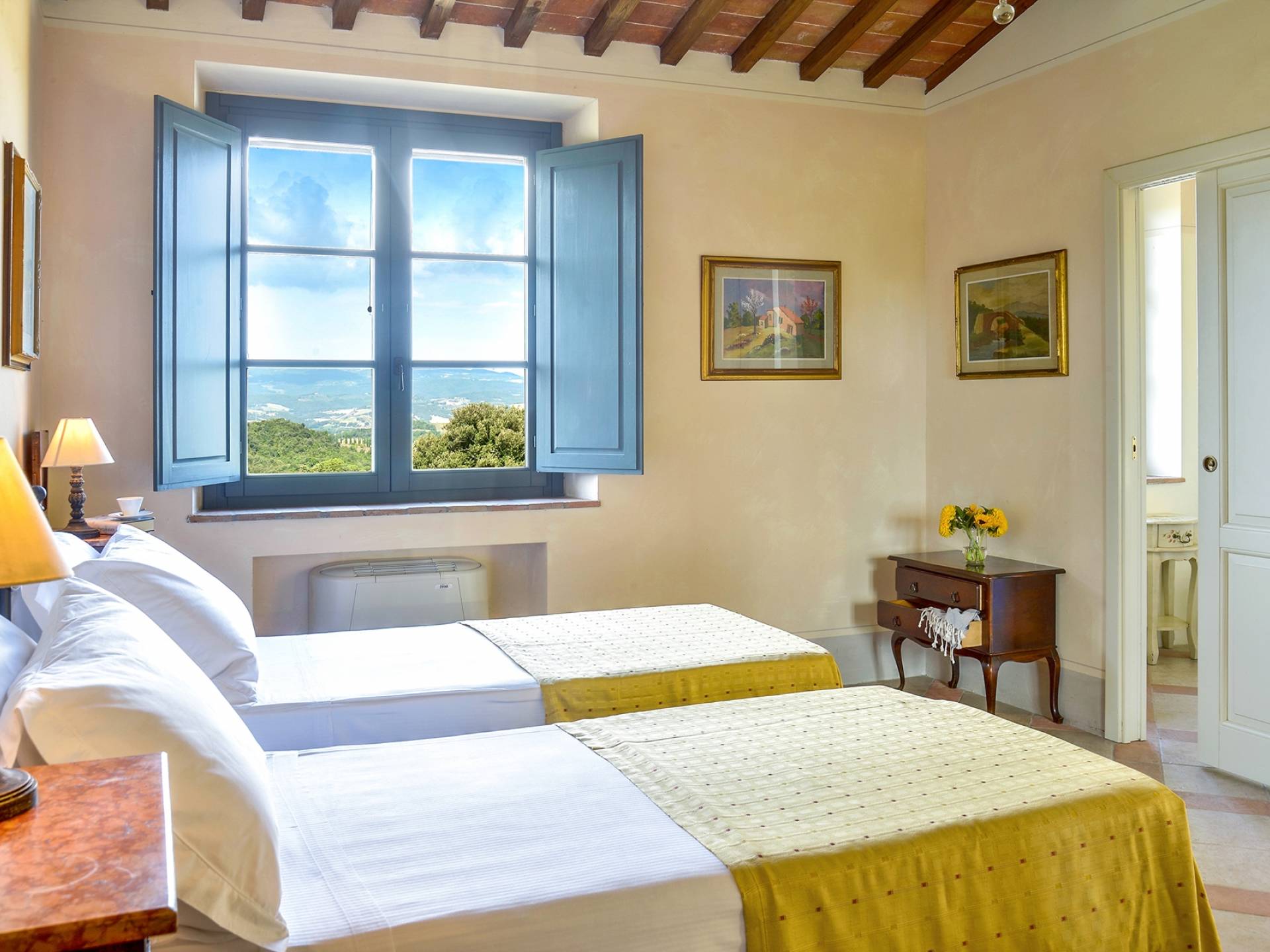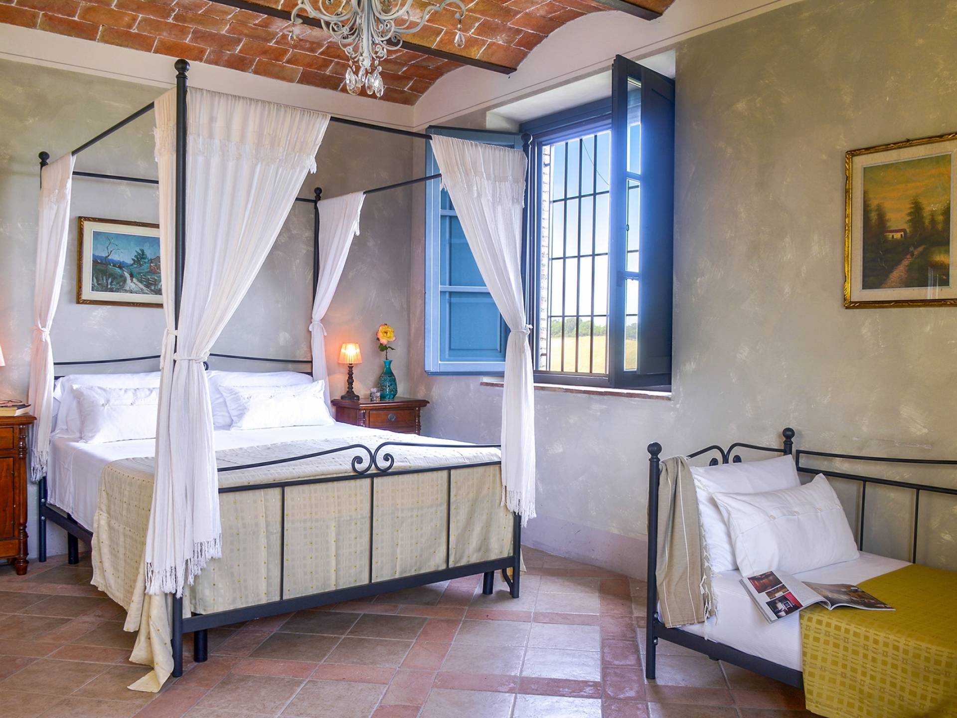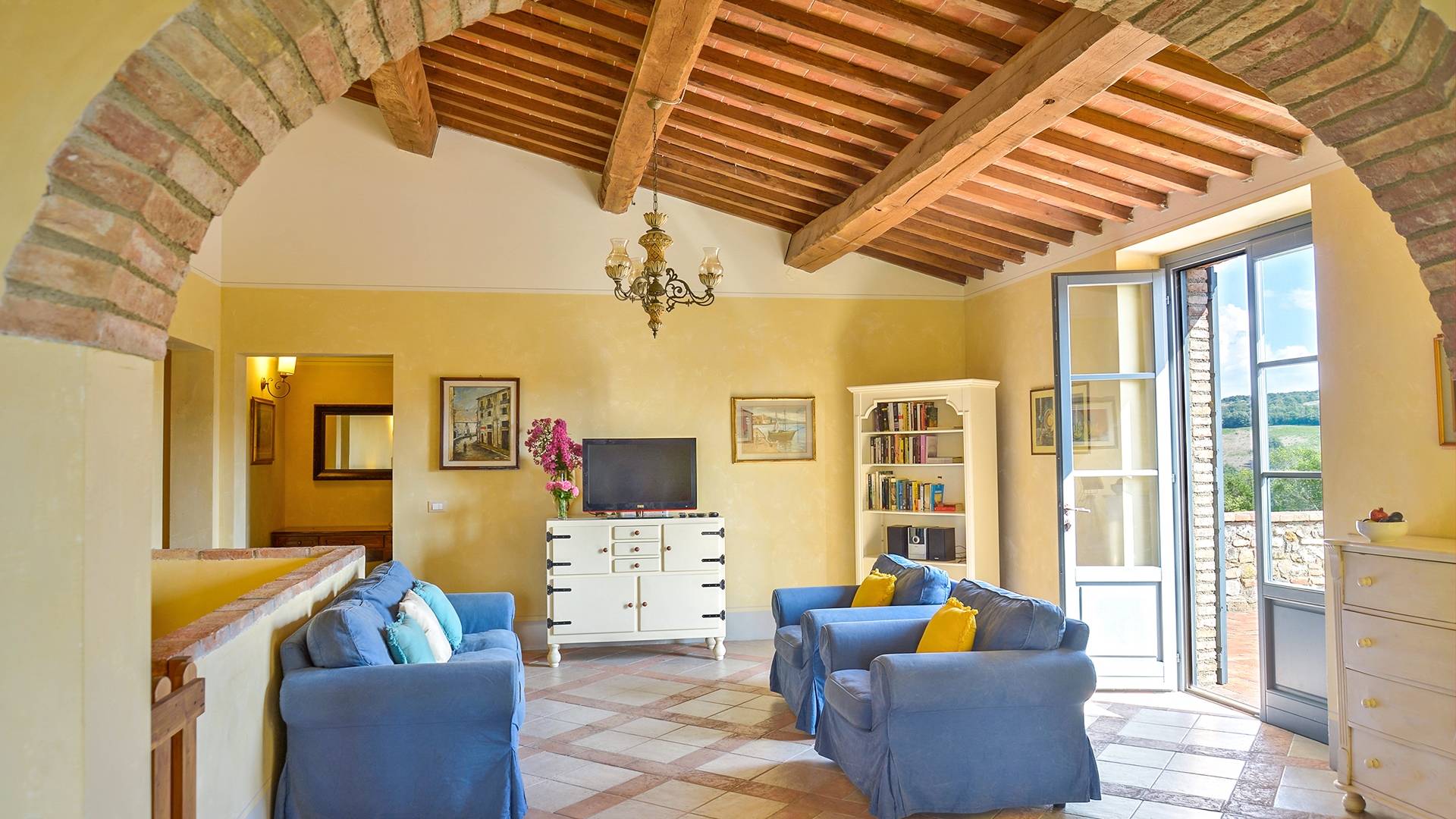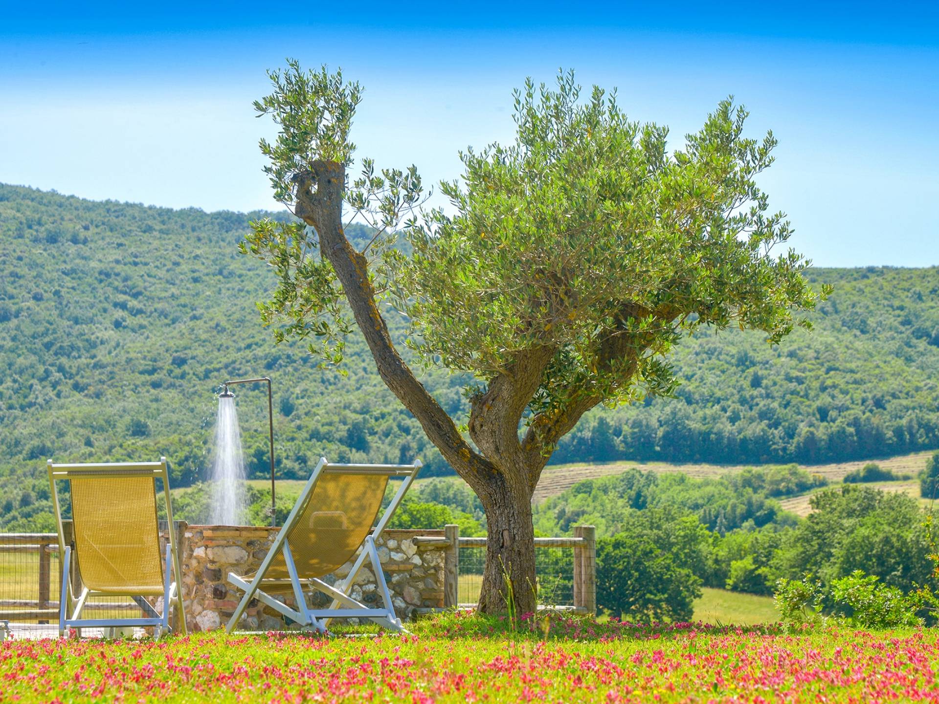 В окрестностях есть много интересных провинциальных городов, которые стоит посетить, например, Монтескудайо, без сомнения, один из самых красивых городов в районе Пизы, Рипабелла и Казале-Мариттимо. Фермерский дом был полностью отреставрирован в соответствии с тосканскими традициями. Он находится в открытом месте, откуда открывается панорамный вид на сельскую местность, изолированную и спокойную. С апреля по октябрь здесь идеальный климат, а зима обычно очень мягкая.