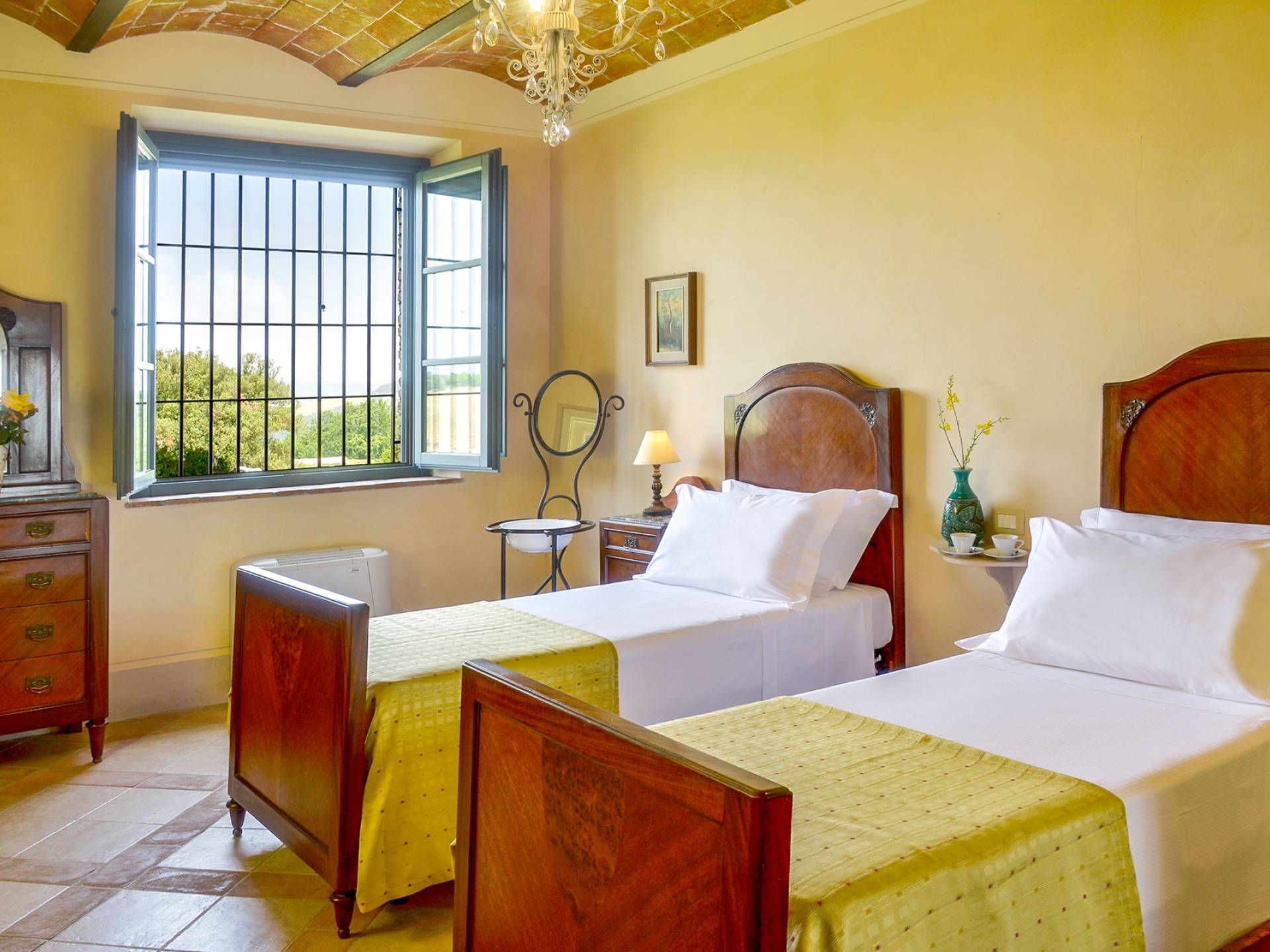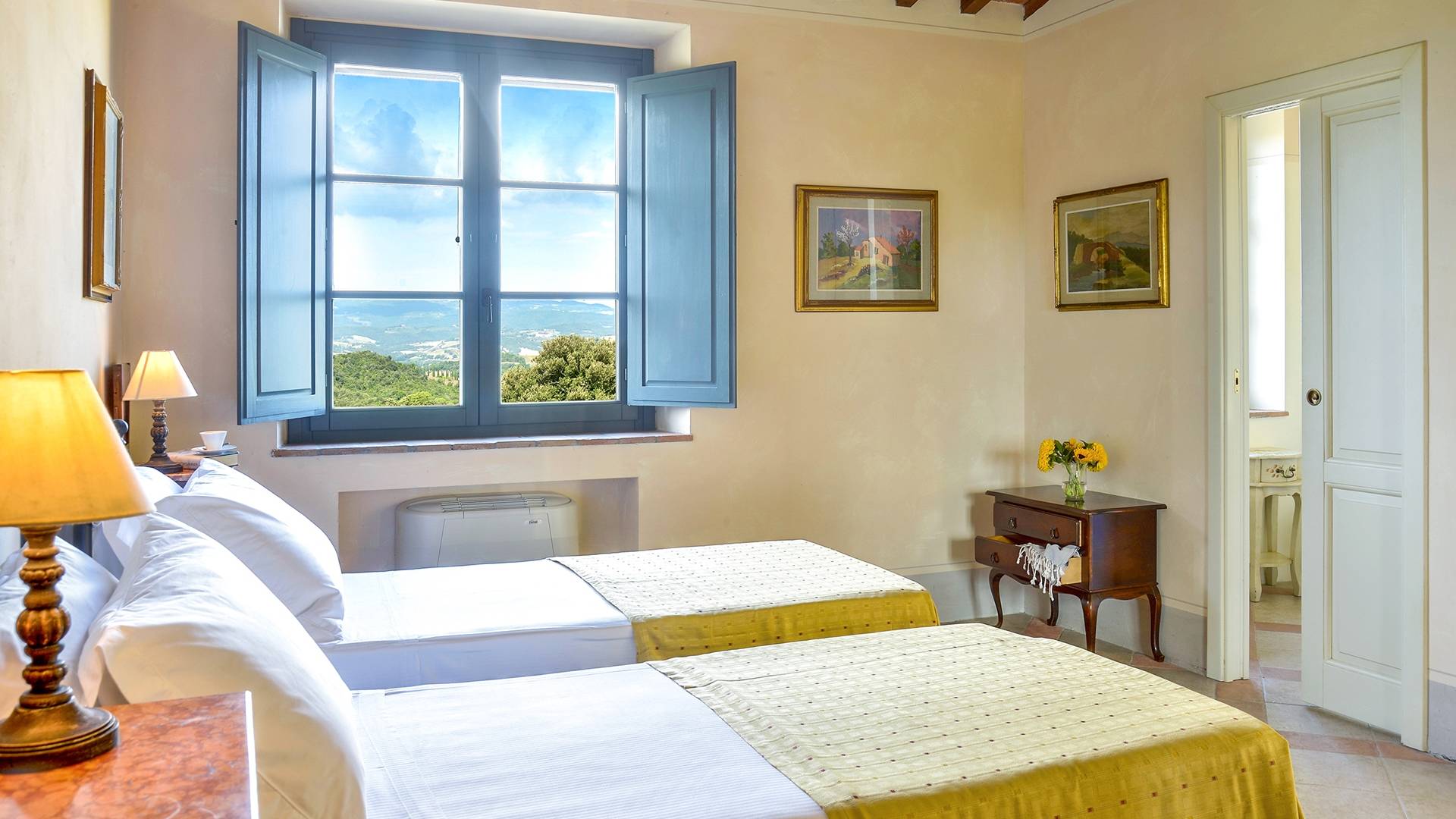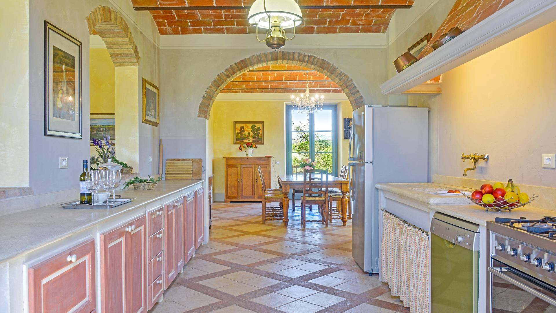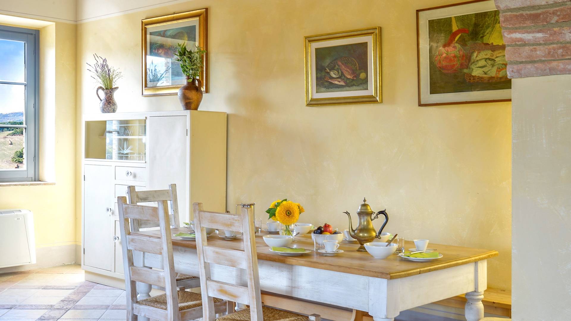 В окрестностях есть много интересных провинциальных городов, которые стоит посетить, например, Монтескудайо, без сомнения, один из самых красивых городов в районе Пизы, Рипабелла и Казале-Мариттимо. Фермерский дом был полностью отреставрирован в соответствии с тосканскими традициями. Он находится в открытом месте, откуда открывается панорамный вид на сельскую местность, изолированную и спокойную. С апреля по октябрь здесь идеальный климат, а зима обычно очень мягкая.