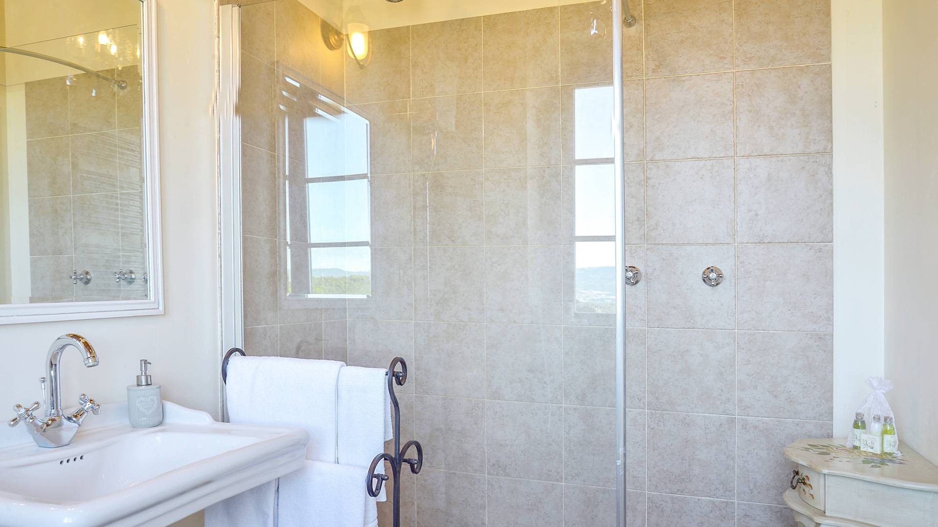 Вилла двухуровневая, ее площадь составляет около 600 квадратных метров. Он может вместить 16 человек в двух квартирах, каждая с 4 спальнями с ванными комнатами. Эти две квартиры независимы, но могут быть соединены внутренней лестницей. Возможна установка 5 дополнительных кроватей для 21 гостя. На первом этаже (около 300 кв.м) находится большая гостиная с телевизором, столовая, кухня и 4 спальни с двуспальными кроватями, каждая с отдельной ванной комнатой с душем. Кухня и зоны внизу идеально подходят для 16 человек. Внутренняя лестница ведет на второй этаж (около 290 кв.м). Здесь есть кухня с красивым видом, обеденная зона, гостиная, 4 спальни с 4 ванными комнатами и дополнительная ванная комната.