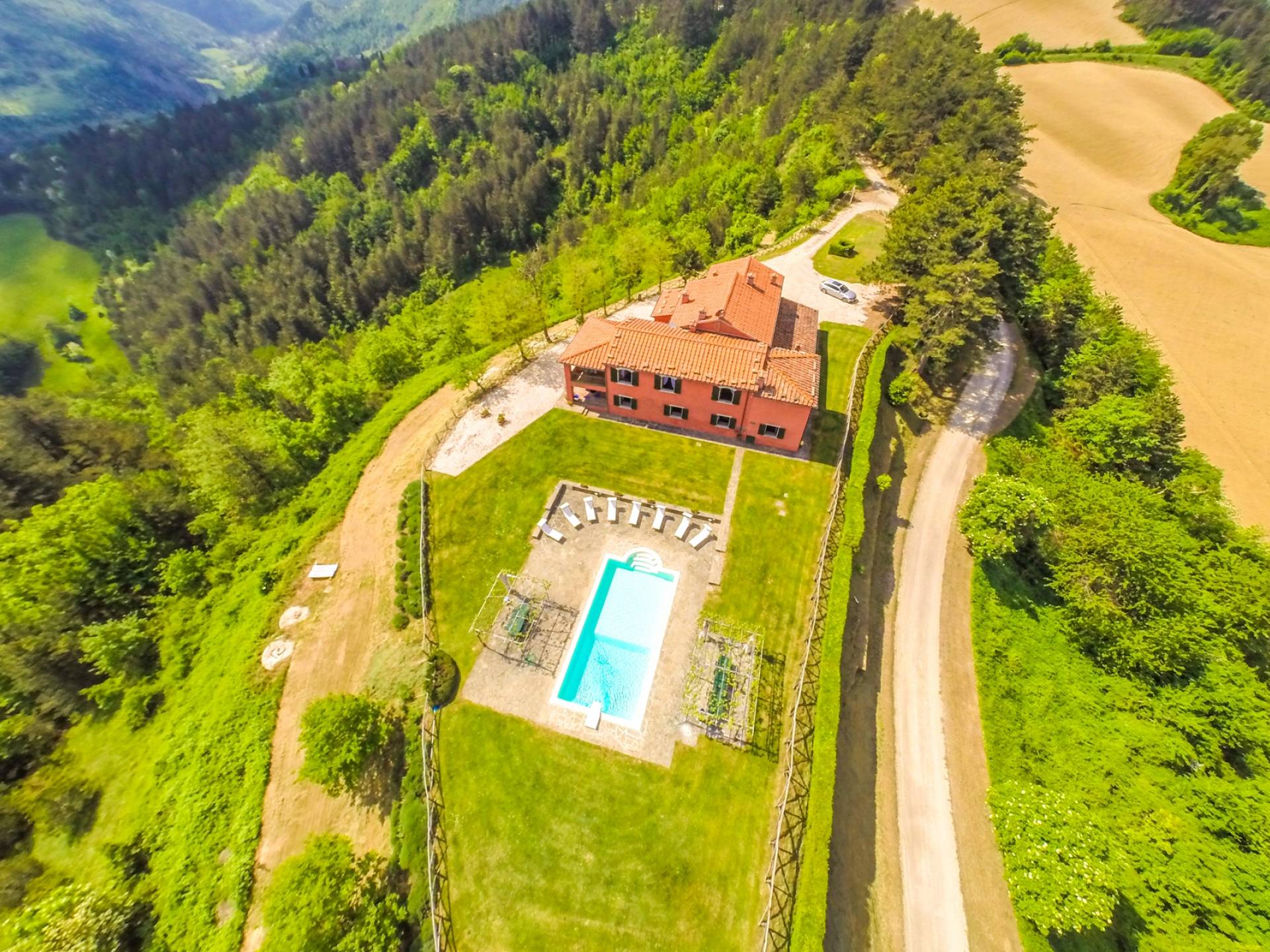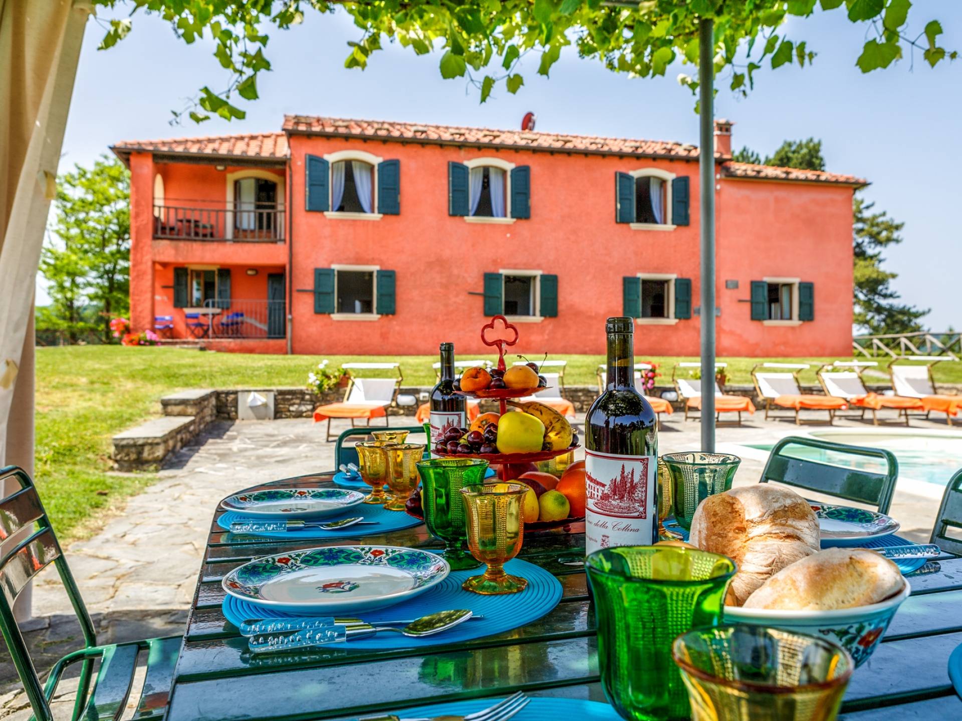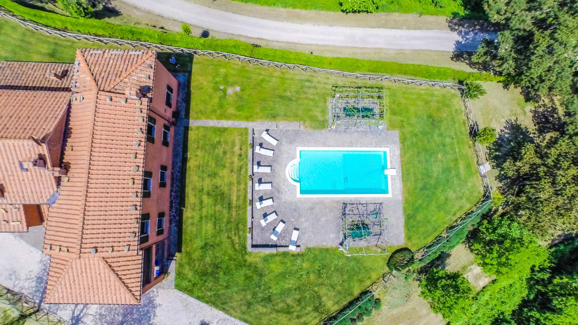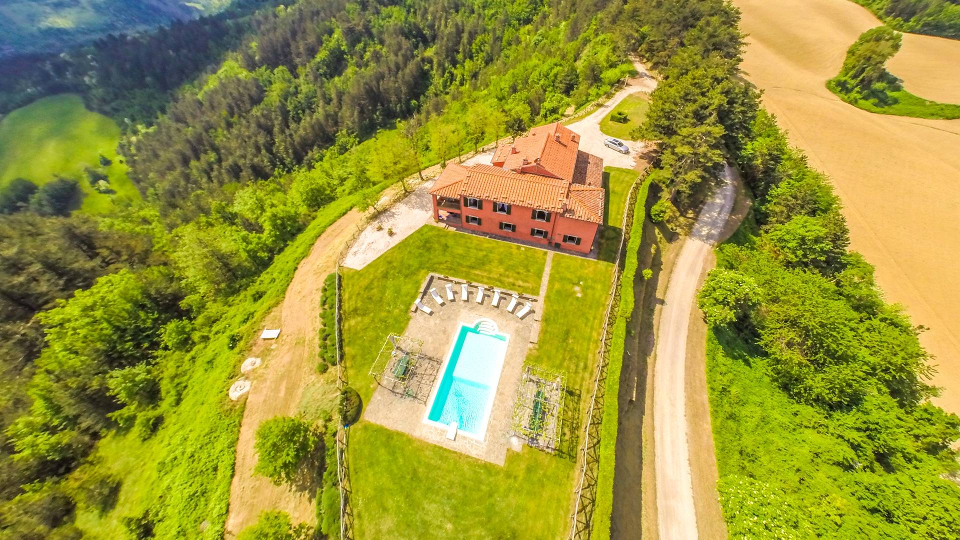 Лавандовые живые изгороди окружают отель, источая в жаркие летние дни дурманящий аромат, который смешивается с цветами герани, которые растут у входа и в некоторых проходах на открытых площадках. Расположение дома гарантирует абсолютную конфиденциальность даже от посторонних глаз. Автостоянка также незаметно скрыта. Вилла является частью отеля, где производят отличные вина, которые станут визитной карточкой каждого пребывания. Внутренне дом похож на типичную тосканскую резиденцию с терракотовыми полами, большими каминами в гостиных, а также цветными диванами и креслами. Многие номера, особенно в спальной зоне, украшены деревянными балками и обставлены старинной мебелью.
