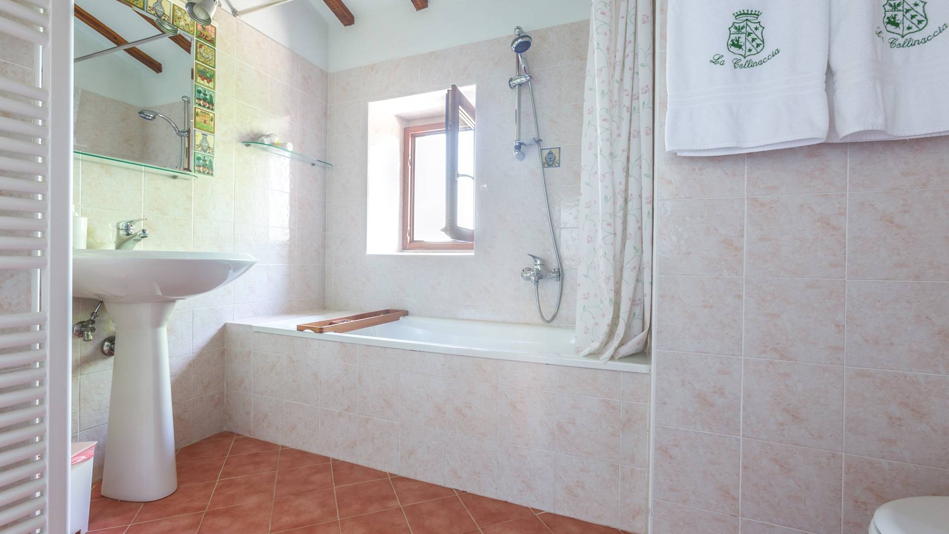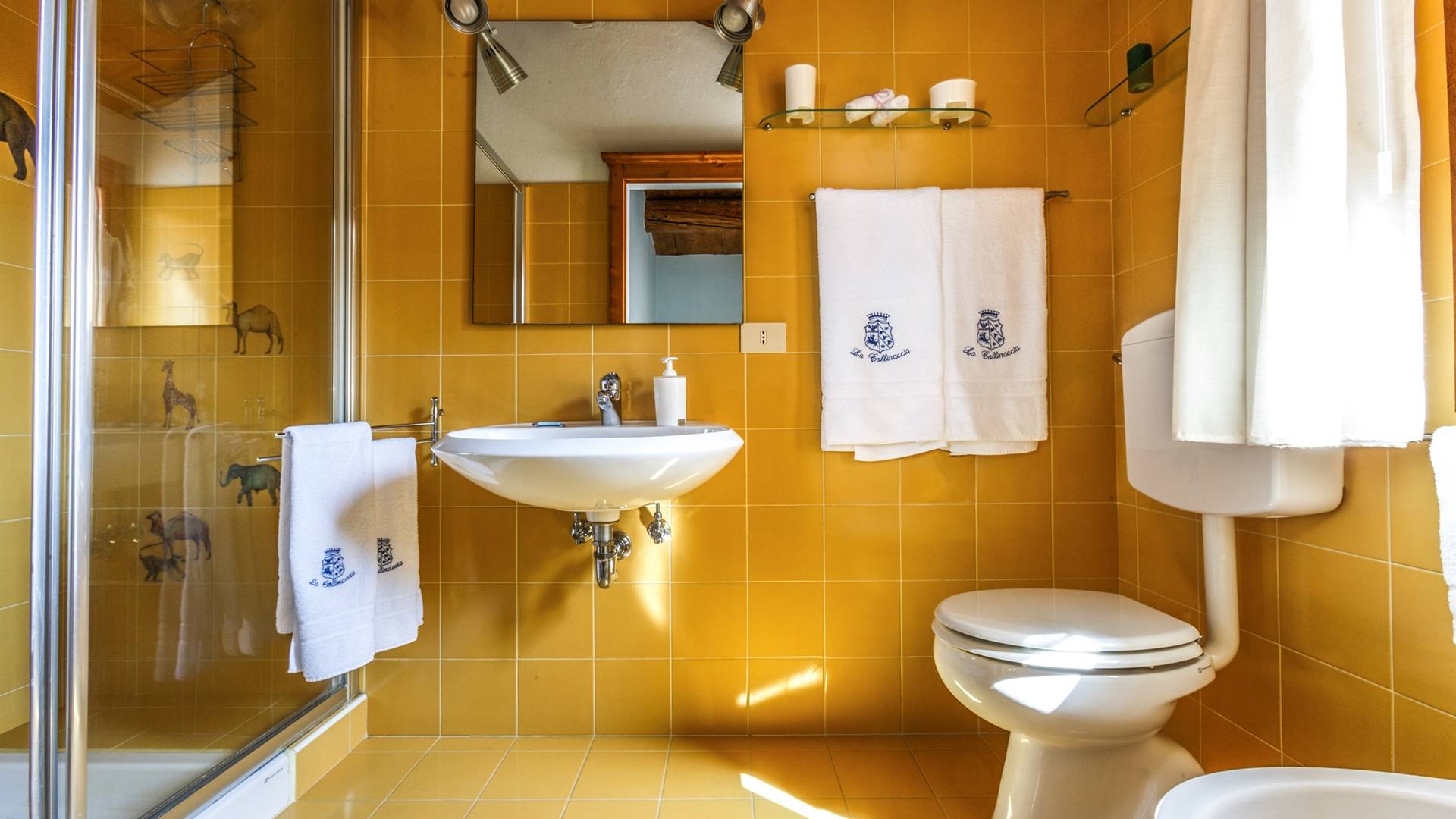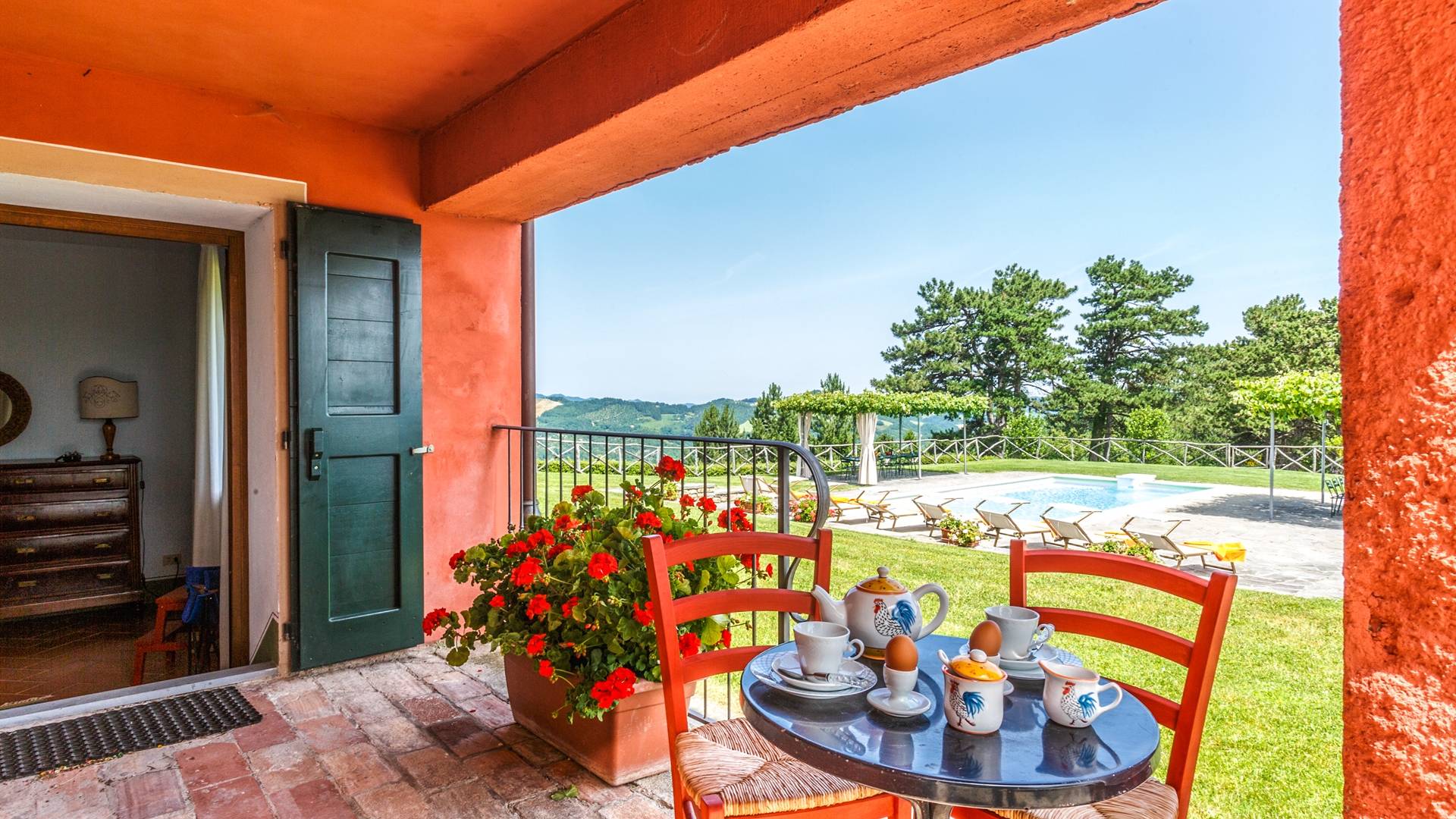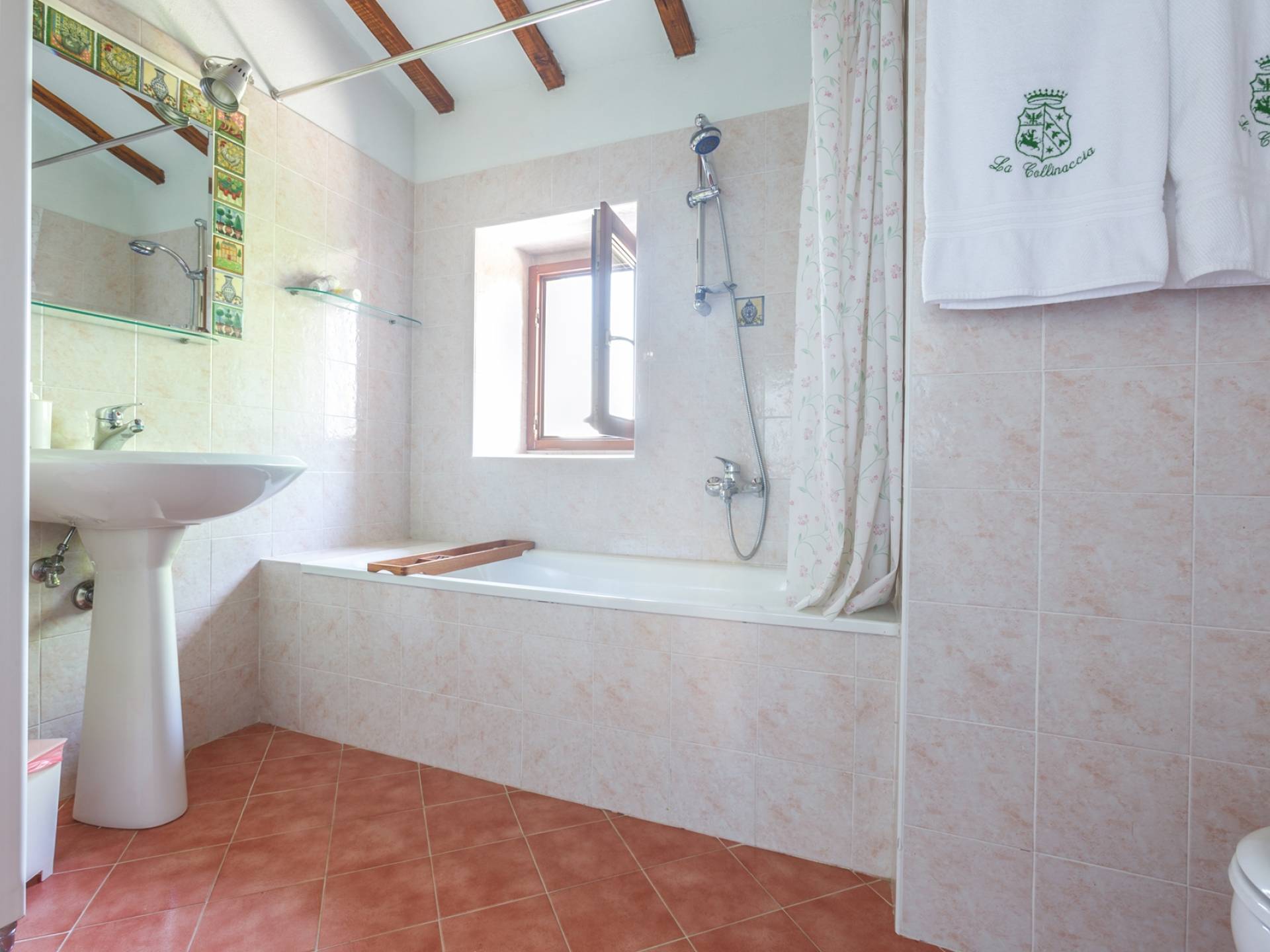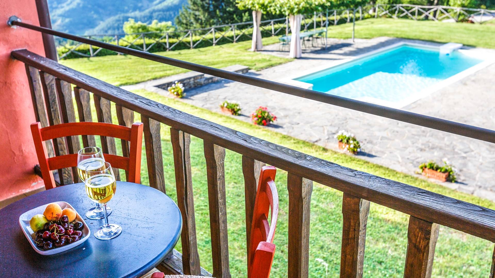 Лавандовые живые изгороди окружают отель, источая в жаркие летние дни дурманящий аромат, который смешивается с цветами герани, которые растут у входа и в некоторых проходах на открытых площадках. Расположение дома гарантирует абсолютную конфиденциальность даже от посторонних глаз. Автостоянка также незаметно скрыта. Вилла является частью отеля, где производят отличные вина, которые станут визитной карточкой каждого пребывания. Внутренне дом похож на типичную тосканскую резиденцию с терракотовыми полами, большими каминами в гостиных, а также цветными диванами и креслами. Многие номера, особенно в спальной зоне, украшены деревянными балками и обставлены старинной мебелью.