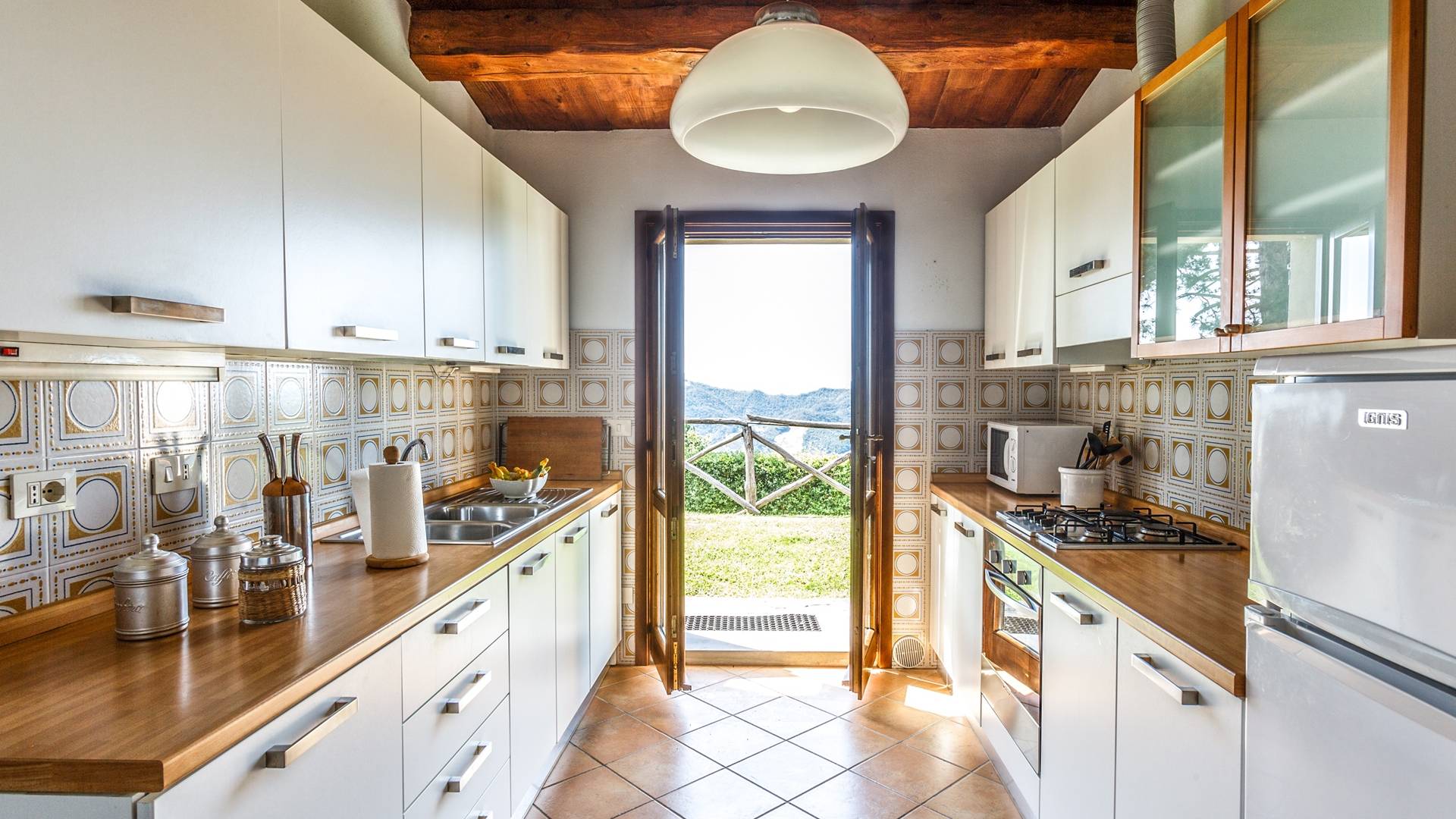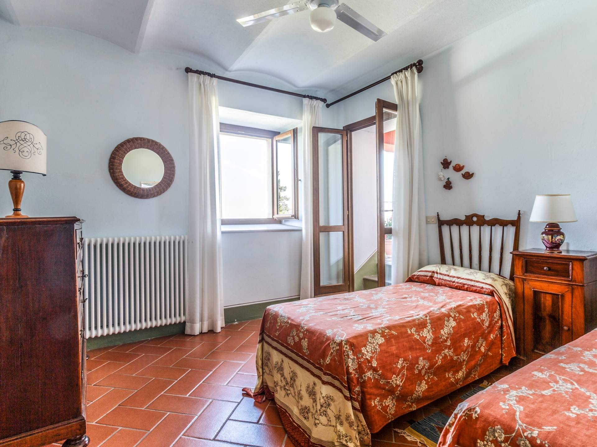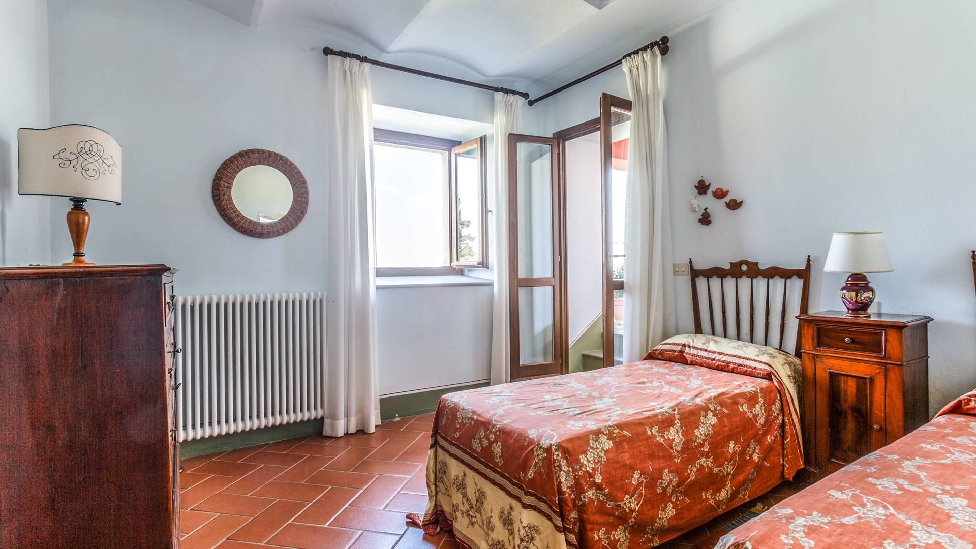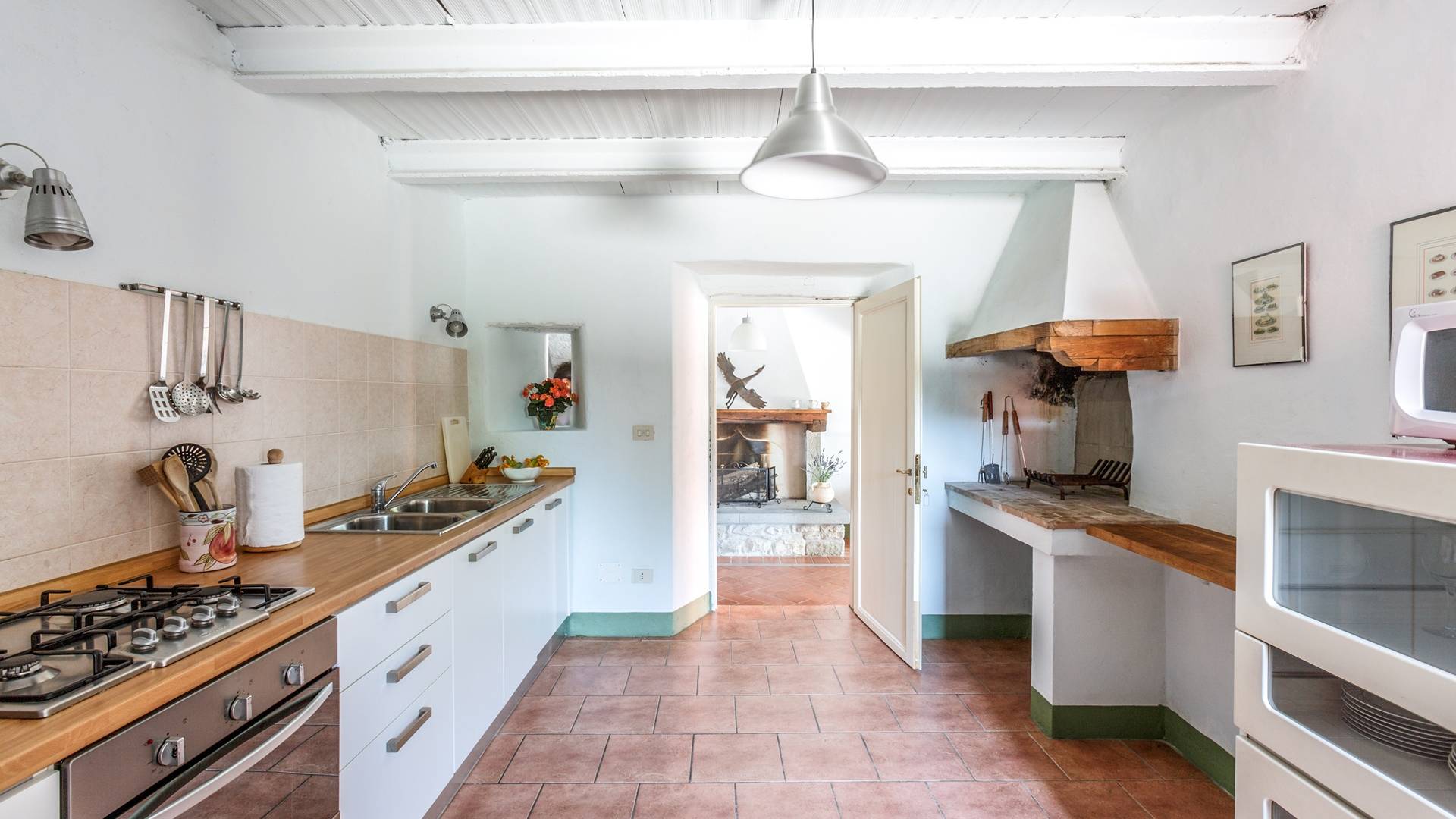 Лавандовые живые изгороди окружают отель, источая в жаркие летние дни дурманящий аромат, который смешивается с цветами герани, которые растут у входа и в некоторых проходах на открытых площадках. Расположение дома гарантирует абсолютную конфиденциальность даже от посторонних глаз. Автостоянка также незаметно скрыта. Вилла является частью отеля, где производят отличные вина, которые станут визитной карточкой каждого пребывания. Внутренне дом похож на типичную тосканскую резиденцию с терракотовыми полами, большими каминами в гостиных, а также цветными диванами и креслами. Многие номера, особенно в спальной зоне, украшены деревянными балками и обставлены старинной мебелью.
