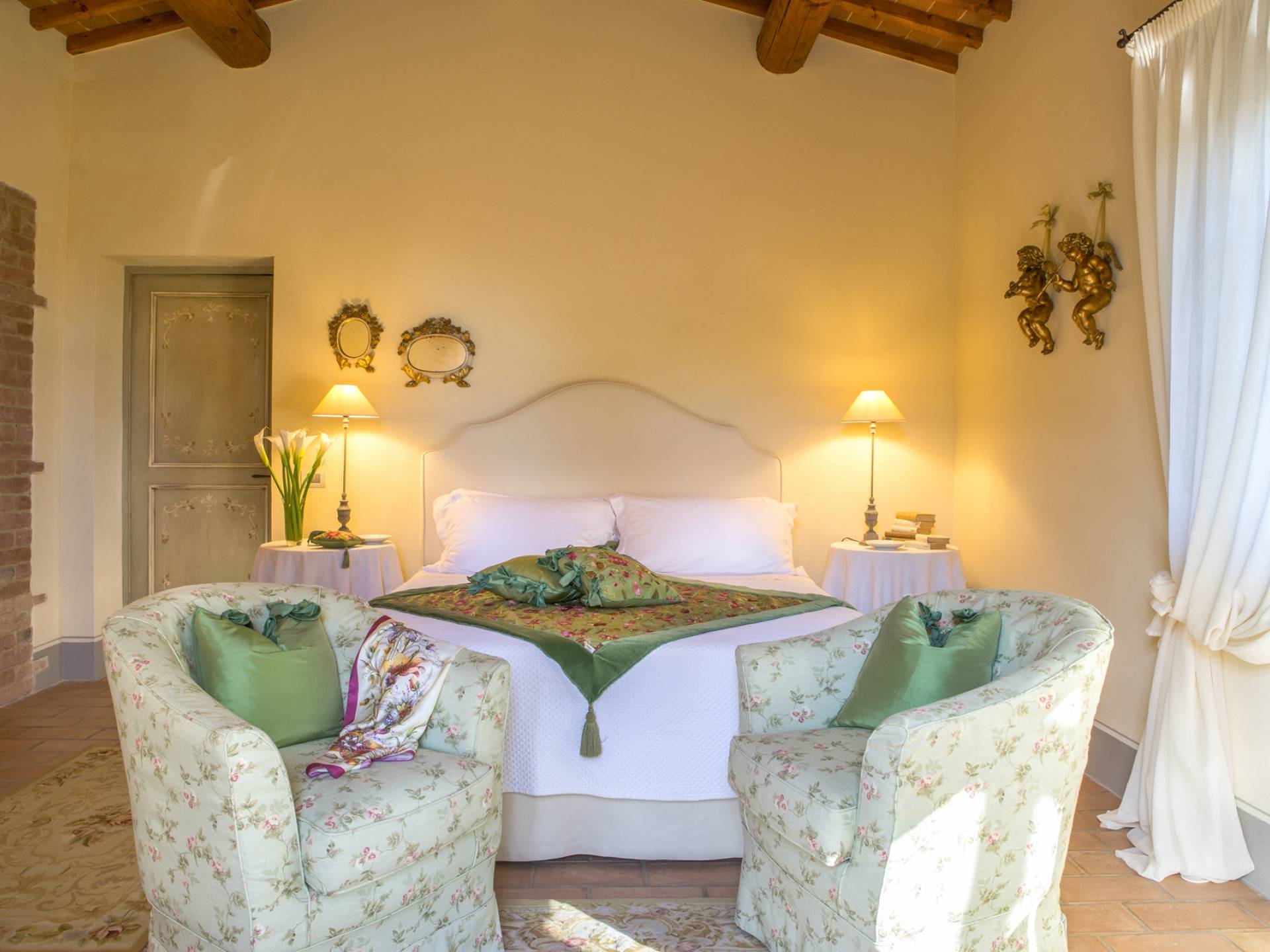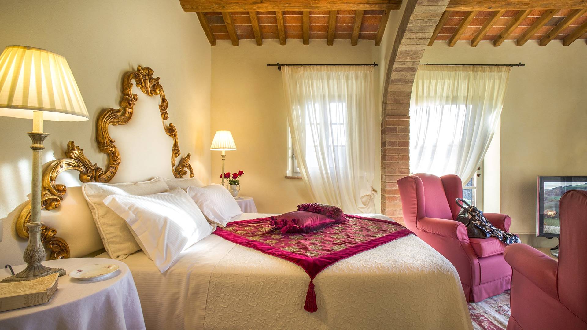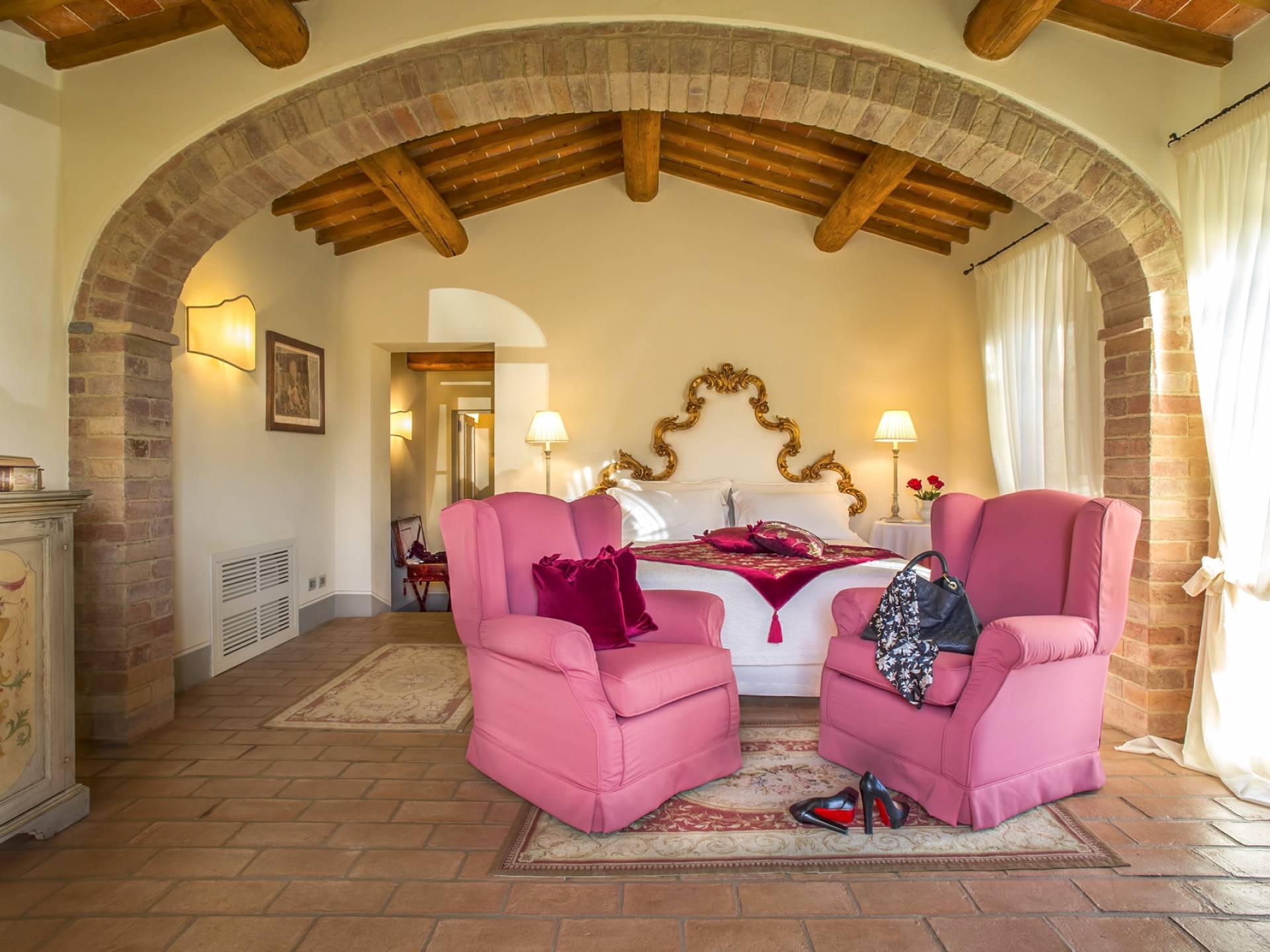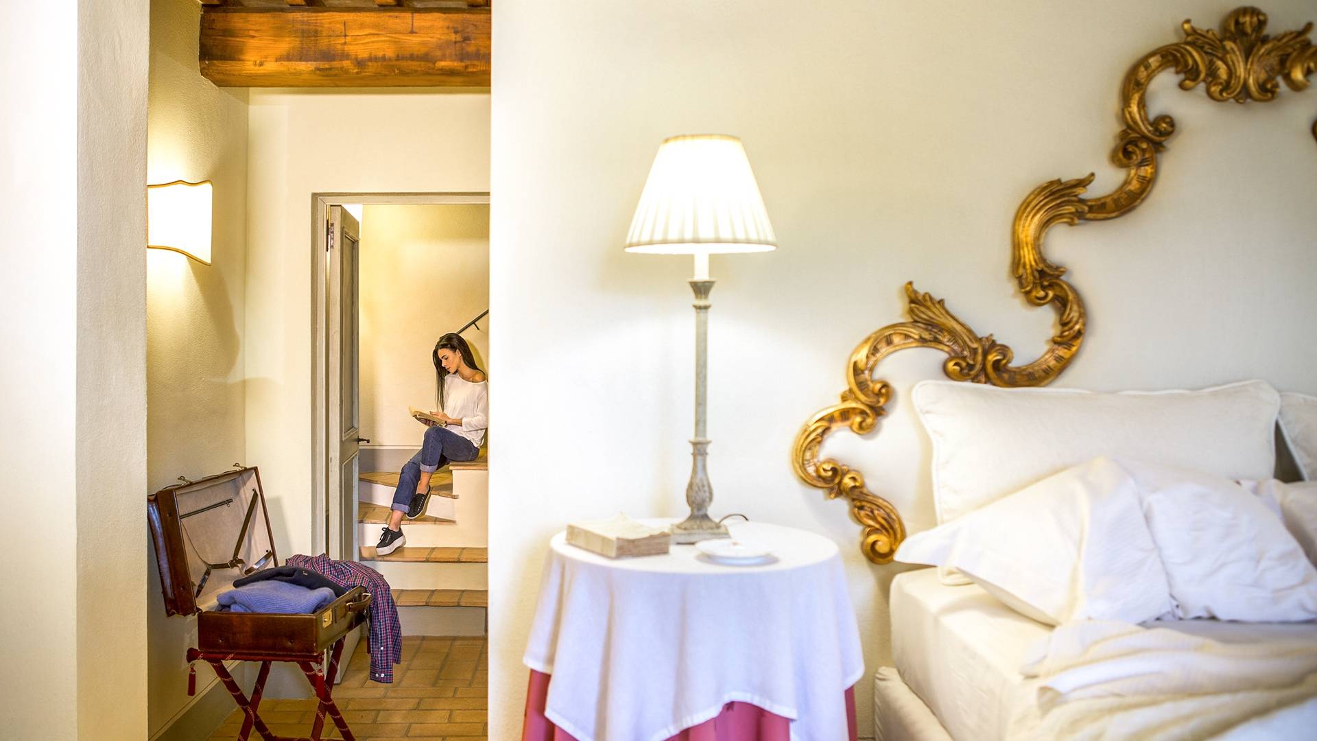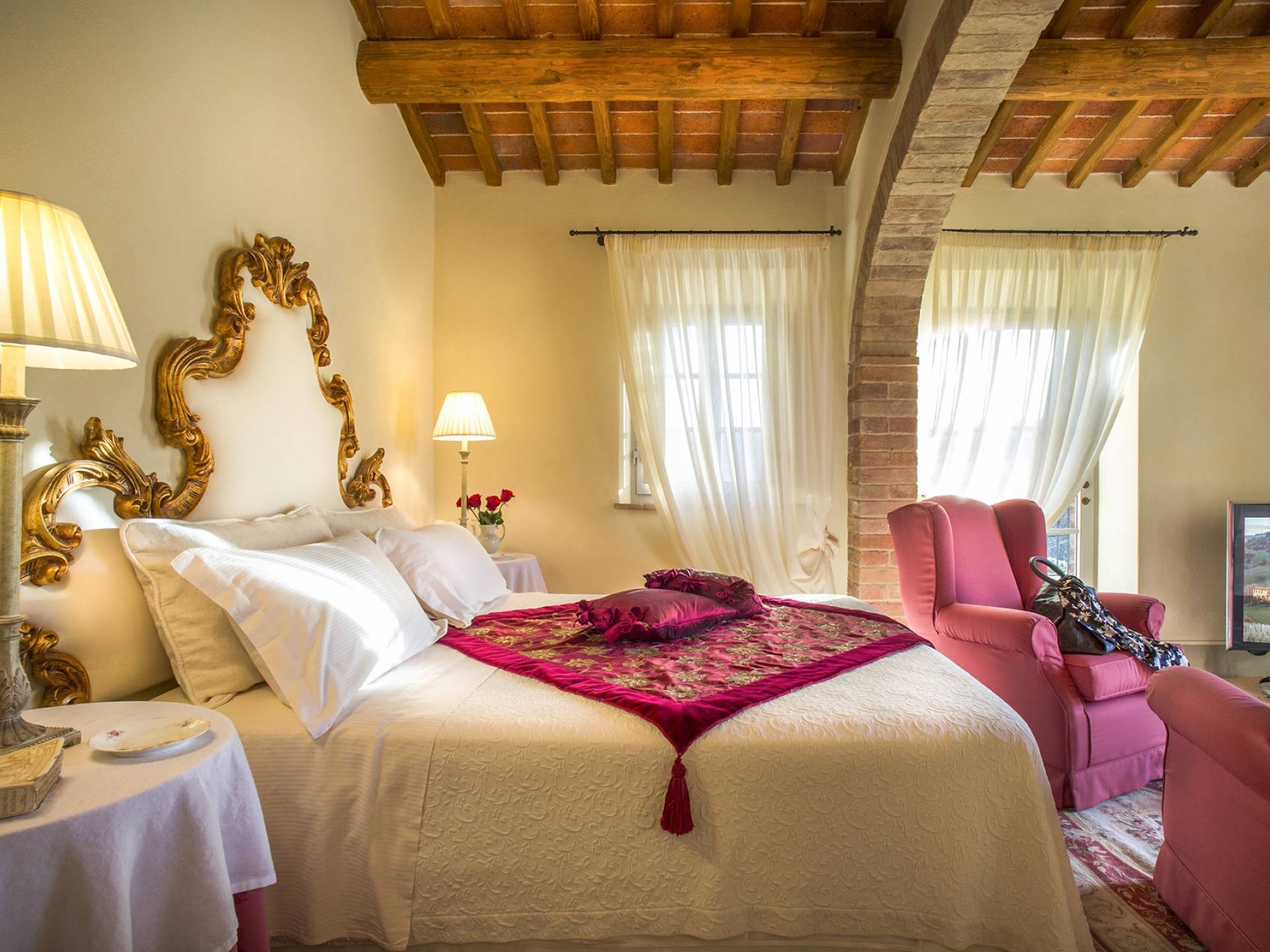 Люкс La Ghiandaia с простым и элегантным декором, антикварной мебелью и небесно-голубыми оттенками создает расслабляющую атмосферу. Ванная комната очень уютная и предлагает гостям большой душ из хрусталя и камня, джакузи с хромотерапией. И последнее, но не менее важное: люкс Le Tortore выполнен в нежном розовом цвете, который характеризует этот люкс, а антикварная мебель делает его романтичным и интимным. Из окон открывается вид на долину и холмы. В ванной комнате есть душевая кабина из хрусталя, гидромассажная ванна с хромотерапией.