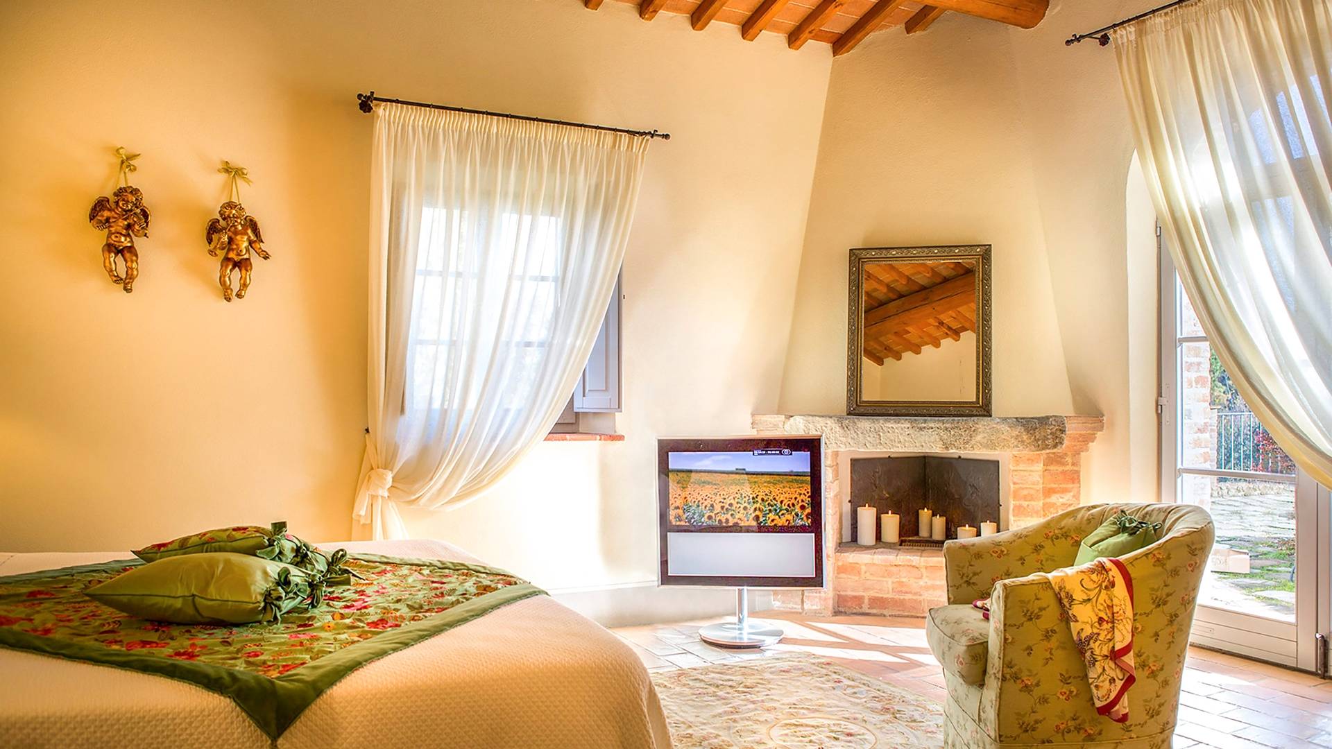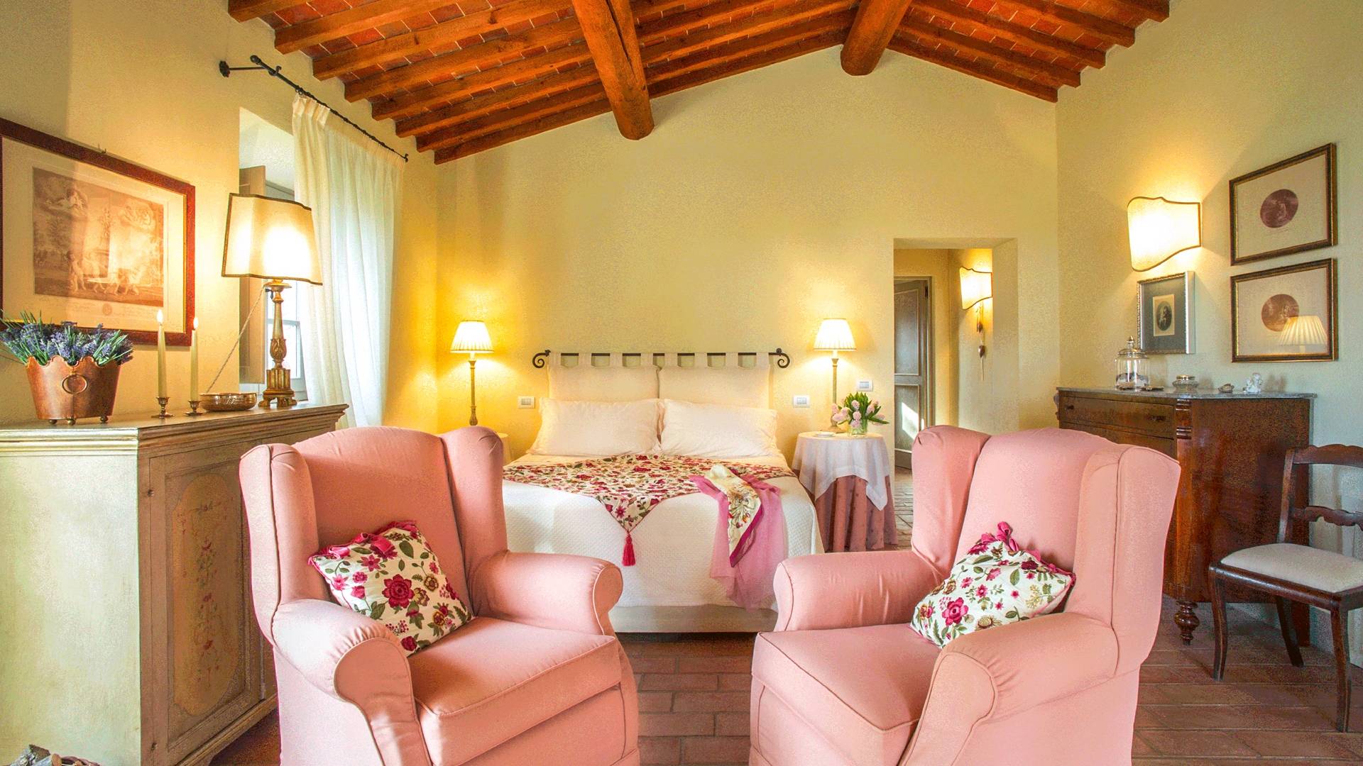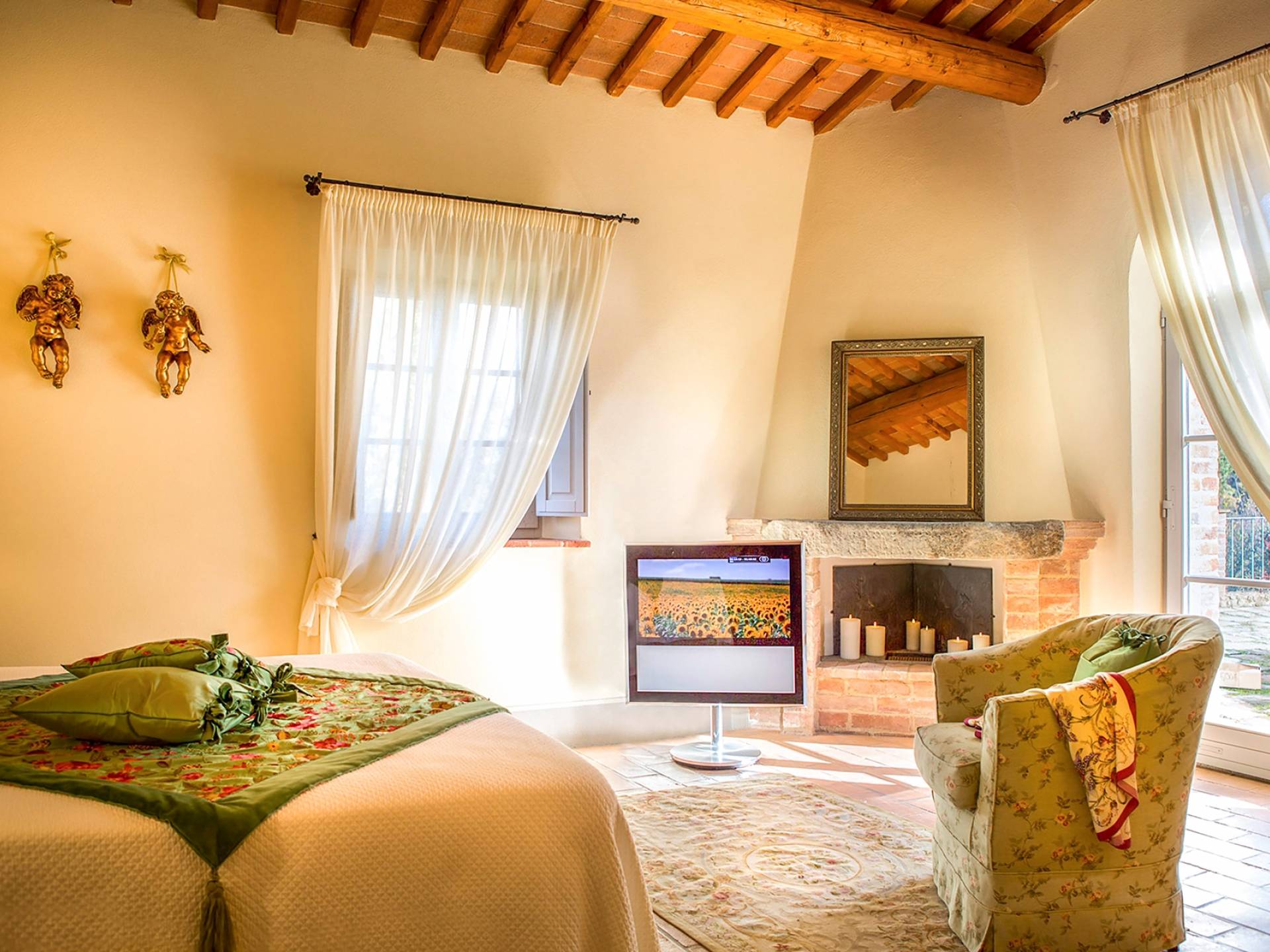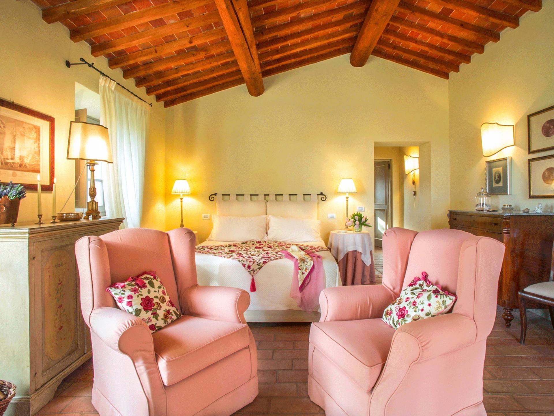 Люкс La Ghiandaia с простым и элегантным декором, антикварной мебелью и небесно-голубыми оттенками создает расслабляющую атмосферу. Ванная комната очень уютная и предлагает гостям большой душ из хрусталя и камня, джакузи с хромотерапией. И последнее, но не менее важное: люкс Le Tortore выполнен в нежном розовом цвете, который характеризует этот люкс, а антикварная мебель делает его романтичным и интимным. Из окон открывается вид на долину и холмы. В ванной комнате есть душевая кабина из хрусталя, гидромассажная ванна с хромотерапией.