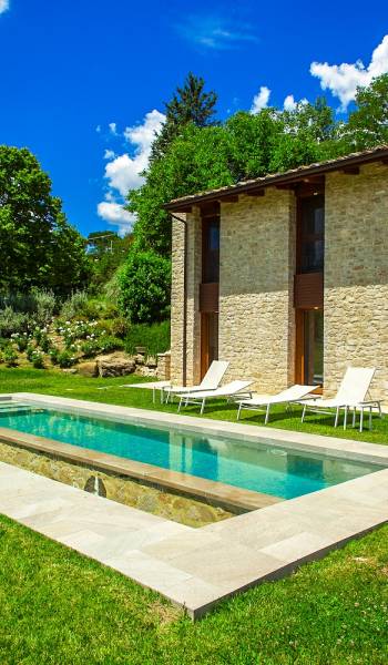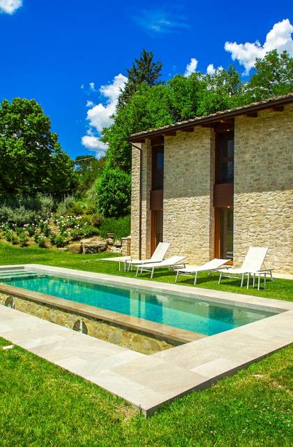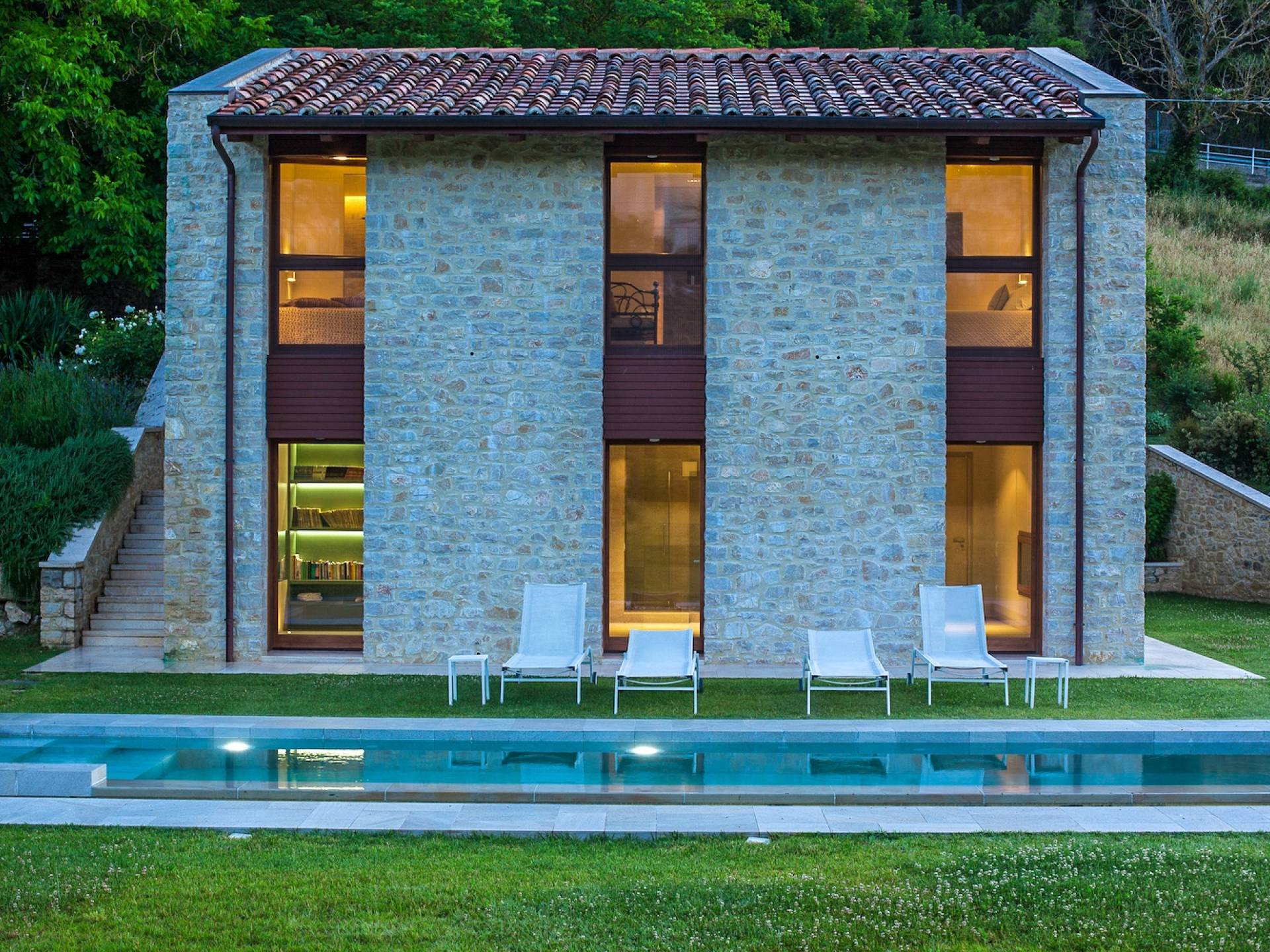 Результат искусного ремонта, проведенного на старинной мельнице, которая смогла интерпретировать геометрию древних домов на склоне холма, вставив ее в почтительный, но новаторский ключ к контексту, этот древний, но в то же время, Современная очаровательная резиденция берет из прошлого очень характерные черты, такие как фасады из песчаника, деревянные архитравы, черепица, дополненные интерьером с уникальным дизайном, который умеет быть одновременно футуристическим и гостеприимным.