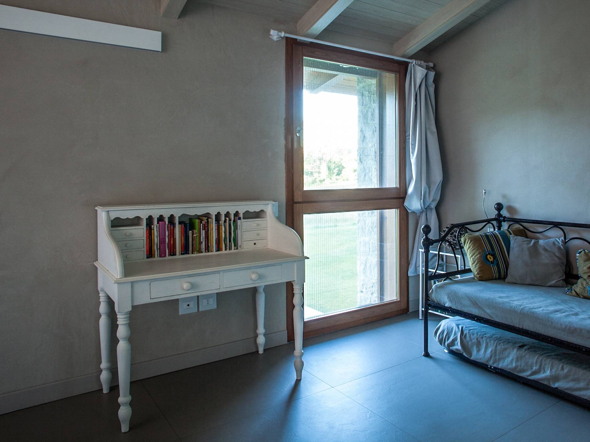 Архитектурный выбор, на котором было основано восстановление этой древней мельницы, основан на самых передовых критериях экологичного строительства и самостоятельного производства, на строгом уважении к ценности ландшафта и на использовании возобновляемых источников энергии. Память о genius loci, которыми здесь всегда дышали, также была мудро сохранена: водяная мельница и подъездная дорога к реке, которые еще несколько десятилетий назад были единственным ресурсом для местных жителей, сегодня являются дополнительной достопримечательностью этого необычного дома. . За садом и полем люцерны, окружающим дом, ухаживают естественным образом, без использования химикатов.