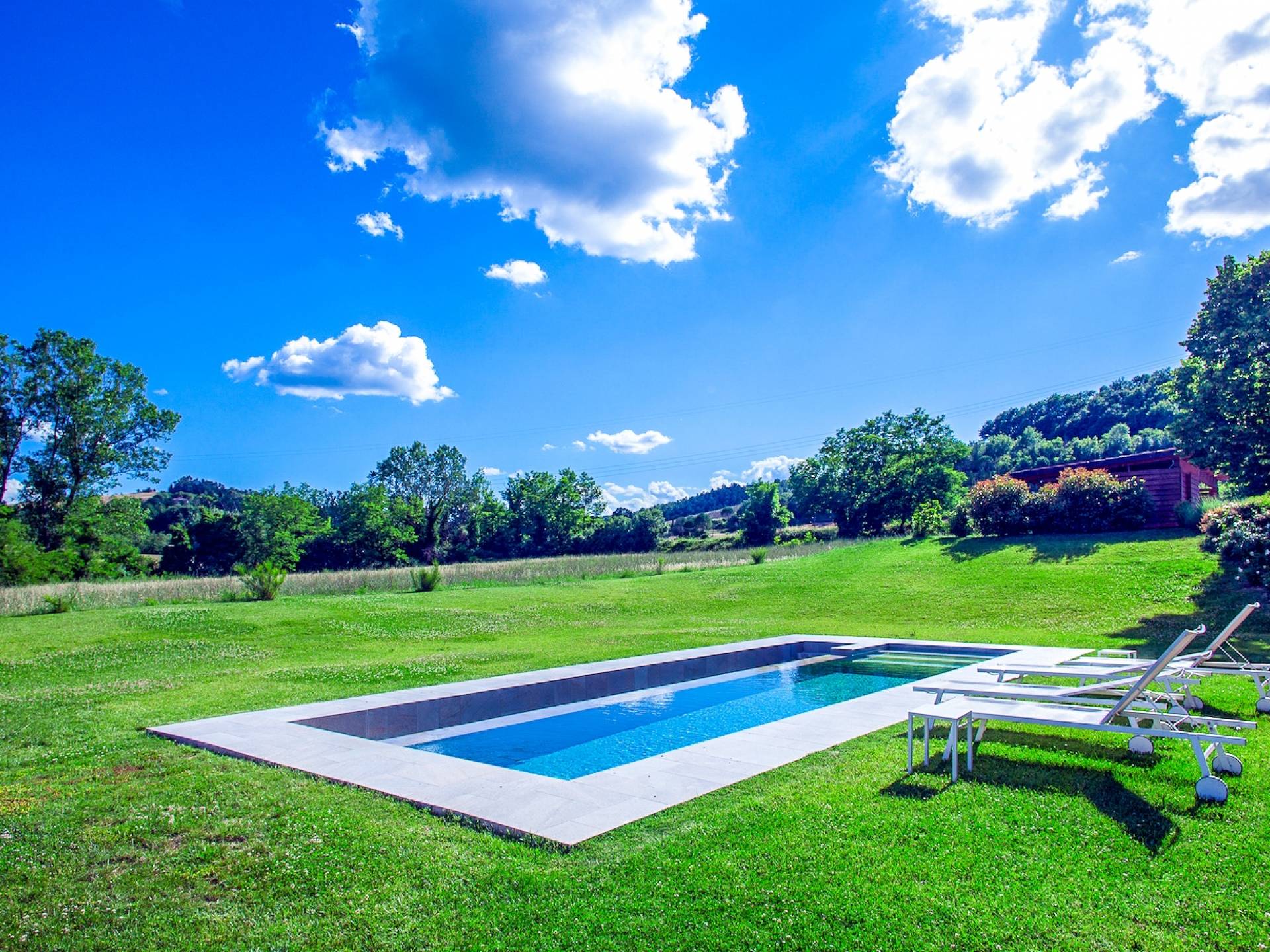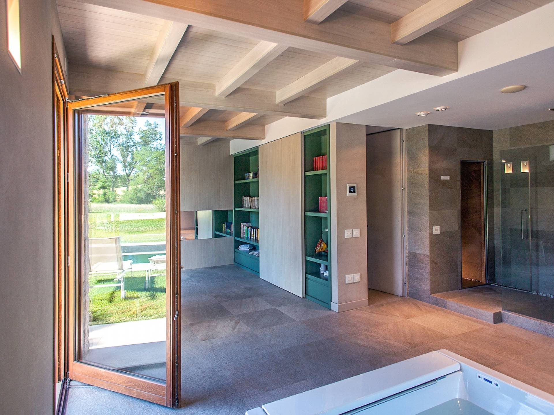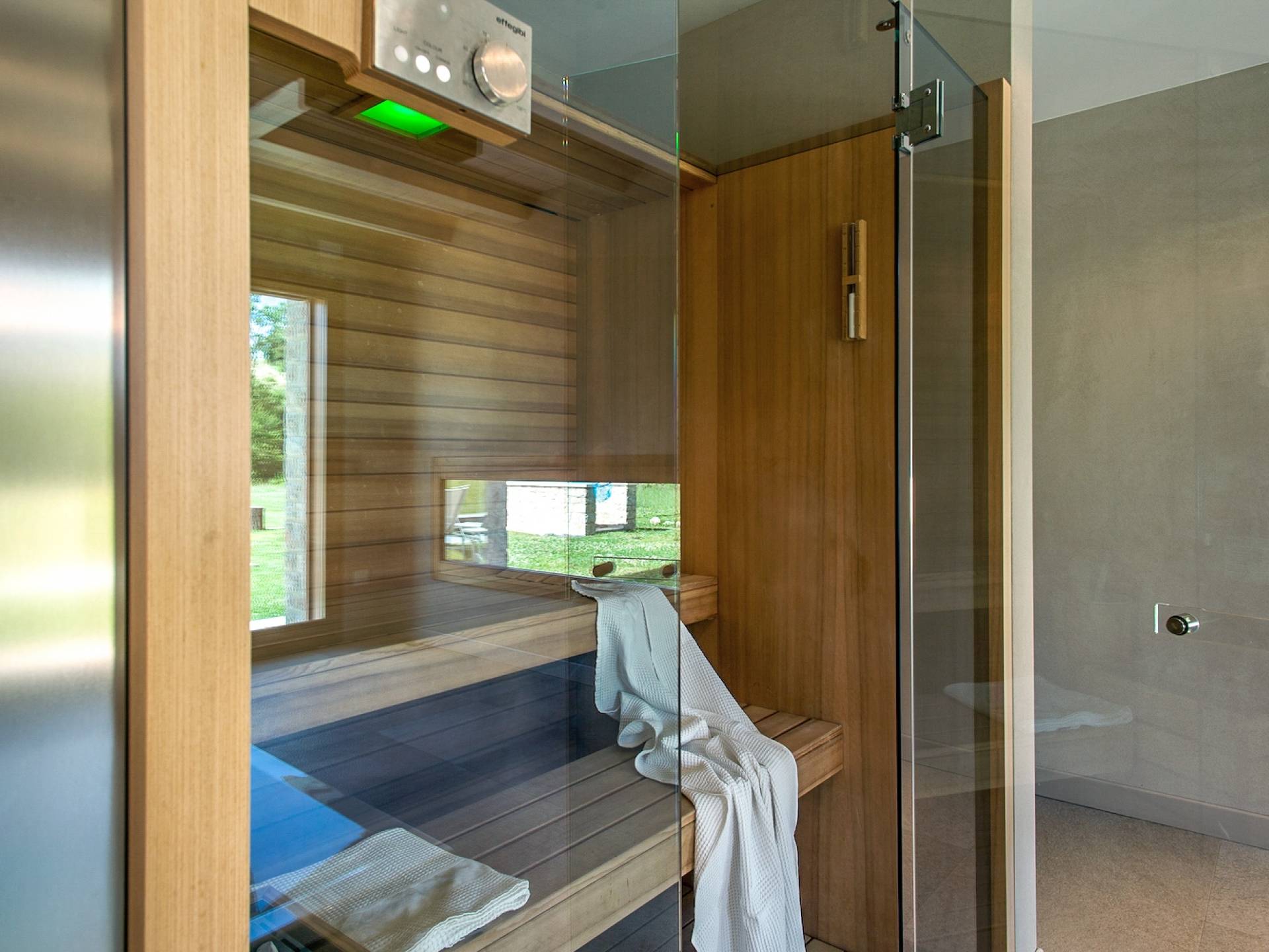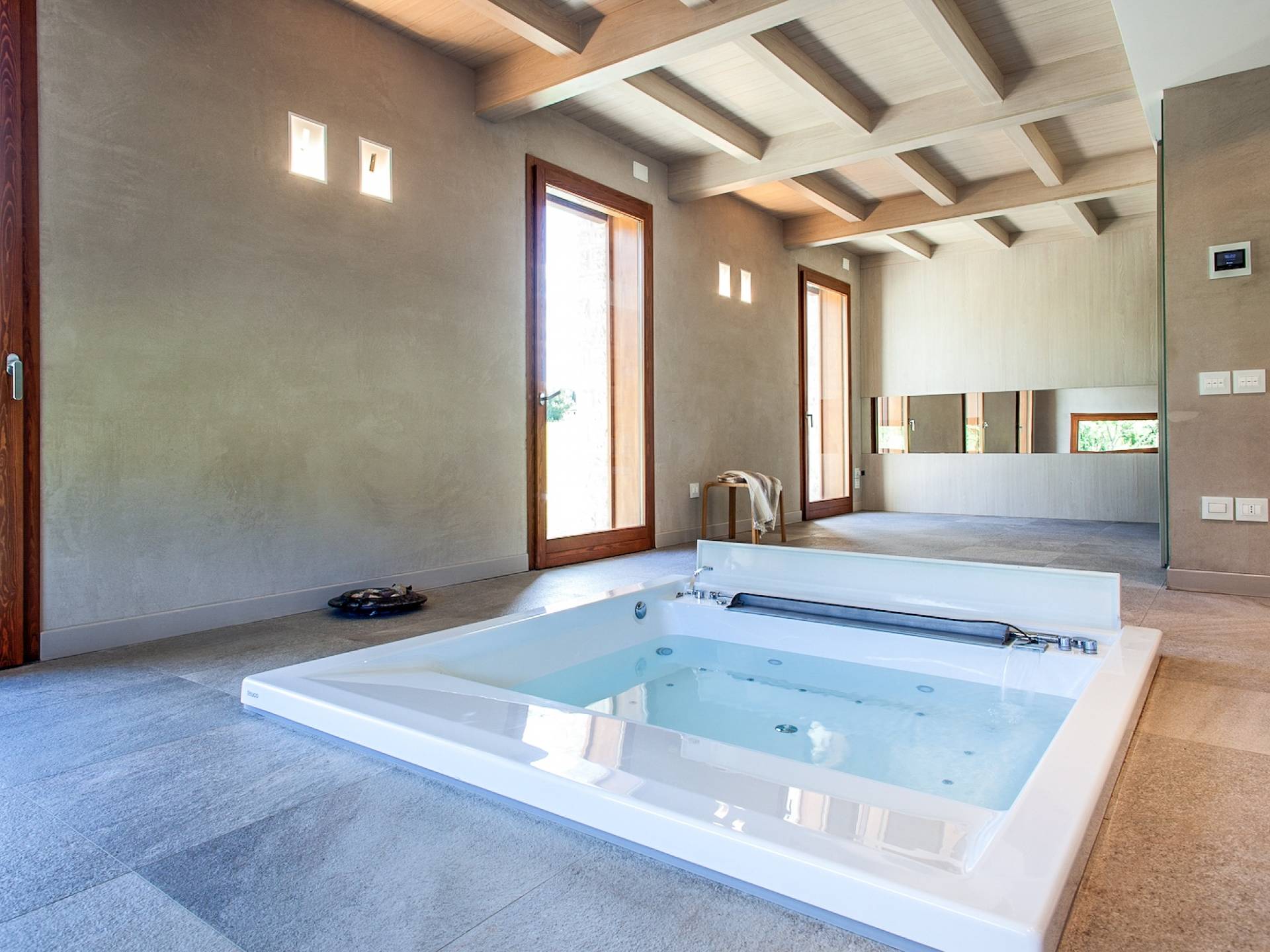 На первом этаже, однако, развивается оздоровительный центр с джакузи, сауной, хаммамом, хромотерапией и зоной отдыха. На вилле есть Wi-Fi, видеодомофон и расширенные услуги домашней автоматизации. Снаружи есть бассейн с подогревом и лечебной дорожкой, идеально вписанный в зеленый сад, расположенный на холме. Открытое пространство позволяет вам полежать на одном из шезлонгов или немного погулять по дому, или, опять же, заняться йогой или заняться различными видами спорта на открытом воздухе. На вилле также есть красивый внутренний дворик с диванами, площадка для барбекю на огороженном участке площадью около двух гектаров.