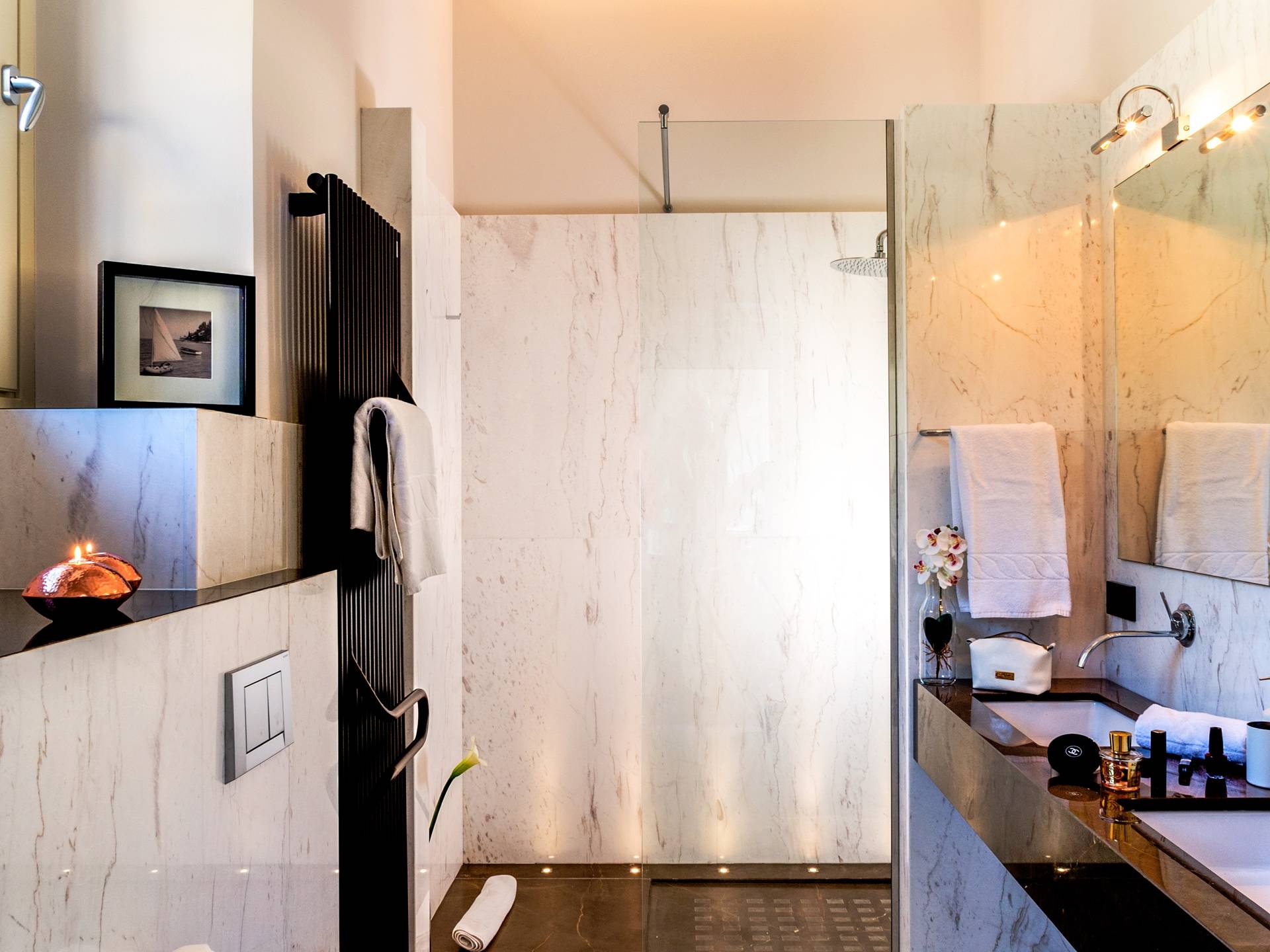 Его залы встретят вас наилучшим образом, рассказывая об истории уникального места, а также о тех, кто хотел построить эти пространства, о баронах Милдмей. Благородный герб семьи изображен на очаровательной мозаике на большой лоджии перед главной террасой. В 1950-х годах виллу купила семья нынешних владельцев, которые менее десяти лет назад начали капитальный ремонт. Вмешательство, проведенное с любовью и страстью к красивым вещам, идеально соединило исторические и классические элементы виллы с новым, современным и функциональным, превратив эту благородную резиденцию в современный дом со всеми видами услуг и комфорта. , в том числе оздоровительный центр с сауной, турецкой баней и крытым бассейном.