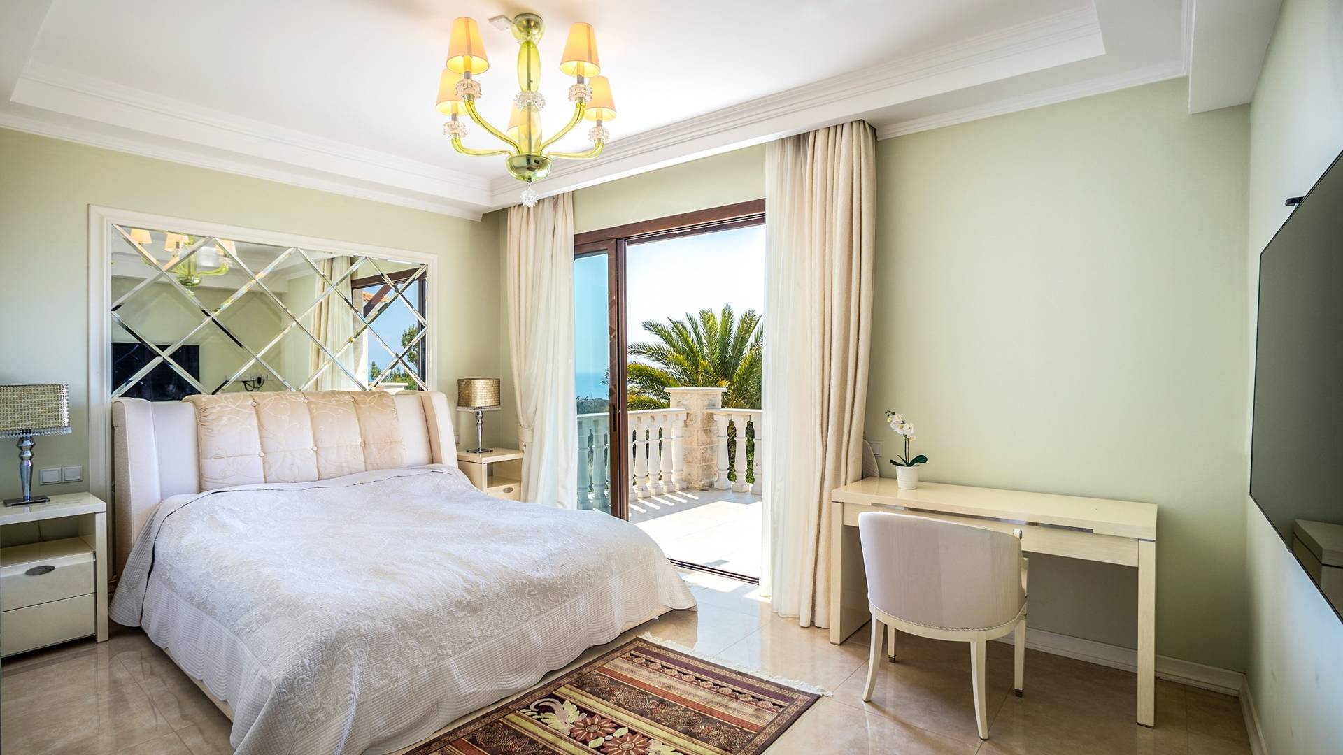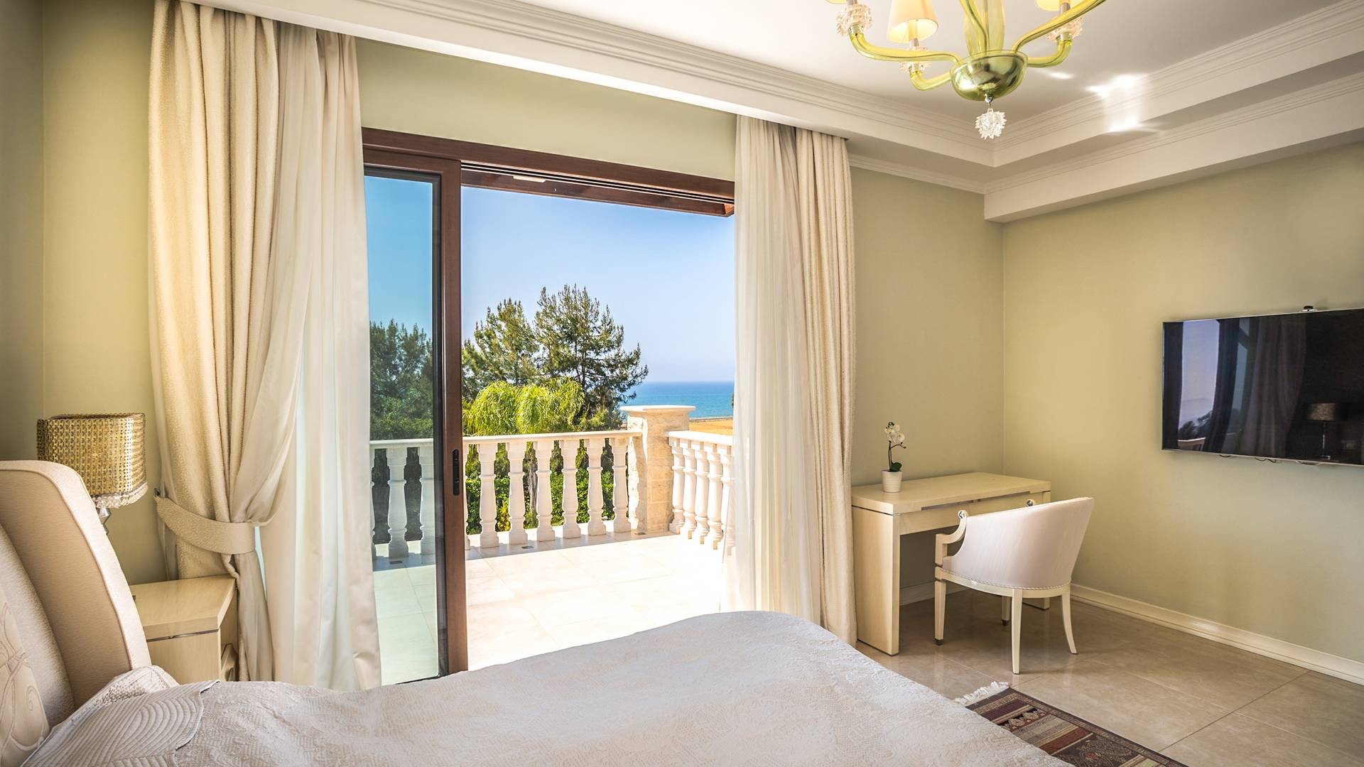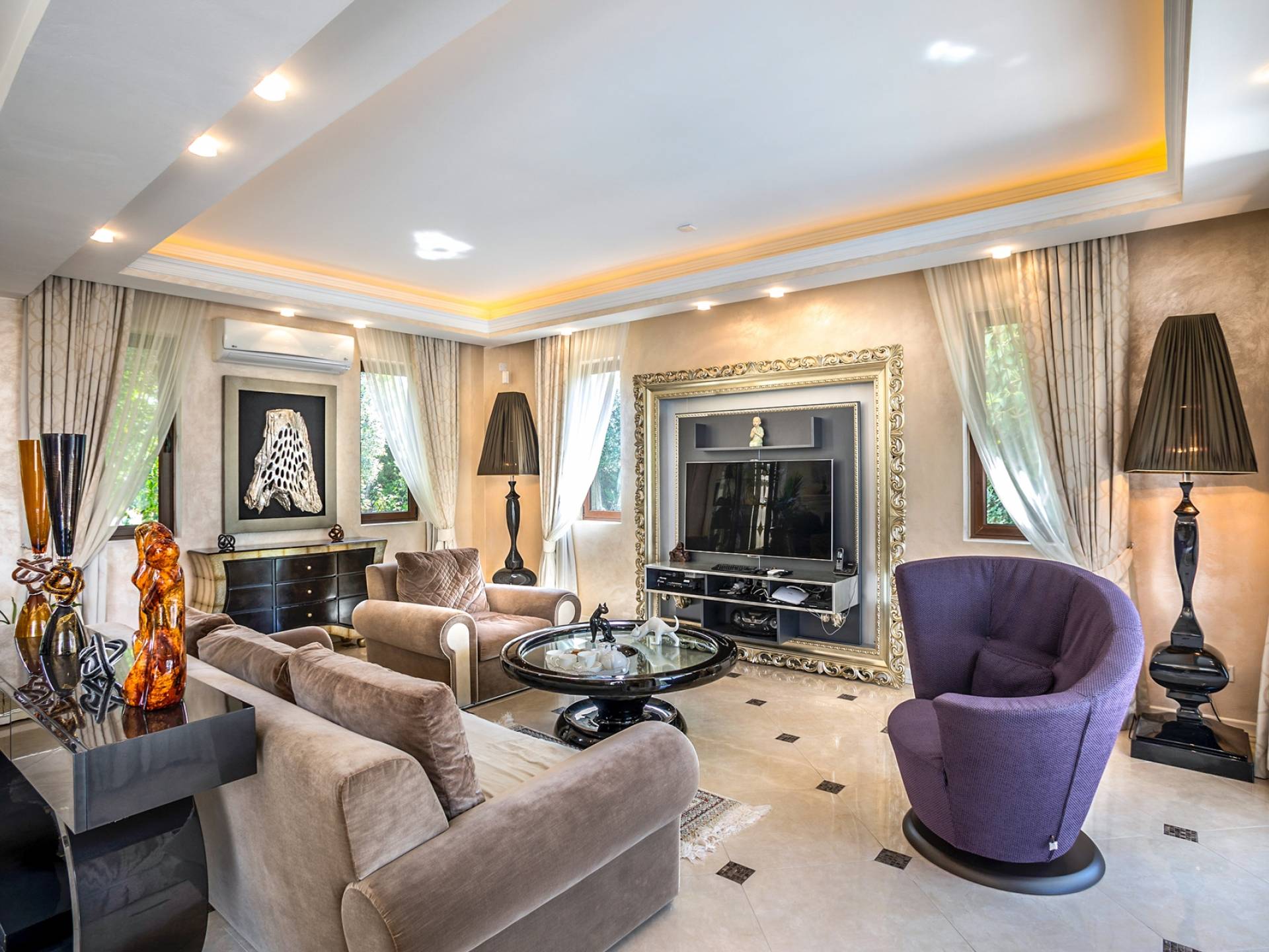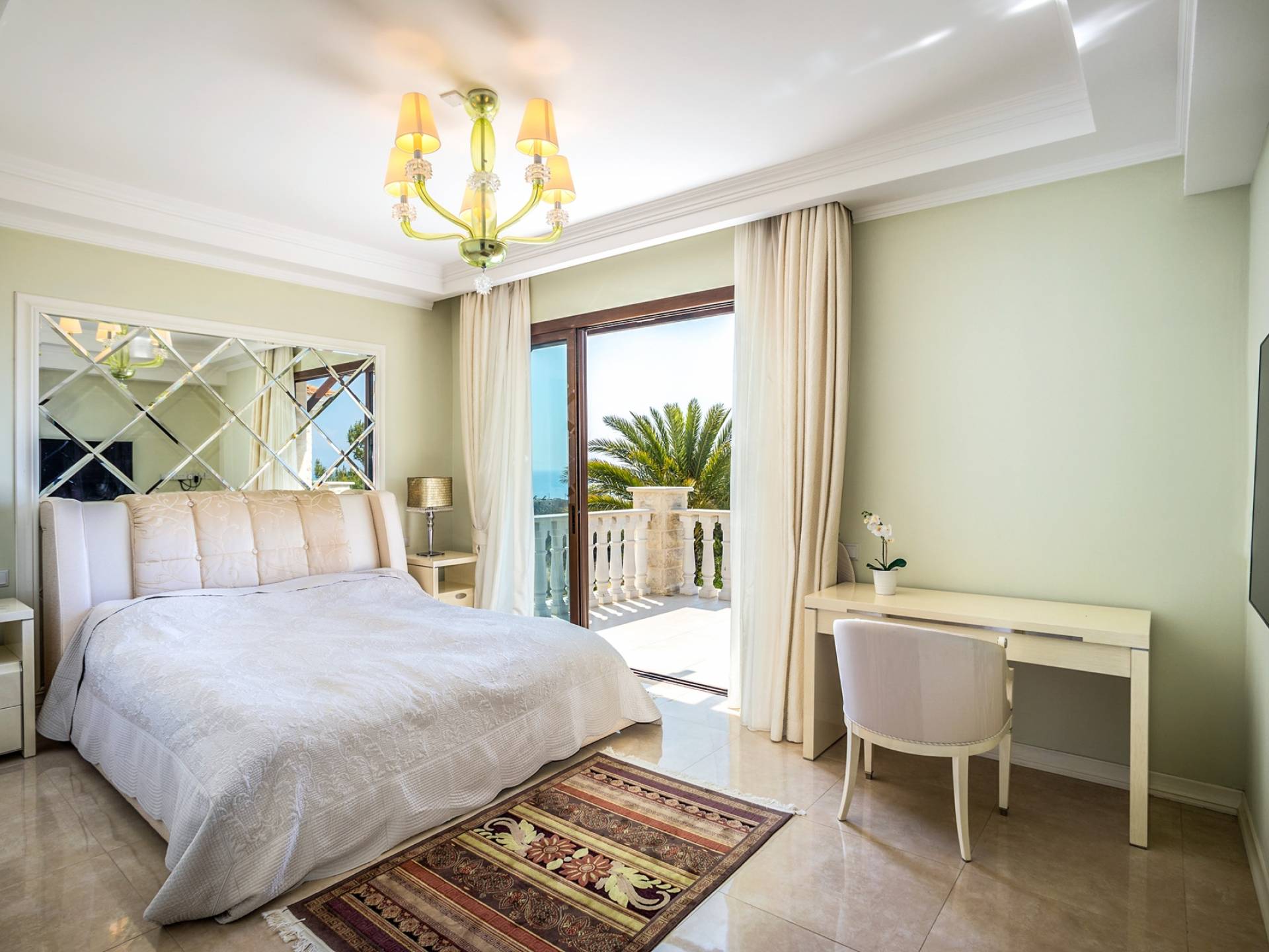 Итальянская кухня виллы оснащена высококлассной немецкой посудой, стаканами, столовыми приборами, различной кухонной утварью, винным холодильником, современной кухонной техникой. В спальнях и ванных комнатах виллы всегда новое свежее постельное белье и полотенца высочайшего качества, новейшая сантехника, кондиционеры и полы с подогревом, высокоскоростной WiFi, спутниковое и кабельное телевидение. Вилла оборудована итальянской мебелью марки «Fendi», коллекционными скульптурными композициями KPM (Германия), фарфором и бронзой.