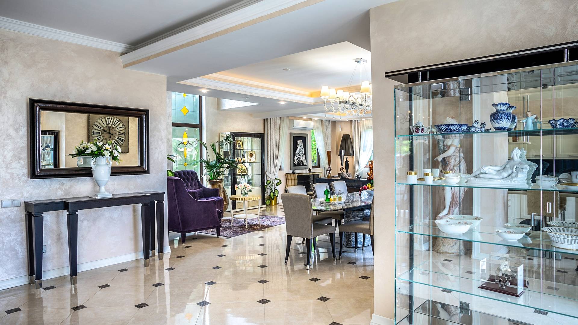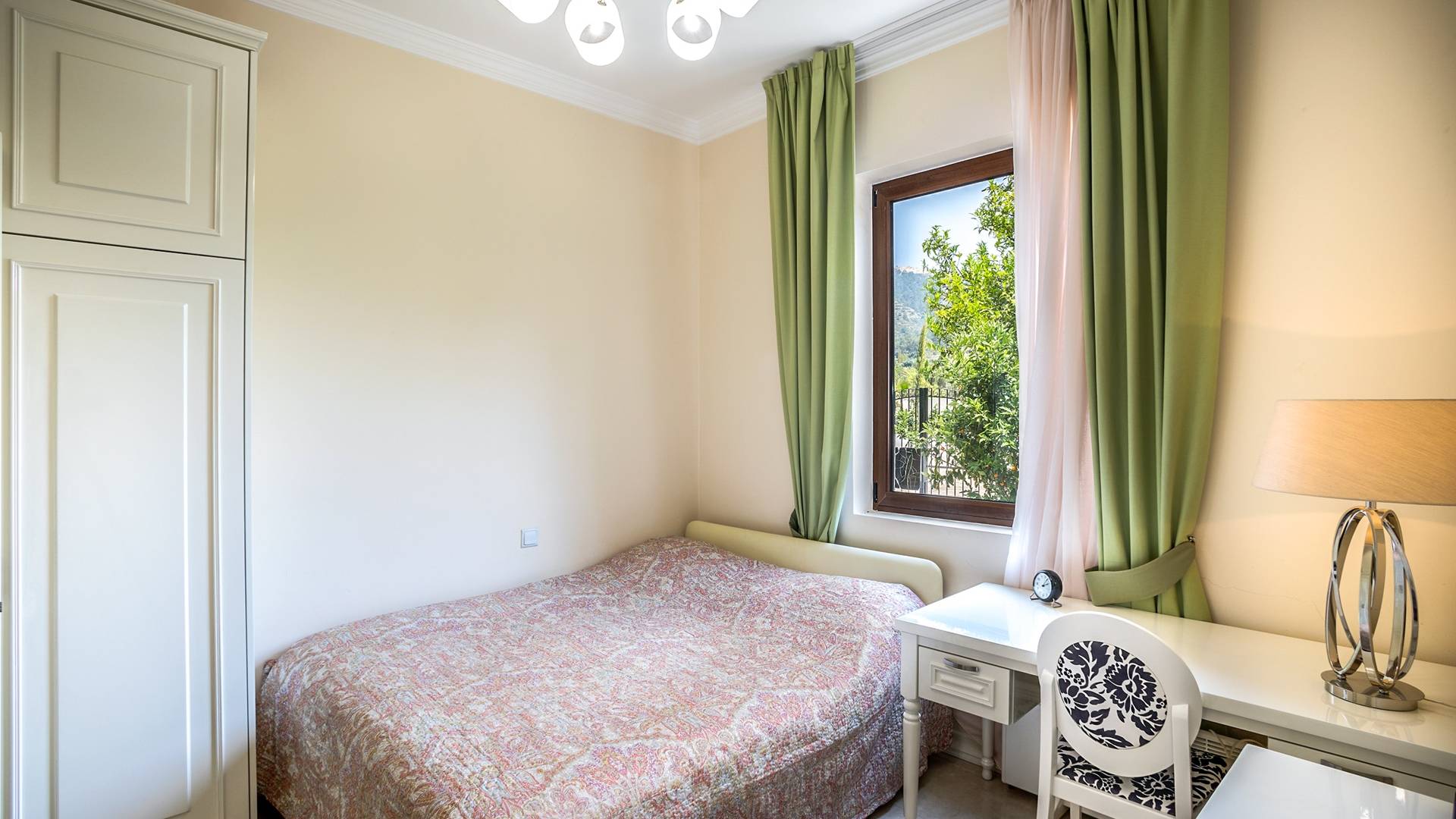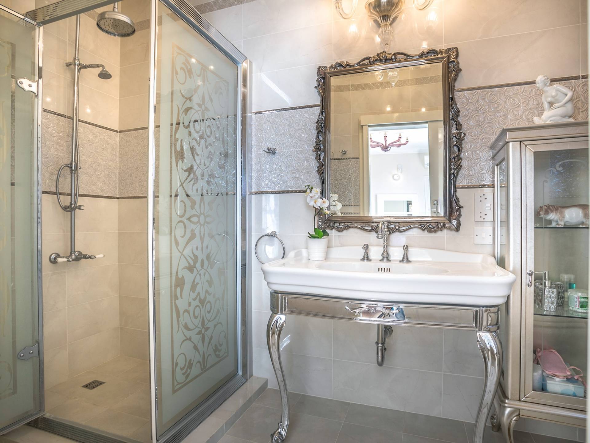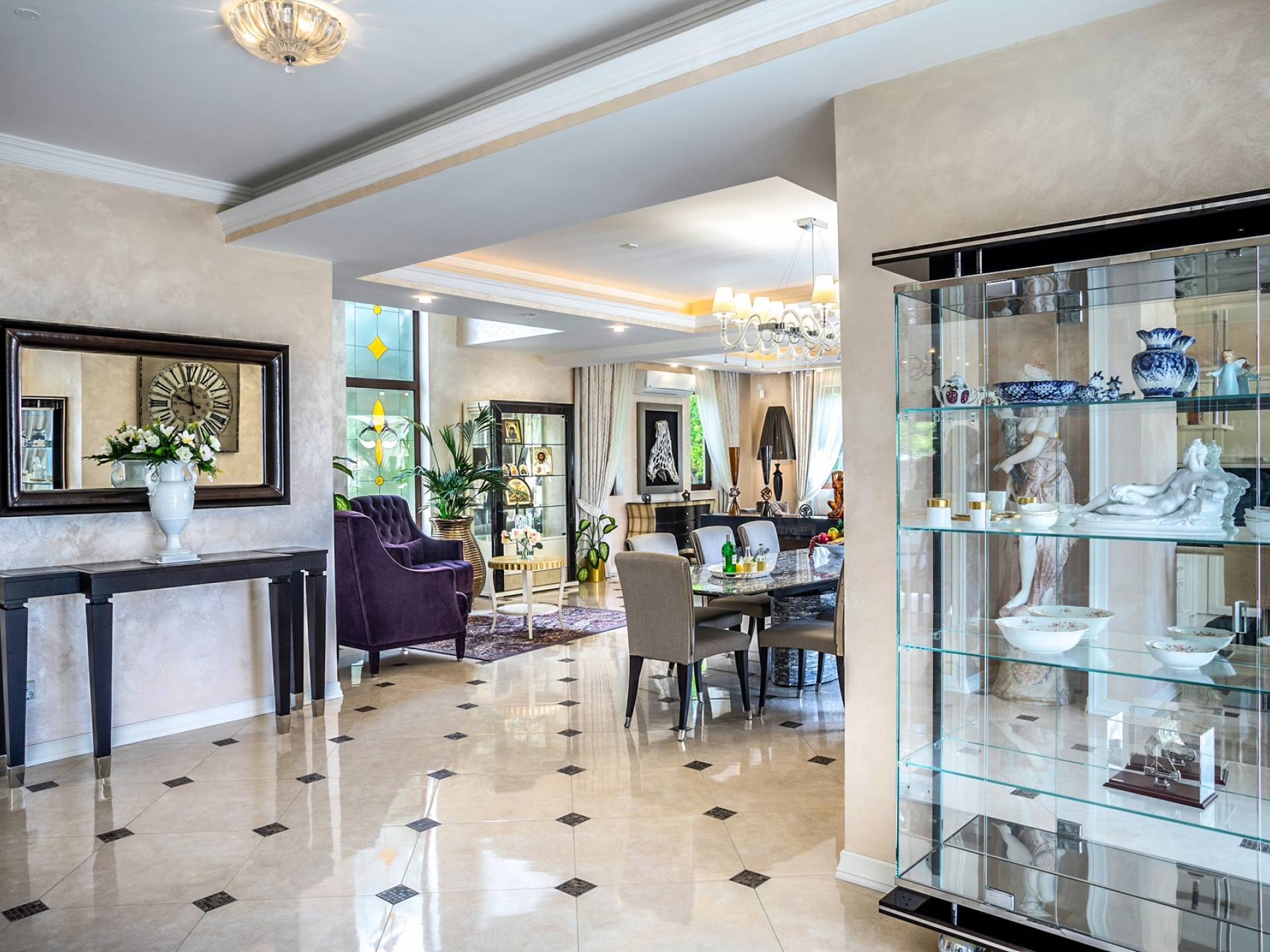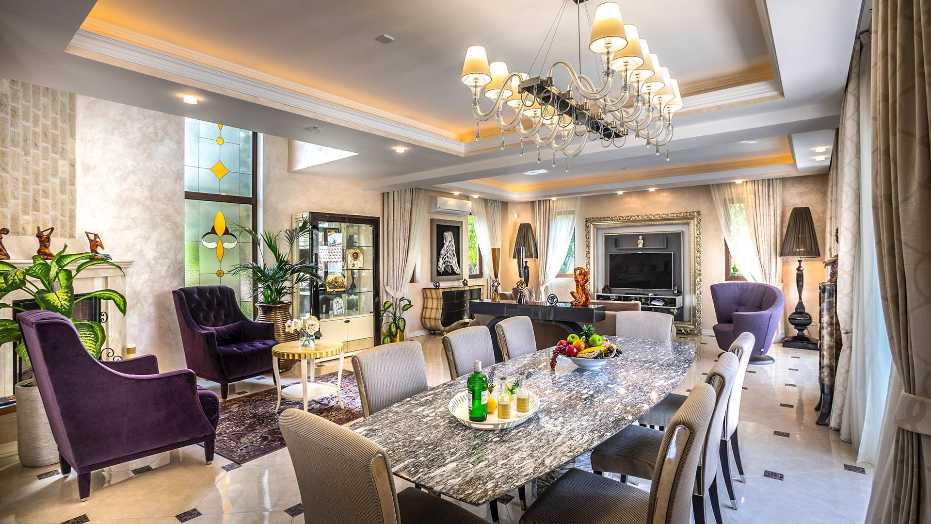 Итальянская кухня виллы оснащена высококлассной немецкой посудой, стаканами, столовыми приборами, различной кухонной утварью, винным холодильником, современной кухонной техникой. В спальнях и ванных комнатах виллы всегда новое свежее постельное белье и полотенца высочайшего качества, новейшая сантехника, кондиционеры и полы с подогревом, высокоскоростной WiFi, спутниковое и кабельное телевидение. Вилла оборудована итальянской мебелью марки «Fendi», коллекционными скульптурными композициями KPM (Германия), фарфором и бронзой.