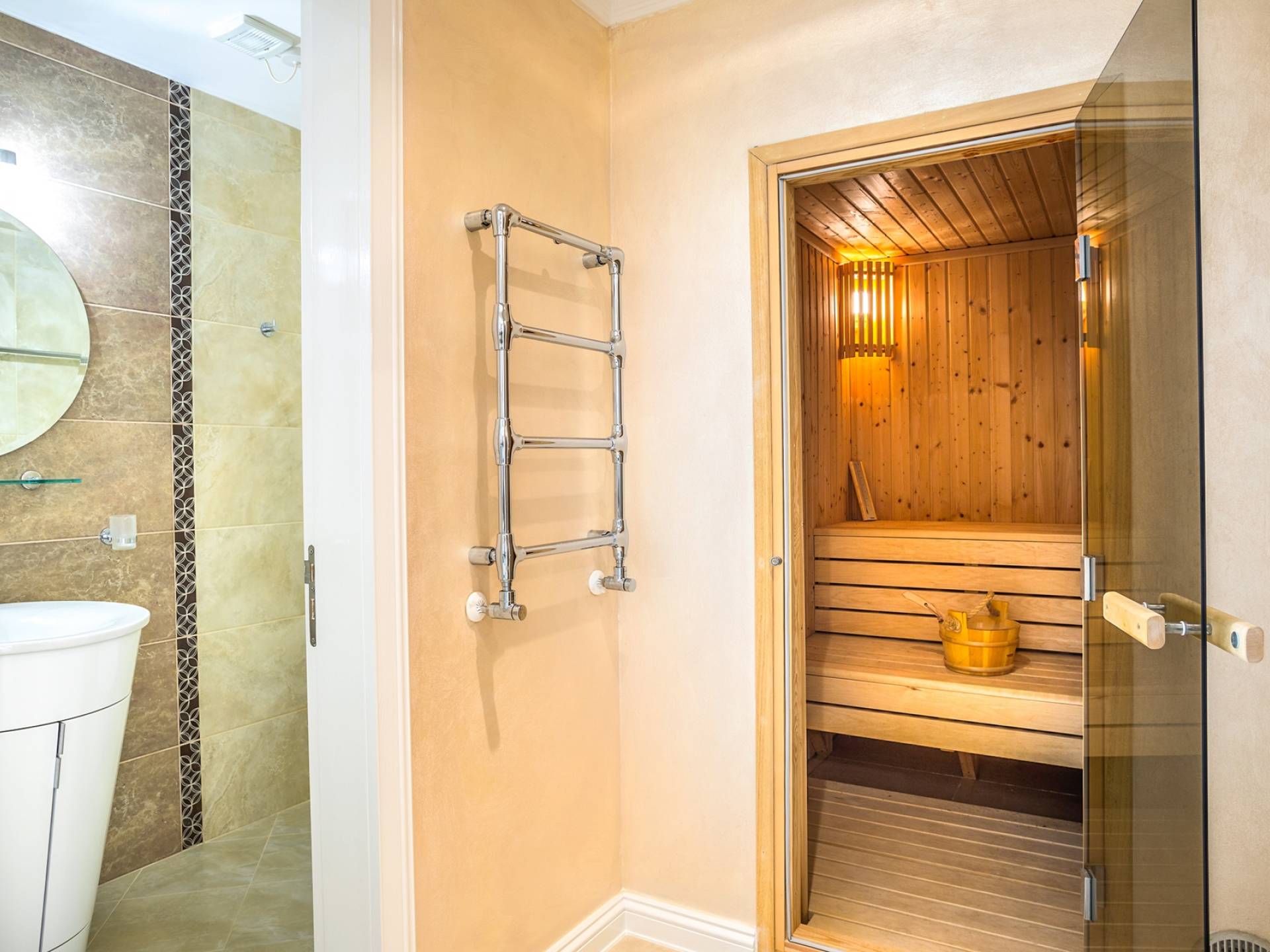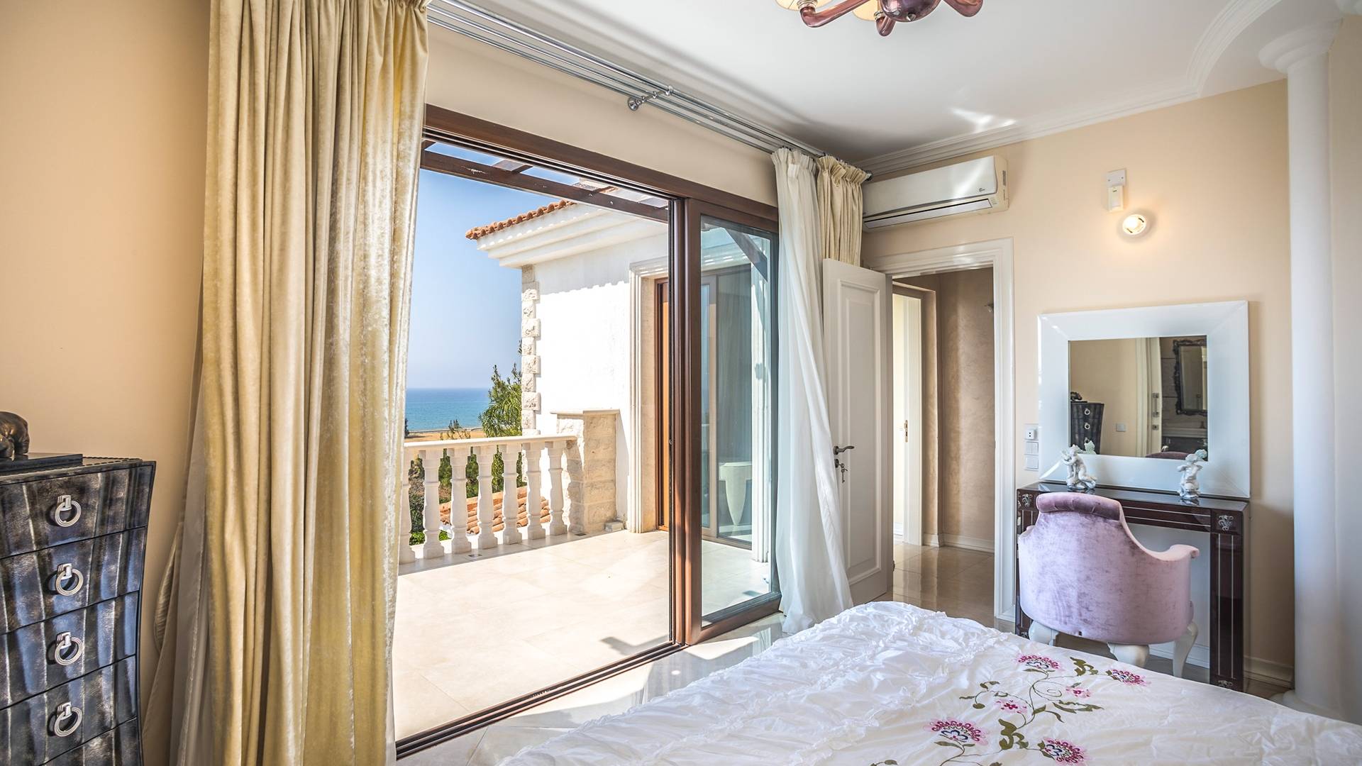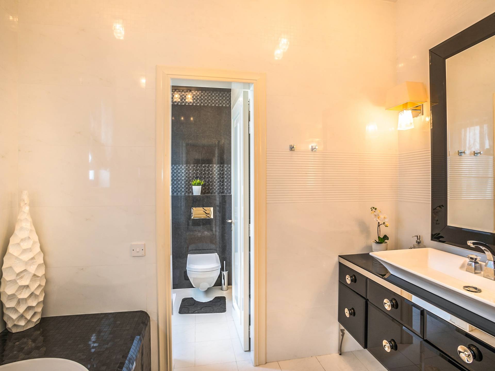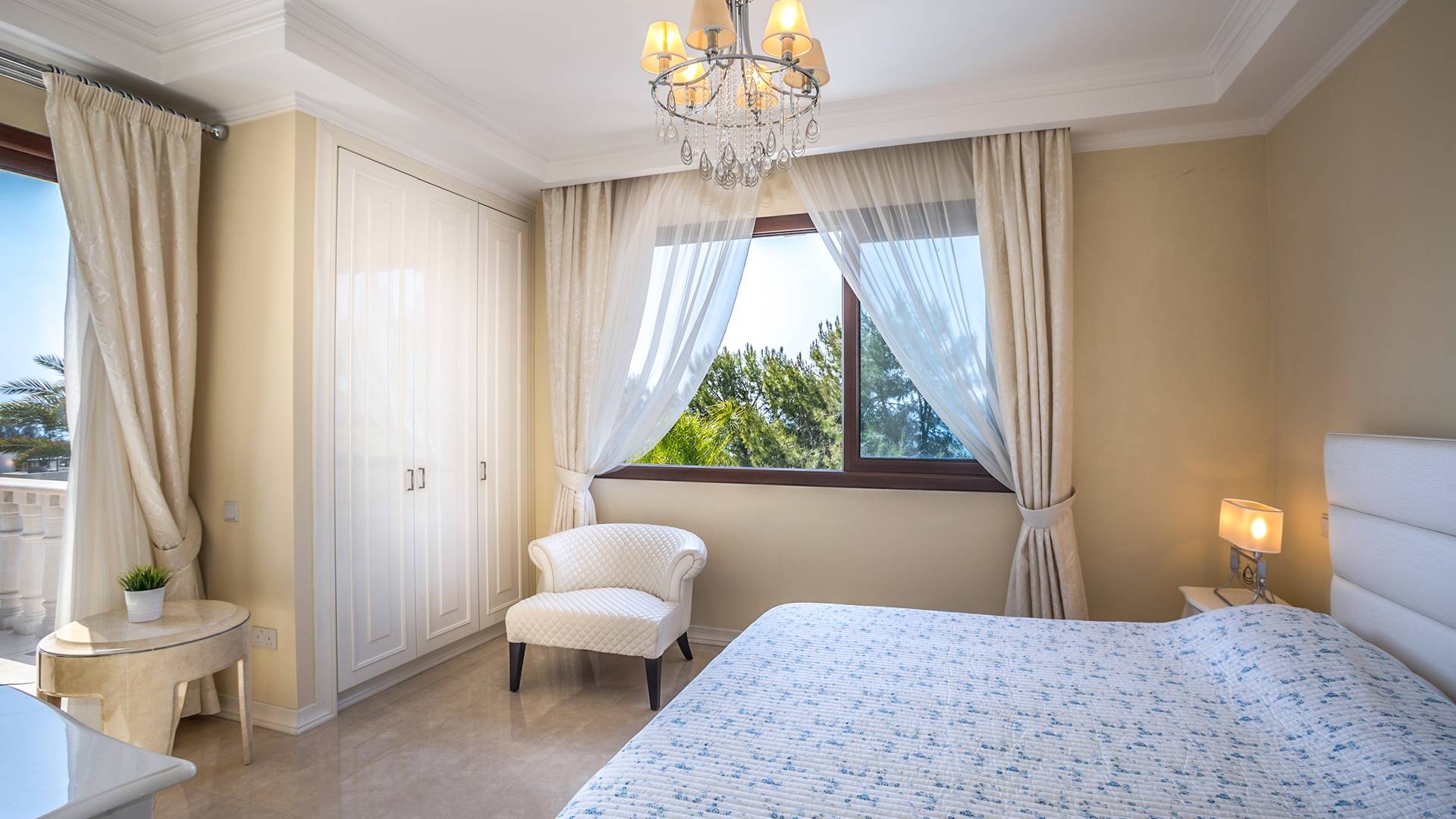 Вилла Evangelia Argaka включает в себя 5 спален, две кухни, 6 санузлов, санузел, биде, душевые, сауну, смотровую площадку на 3 этаже - расположена на территории 2500 м2 с крытой открытой верандой «для барбекю» на 14 мест со своей кухней, холодильником и мангалом. На нижнем уровне виллы расположена нижняя палуба с уютными укромными уголками рядом с водопадом, мостиком, прудом с золотыми рыбками и собственным выходом к морю.