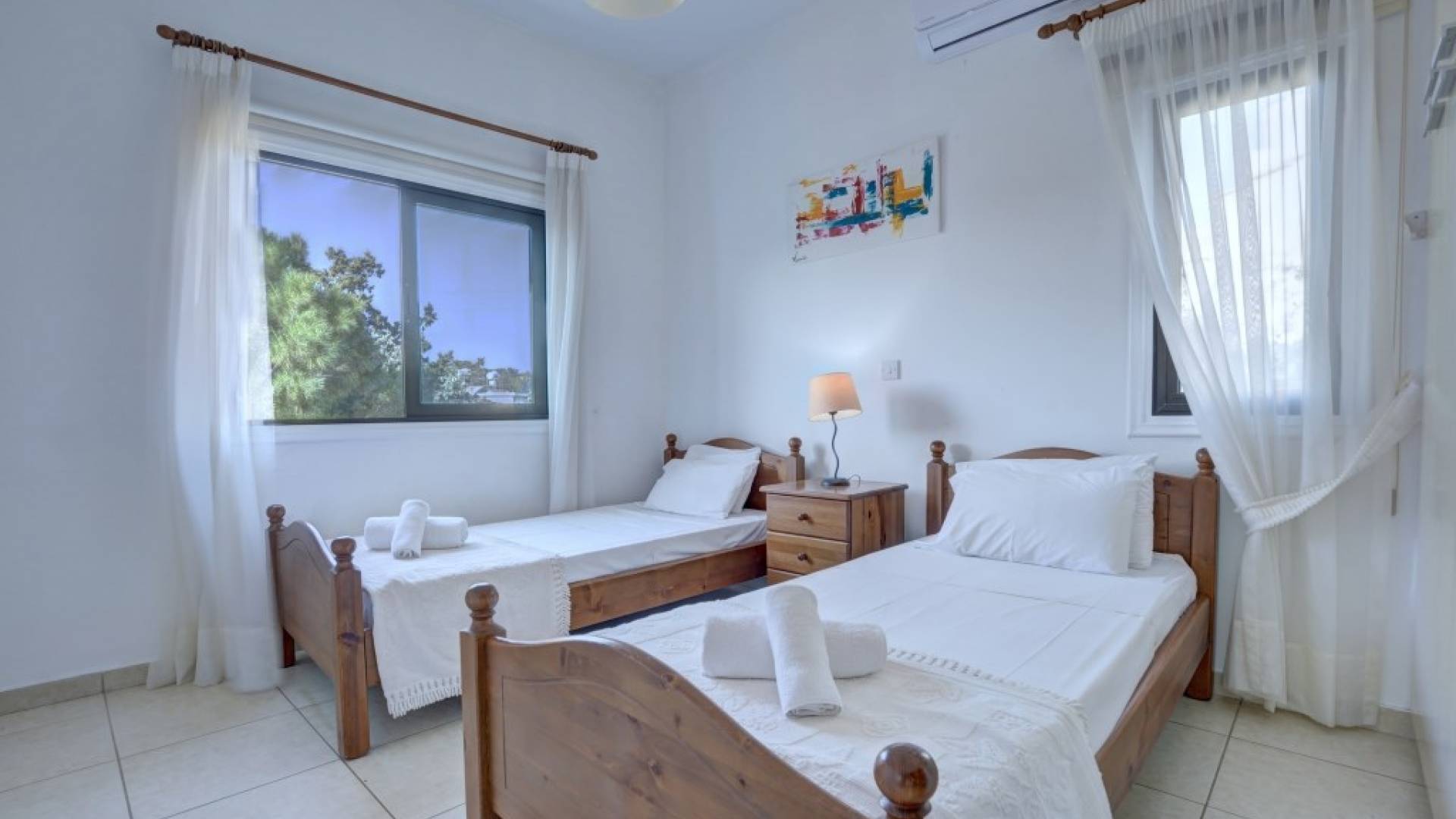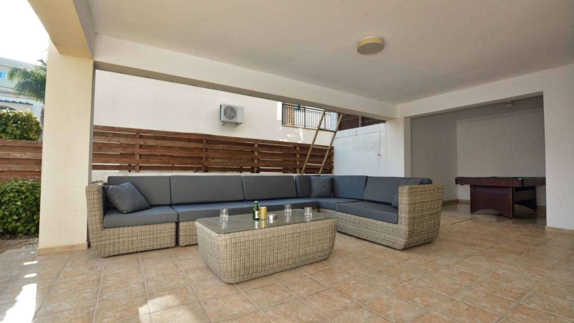 Внизу, на цокольном этаже, находится спальня с двуспальной кроватью и душевая. Этот этаж также дает доступ к саду и бассейну, который просторный и солнечный, с большим количеством места для принятия солнечных ванн и отдыха. В крытой зоне есть стол для пинг-понга, а также есть затененная зона отдыха, которая идеально подходит для наслаждения теплыми летними вечерами. Вилла идеально подходит для спокойного семейного отдыха и отличный выбор для тех, кто хочет быть рядом со всем, что может предложить Протарас.