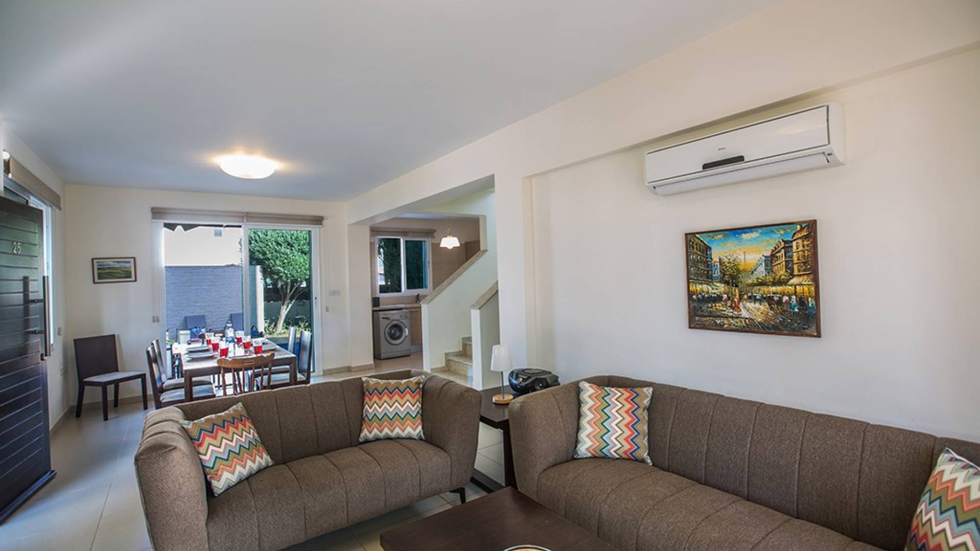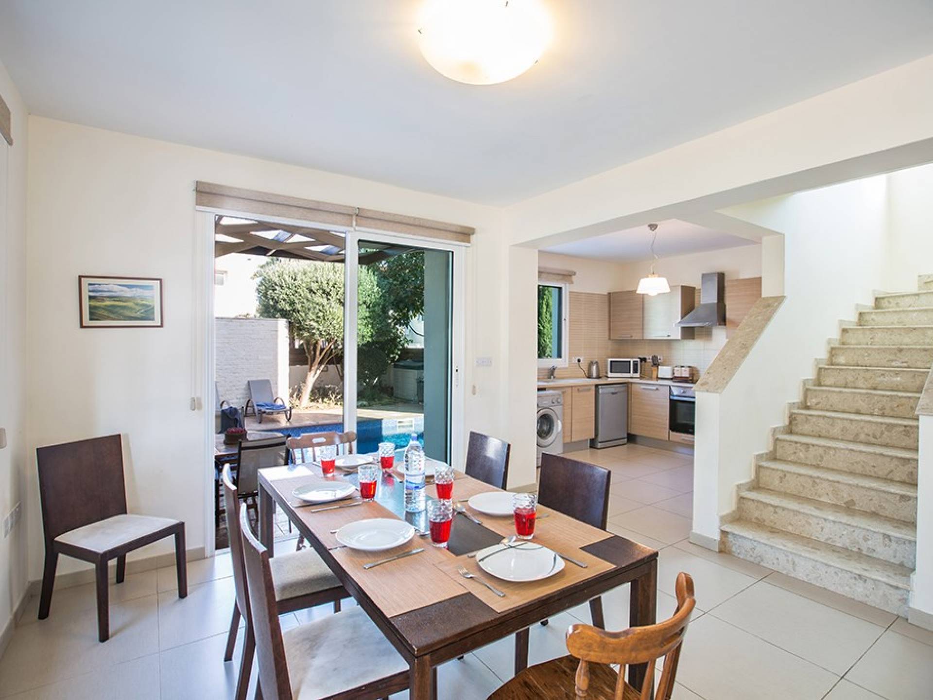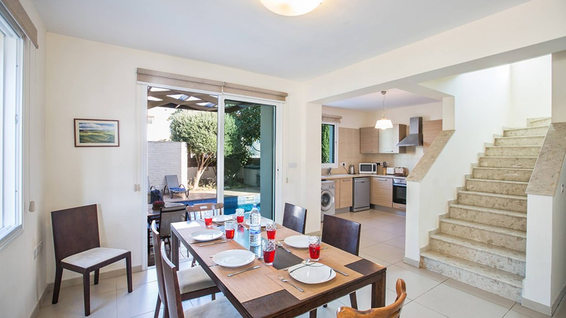 Внутри вилла современная и удобная, с гостиной и столовой открытой планировки, а также полностью оборудованной кухней. На первом этаже находится спальня с двуспальной кроватью и душевой комнатой, а также отдельный туалет. Наверху находится главная спальня с двуспальной кроватью и собственной душевой, а также 2 спальни с 2 односпальными кроватями. Также имеется большая семейная ванная комната с ванной и душем.
