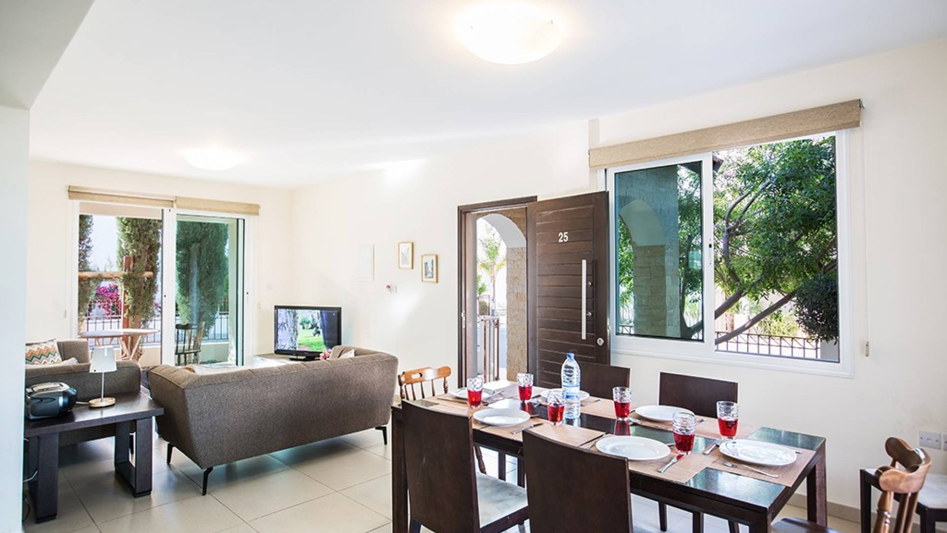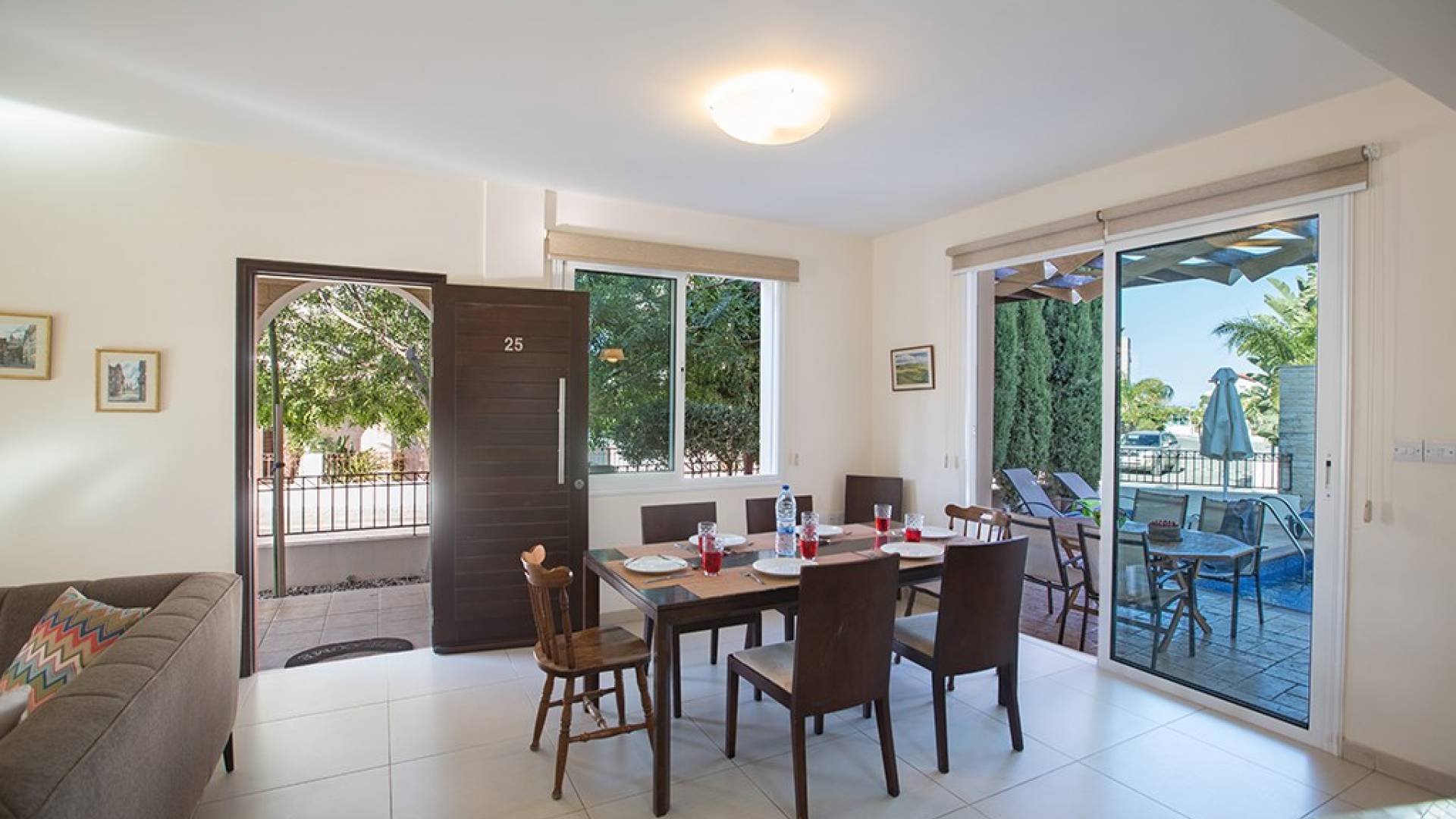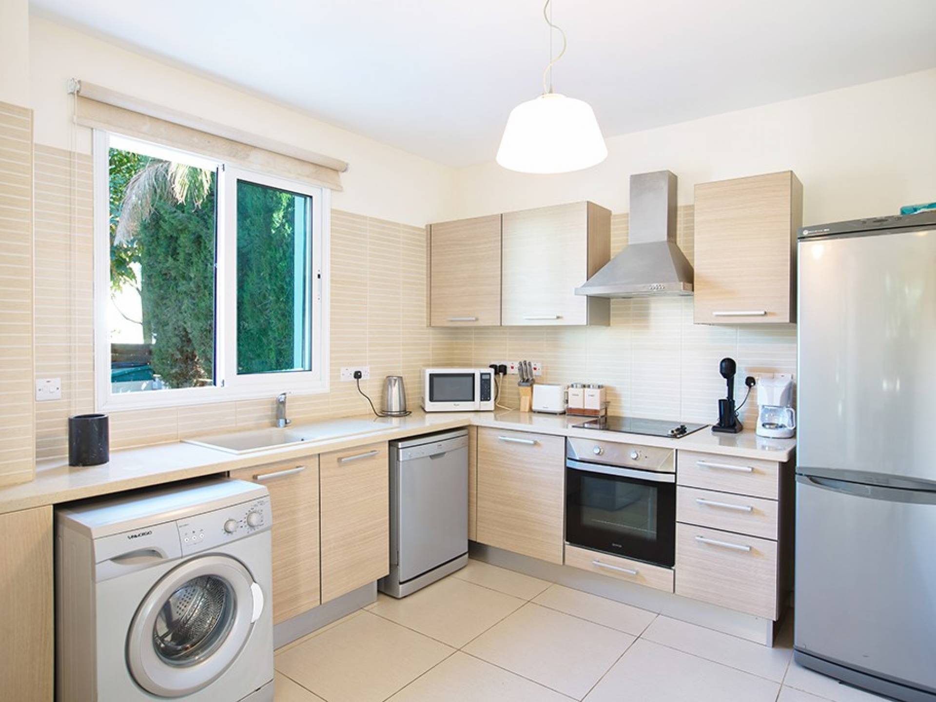 Внутри вилла современная и удобная, с гостиной и столовой открытой планировки, а также полностью оборудованной кухней. На первом этаже находится спальня с двуспальной кроватью и душевой комнатой, а также отдельный туалет. Наверху находится главная спальня с двуспальной кроватью и собственной душевой, а также 2 спальни с 2 односпальными кроватями. Также имеется большая семейная ванная комната с ванной и душем.