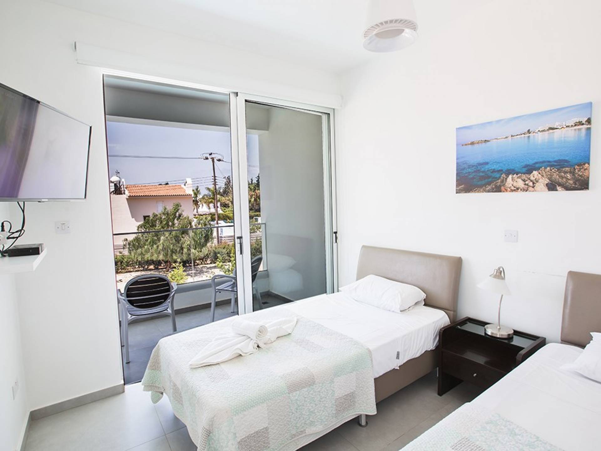 читать дальшеProtaras is a tourist resort under the administrative jurisdiction of Paralimni Municipality in Cyprus. In ancient times, where Protaras is now located, used to be the old city-state of Leukolla. Protaras is also known as "the land of windmills", maintaining a nostalgic note from the past. Protaras features sandy beaches with crystalline waters, the most well-known of which is Fig Tree Bay. Building on the success of Ayia Napa, which is about 10 km to its southwest, it has turned into a modern holiday resort of considerable size with great touristic infrastructure. Being quieter than Ayia Napa and having less of a nightlife scene, it is more attractive for family and local tourism. Cape Greco is a 10-minute drive from the center of Protaras and is considered one of the most beautiful places on the island.