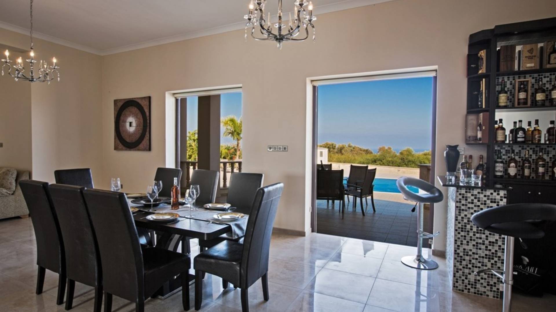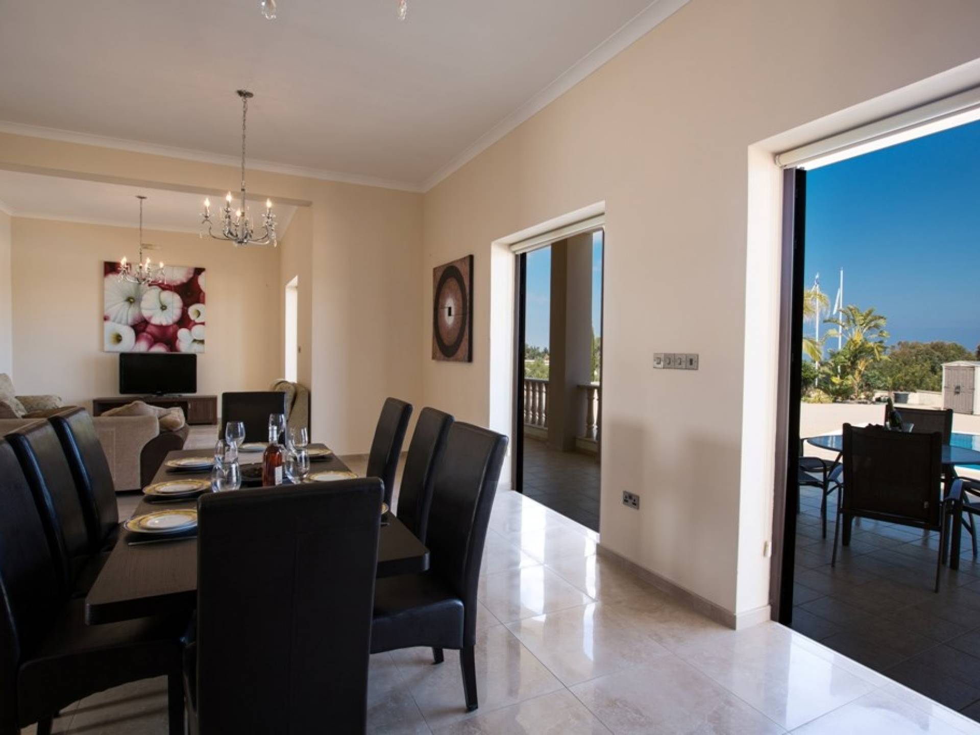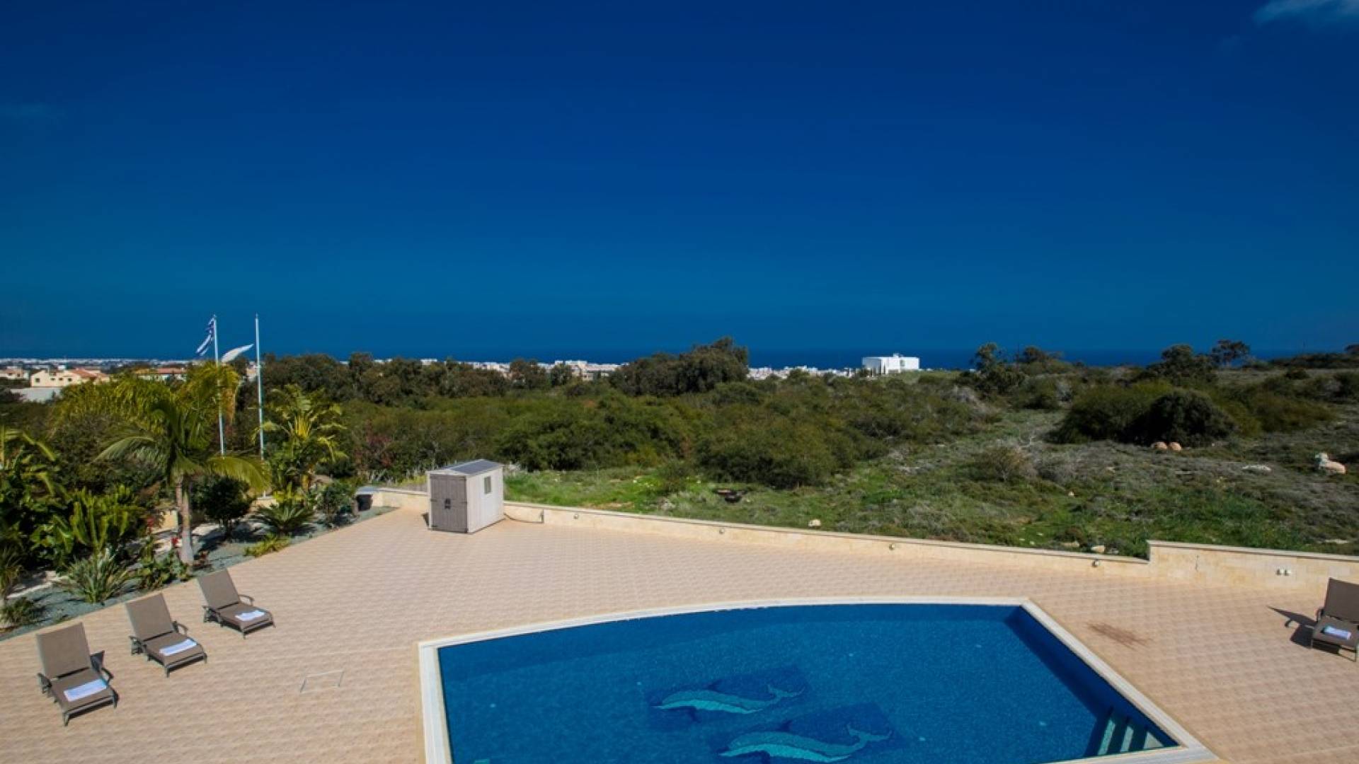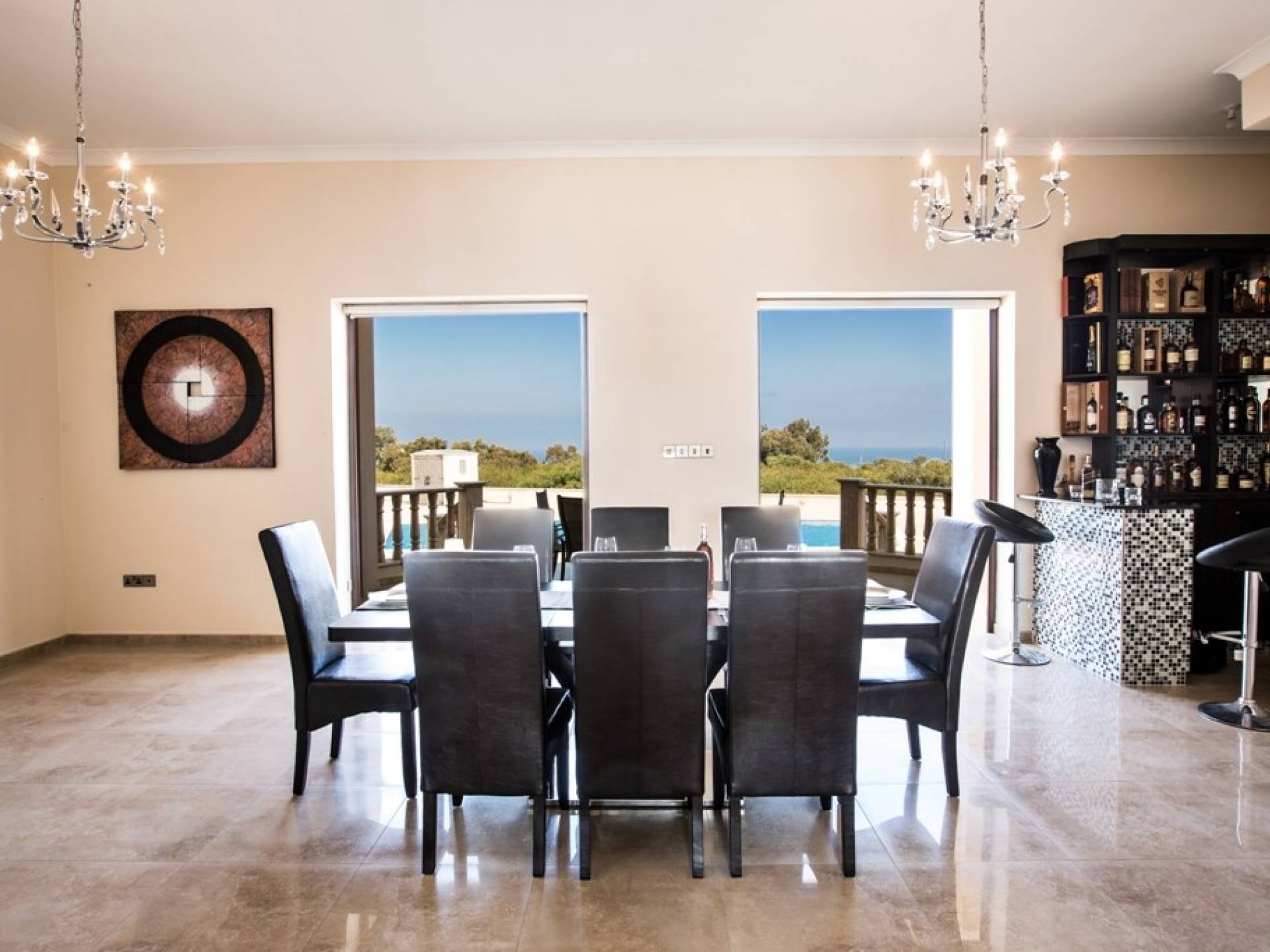 Просторная кухня расположена рядом с основной гостиной и предлагает достаточно места для приема пищи и развлечений. Большая спальня с двуспальной кроватью и ванной комнатой расположена на первом этаже вместе с телевизором и игровой комнатой с диваном-кроватью, которая считается 7-й спальней виллы. На первом этаже вы найдете еще 5 спален с двуспальными кроватями, 3 с ванными комнатами, семейную ванную комнату и открытую террасу с зоной отдыха, где вы можете насладиться панорамным видом на Протарас. На этом же этаже находится подсобное помещение со стиральной и сушильной машинами.