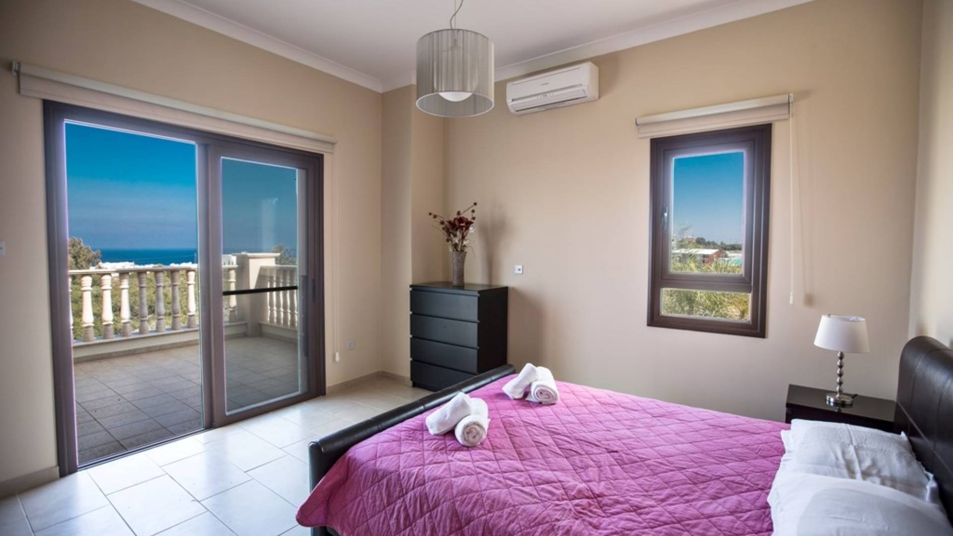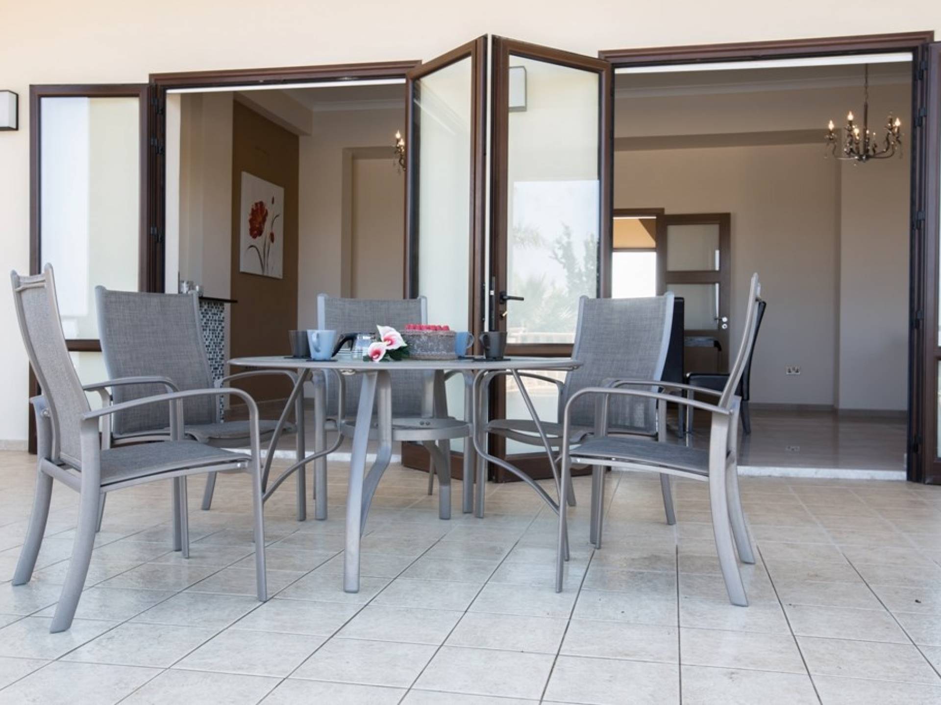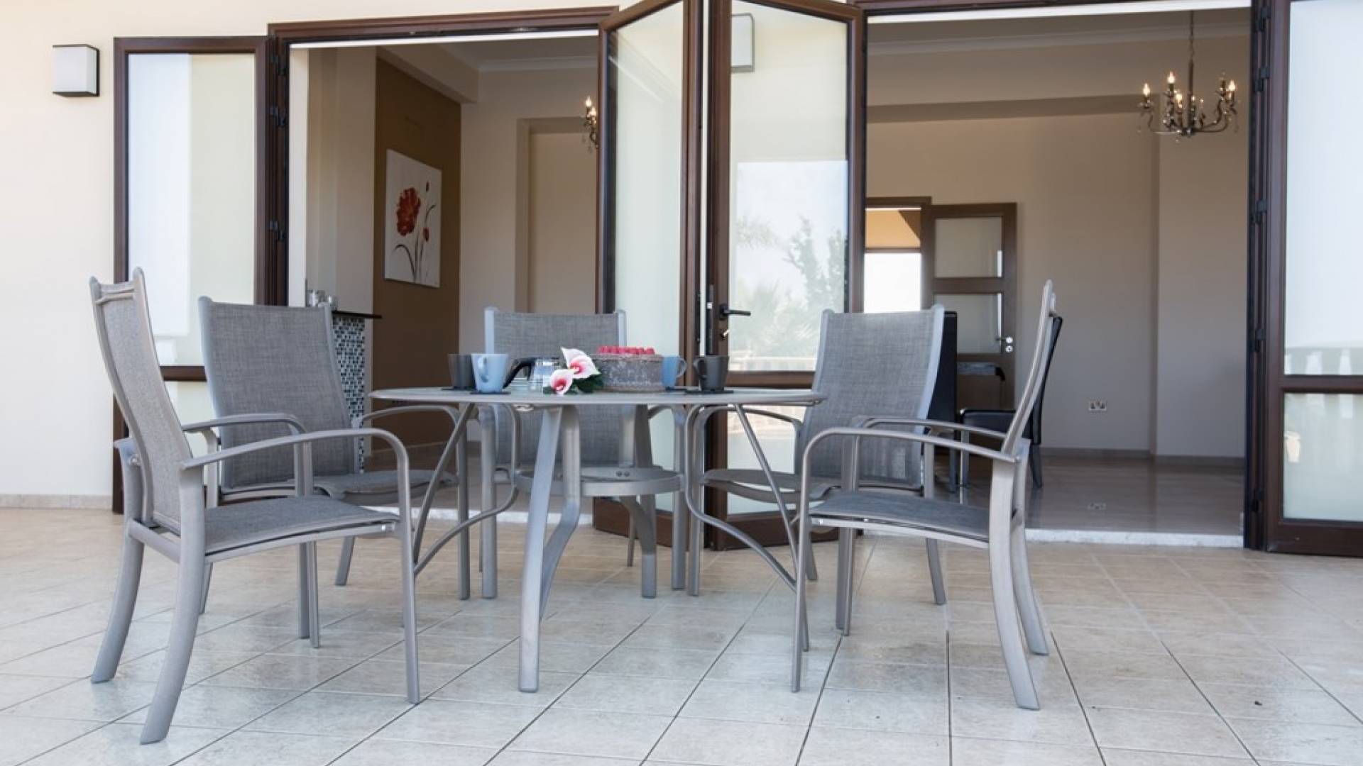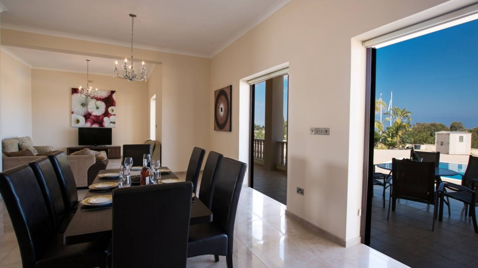 Просторная кухня расположена рядом с основной гостиной и предлагает достаточно места для приема пищи и развлечений. Большая спальня с двуспальной кроватью и ванной комнатой расположена на первом этаже вместе с телевизором и игровой комнатой с диваном-кроватью, которая считается 7-й спальней виллы. На первом этаже вы найдете еще 5 спален с двуспальными кроватями, 3 с ванными комнатами, семейную ванную комнату и открытую террасу с зоной отдыха, где вы можете насладиться панорамным видом на Протарас. На этом же этаже находится подсобное помещение со стиральной и сушильной машинами.