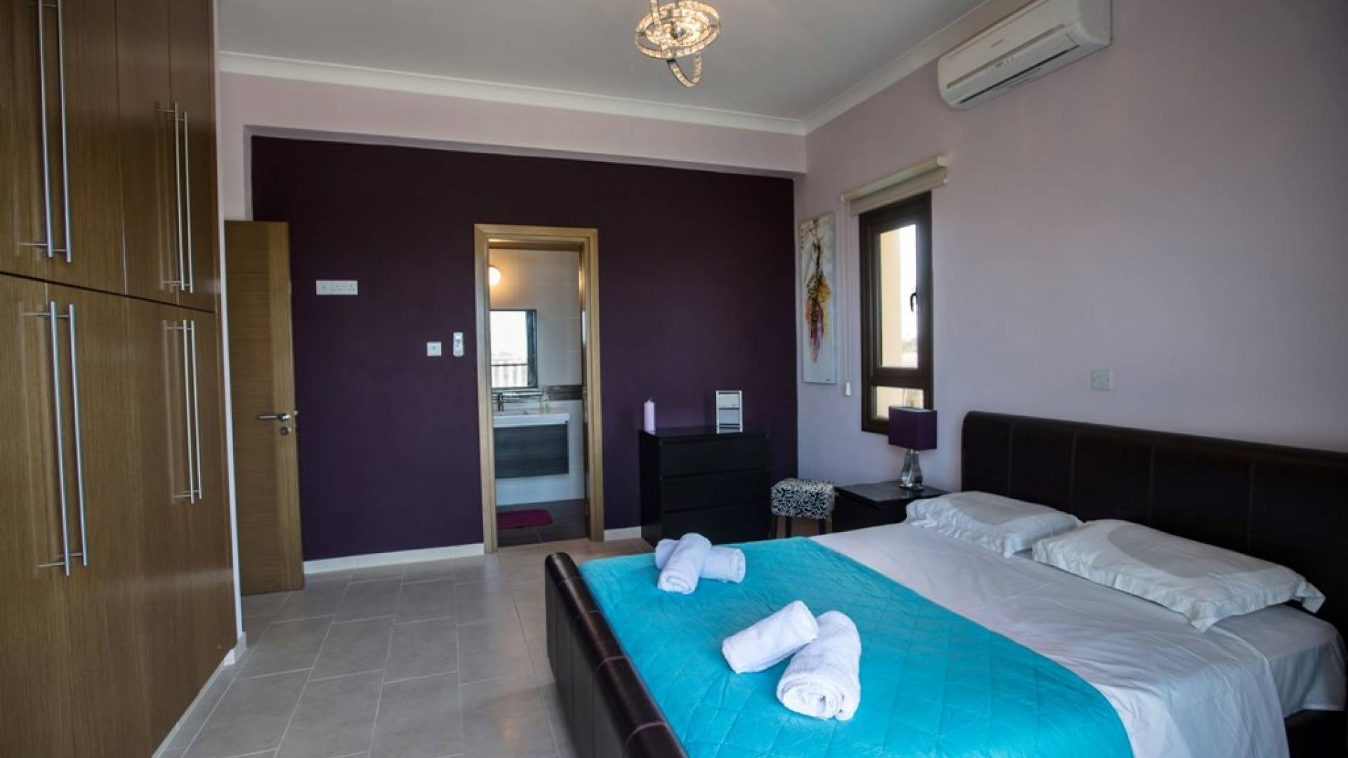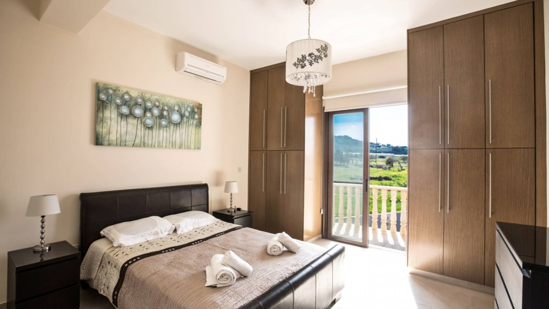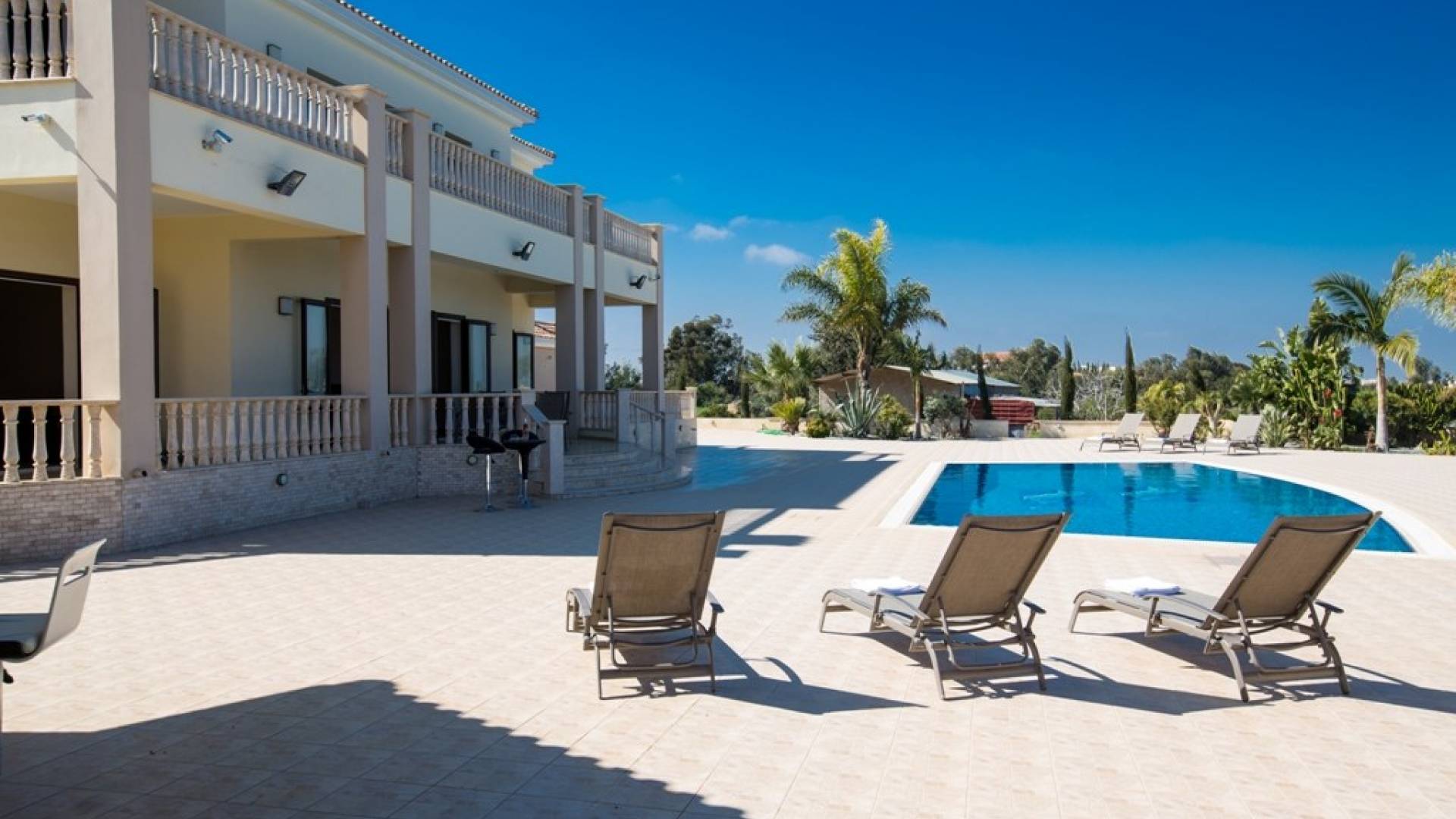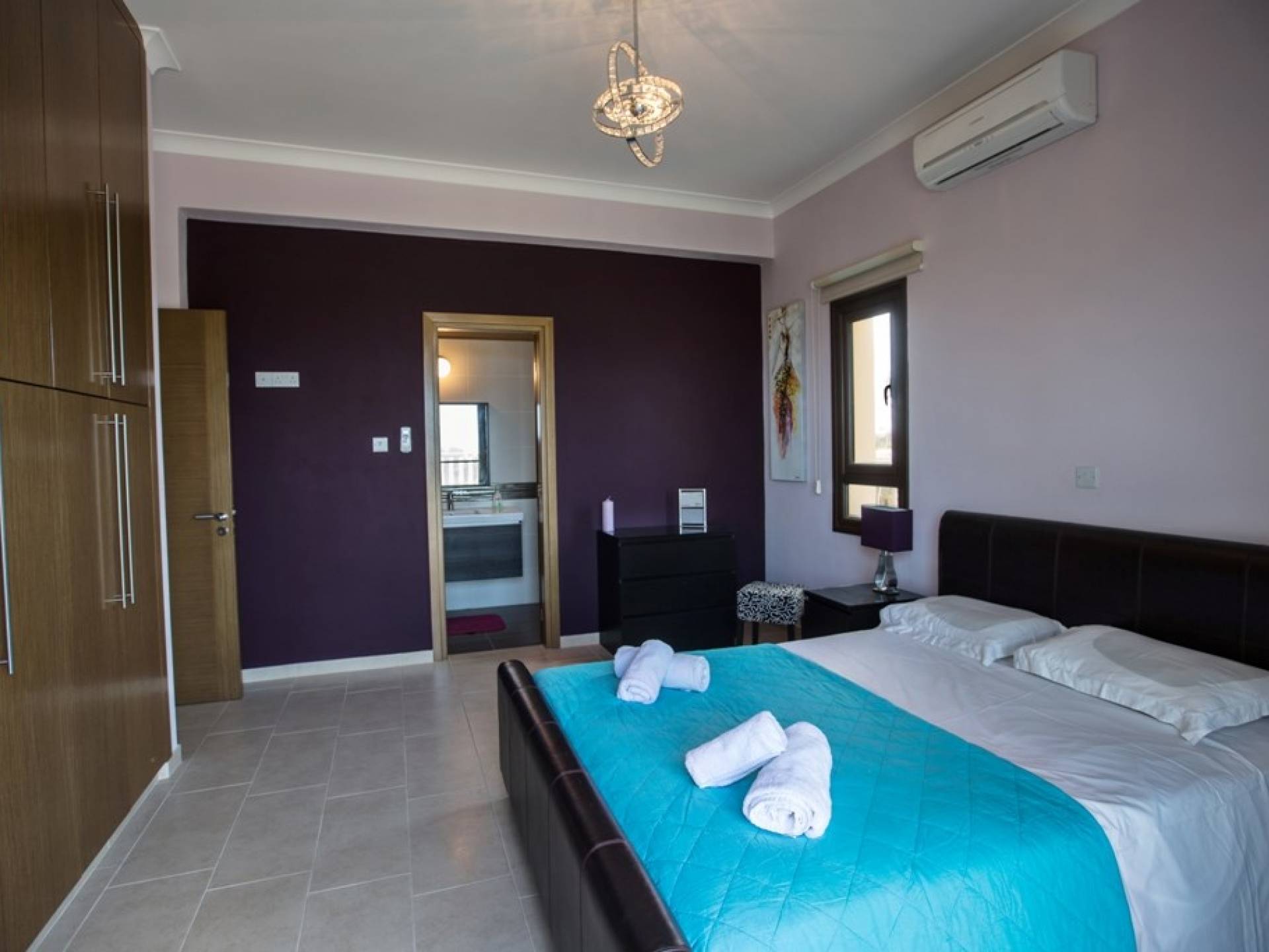 Просторная кухня расположена рядом с основной гостиной и предлагает достаточно места для приема пищи и развлечений. Большая спальня с двуспальной кроватью и ванной комнатой расположена на первом этаже вместе с телевизором и игровой комнатой с диваном-кроватью, которая считается 7-й спальней виллы. На первом этаже вы найдете еще 5 спален с двуспальными кроватями, 3 с ванными комнатами, семейную ванную комнату и открытую террасу с зоной отдыха, где вы можете насладиться панорамным видом на Протарас. На этом же этаже находится подсобное помещение со стиральной и сушильной машинами.