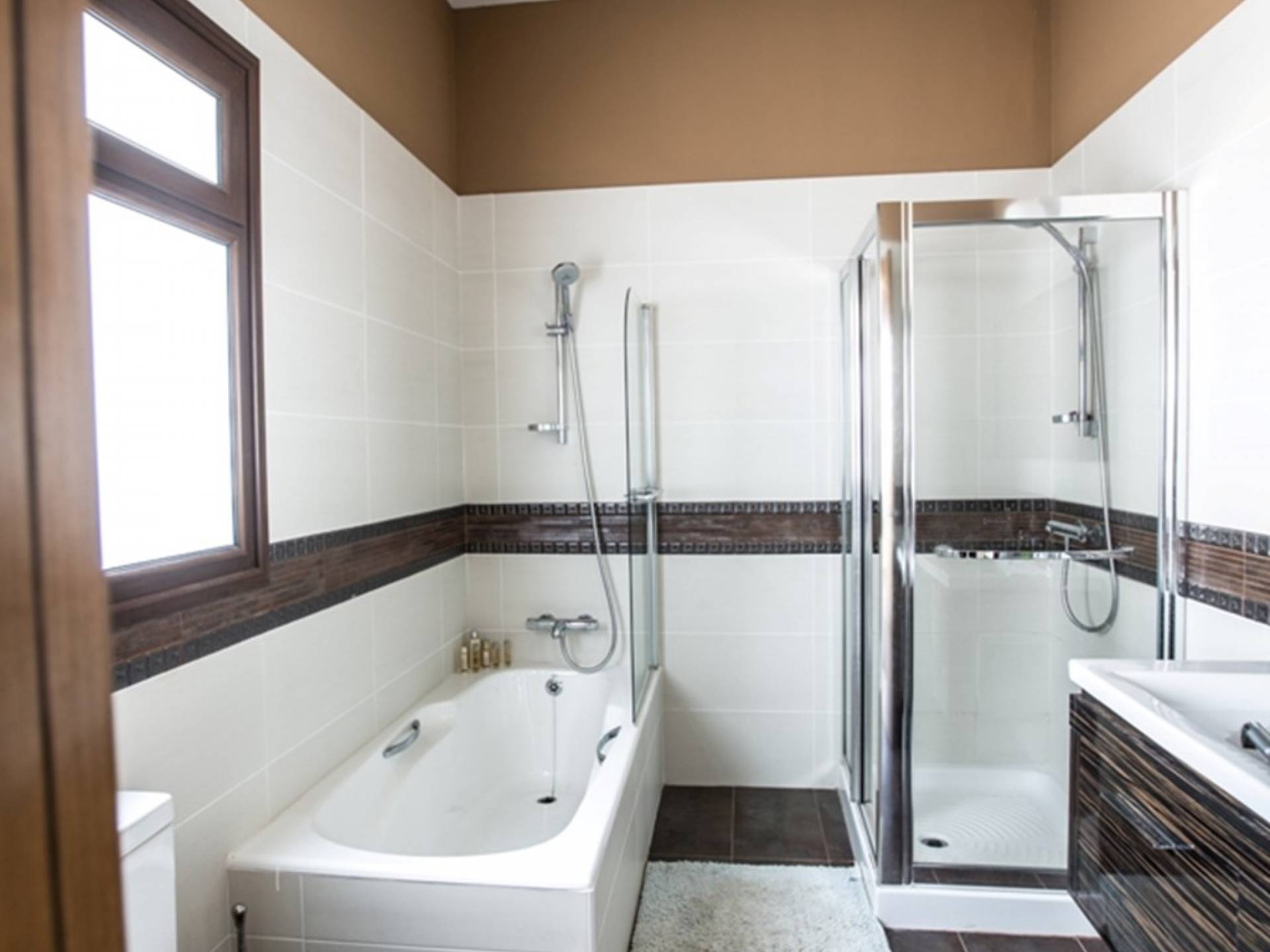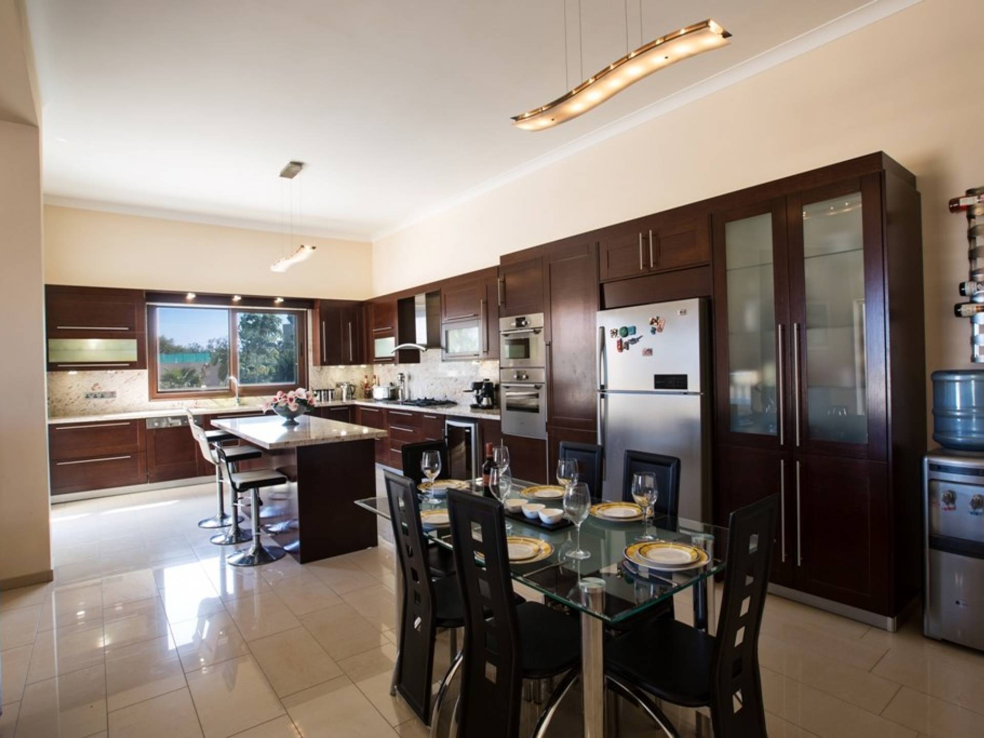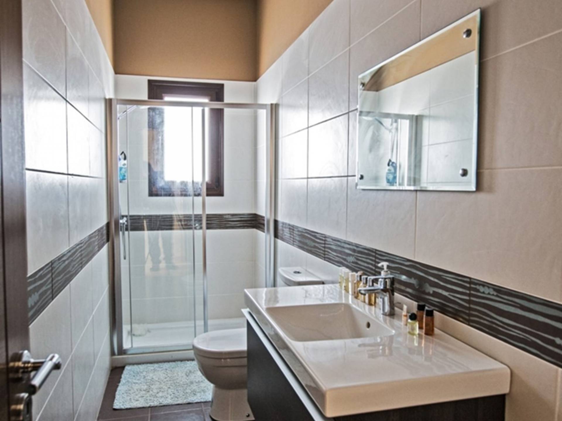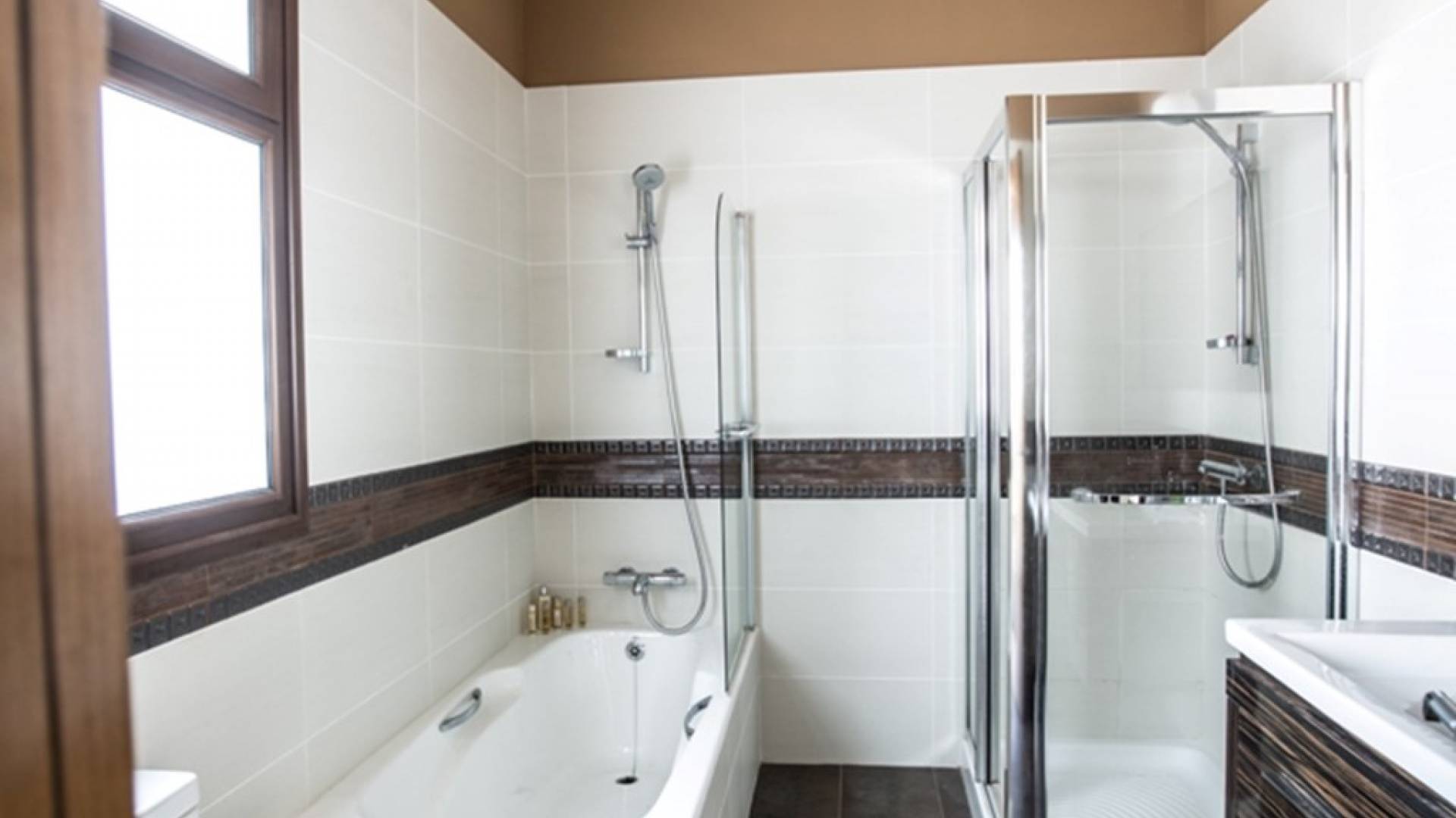 Просторная кухня расположена рядом с основной гостиной и предлагает достаточно места для приема пищи и развлечений. Большая спальня с двуспальной кроватью и ванной комнатой расположена на первом этаже вместе с телевизором и игровой комнатой с диваном-кроватью, которая считается 7-й спальней виллы. На первом этаже вы найдете еще 5 спален с двуспальными кроватями, 3 с ванными комнатами, семейную ванную комнату и открытую террасу с зоной отдыха, где вы можете насладиться панорамным видом на Протарас. На этом же этаже находится подсобное помещение со стиральной и сушильной машинами.