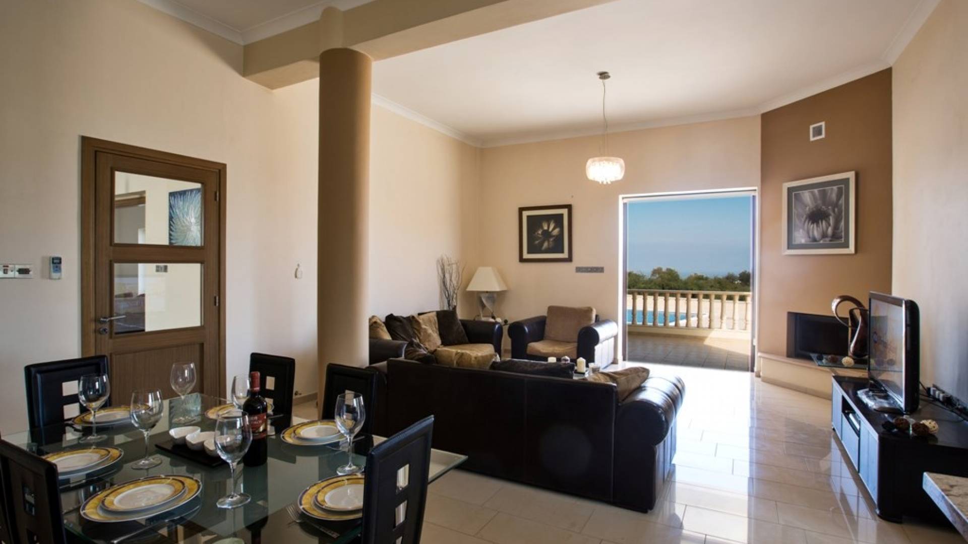 Войдя на виллу, вы обнаружите просторный вестибюль с винтовой лестницей, ведущей на второй этаж. На вилле есть 2 гостиные с удобными диванами, телевизионная зона, дровяной камин и двери во внутренний двор, позволяющие наслаждаться прекрасным видом на море со всех сторон. Есть большие широкоэкранные телевизоры, спутниковое телевидение и бесплатный беспроводной доступ в Интернет. Вилла меблирована по очень высоким стандартам, с современной мебелью и мраморными полами.
