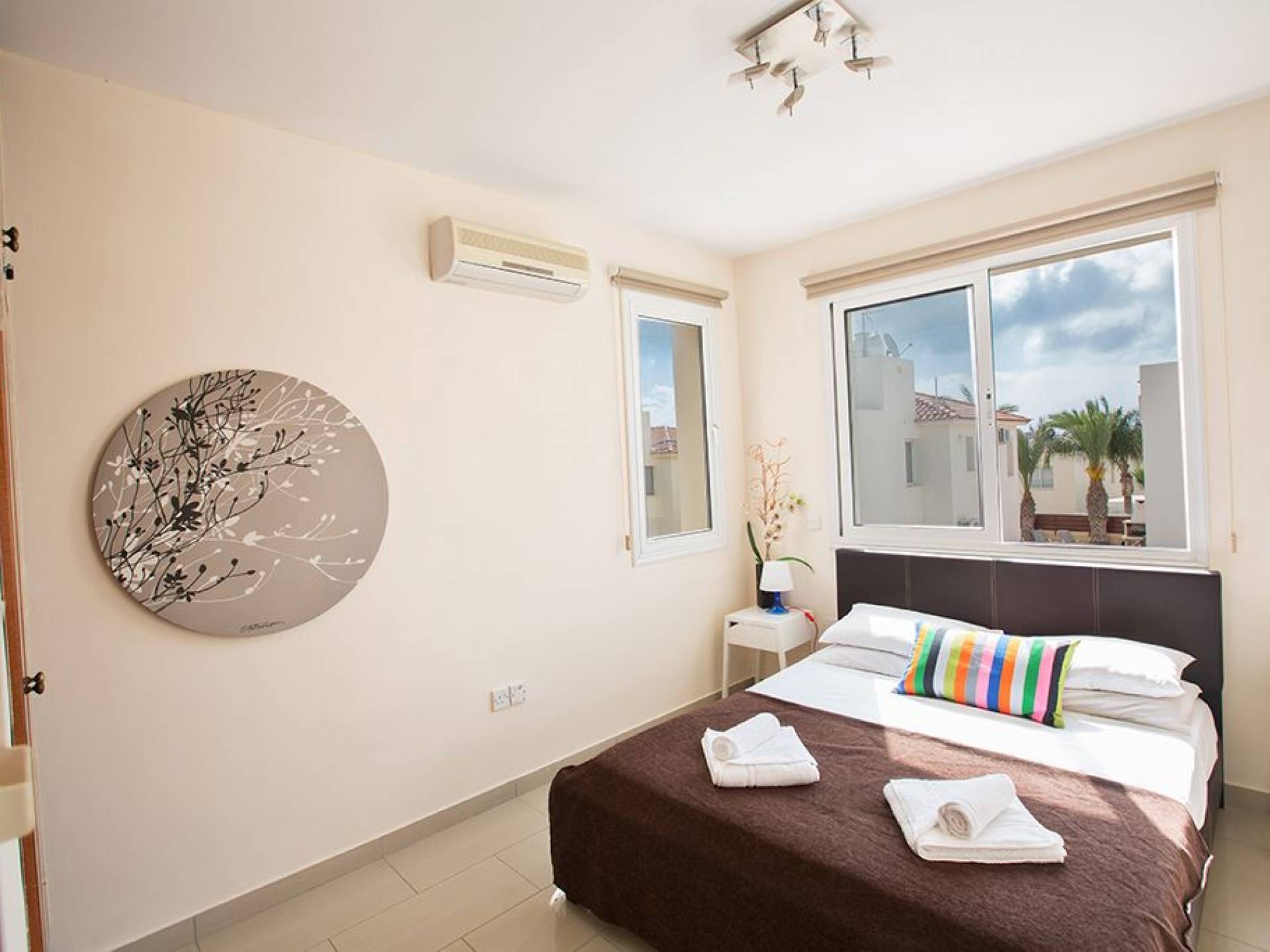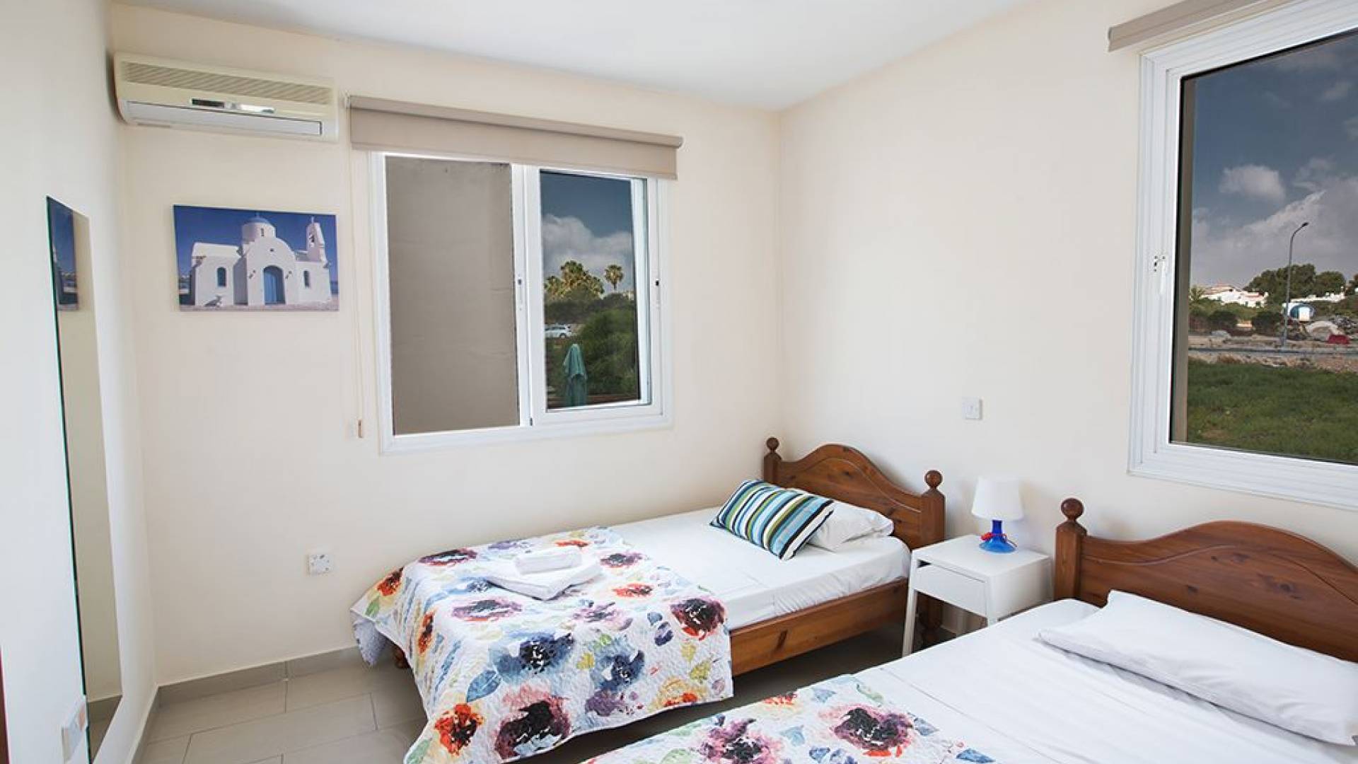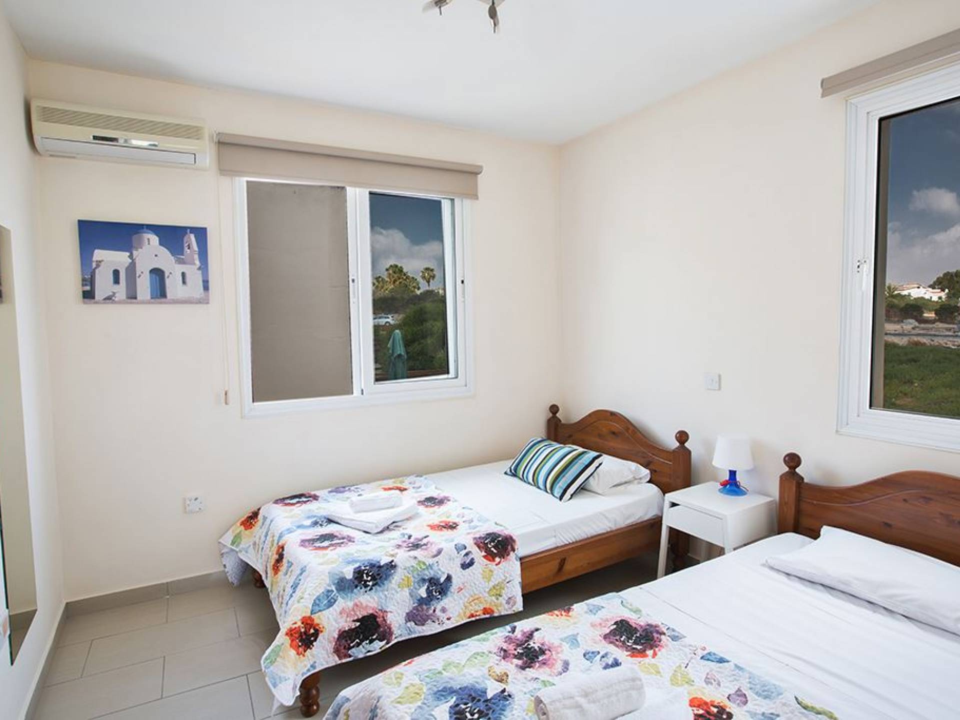 Вилла Мейсон имеет 3 спальни и 2 ванные комнаты. Из спален 2 двуспальные кровати и 1 с односпальными кроватями.