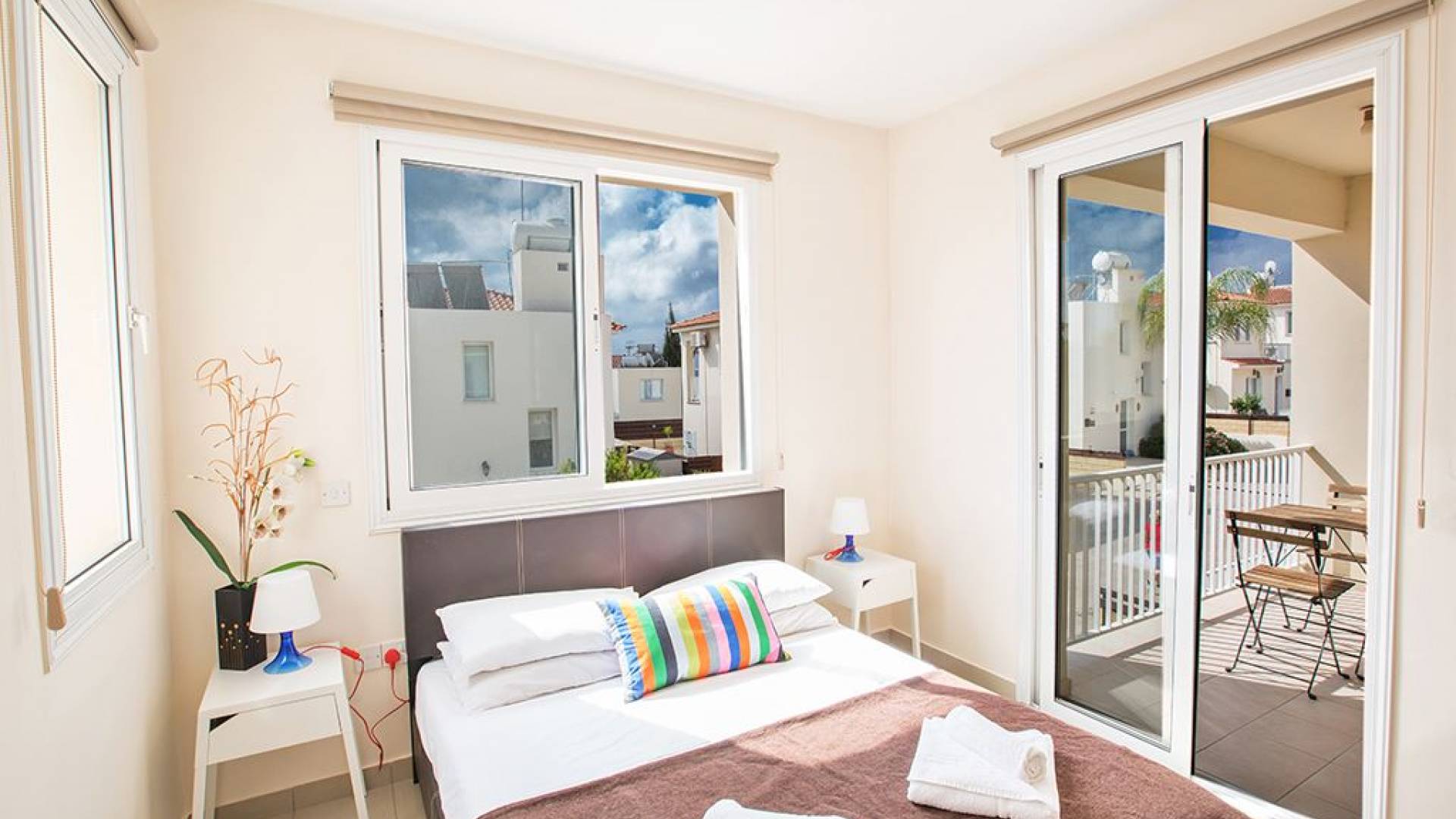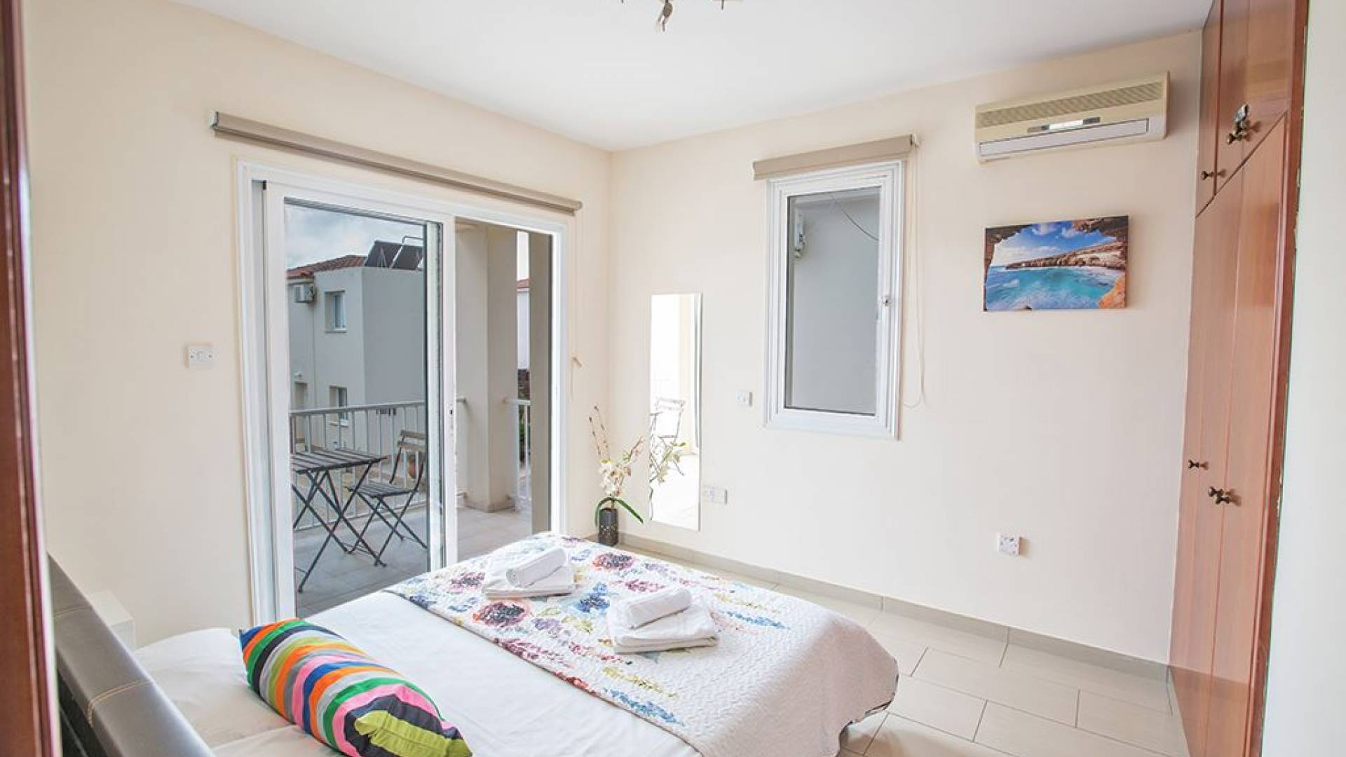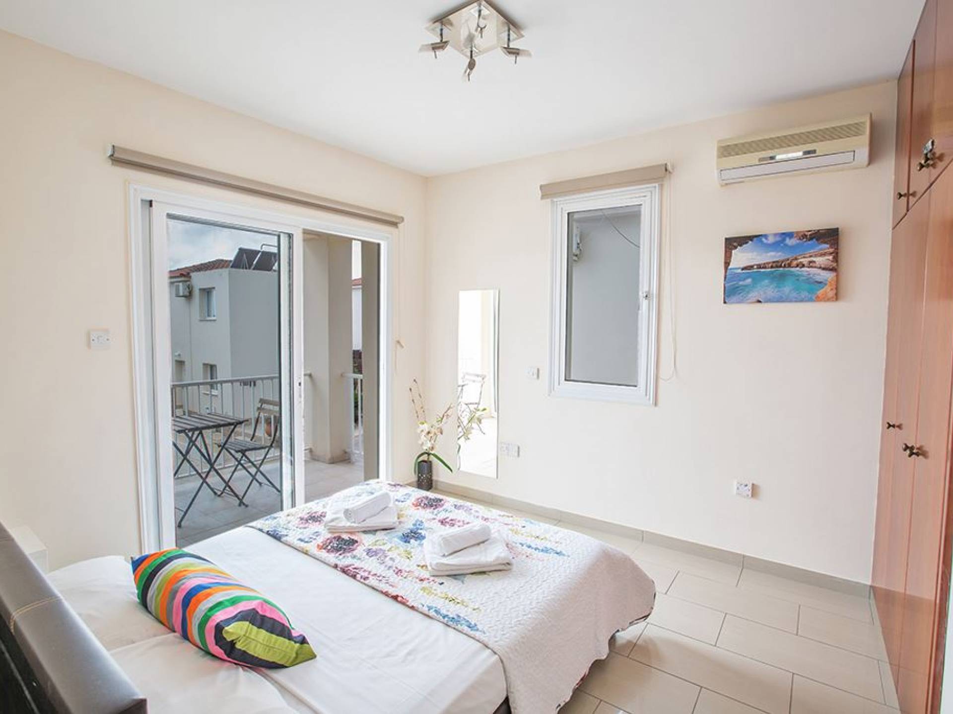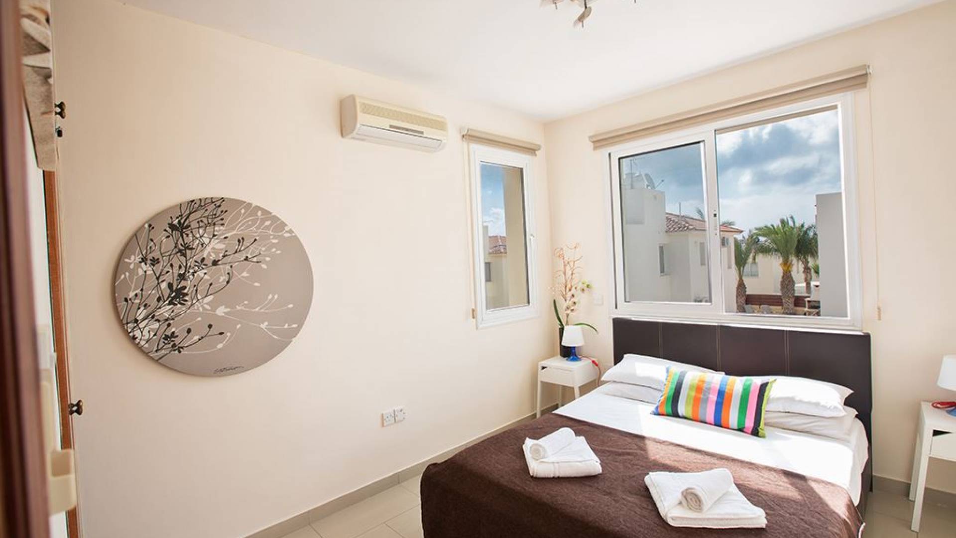 Вилла Мейсон имеет 3 спальни и 2 ванные комнаты. Из спален 2 двуспальные кровати и 1 с односпальными кроватями.