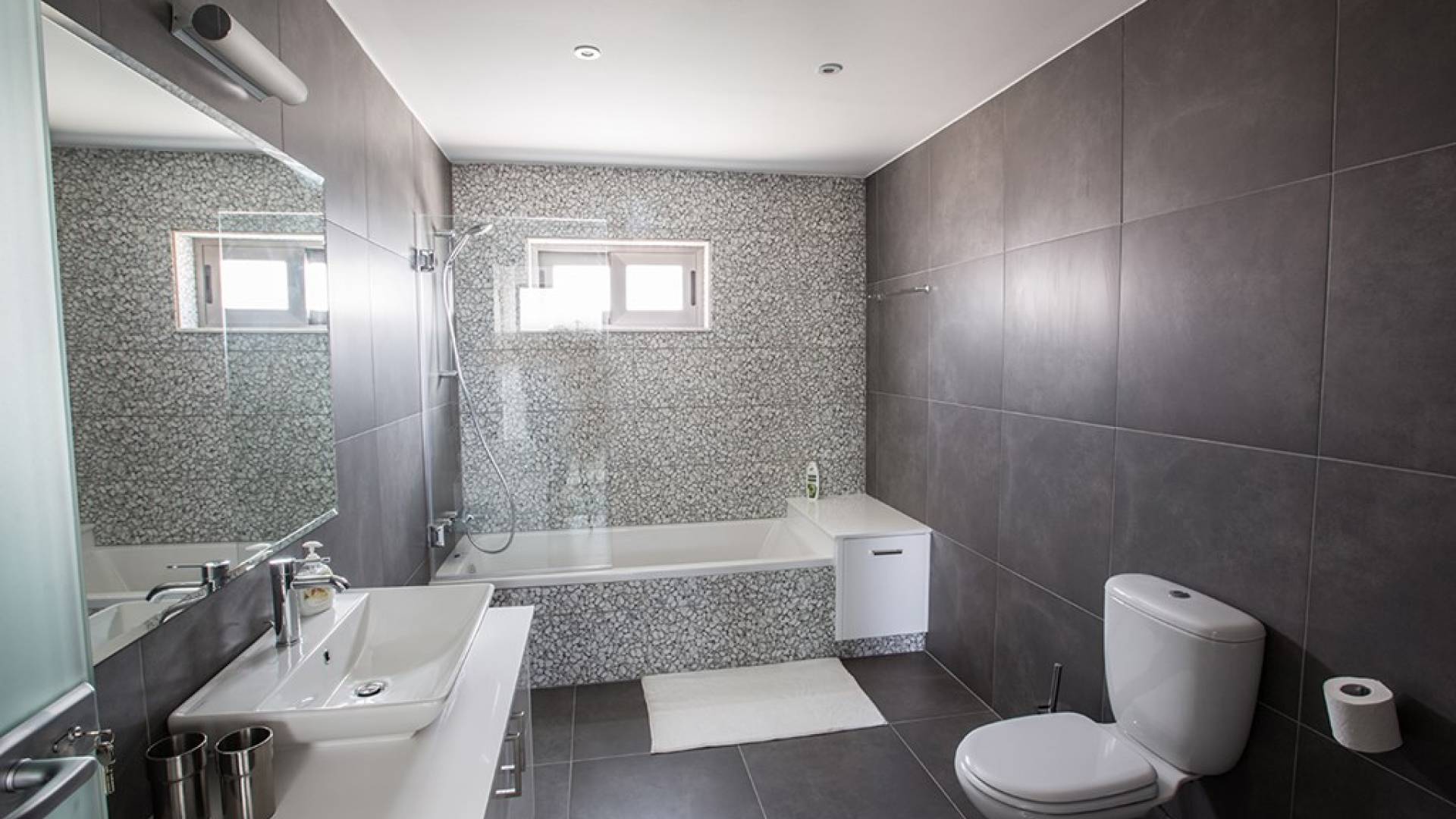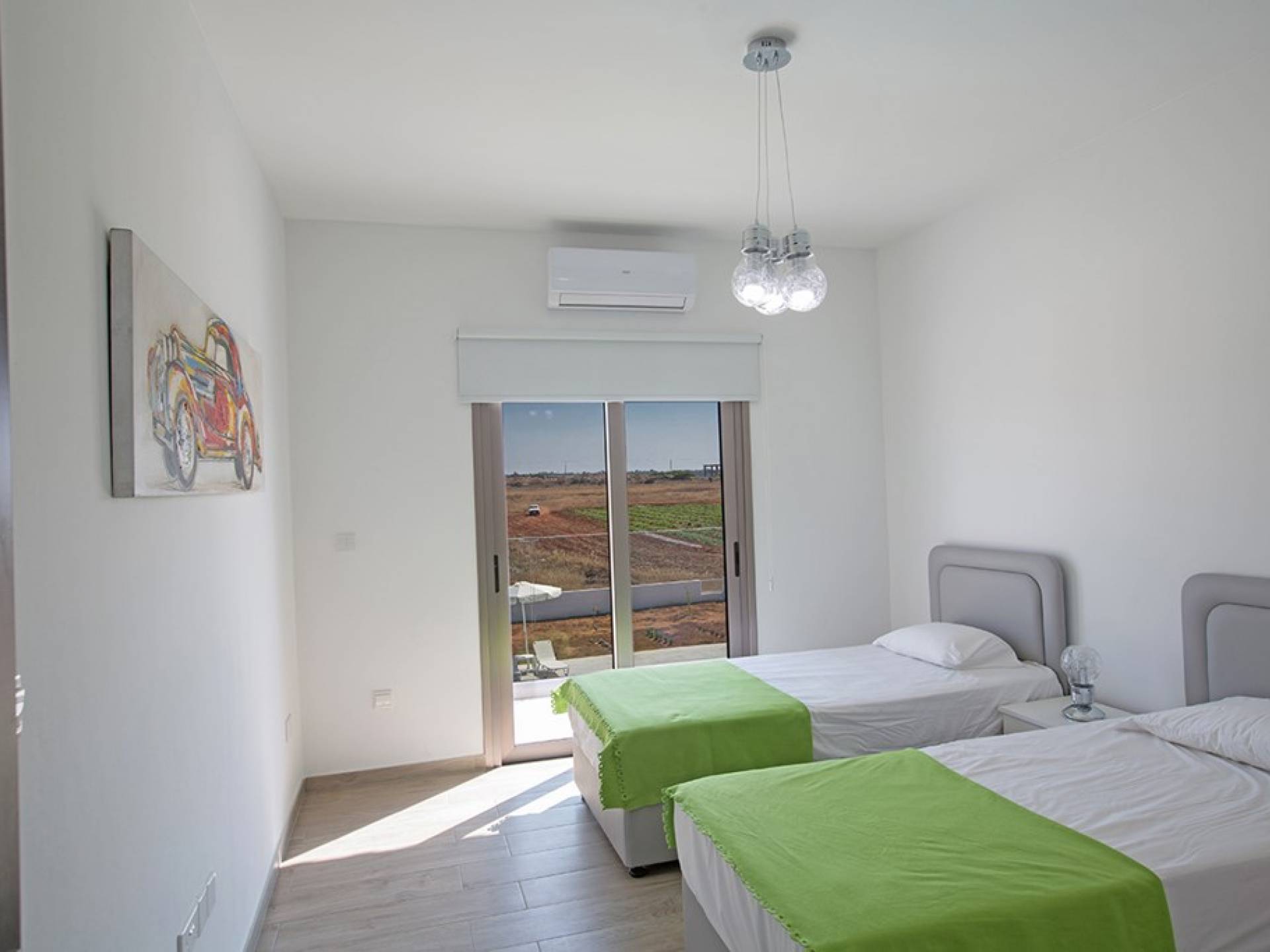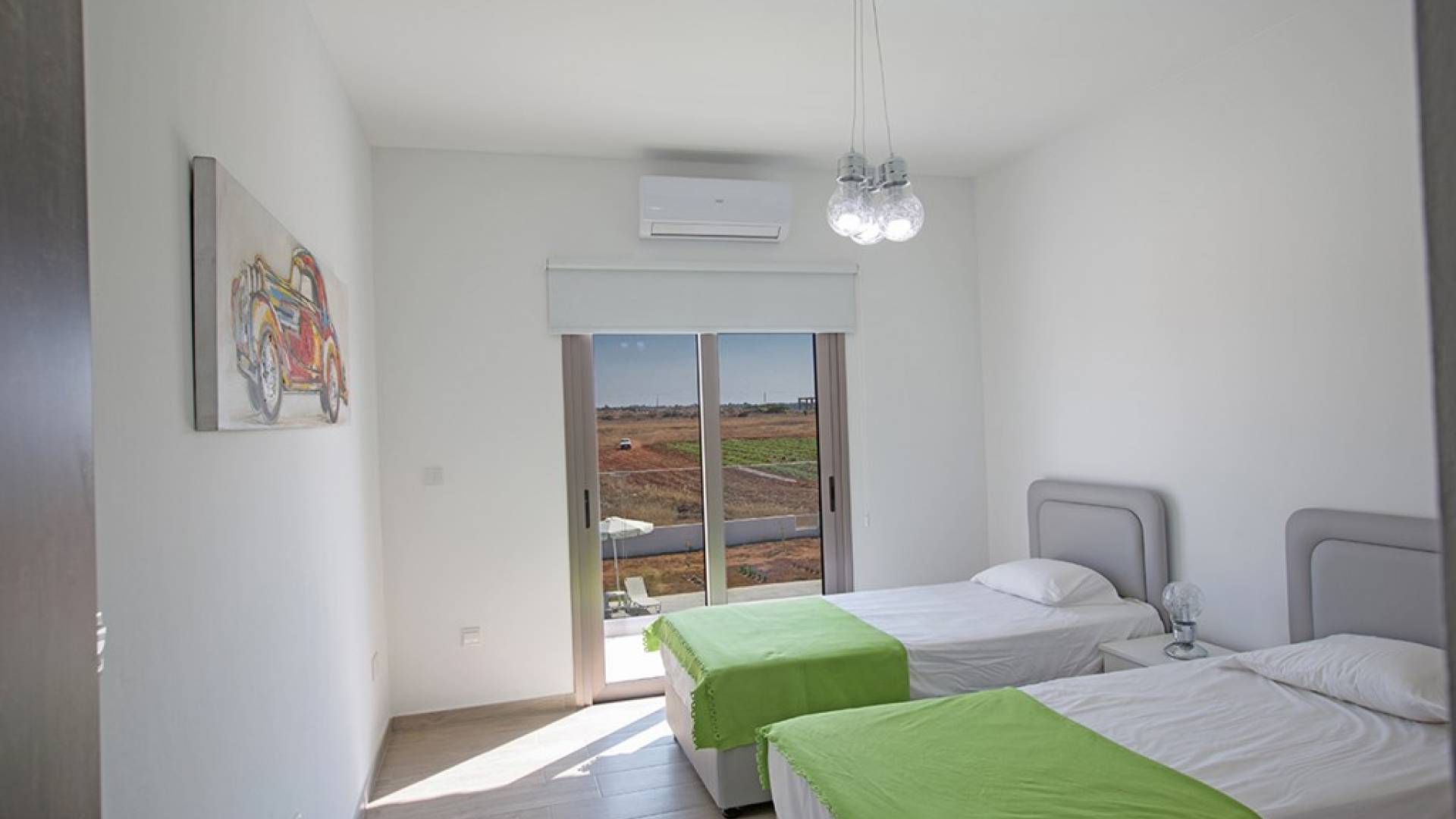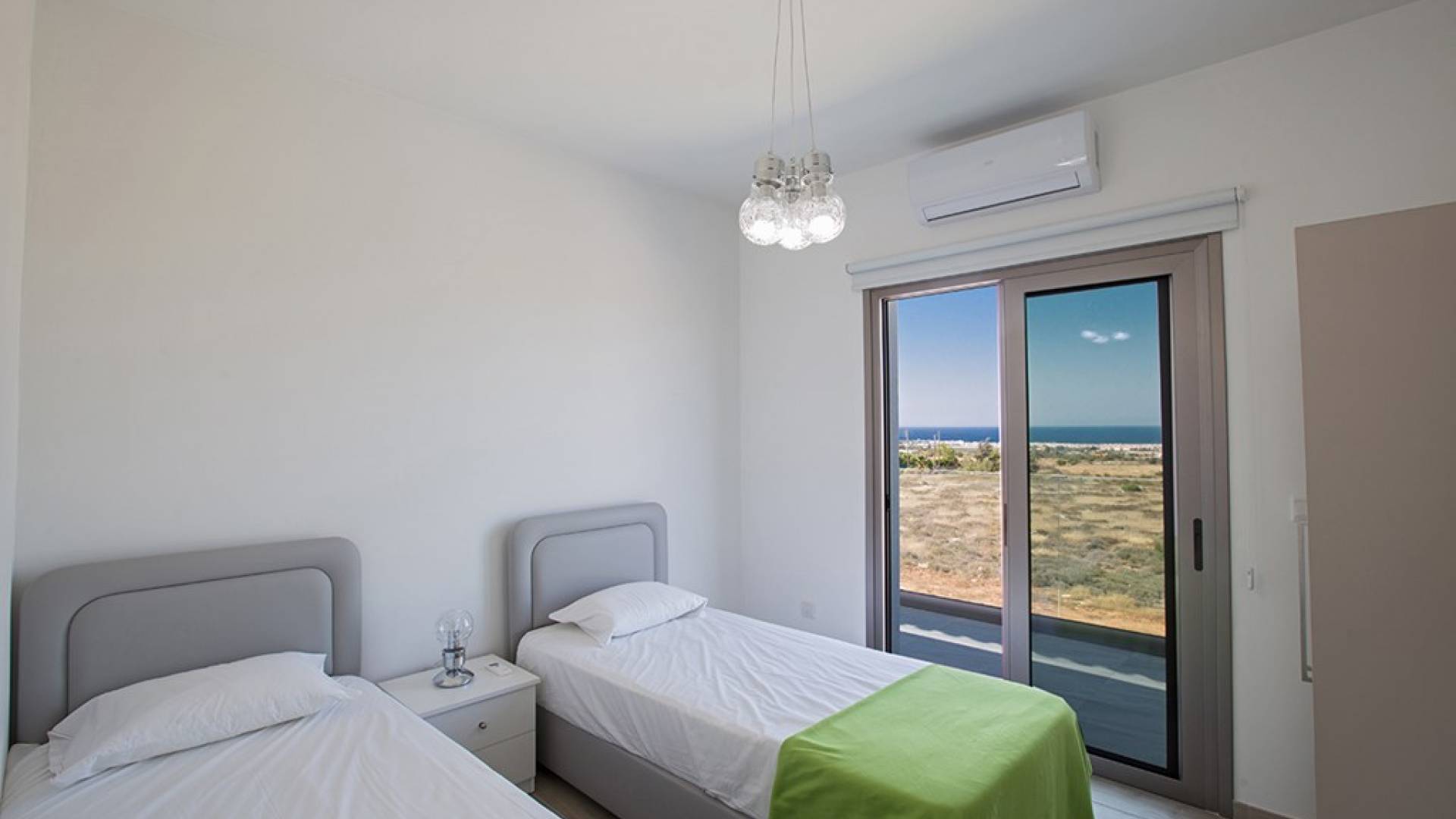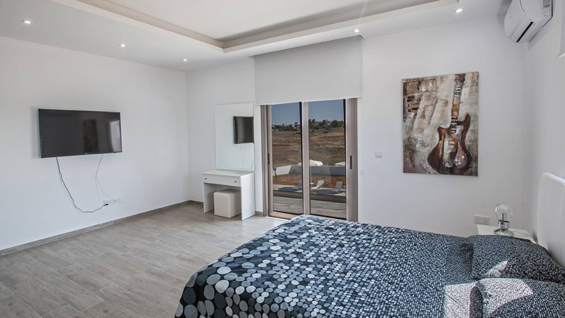 На втором этаже находятся остальные 5 спален. В главной спальне есть ванная комната с душем и туалетом, широкоэкранный телевизор, двуспальная кровать и большая гардеробная. Есть еще 2 спальни с двуспальными кроватями и 2 спальни с 2 односпальными кроватями. Из спален есть большой общий балкон, откуда открывается потрясающий вид на море Протараса. На этом же этаже находится основная семейная ванная комната с ванной, душем и туалетом.