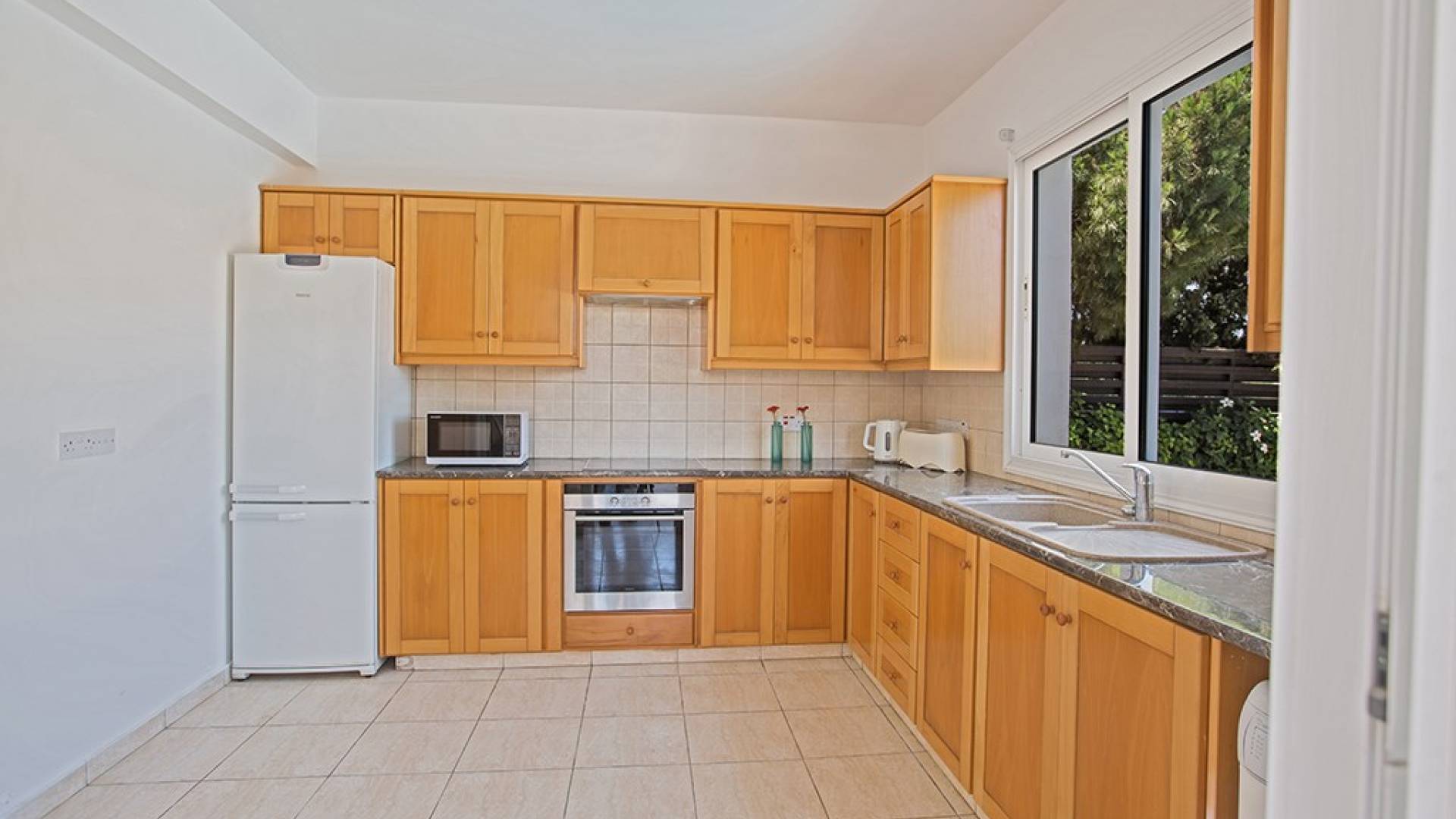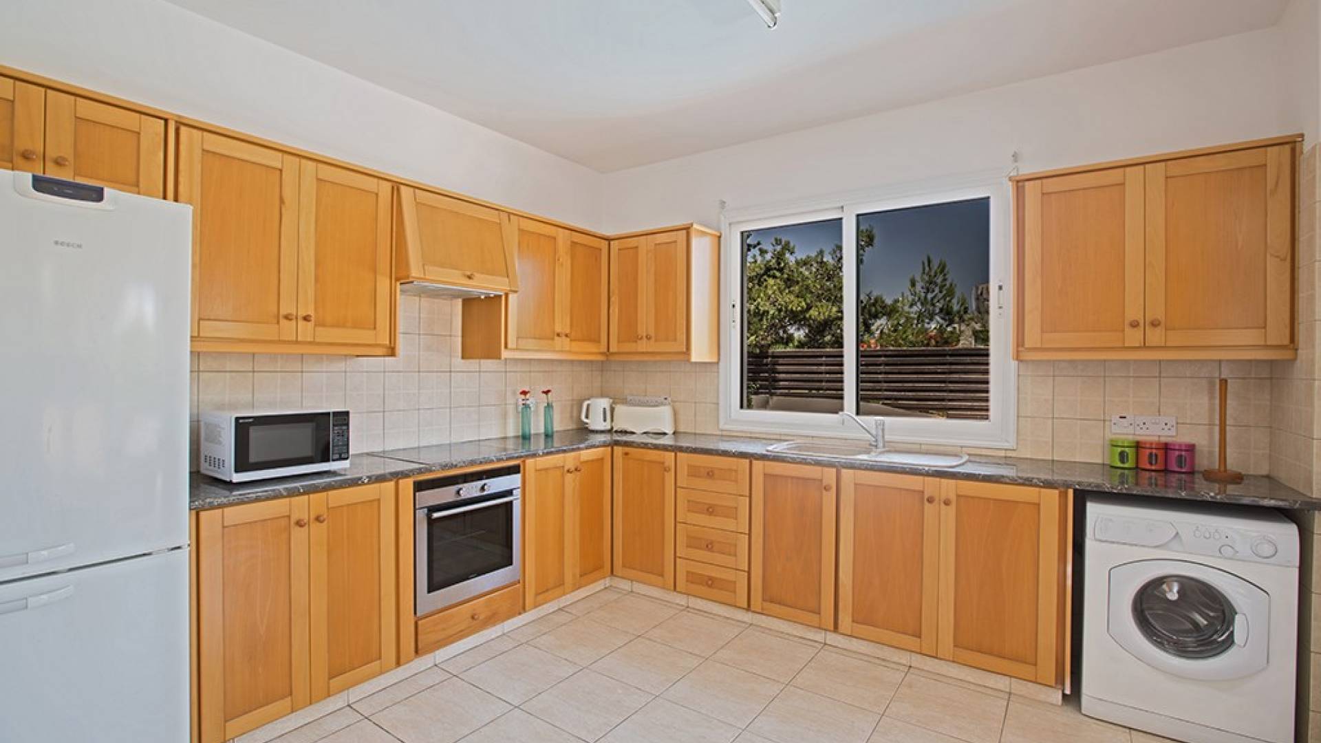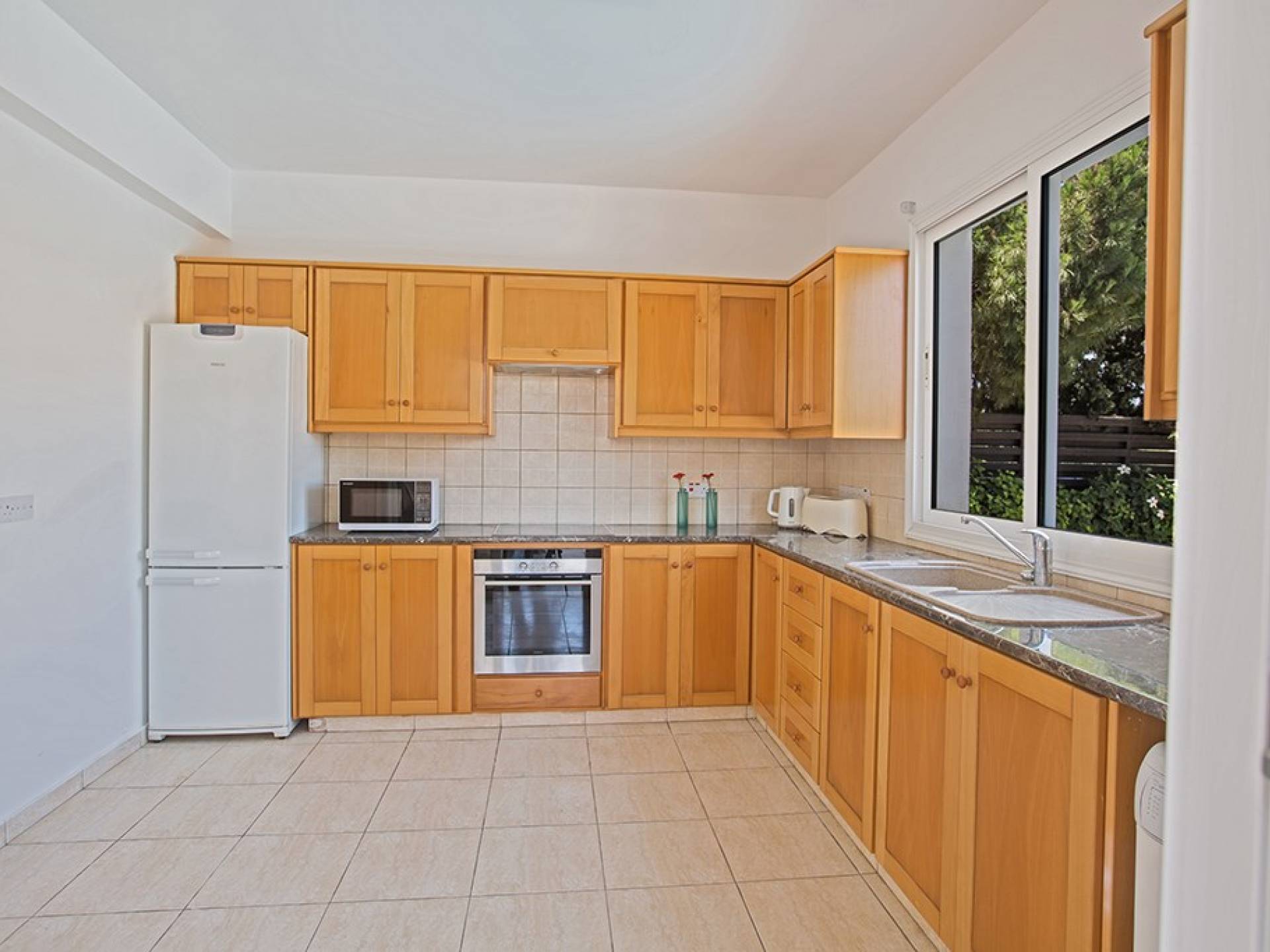 На нижнем этаже виллы есть гостиная и кухня открытой планировки с креслами для 6 человек. На кухне есть все необходимое для комфортного самостоятельного проживания. Двери патио ведут к бассейну и в сад. На этом же этаже есть туалет.