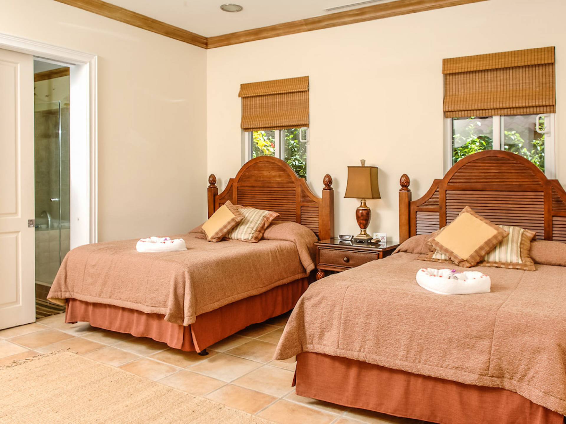 1 супер люкс и 3 основных люкса. Все 4 спальни имеют собственные ванные комнаты. В 5-й спальне также есть собственная ванная. Футбольный стол. Бассейн свободной формы с джакузи и баром у кромки воды. Высокоскоростной беспроводной Интернет и VOIP для бесплатных звонков в США и Канаду. Объемный звук 48-дюймовая развлекательная система с телевизором с плоским экраном и аудиосистема для iPod / CD. Постоянная горничная. Максимальная вместимость - 14 человек. Зарегистрированные и незарегистрированные. Одинокие мужчины, максимум 7 человек.