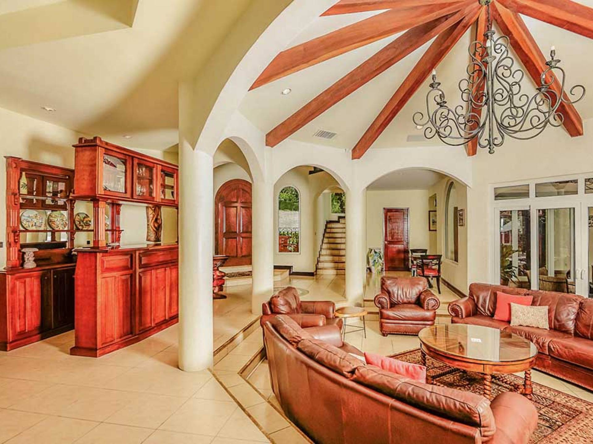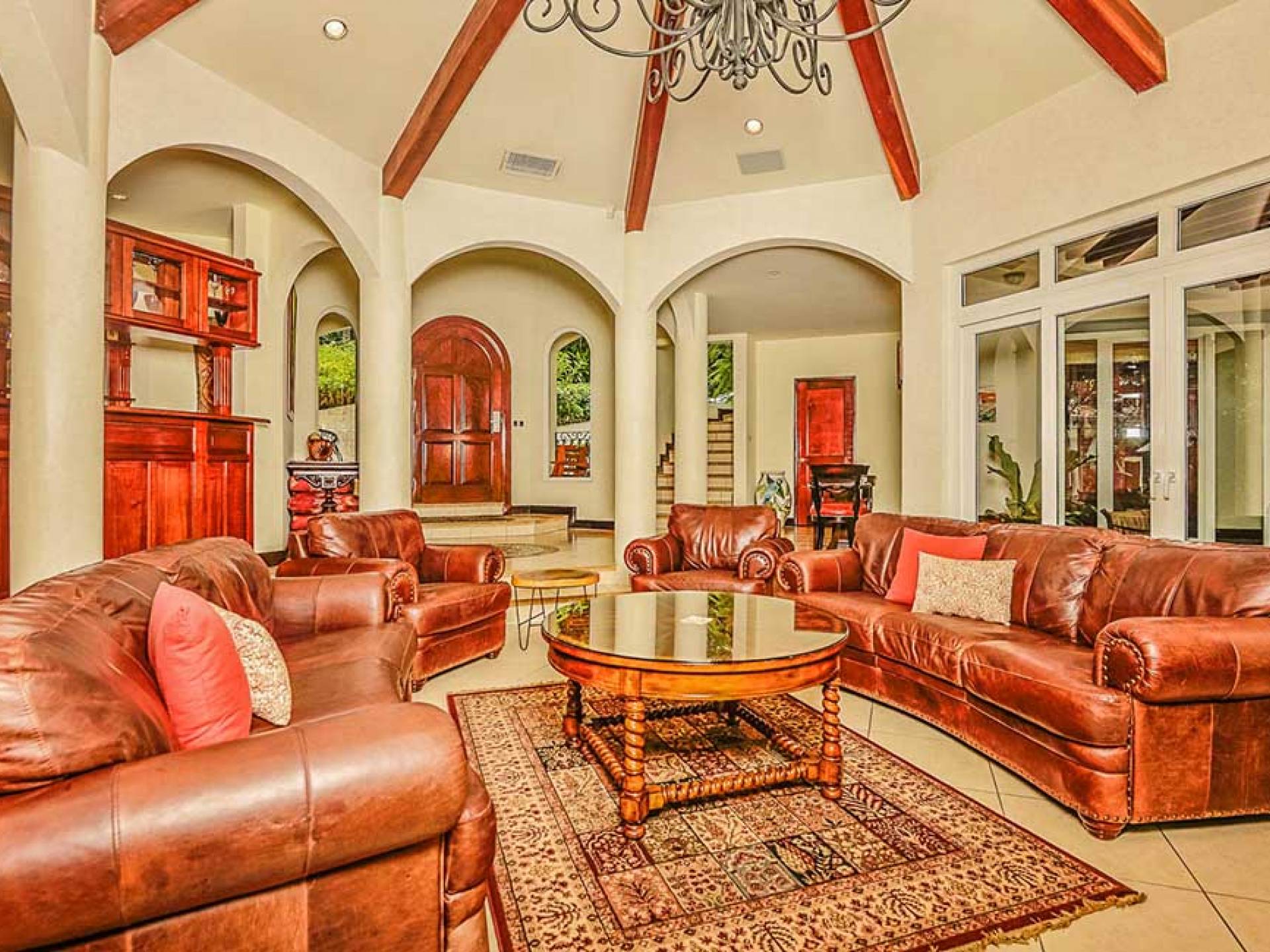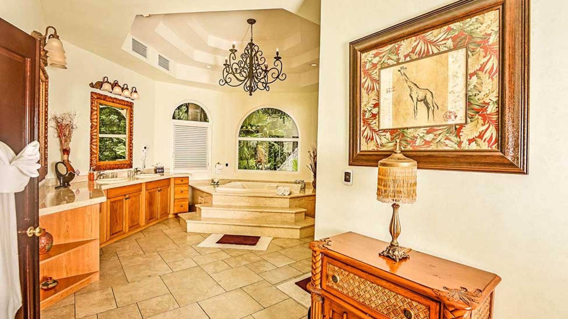 Harmon Estate был разработан для семей и корпоративных клиентов, которым нужен тихий, элегантный дом с безмятежной обстановкой. Это 5000 кв. Футов. усадьба заполнена импортным мрамором, гранитом и плиткой ручной работы, а также деревом резчика. Шесть спален. Главная спальня занимает весь верхний этаж и включает в себя гардеробную, кабинет, джакузи и биде. Две дополнительные спальни люкс с отдельными ванными комнатами и телевизорами. Небольшой квартал с полноценной кроватью, личным санузлом и телевизором. Плюс два гостевых домика площадью 800 кв. Футов с кухней и гостиной.