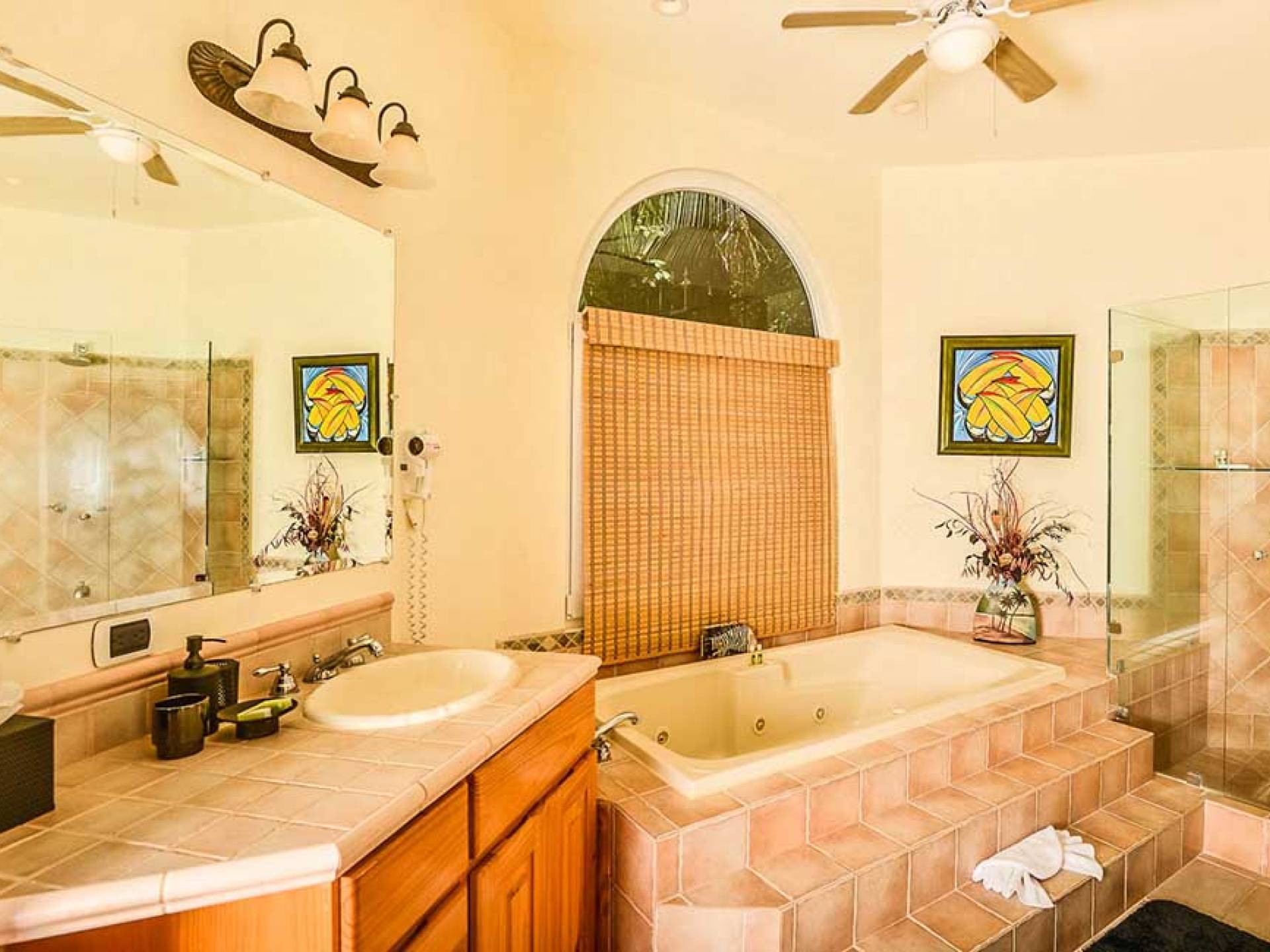 Частный бассейн с джакузи Бар у бассейна и барбекю викингов Полностью оборудованная кухня для гурманов Центральная вентиляция Прачечная с полноразмерной стиральной машиной и сушилкой Просторная гостиная и столовая Высокоскоростной беспроводной доступ в Интернет и бесплатные телефонные звонки в США и Канаду по VOIP Полный тренажерный зал Кабельное телевидение , центральная музыкальная система и большой телевизор с плоским экраном. Максимальная вместимость - 12 человек. Зарегистрированные и незарегистрированные. Одинокие мужчины, не более 6 лет.