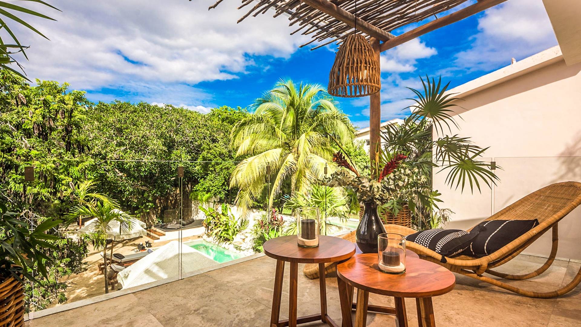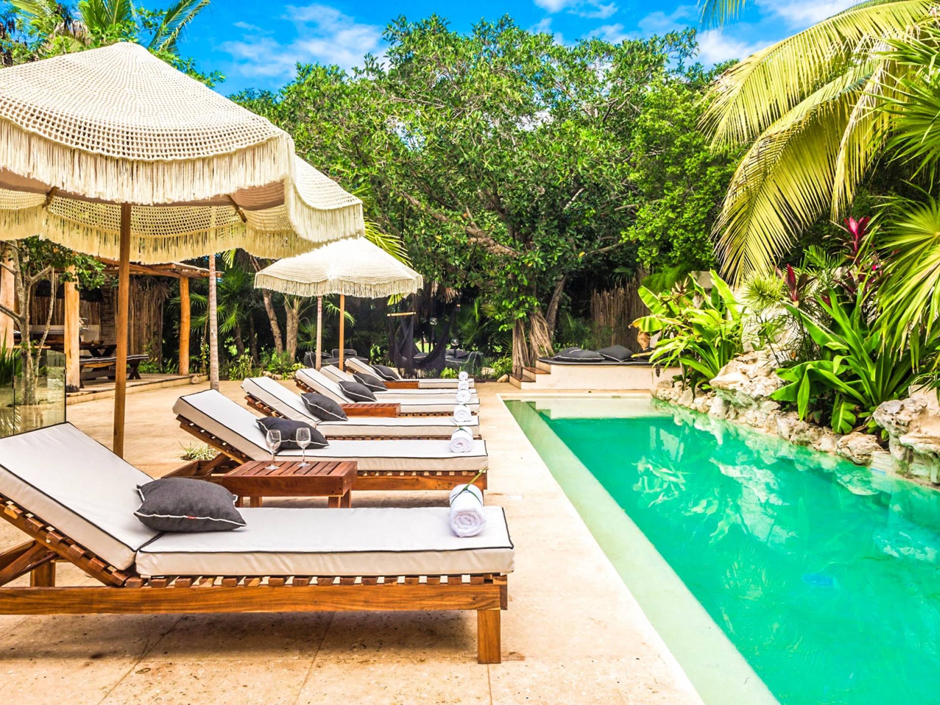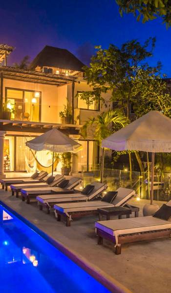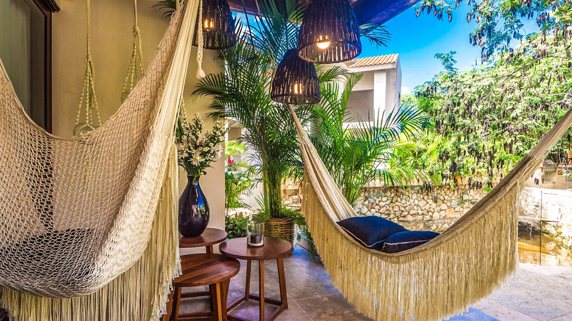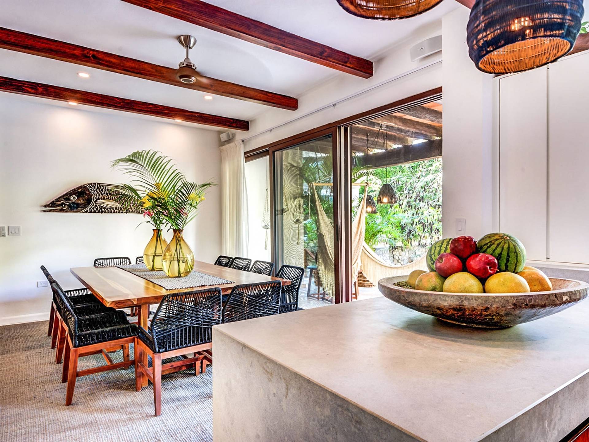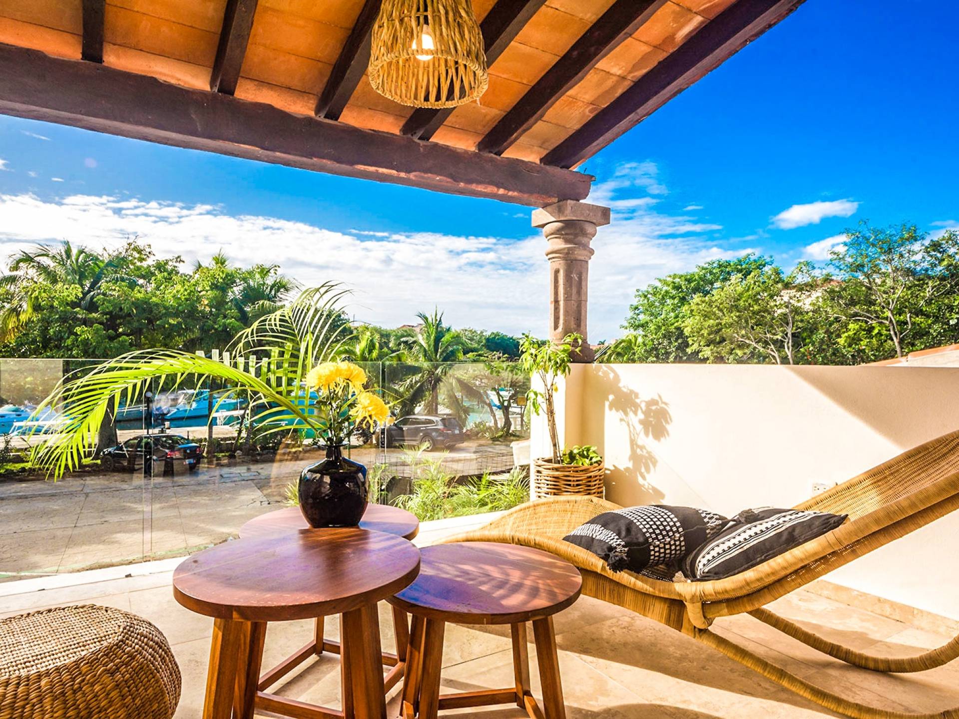 Вилла гордится внешними зонами общего пользования, которые включают просторную террасу на крыше с баром с видом на пристань для яхт и джунгли, а также палапу для более расслабляющего отдыха или более коллективных групповых мероприятий, таких как йога и медитация или спа-услуги. На первом этаже у бассейна вы также сможете насладиться солнечными лучами днем или устроить барбекю вечером и посидеть у костра.