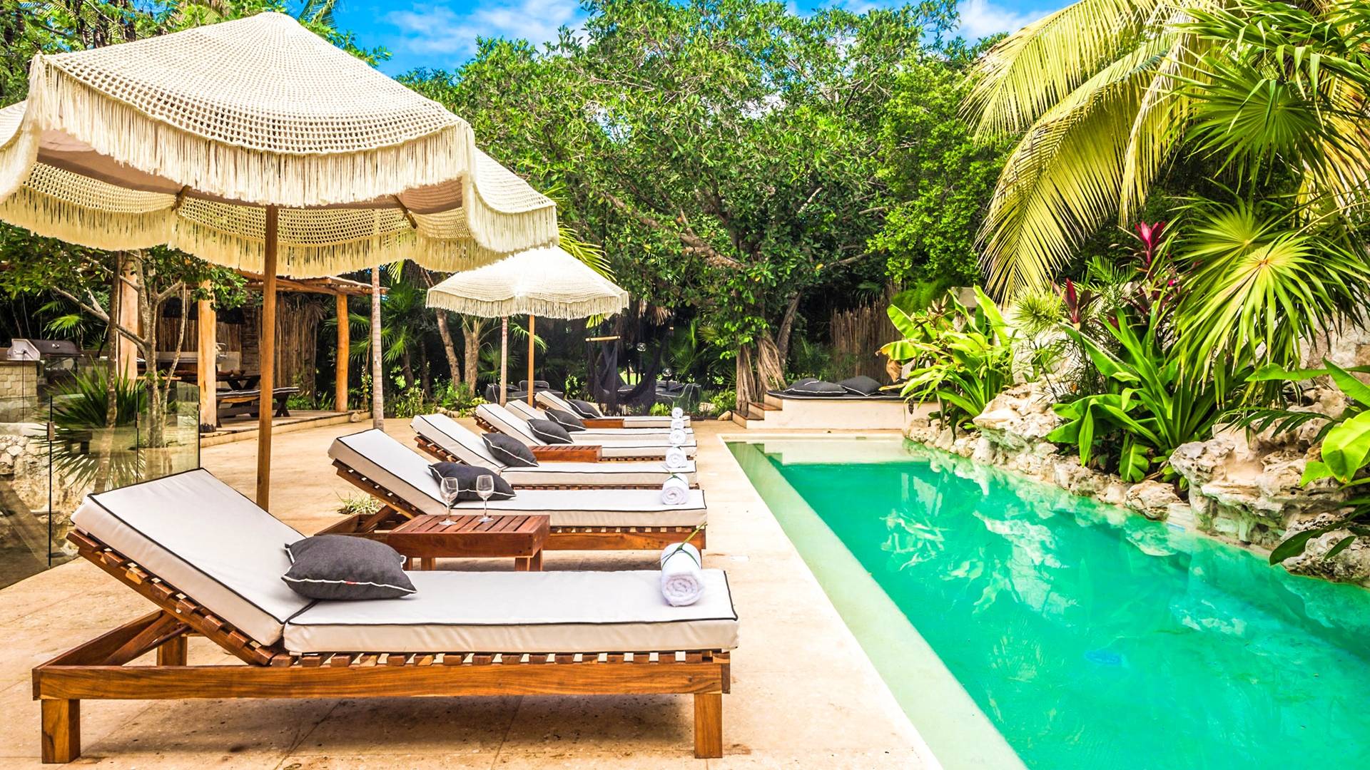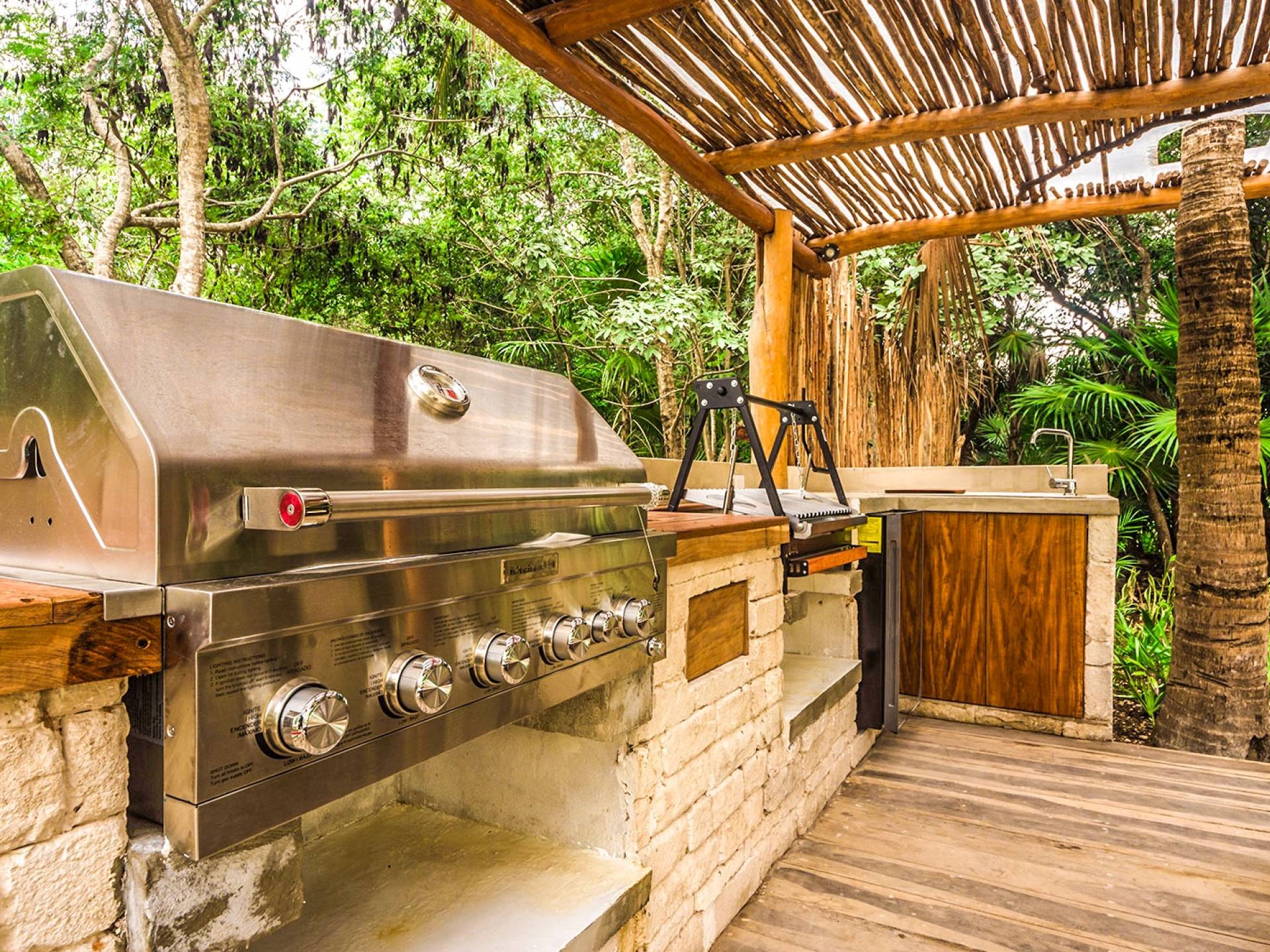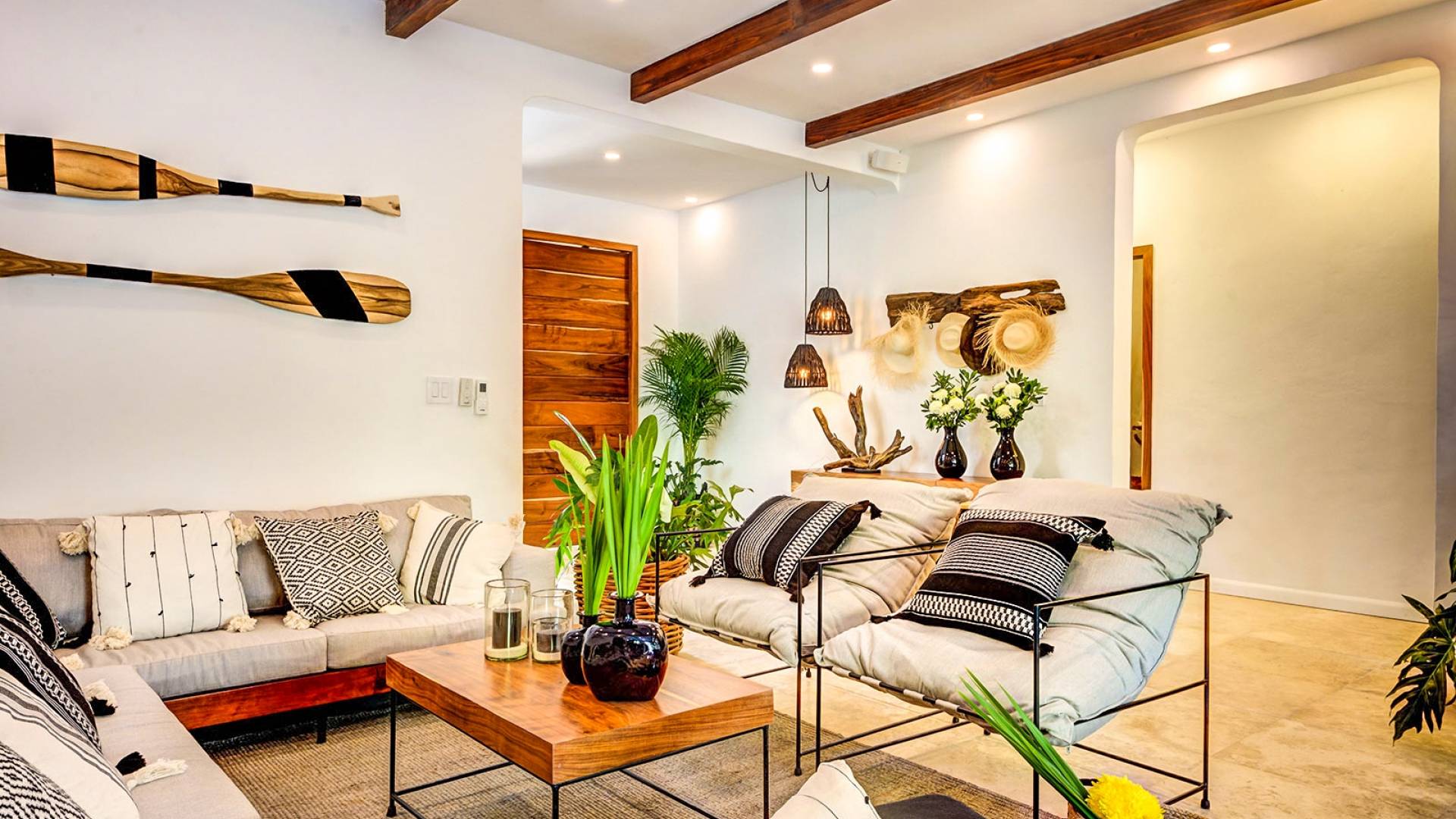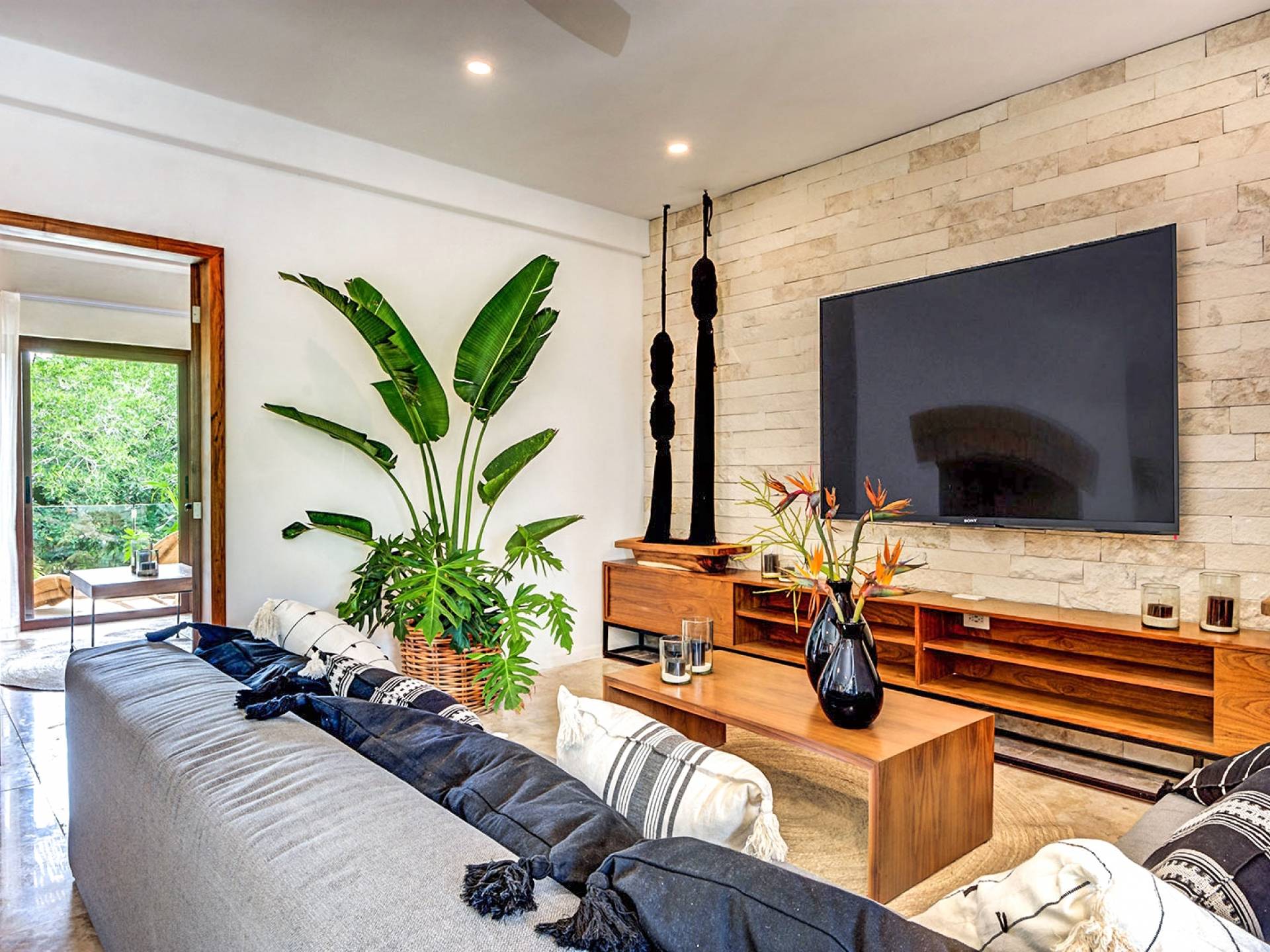 Вилла гордится внешними зонами общего пользования, которые включают просторную террасу на крыше с баром с видом на пристань для яхт и джунгли, а также палапу для более расслабляющего отдыха или более коллективных групповых мероприятий, таких как йога и медитация или спа-услуги. На первом этаже у бассейна вы также сможете насладиться солнечными лучами днем или устроить барбекю вечером и посидеть у костра.
