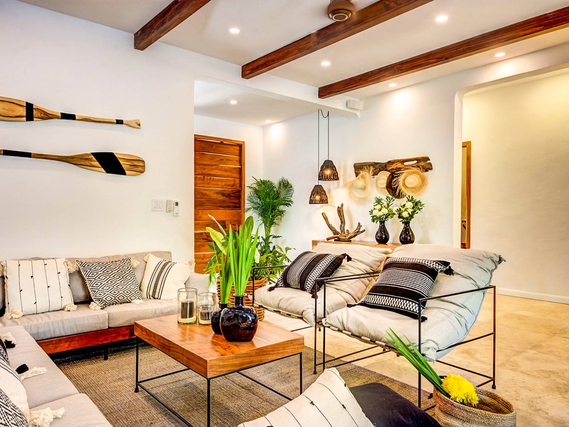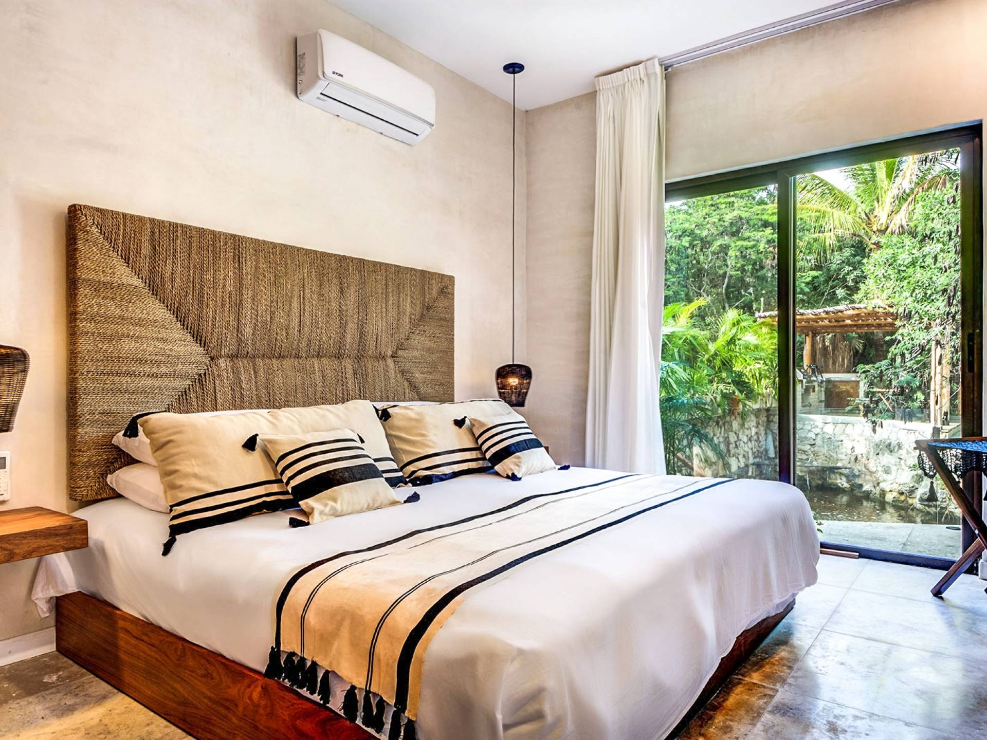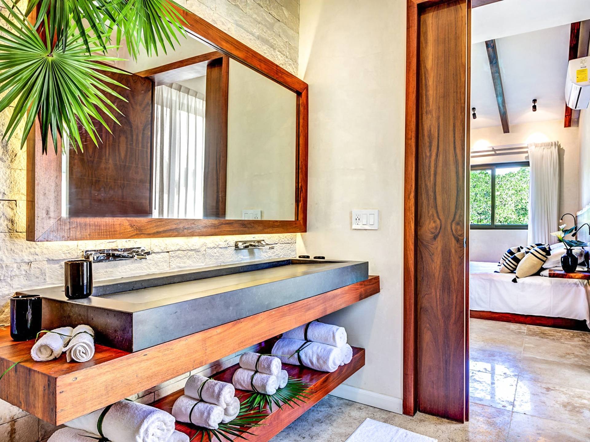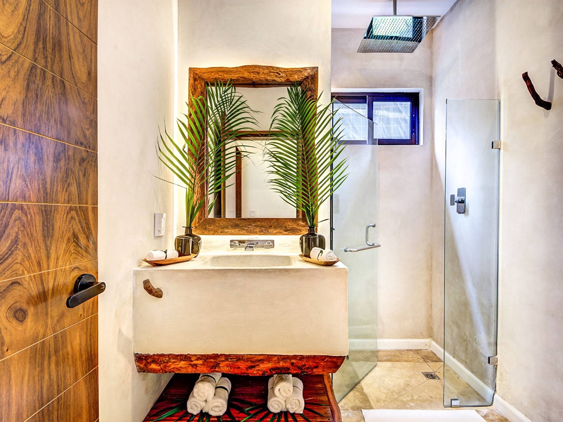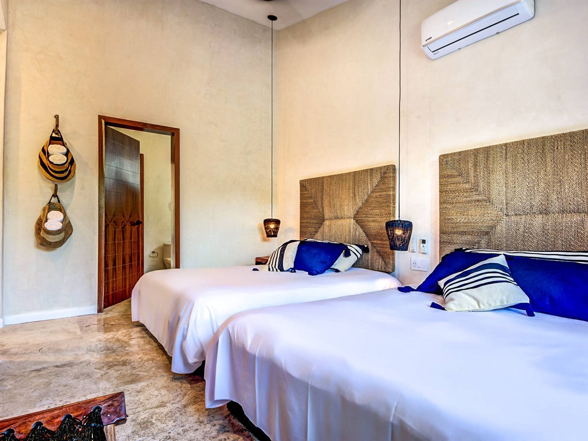 В Casa Cenote с 5 спальнями и 4 ванными комнатами могут с комфортом разместиться 12 гостей. Две спальни расположены на нижнем уровне, каждая с собственной ванной комнатой, а остальные 3 спальни расположены на верхнем уровне, главный люкс имеет свою собственную главную ванную комнату, а другие 2 спальни имеют общую ванную комнату.