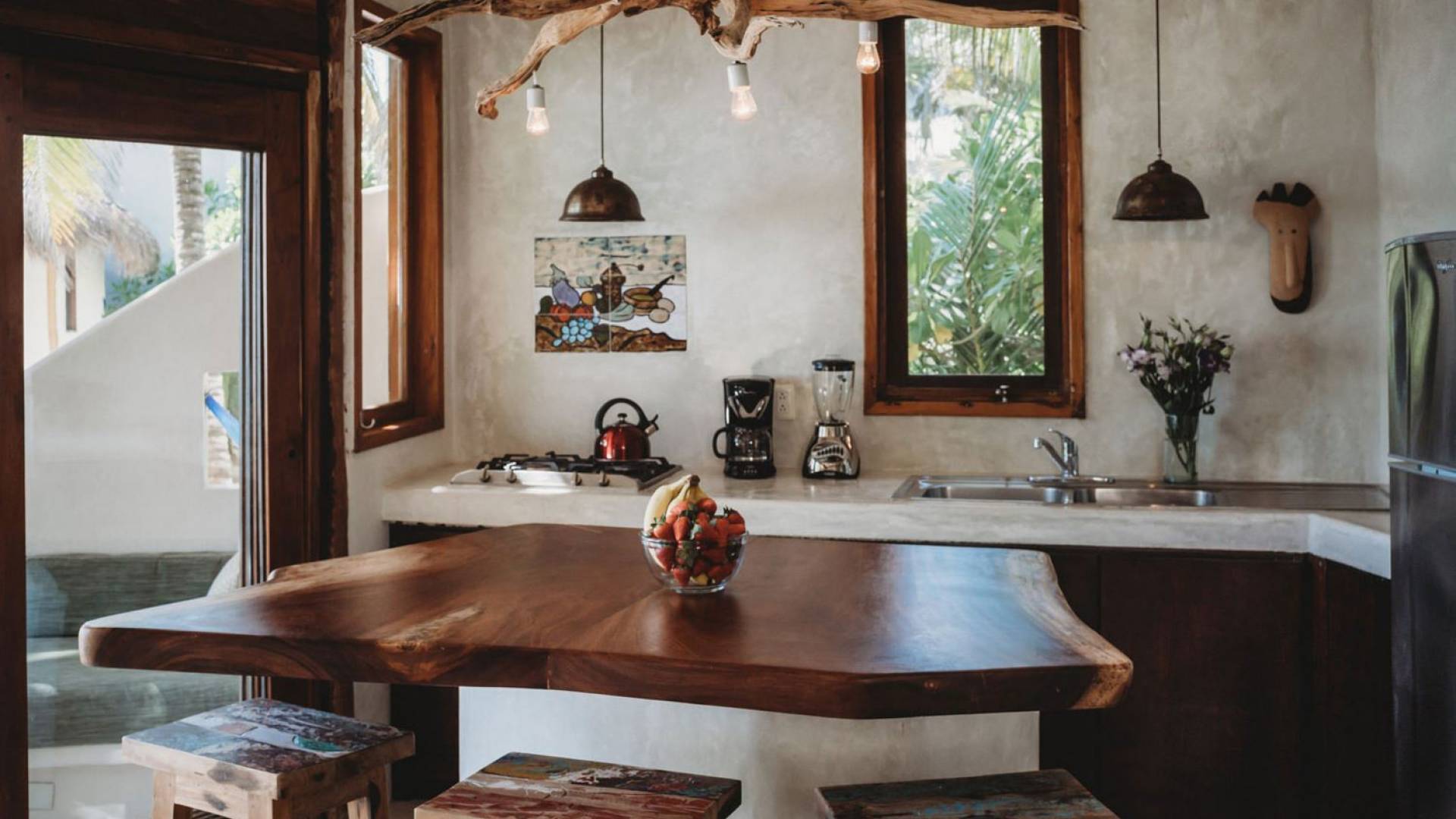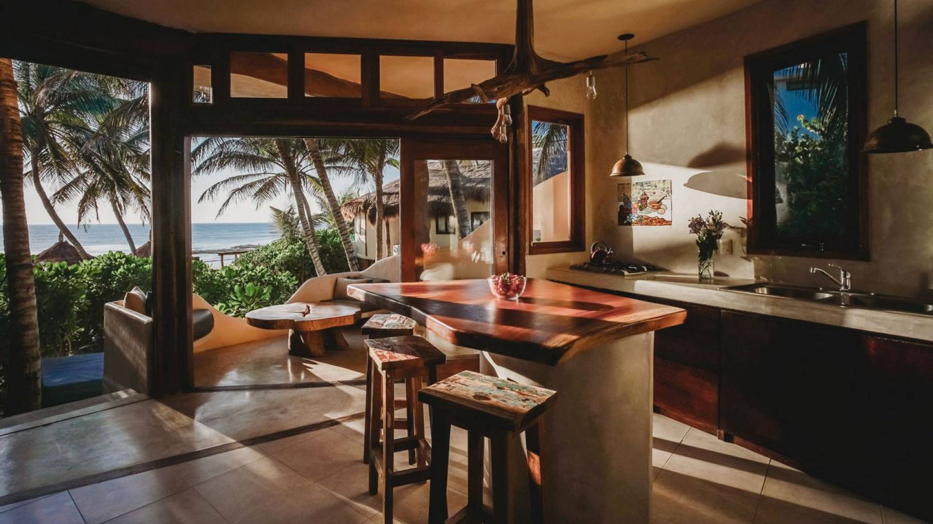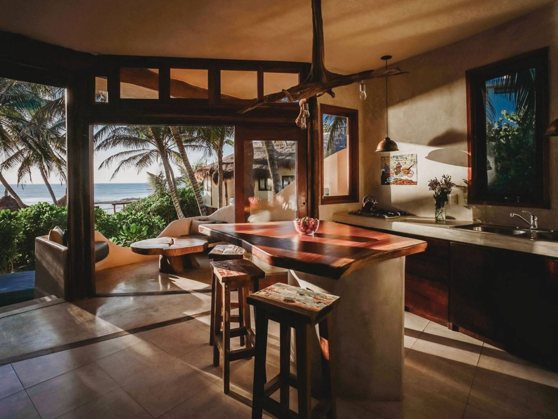 Casa Bonita Tulum - это роскошная вилла в аренду с 1 спальней. Casa Bonita - это красивая аренда на отпуск на пляже Тулум в нескольких шагах от моря. Bonita — романтический дом для двоих и уютный дом для семьи. На первом этаже есть две дополнительные кровати.