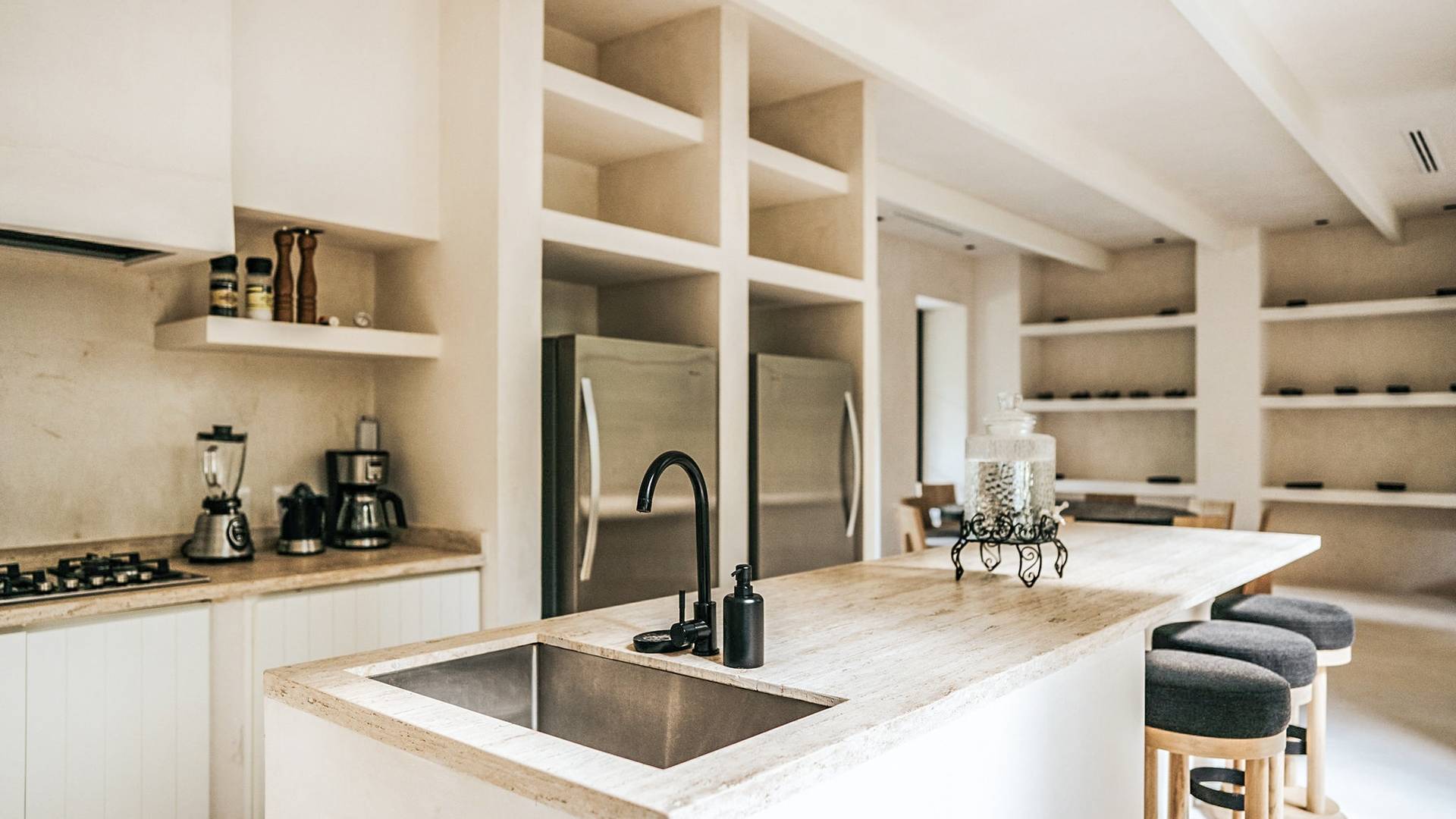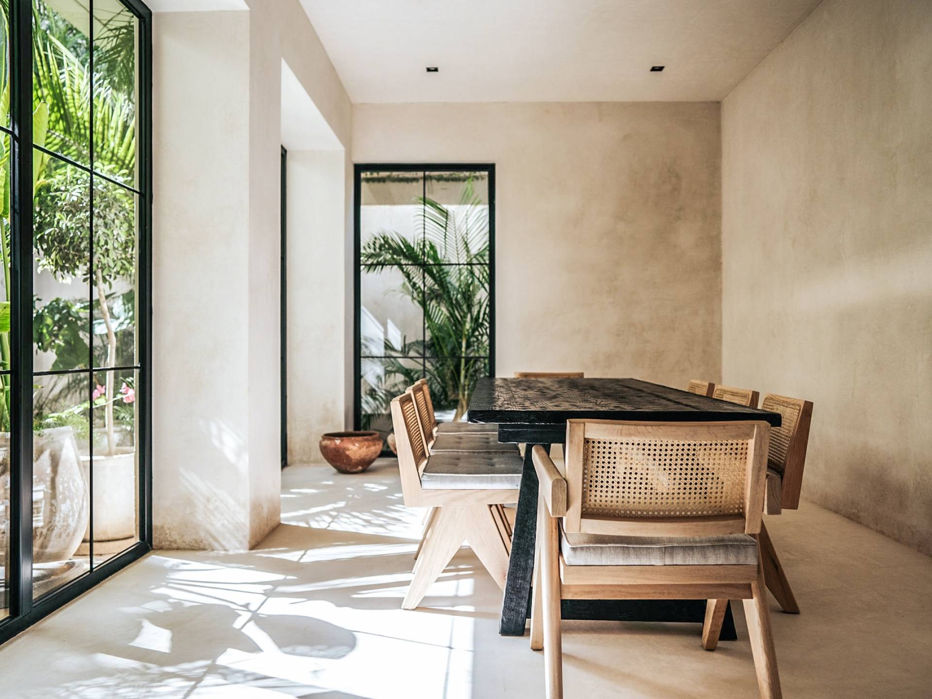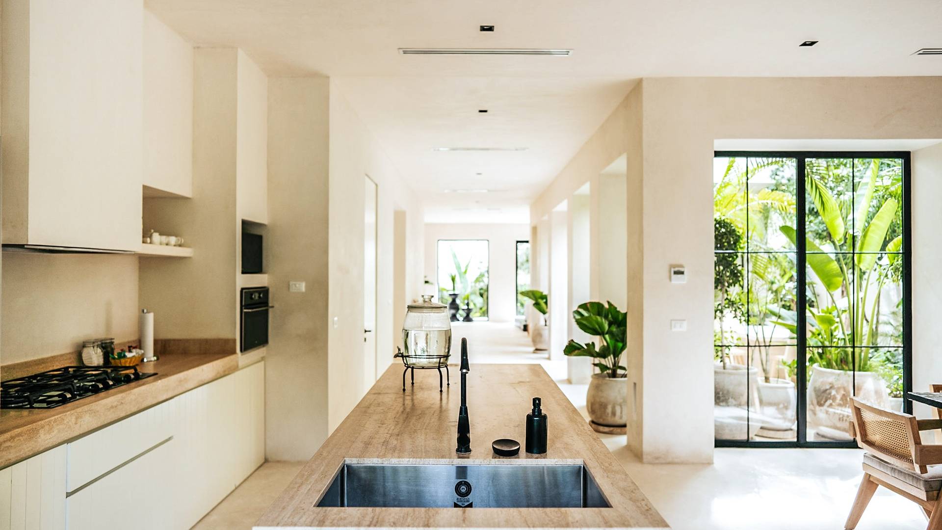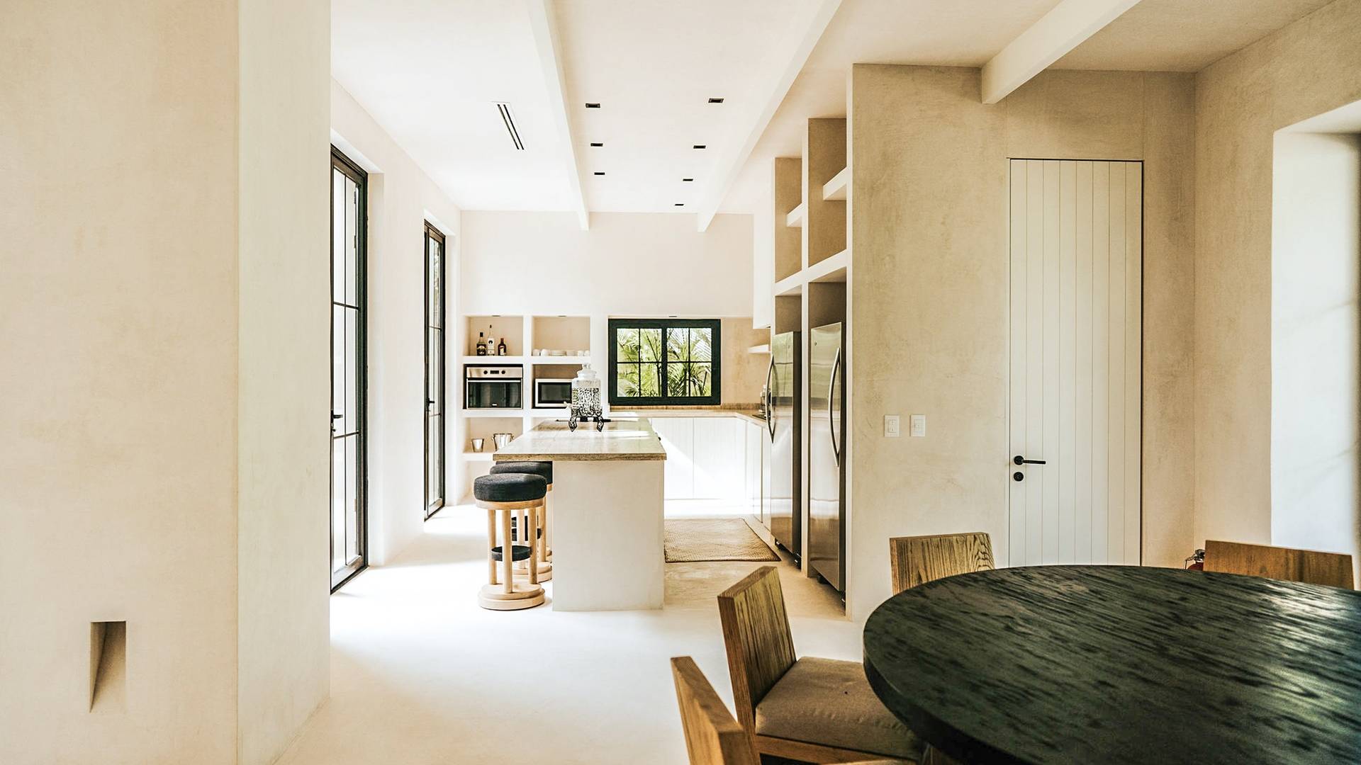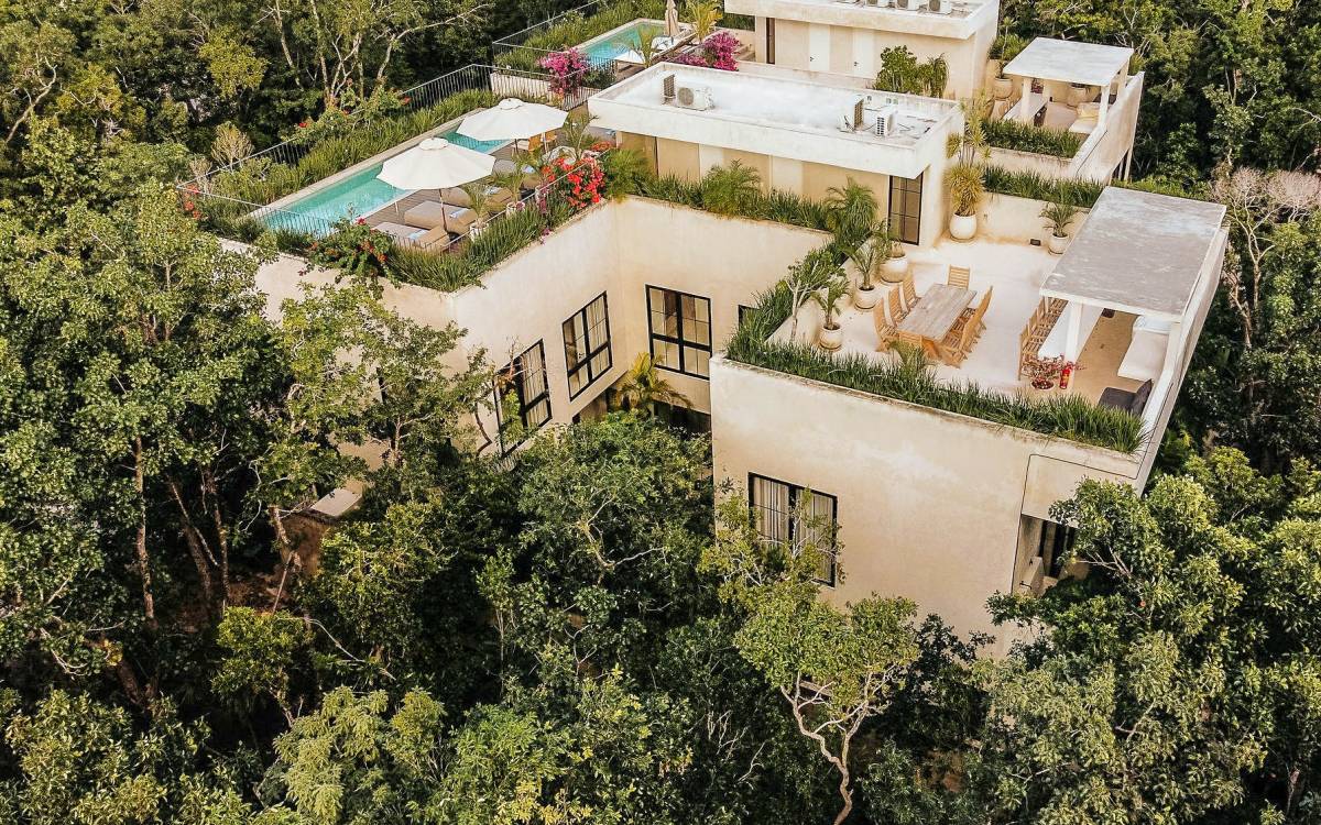 Вилла Империя Тулум представляет собой поместье, состоящее из 2 вилл площадью 500 кв. м каждая, с потолками двойной высоты, восемью спальнями и просторными помещениями общего пользования. Эти трехэтажные дома, предназначенные для любителей чистой и стильной эстетики, сначала приглашают вас в открытое пространство, где кухня, столовая и гостиная соединяются с центральным патио через стеклянные двери от пола до потолка.р>