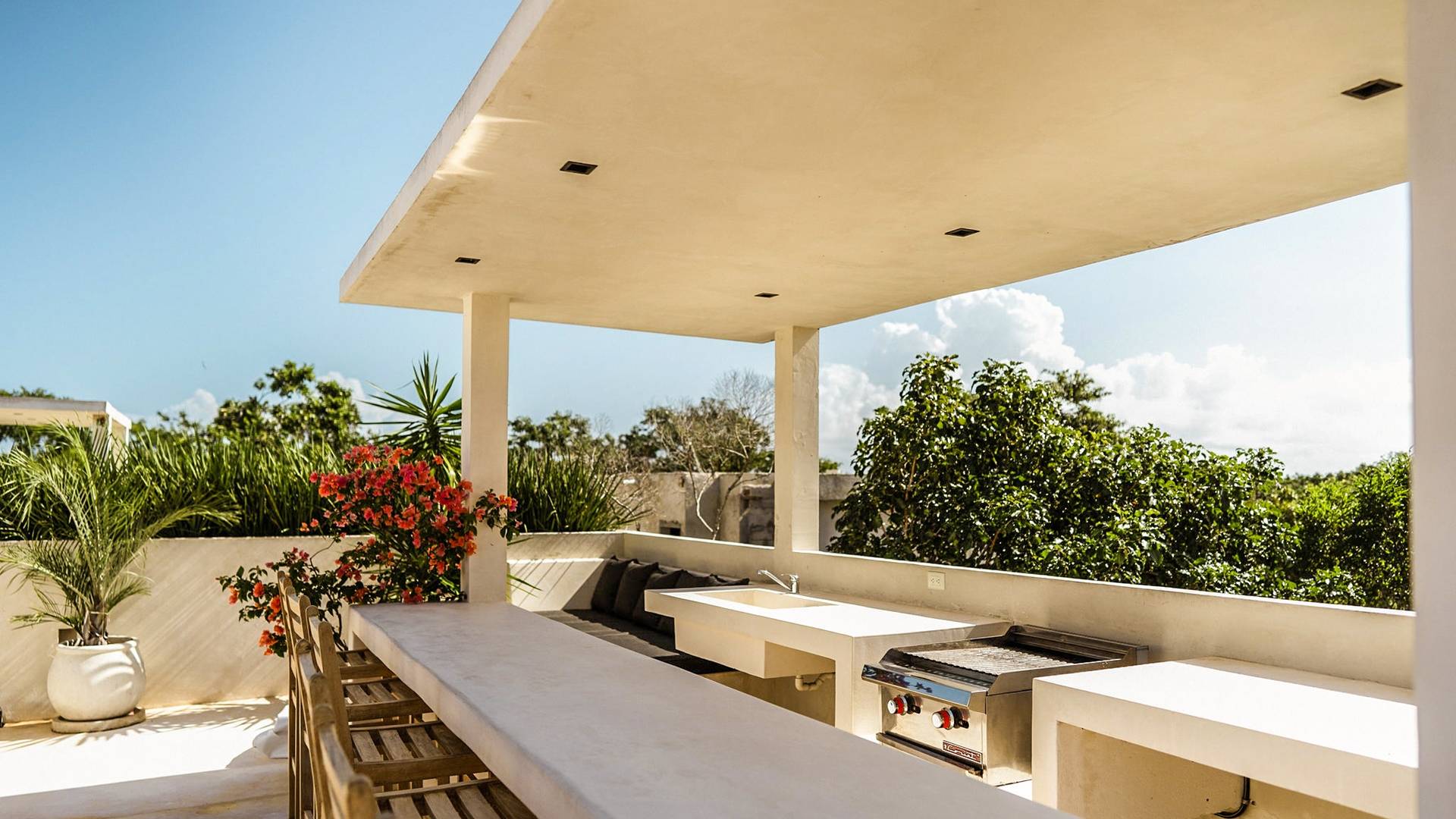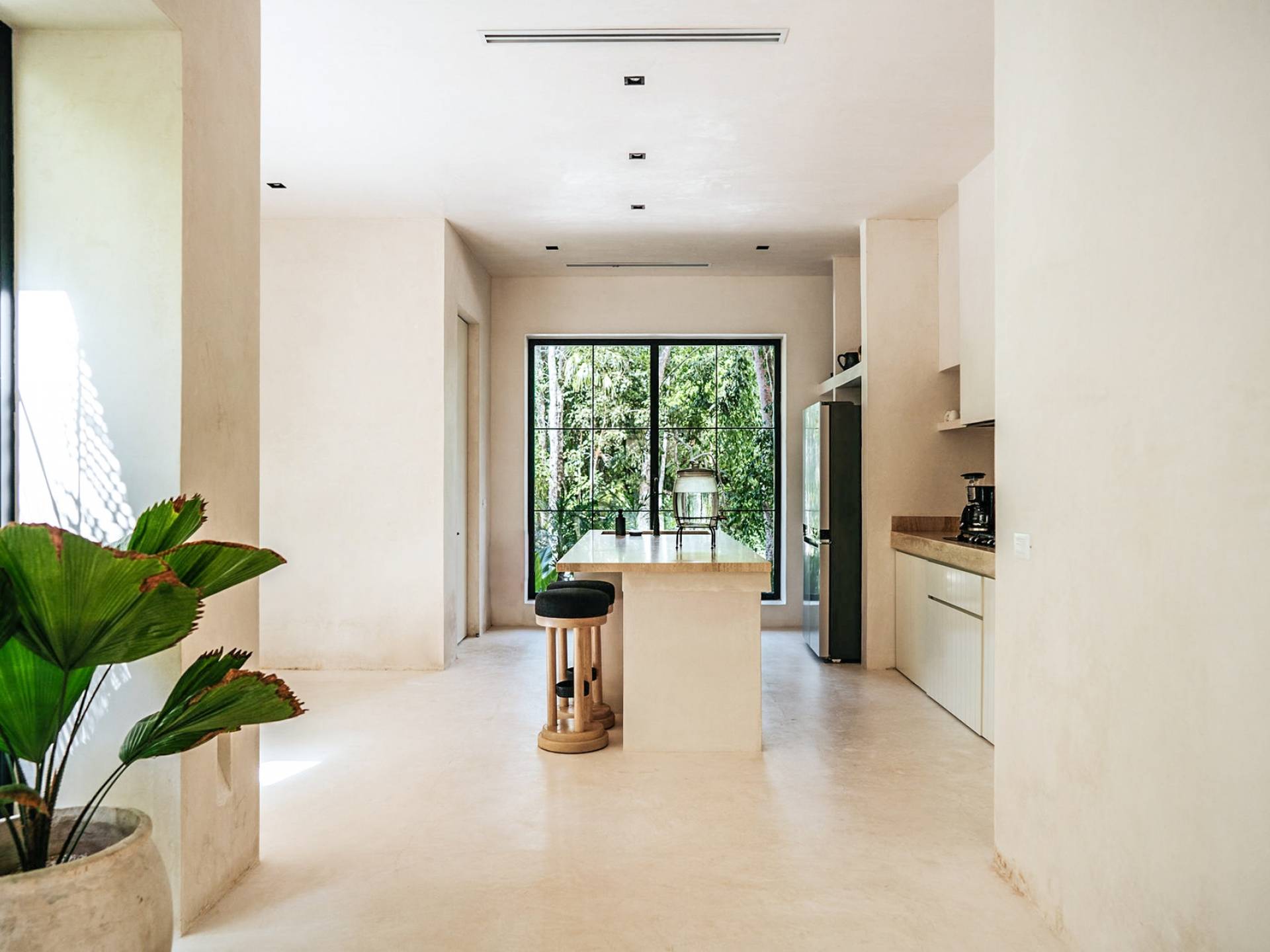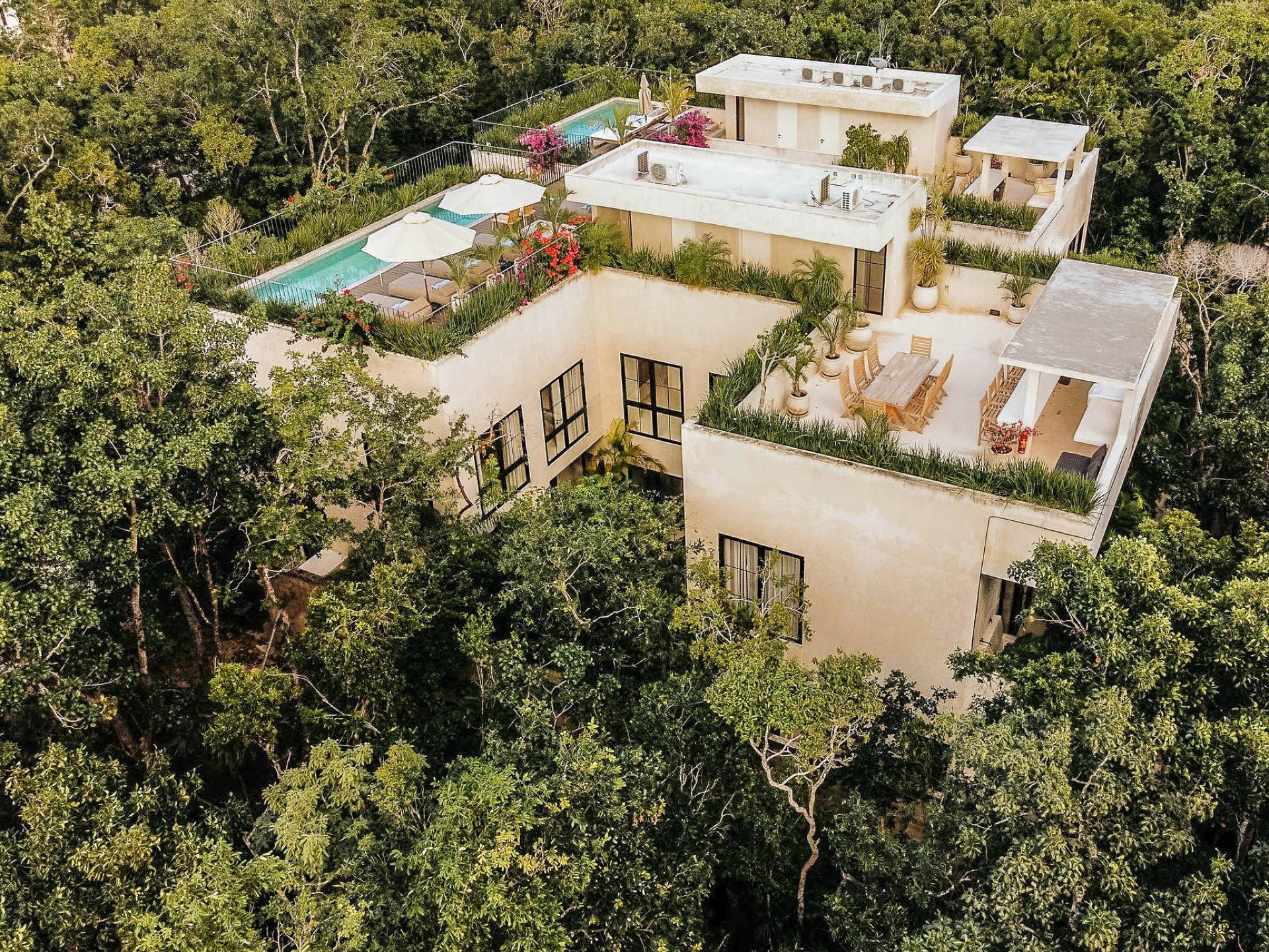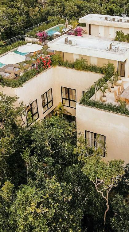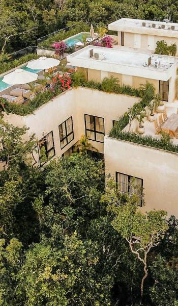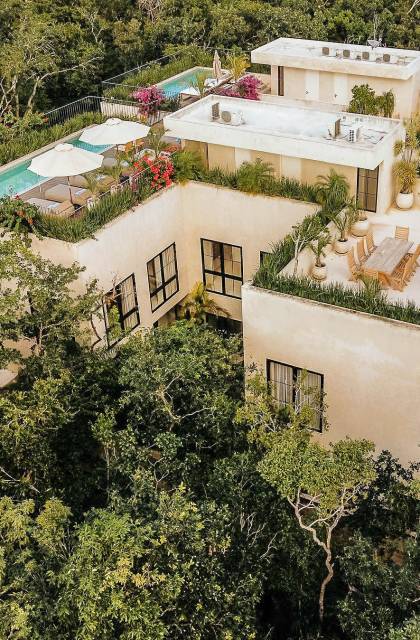 В каждой вилле есть полностью оборудованная кухня в стиле шеф-повара и большой остров с видом на столовую, а спокойная атмосфера гостиной сочетается с внутренним двором, расположенным в центре резиденции. На втором этаже каждой виллы вы найдете четыре спальни с превосходно оборудованными ванными комнатами. Почувствуйте себя как дома в сказочном частном саду с бассейном и грилем на крыше, откуда открывается захватывающий вид на великолепные божественные джунгли Ривьеры Майя.