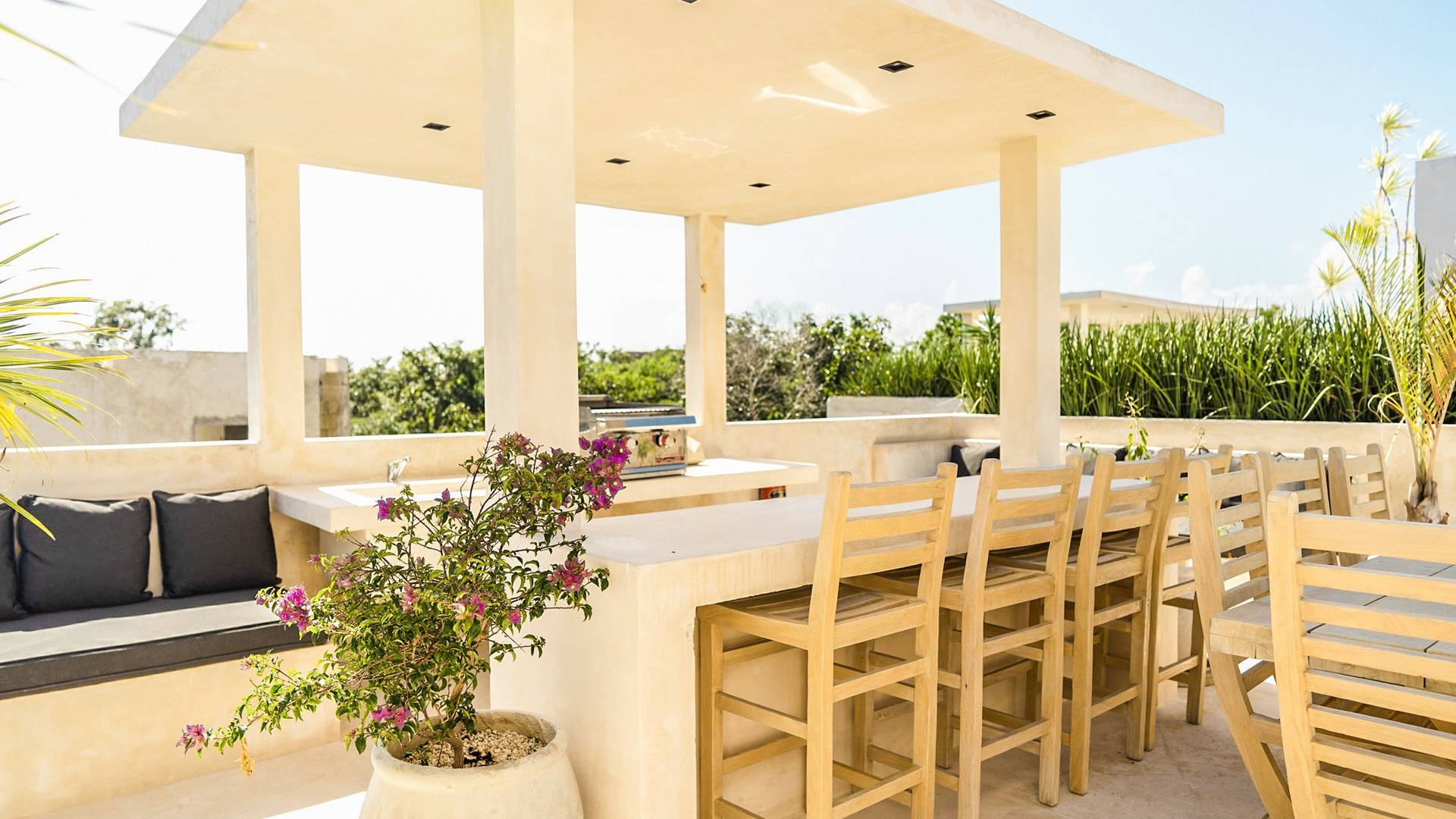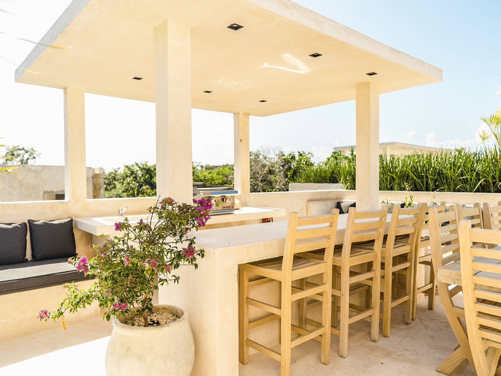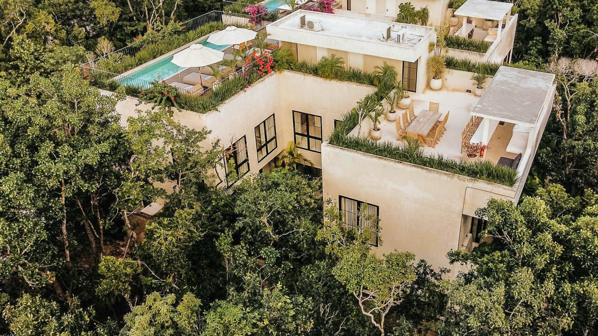 В каждой вилле есть полностью оборудованная кухня в стиле шеф-повара и большой остров с видом на столовую, а спокойная атмосфера гостиной сочетается с внутренним двором, расположенным в центре резиденции. На втором этаже каждой виллы вы найдете четыре спальни с превосходно оборудованными ванными комнатами. Почувствуйте себя как дома в сказочном частном саду с бассейном и грилем на крыше, откуда открывается захватывающий вид на великолепные божественные джунгли Ривьеры Майя.