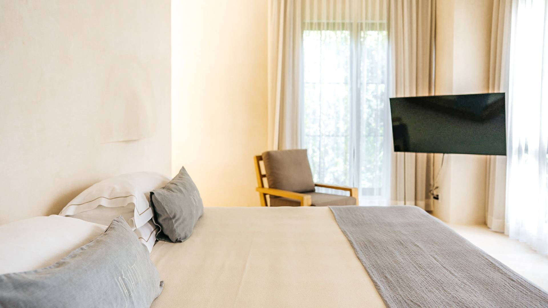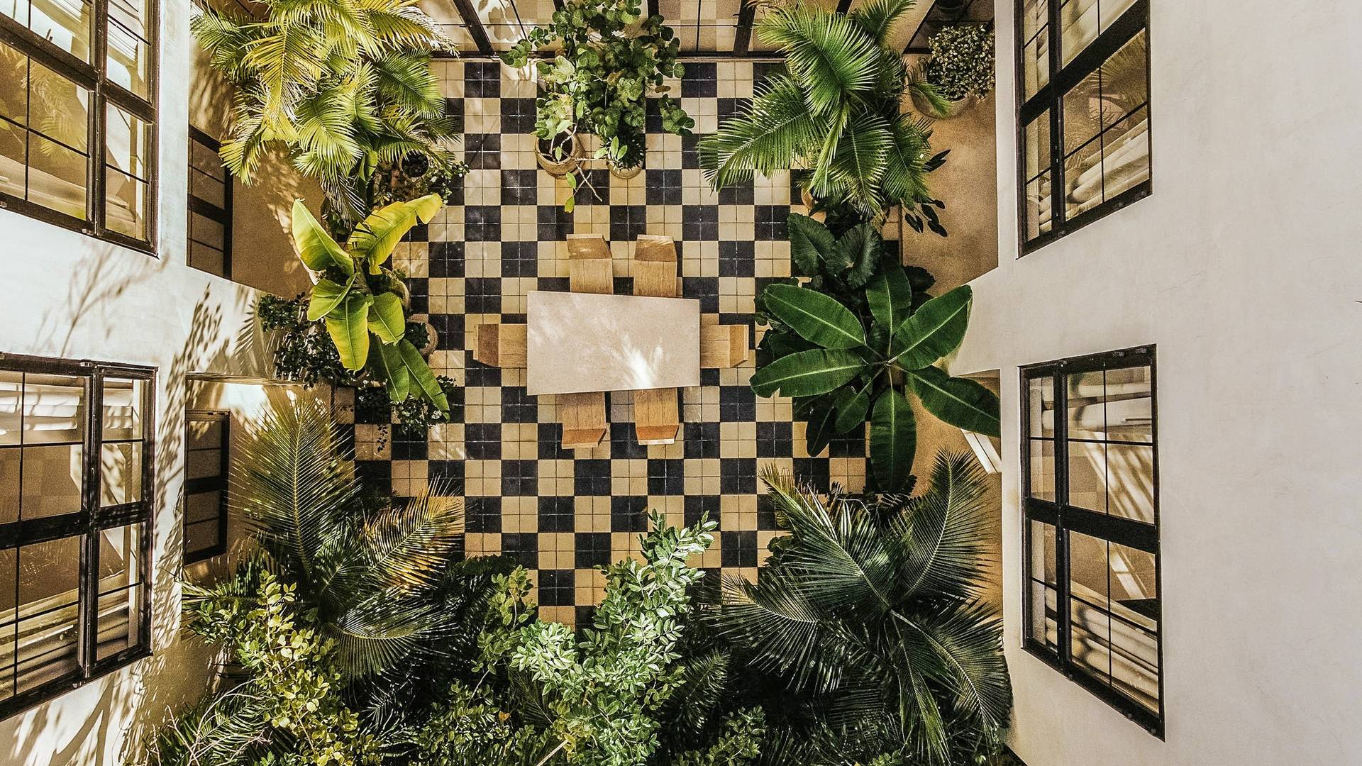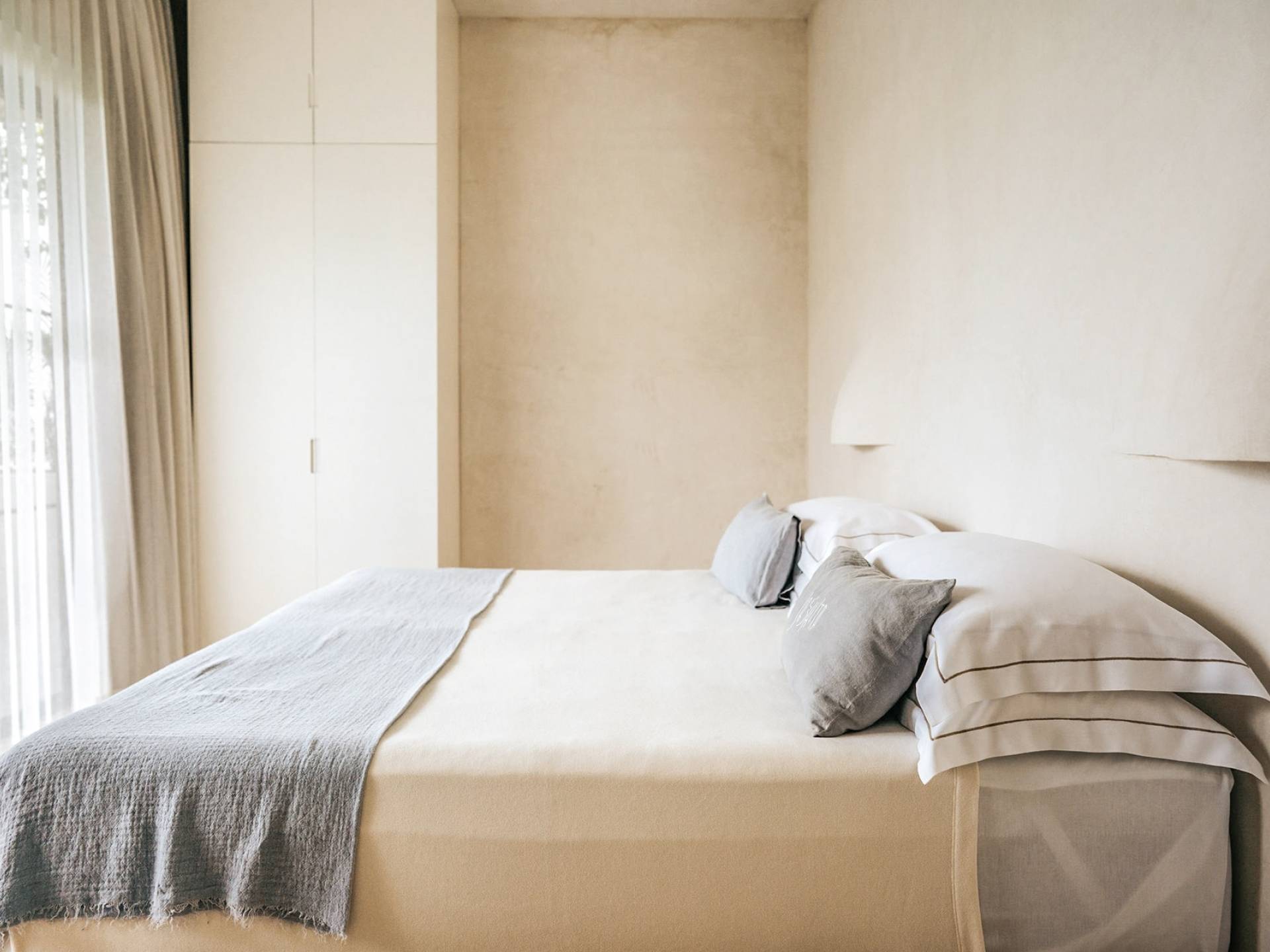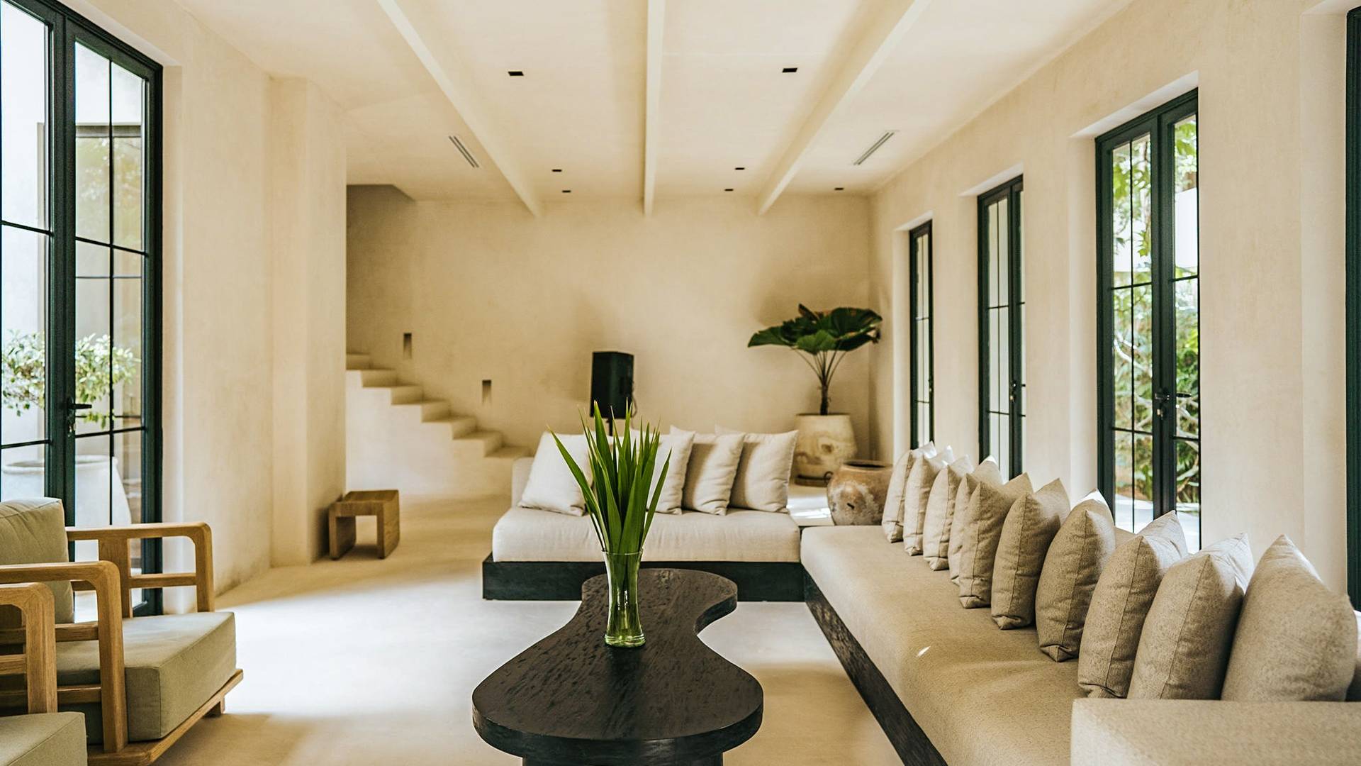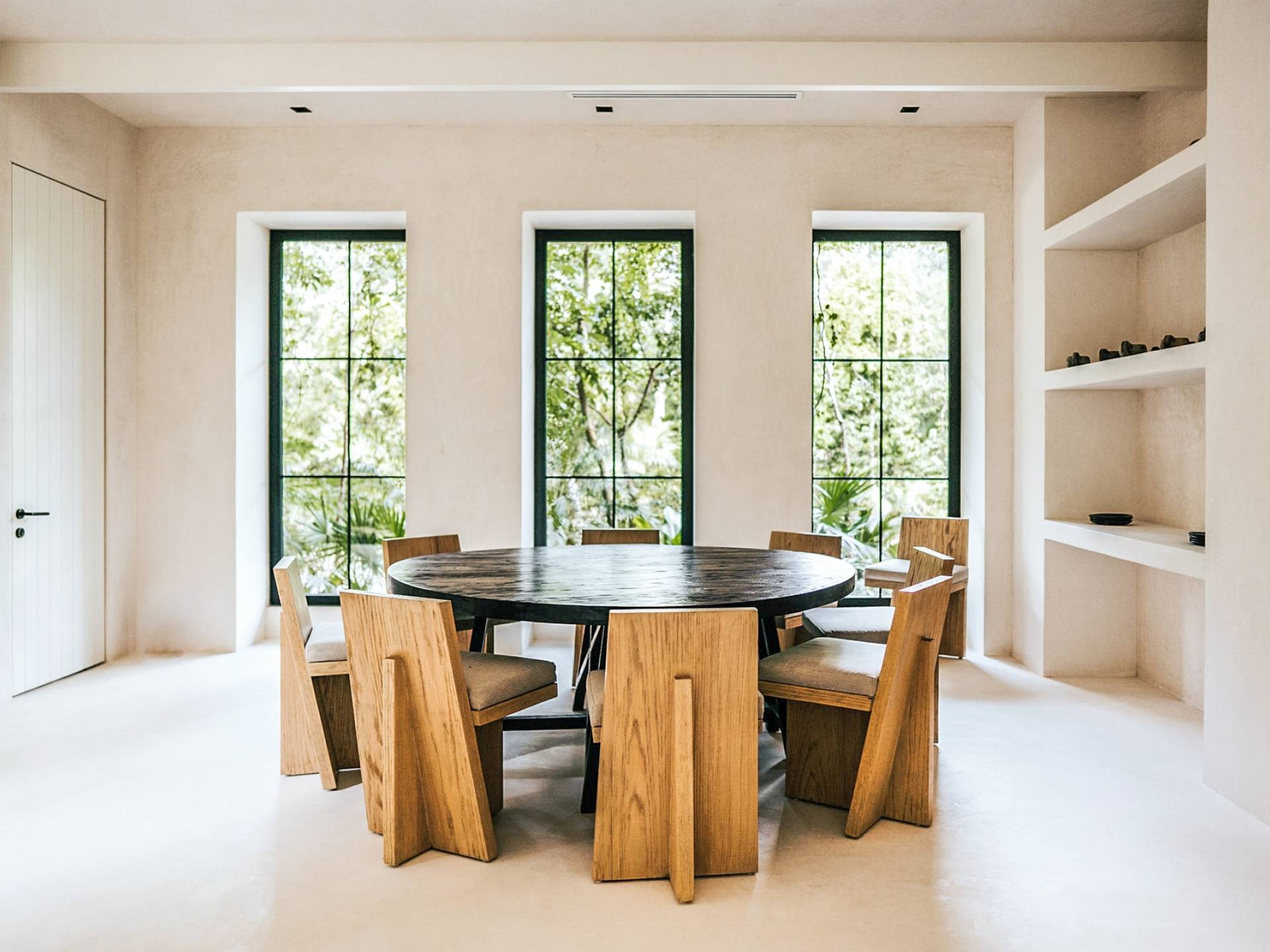 На полностью оборудованной кухне есть большой остров, обращенный к столовой, а умиротворяющая атмосфера гостиной сливается с внутренним двором в центре резиденции.