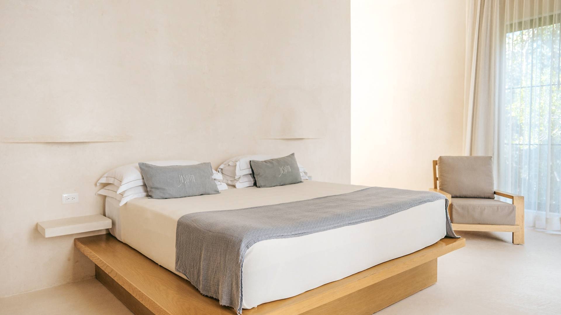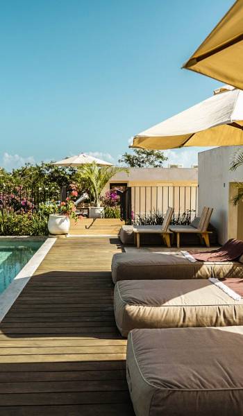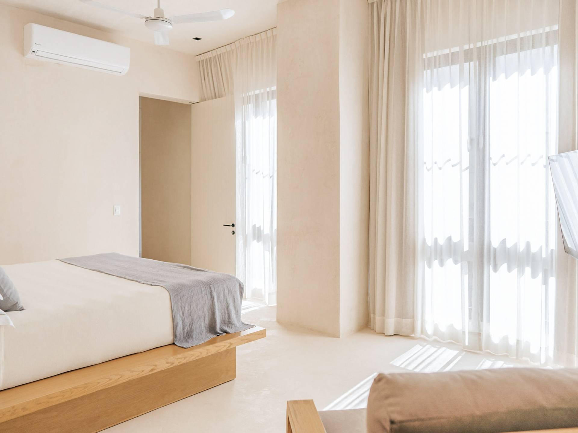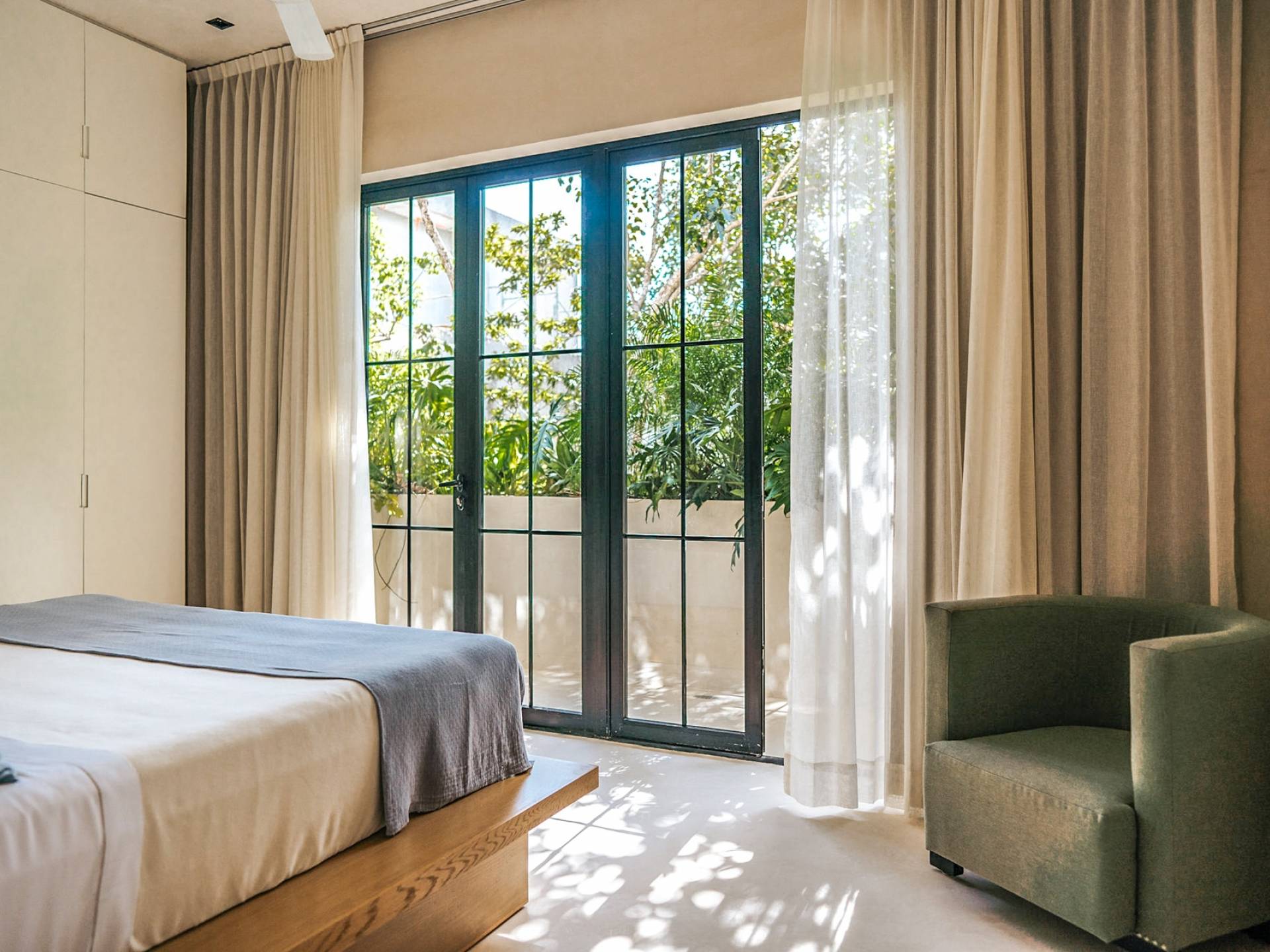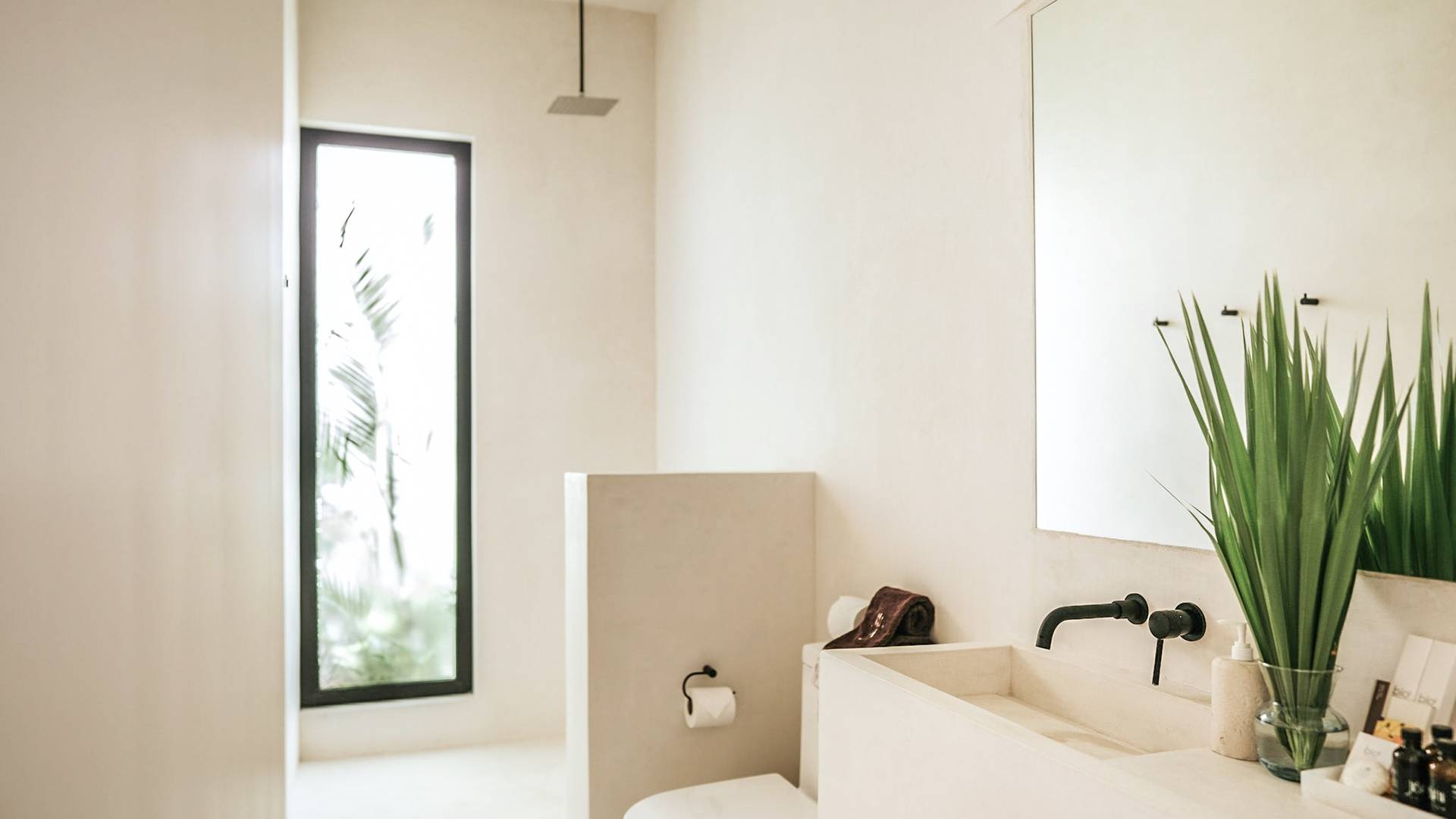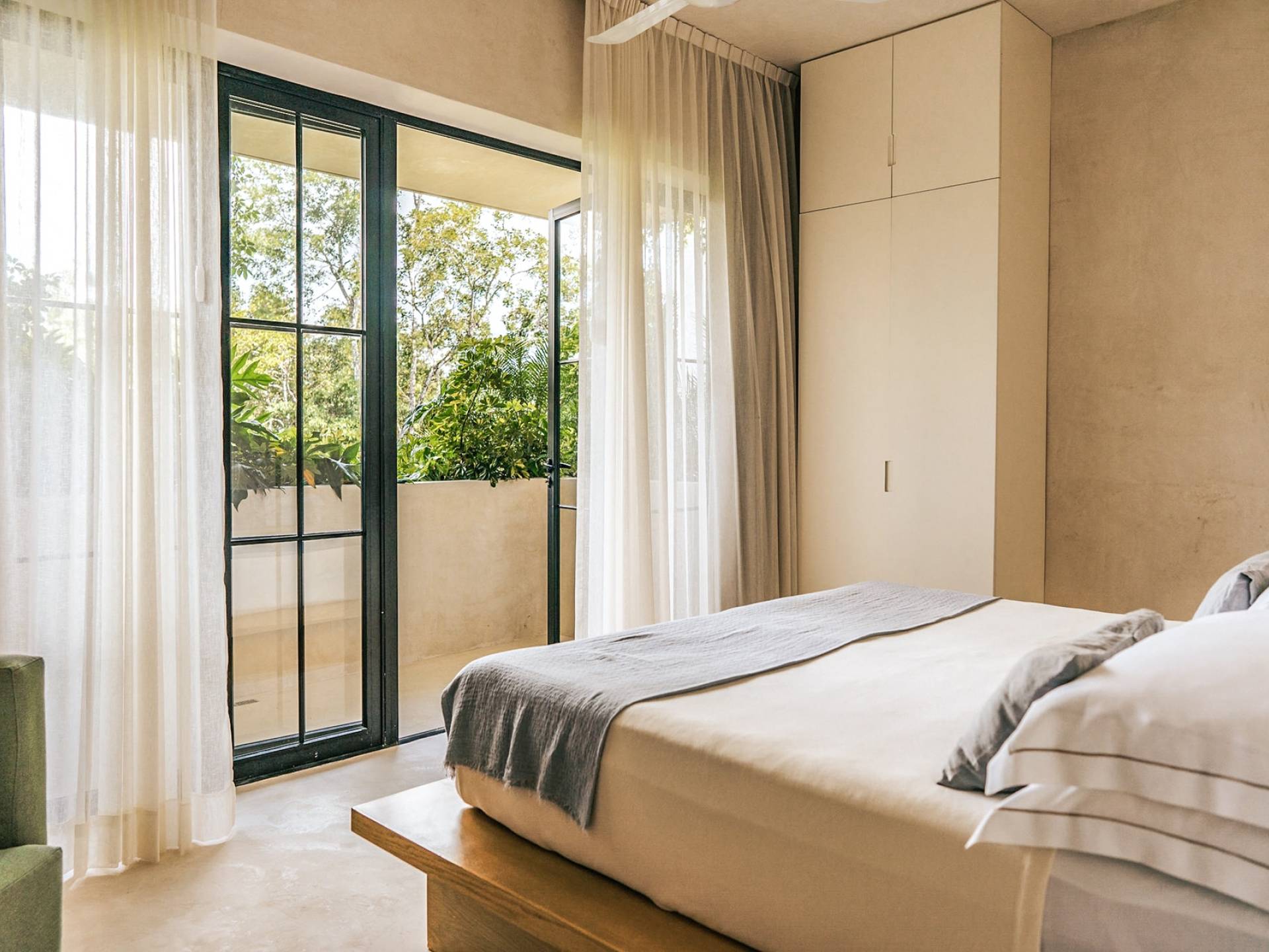 Вилла Вирджиния - это трехэтажный дом, созданный для ценителей чистой и стильной эстетики. Сначала вы попадаете в открытое пространство, где кухня, столовая и гостиная соединяются с центральным патио через стеклянные двери. Эта частная вилла в Тулуме с двойными потолками, четырьмя спальнями и просторными помещениями общего пользования помещает изящную простоту посреди джунглей.