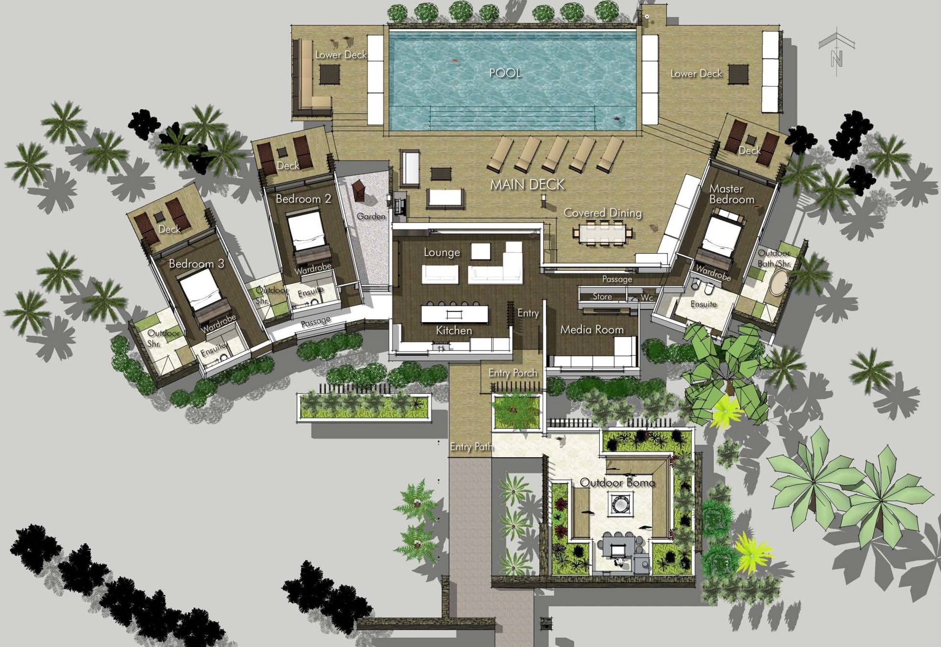 Дом окружает большой панорамный бассейн и находится всего в нескольких шагах от мягкого песка и плещущегося океана VOMO. Полы из американского дуба ведут к обширным палубам, охлаждаемым единственной на острове системой охлаждения с тонкодисперсным туманом, и обставлены современной мебелью Dedon, зонами отдыха и крытыми столовыми на открытом воздухе. Широкие ступени ведут в бассейн, обеспечивая неглубокие варианты. Душ у бассейна обеспечивает плавный переход от пляжа к BeacHouse. Медиа-зал предлагает развлечения для всех гостей.