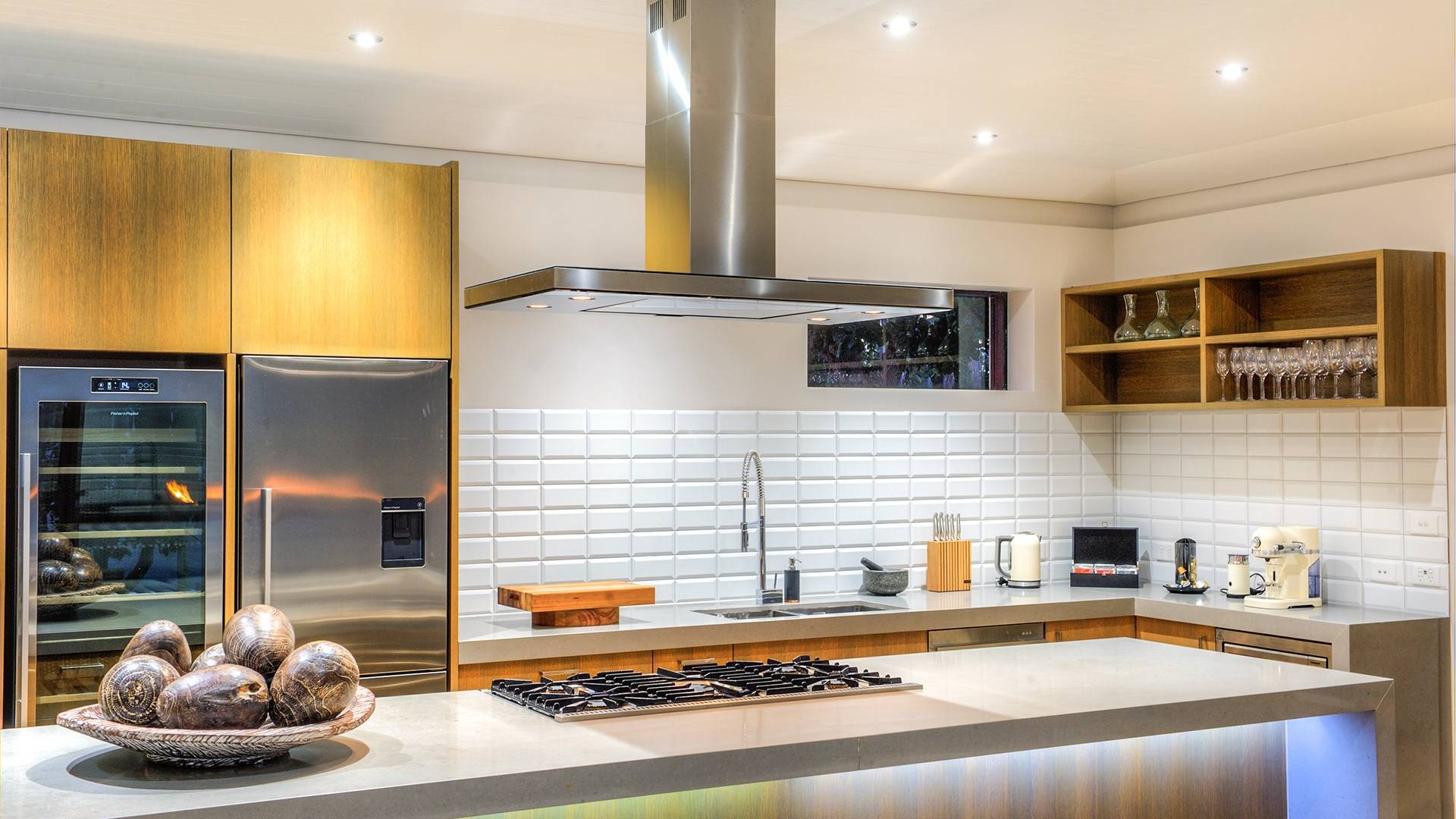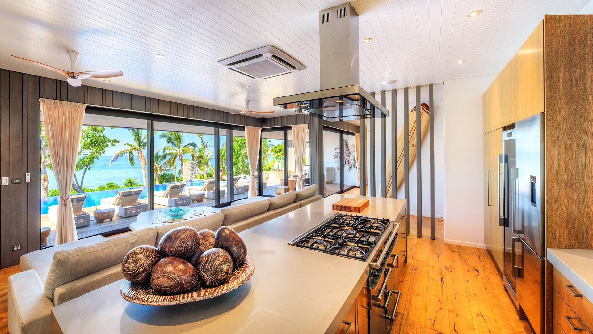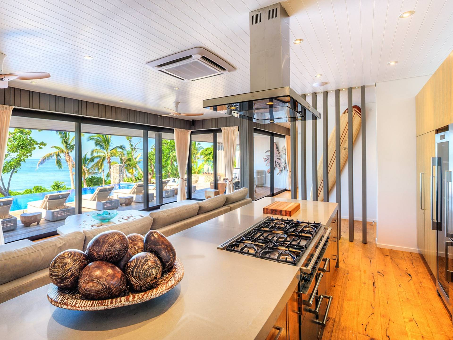 Несмотря на то, что в ресторанах VOMO для гостей The BeacHouse все блюда включены в стоимость проживания за ночь, кухня в этой резиденции представляет собой гастрономическую мечту с первоклассной техникой из нержавеющей стали и винным холодильником на 200 бутылок. Барбекю на открытом воздухе позволяет более непринужденно готовить на гриле у бассейна и ужинать по вечерам, когда вы можете поесть в ресторане. Рядом со входом в The BeacHouse находится открытый коктейльный и обеденный дворик с печью для пиццы, тарелкой для теппаньяки, барбекю, газовой плитой, водяным охлаждением и множеством мест для отдыха. Повара VOMO могут приготовить блюда для гостей, используя любой из этих кулинарных вариантов за дополнительную плату.
