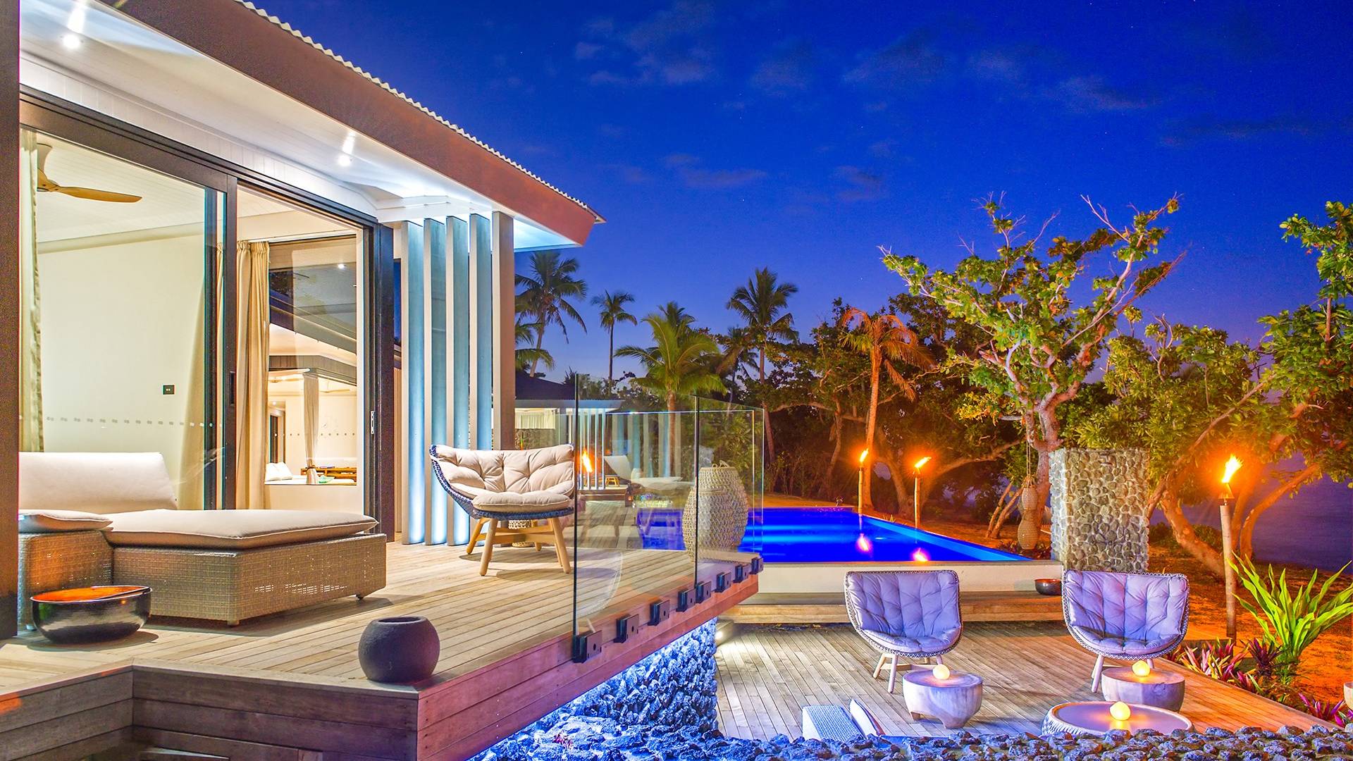 The BeacHouse предназначен для пар и семей, жаждущих утонченного отдыха на острове. В трех прекрасно обставленных спальнях с кроватью размера «king-size» есть внутренние ванные комнаты, отдельные душевые на открытом воздухе, частные террасы для загара с двуспальными кушетками и величественная ванна на открытом воздухе для главной спальни. Две спальни доступны в двухместной конфигурации.