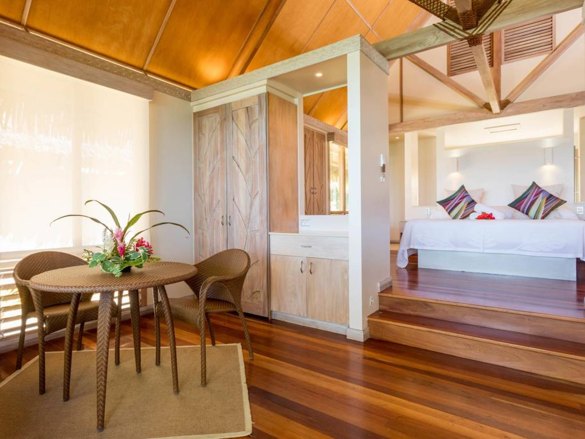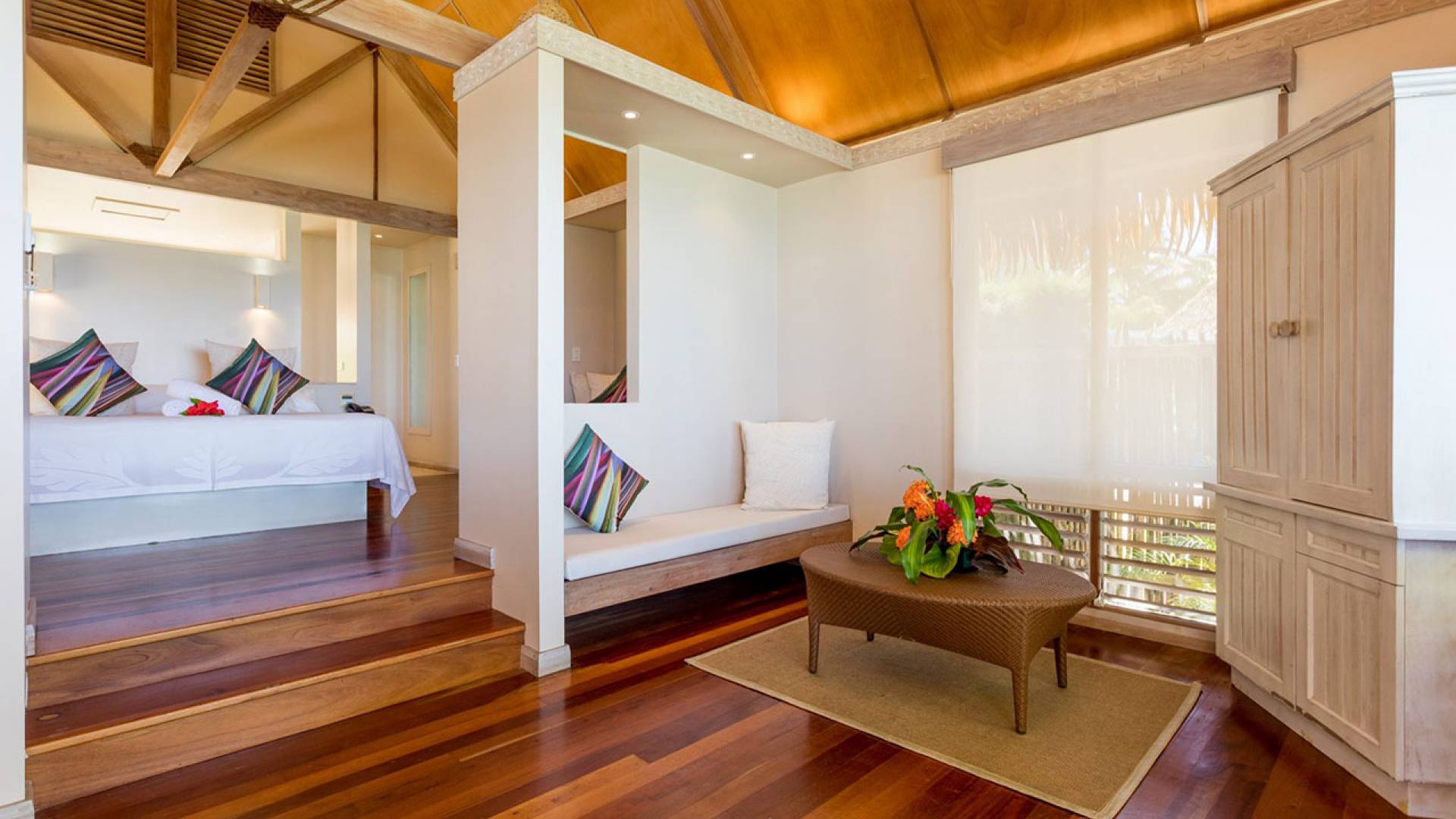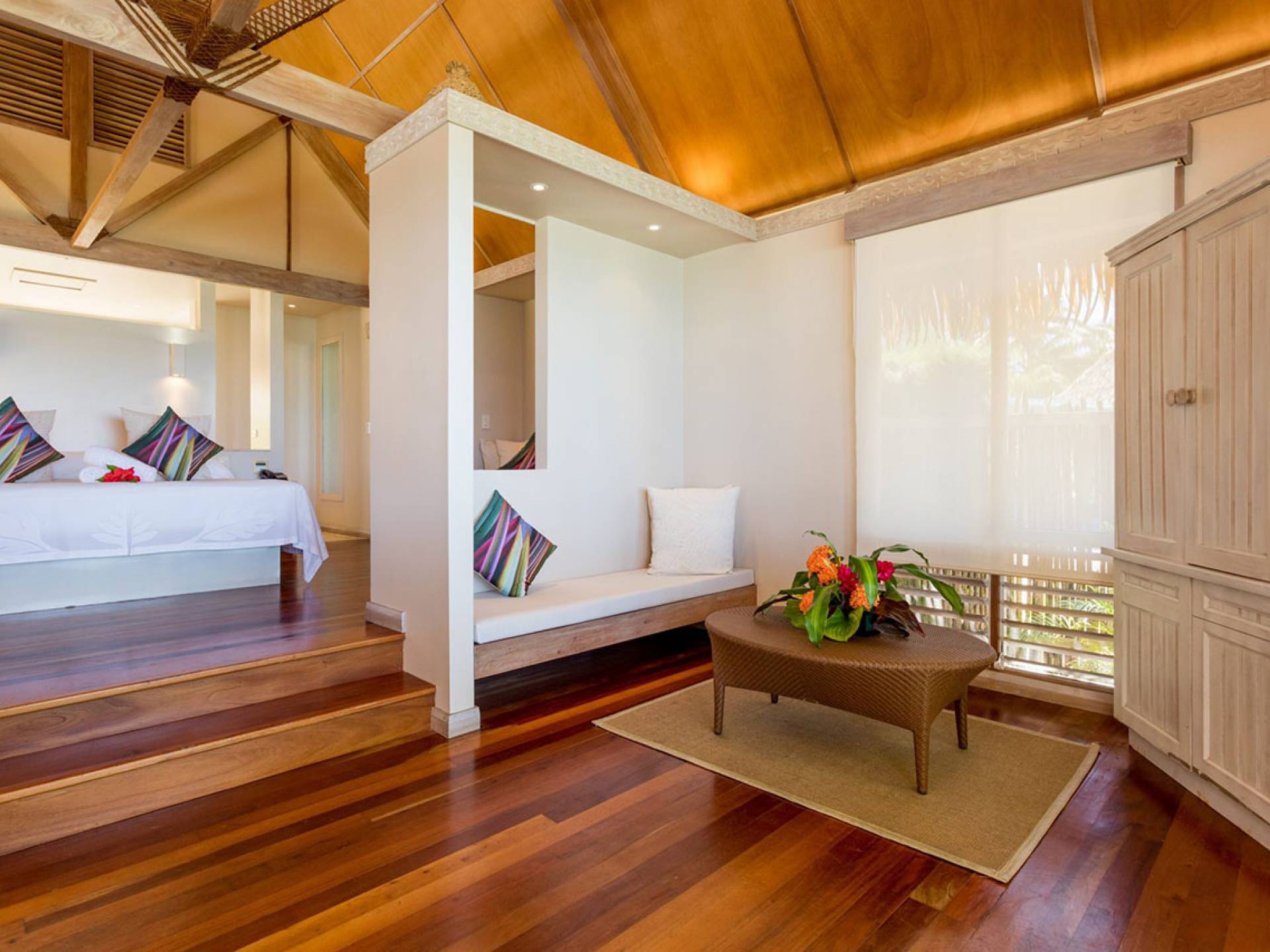 Потрясающие бунгало на берегу моря - воплощение изысканного тихоокеанского дизайна. Просторные двухуровневые апартаменты - идеальный выбор для романтического отдыха или особого торжества. В вашем распоряжении обеденная и гостиная зона, а также большая двойная ванная комната, ведущая в частный двор с душем на открытом воздухе. Вам не захочется уезжать. Размещение кровати размера «king-size» в центре спальни на возвышении гарантирует, что вы просыпаетесь каждое утро с потрясающим видом на лагуну. Наслаждайтесь теплым бризом, пока солнце садится с шезлонгов в вашем собственном патио, и наблюдайте за появлением звезд в этом идиллическом раю.