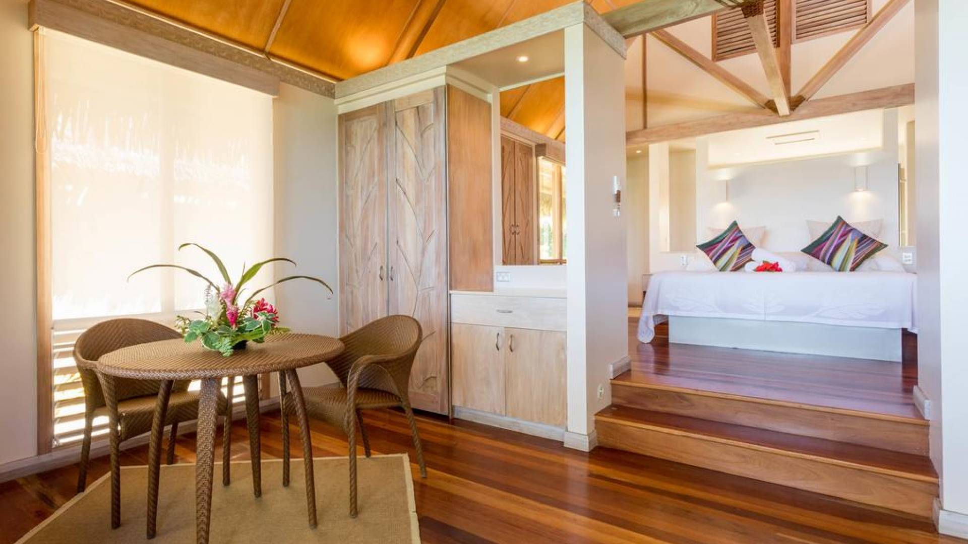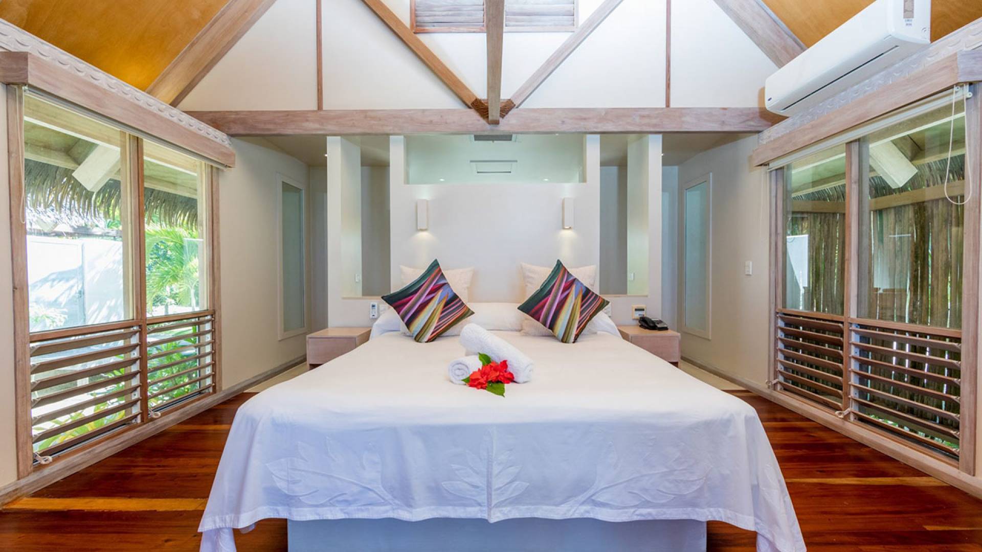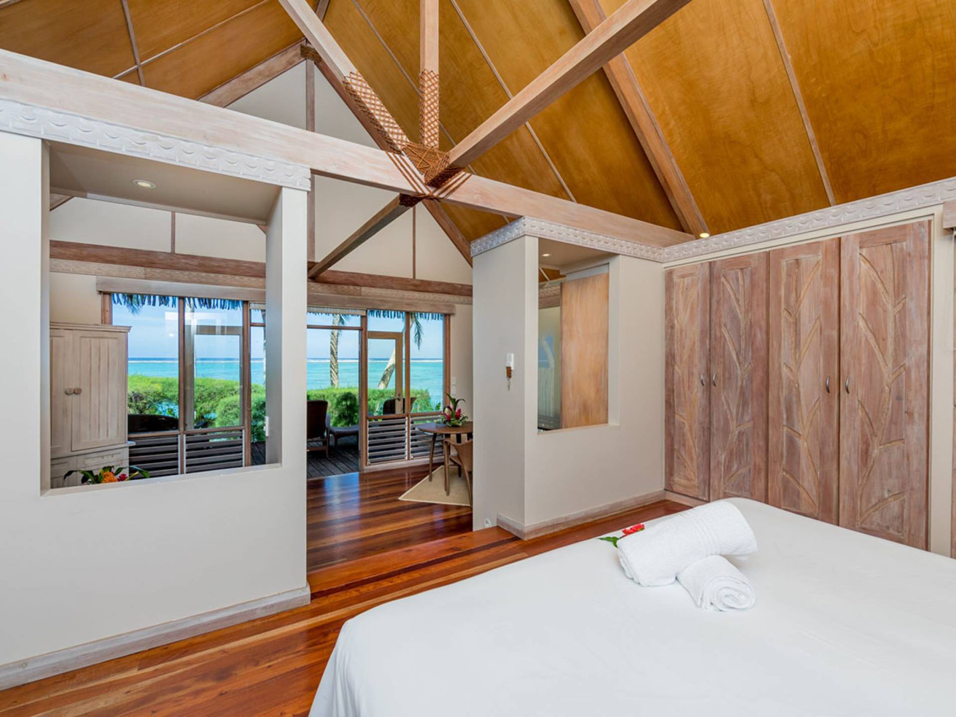 Потрясающие бунгало на берегу моря - воплощение изысканного тихоокеанского дизайна. Просторные двухуровневые апартаменты - идеальный выбор для романтического отдыха или особого торжества. В вашем распоряжении обеденная и гостиная зона, а также большая двойная ванная комната, ведущая в частный двор с душем на открытом воздухе. Вам не захочется уезжать. Размещение кровати размера «king-size» в центре спальни на возвышении гарантирует, что вы просыпаетесь каждое утро с потрясающим видом на лагуну. Наслаждайтесь теплым бризом, пока солнце садится с шезлонгов в вашем собственном патио, и наблюдайте за появлением звезд в этом идиллическом раю.