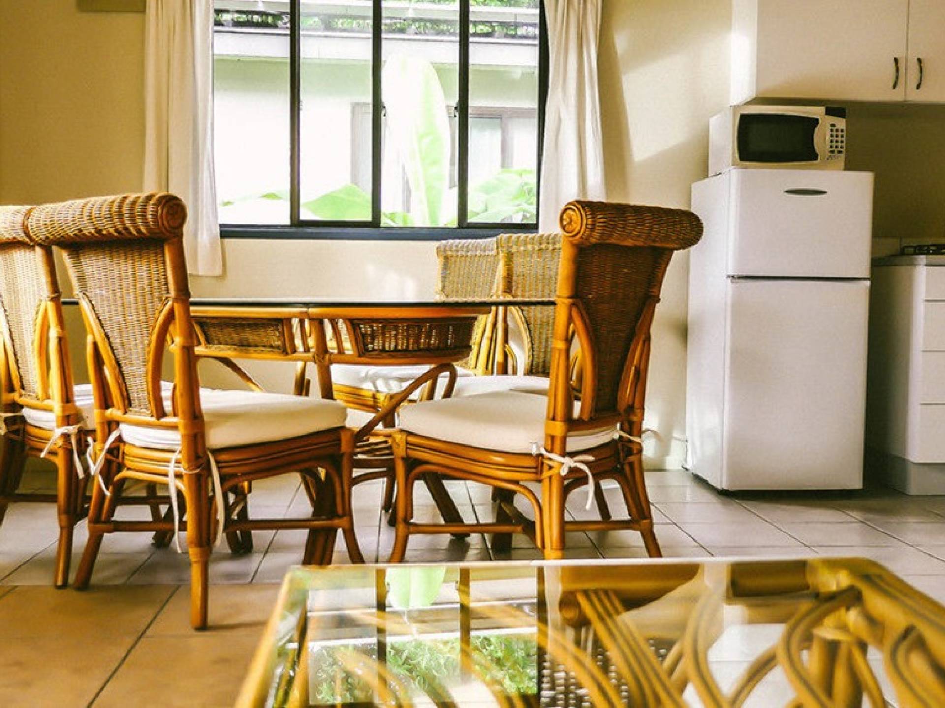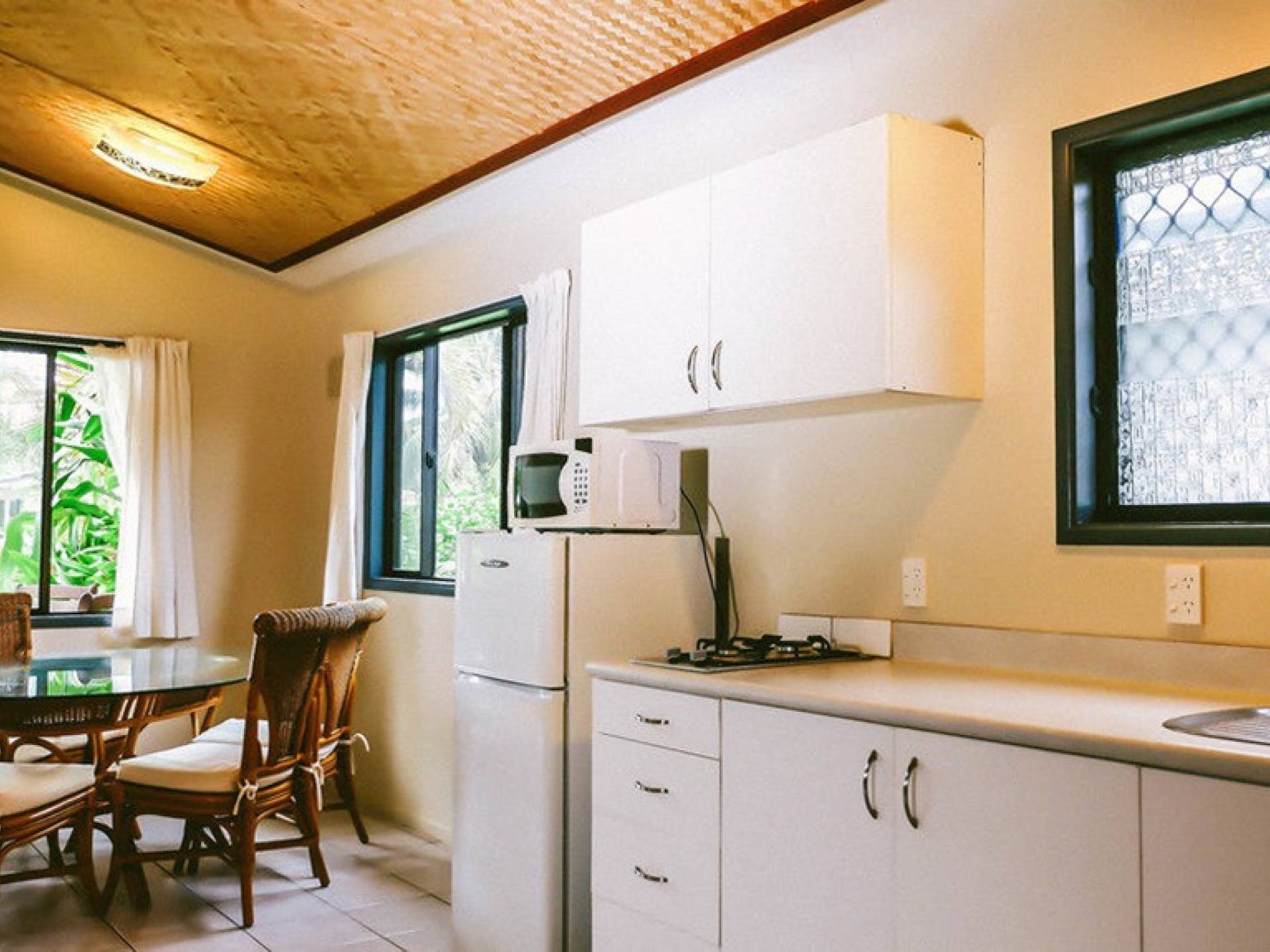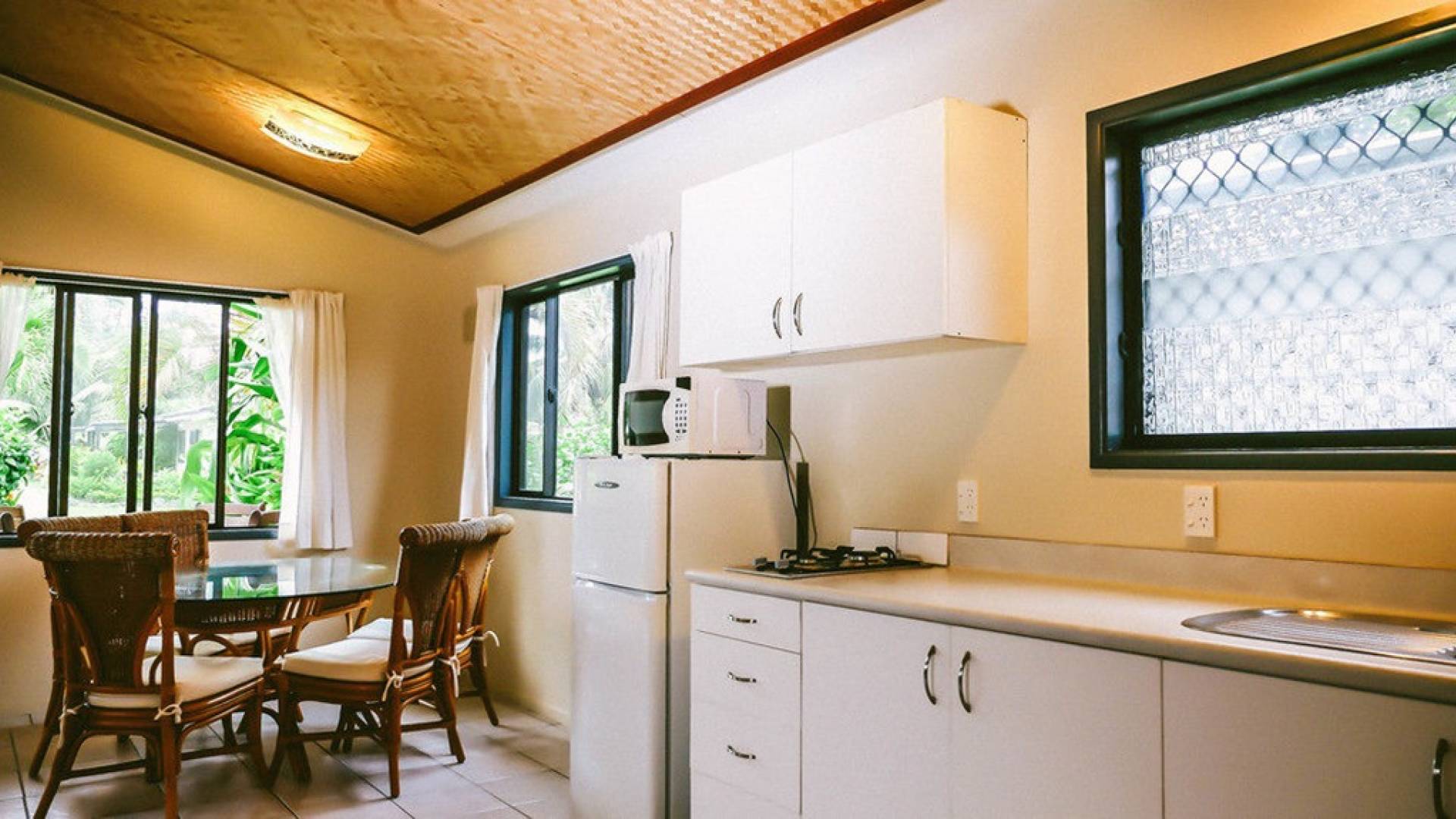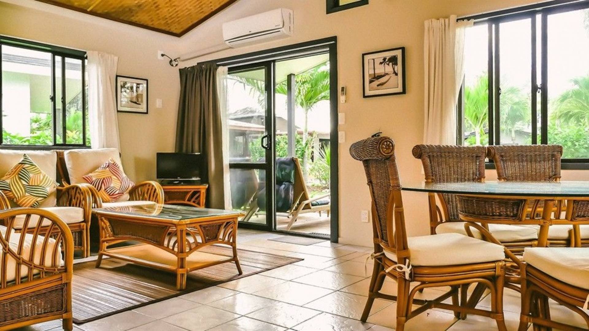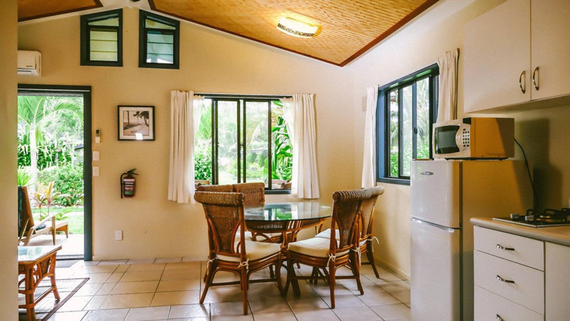 Курорт предлагает 20 современных вилл и апартаментов с кухнями и кондиционерами. Из каждой виллы или апартаментов открывается вид на сад, бассейн или лагуну. При бронировании курорт предлагает варианты ежедневного обслуживания, которое включает ежедневное обслуживание номеров и ежедневный тропический завтрак. А также возможность размещения в комнатах самообслуживания, в которую не входит обслуживание, но от гостей не требуется делать какую-либо основную уборку или стирать полотенца или постельное белье.